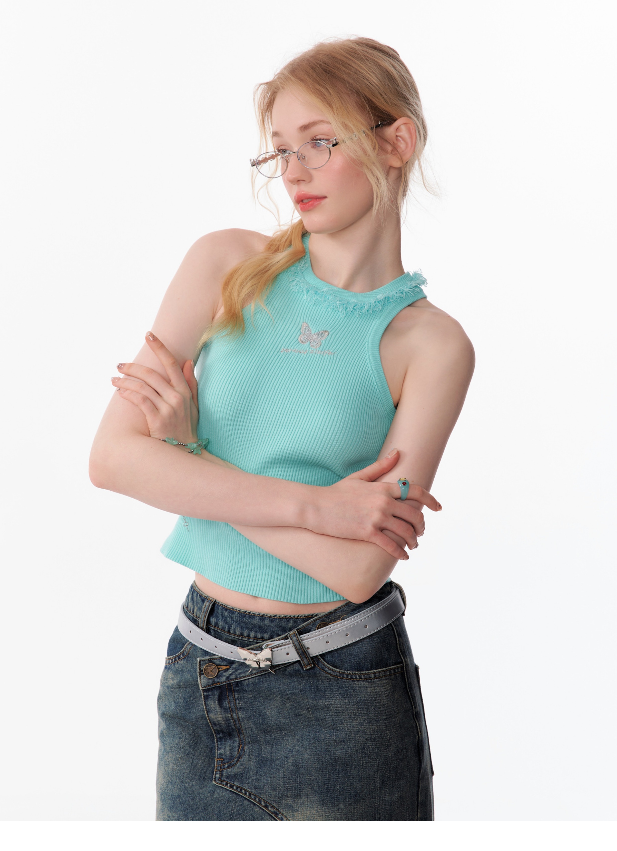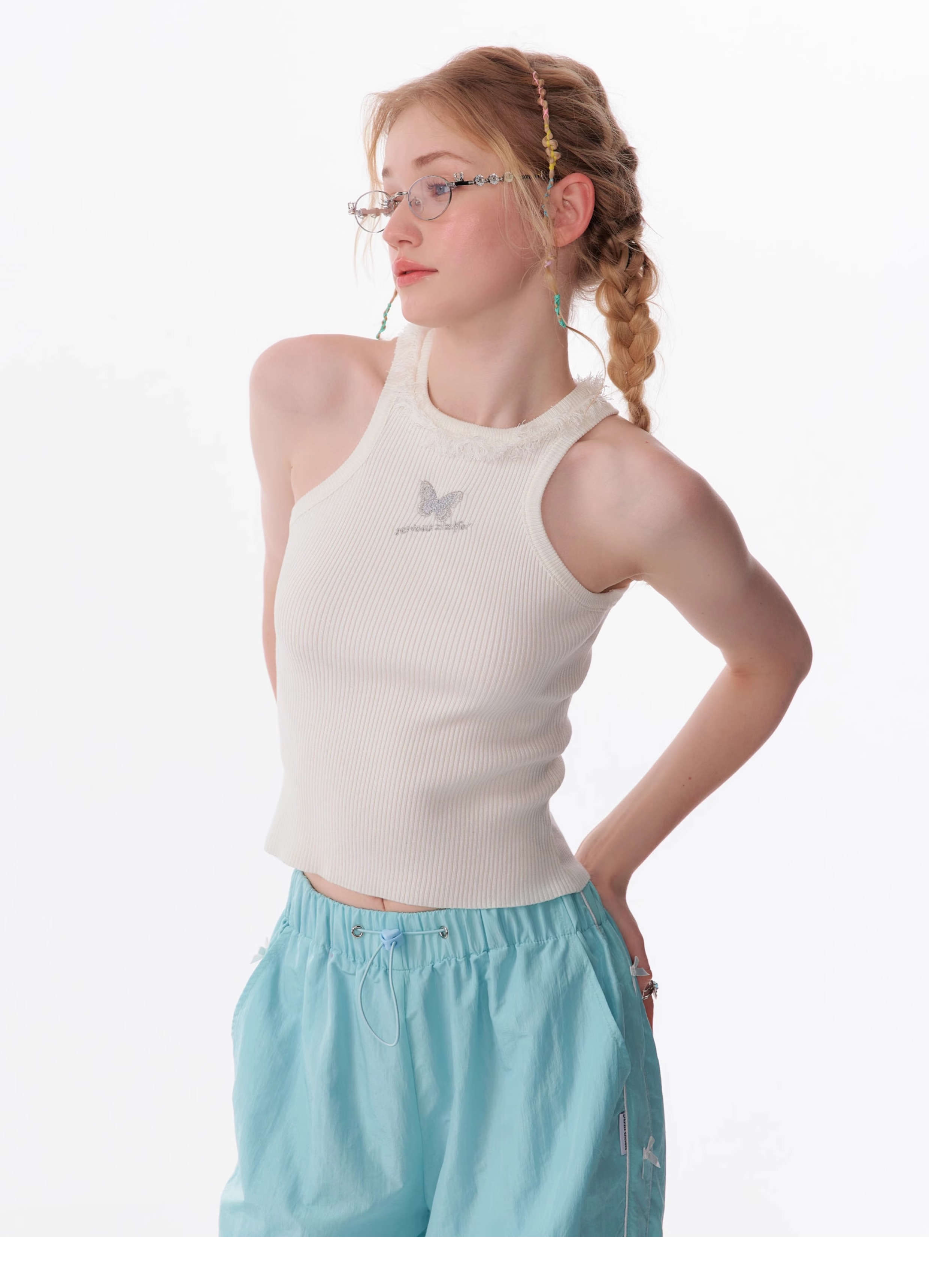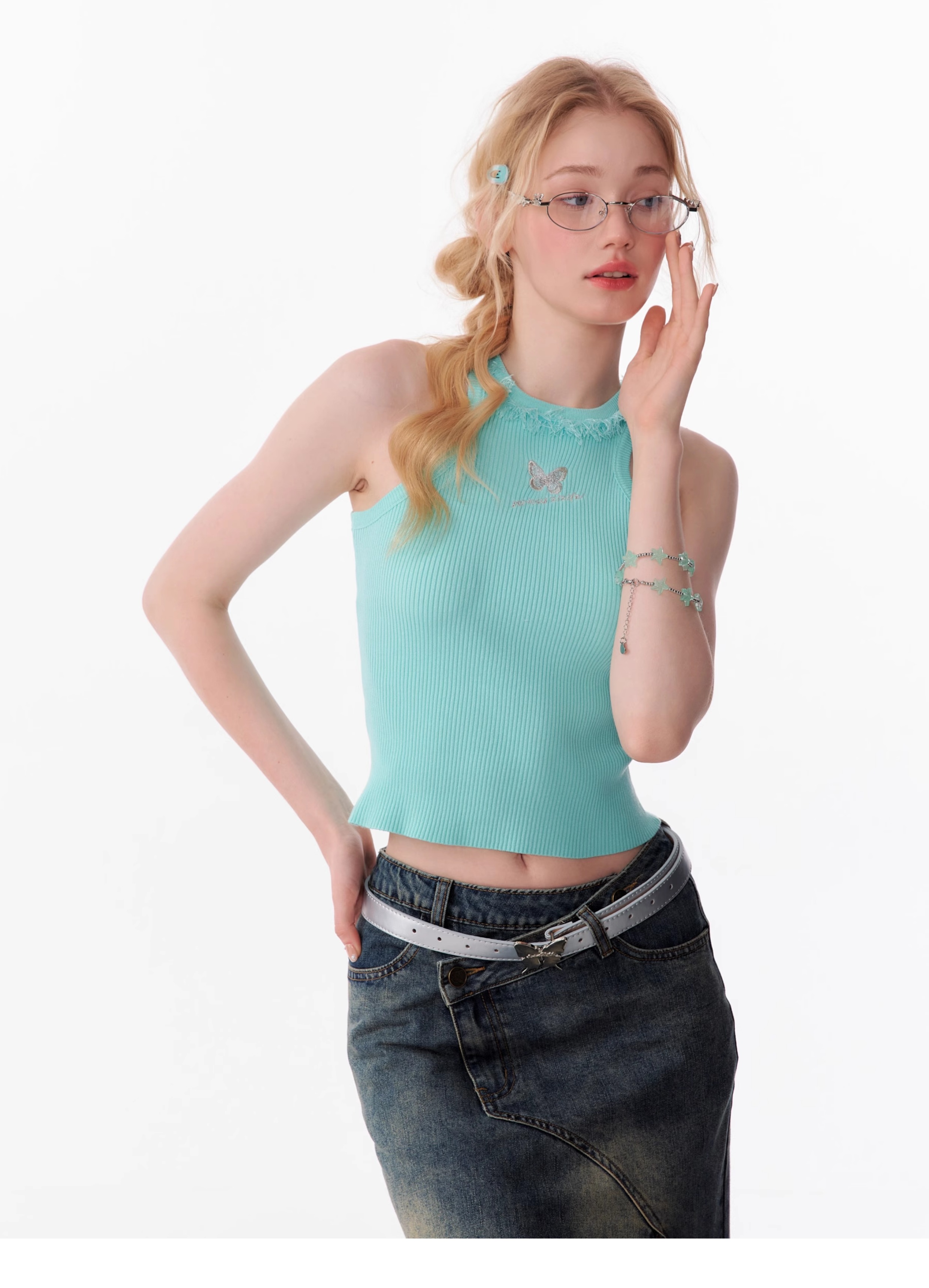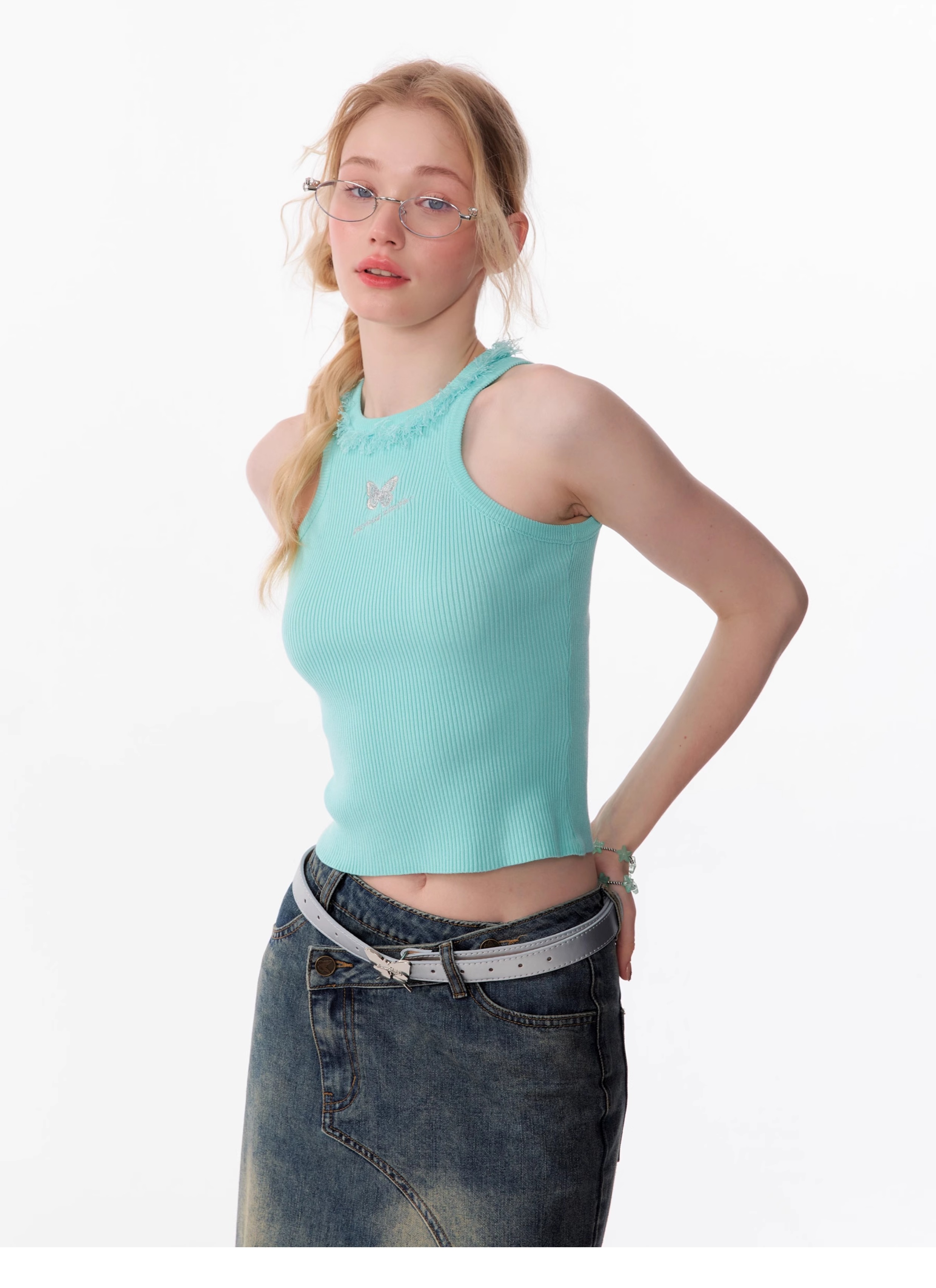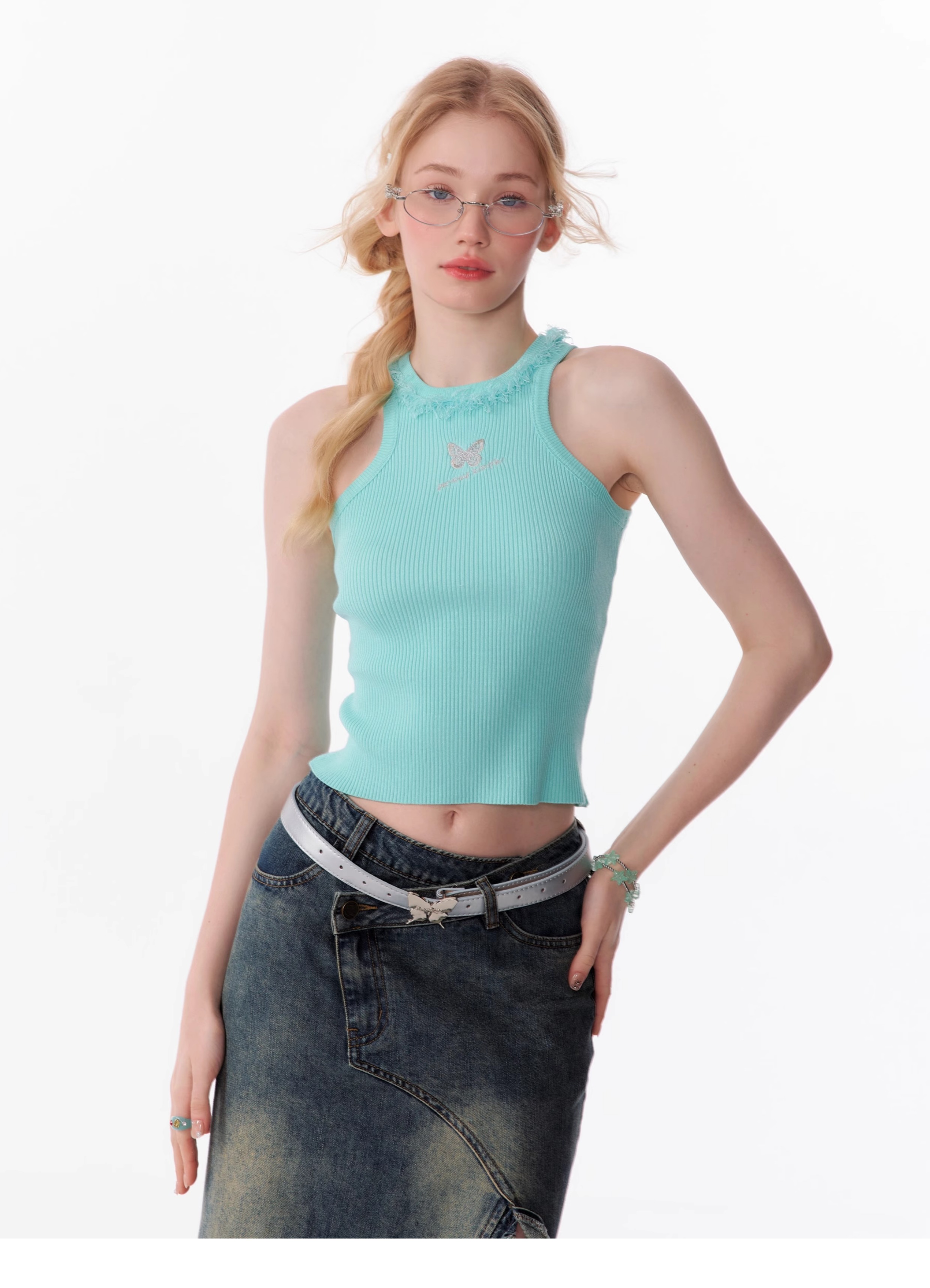 Butterfly Embroidered Backless Tank Top | Retro Sleeveless Knitted Design for Summer
