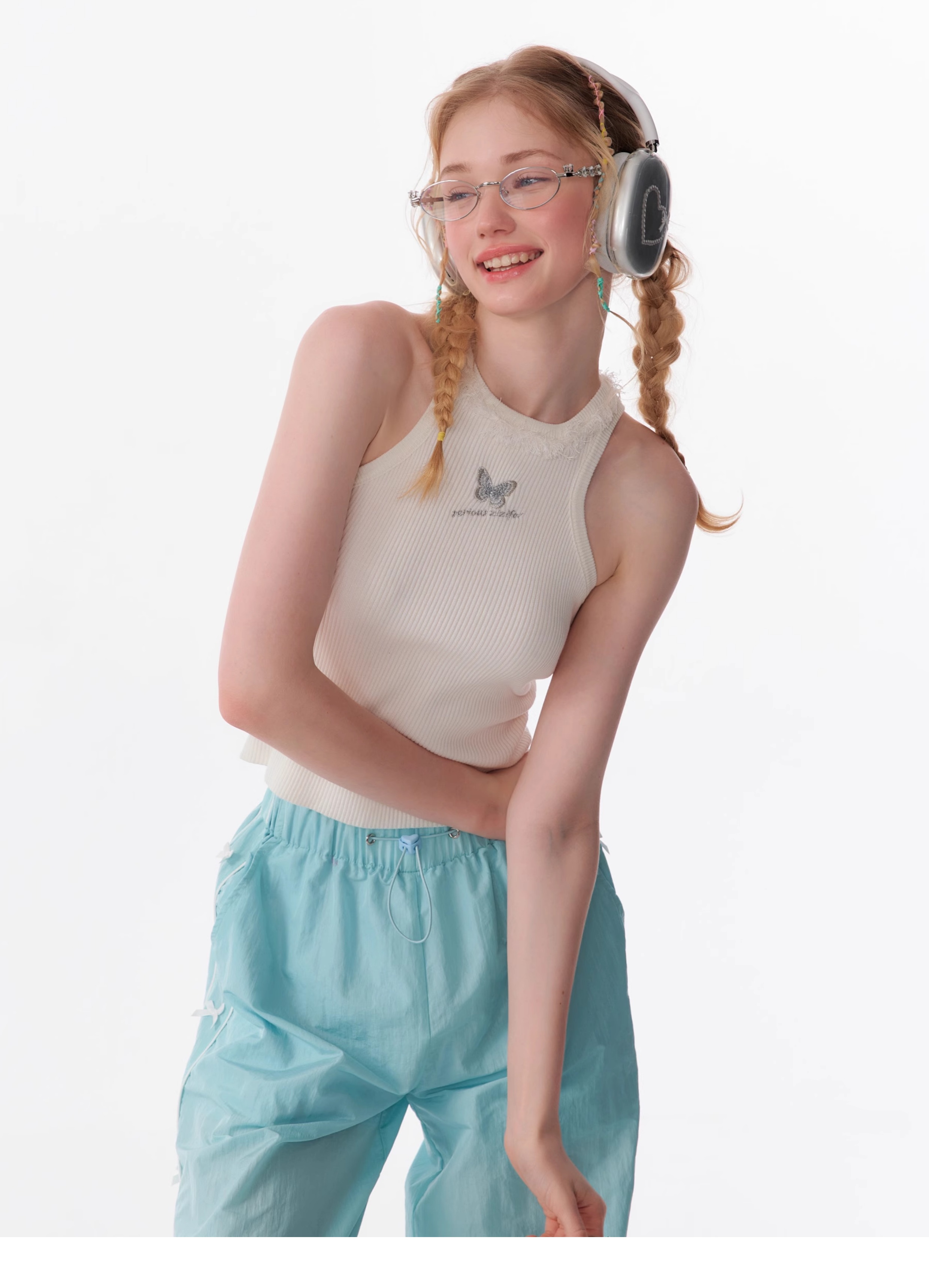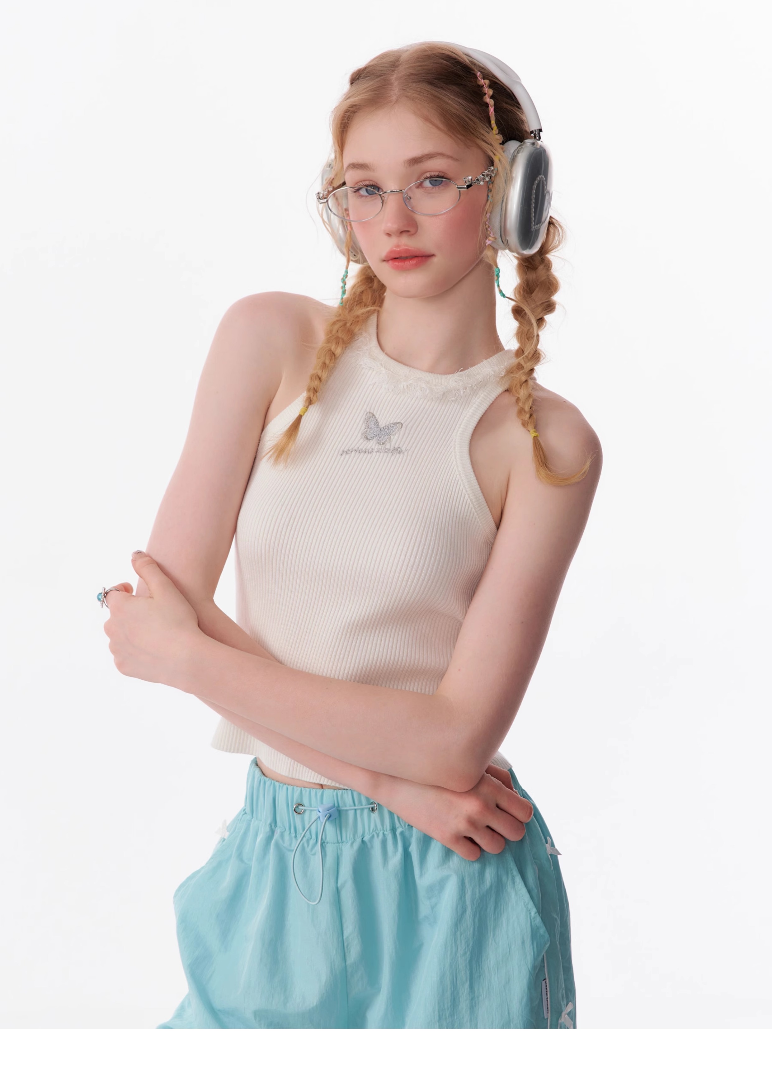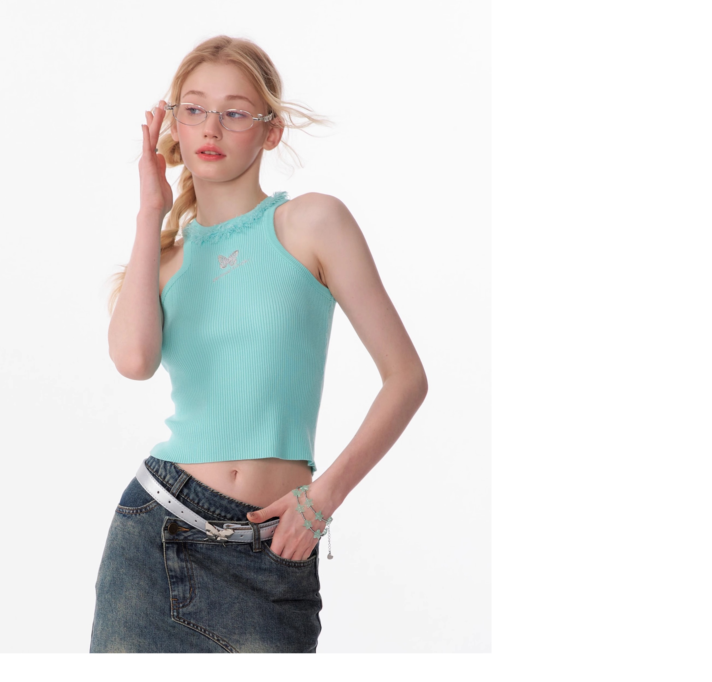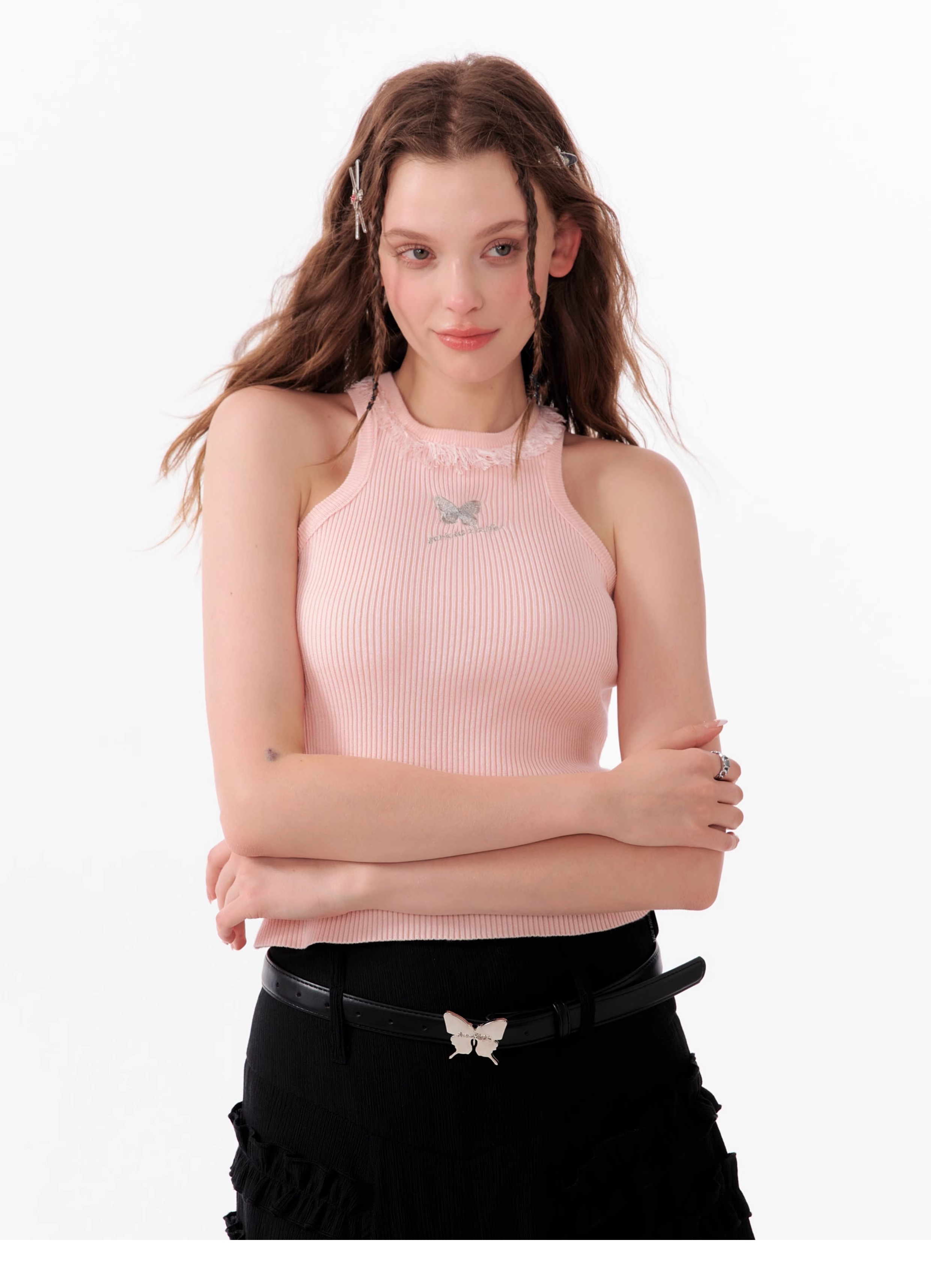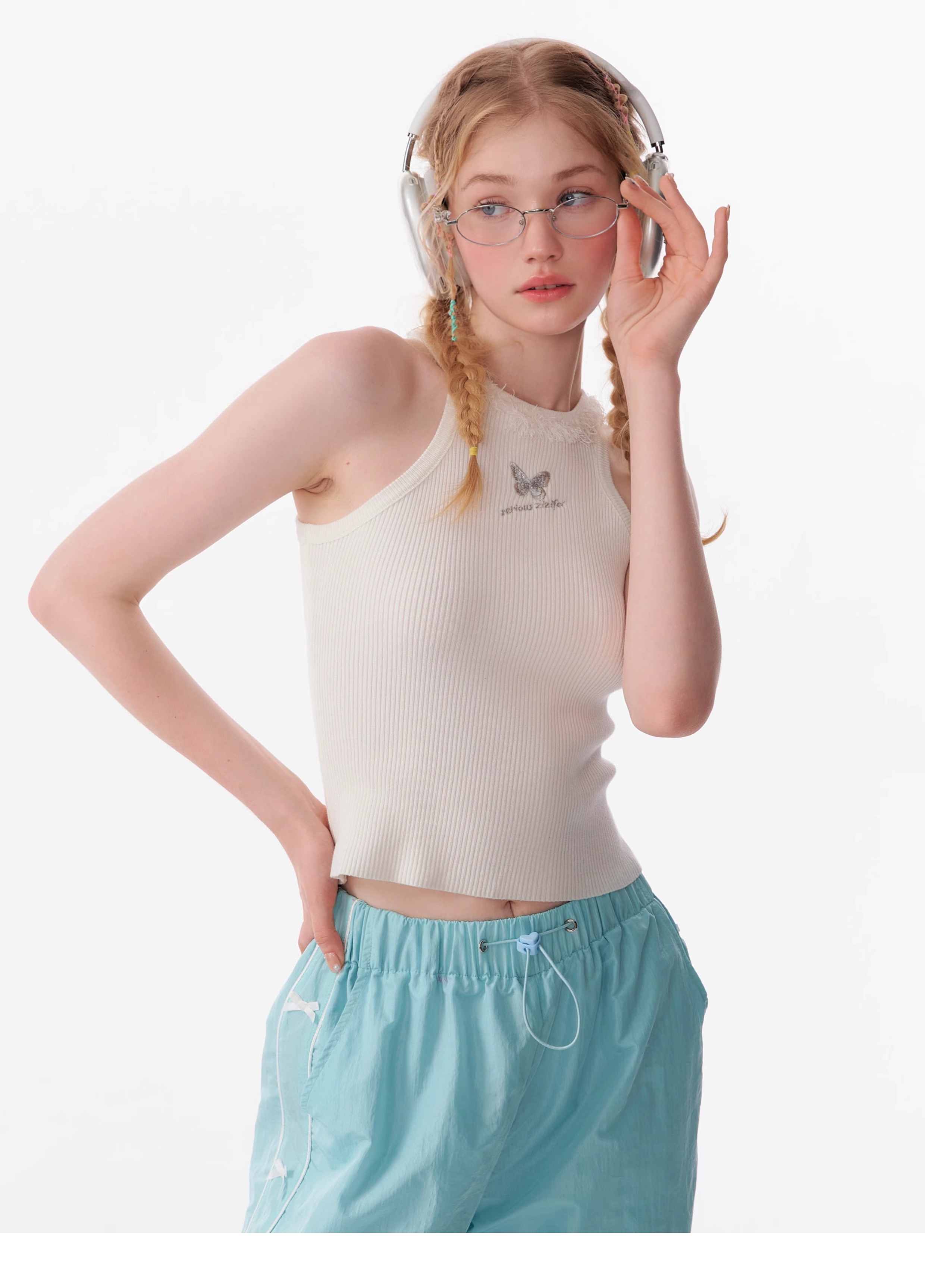 Butterfly Embroidered Backless Tank Top | Retro Sleeveless Knitted Design for Summer