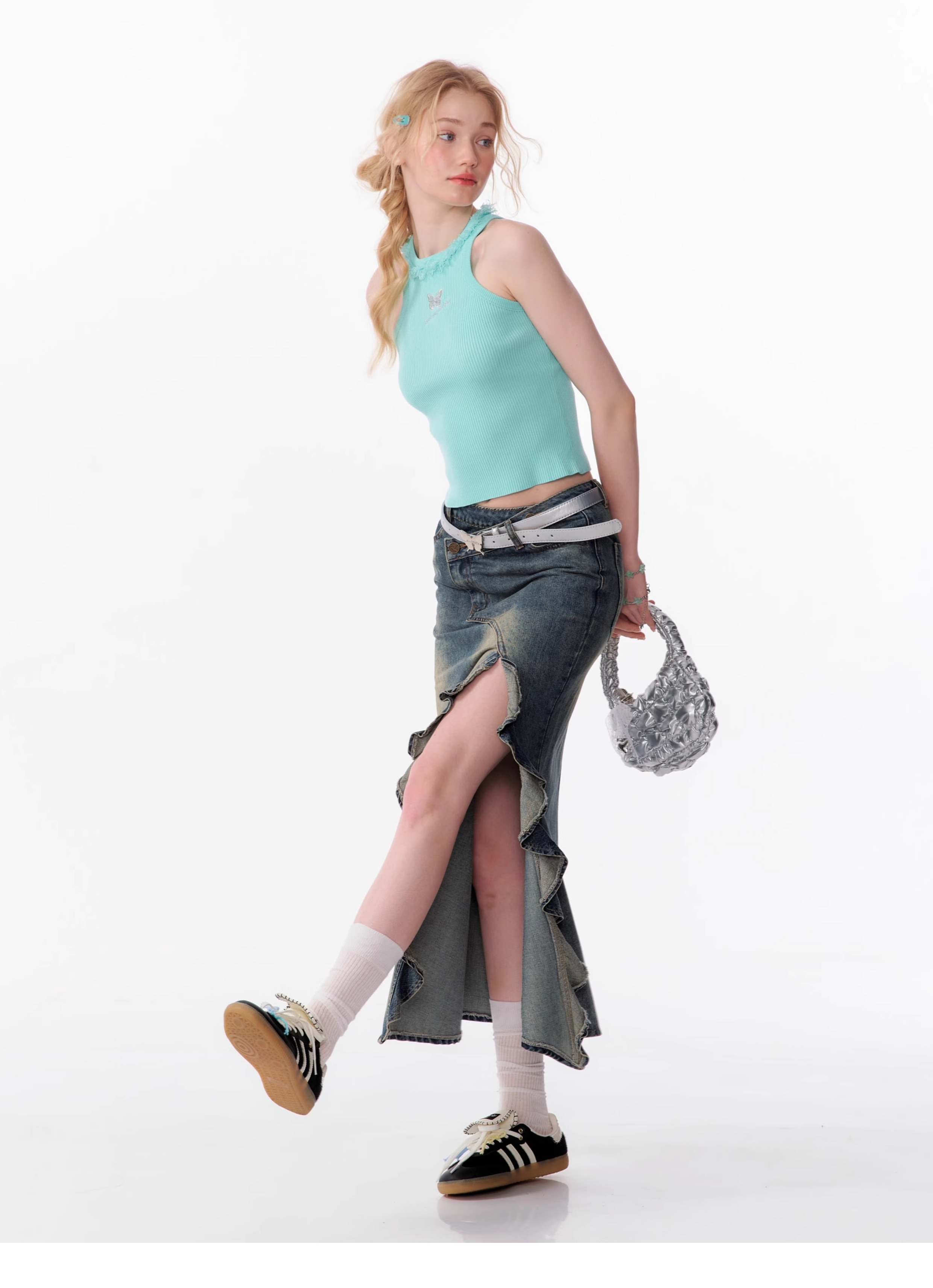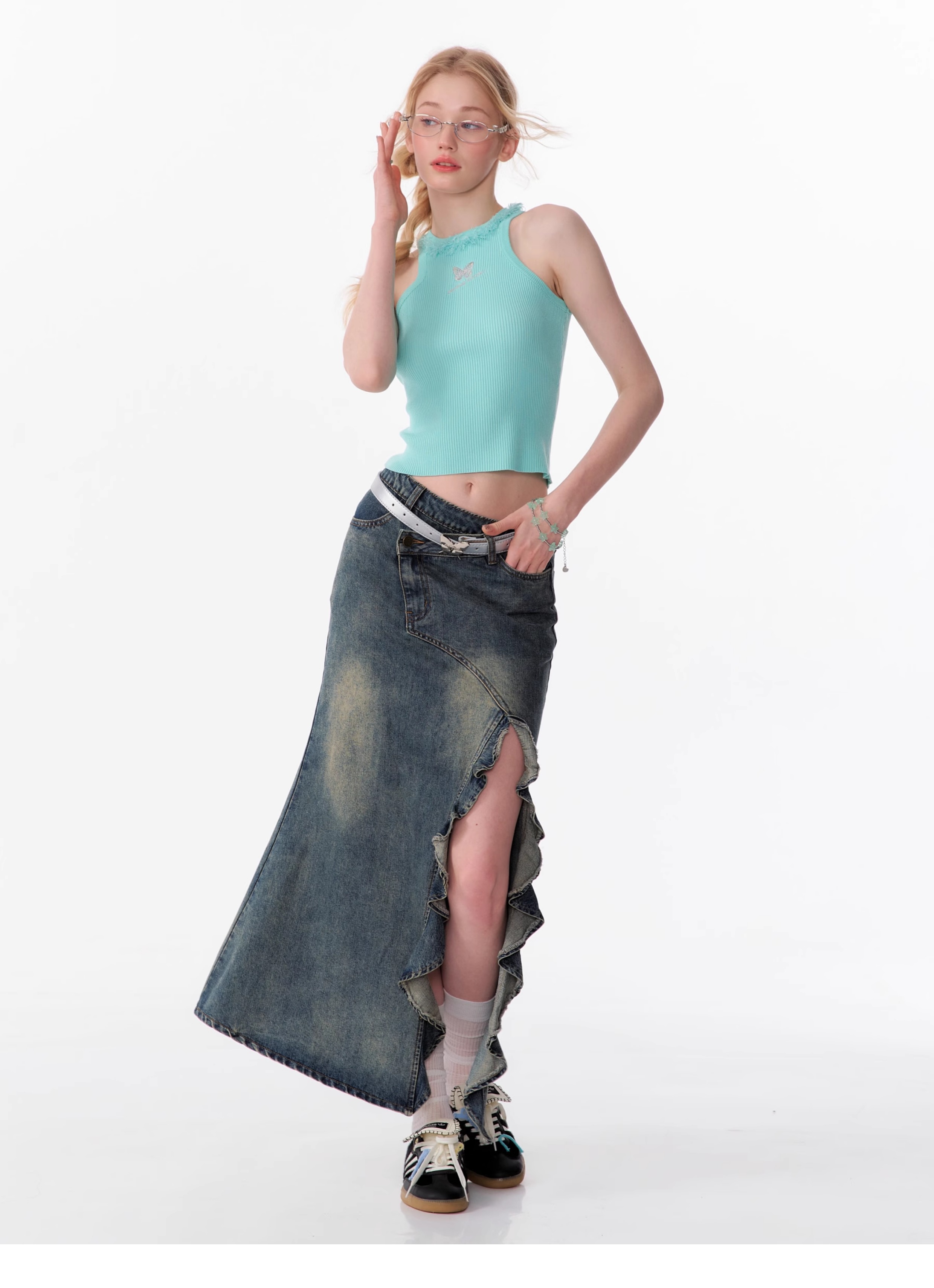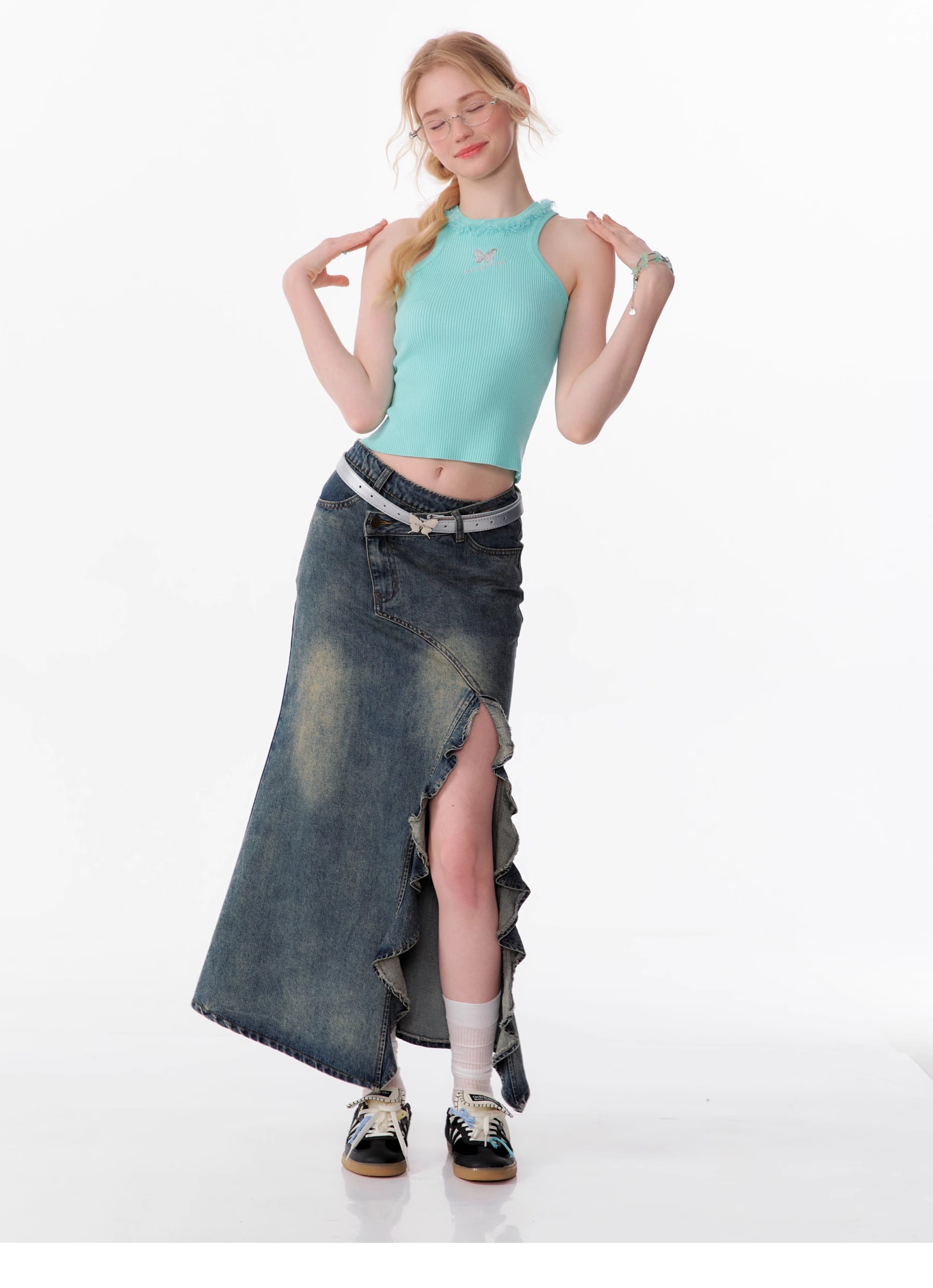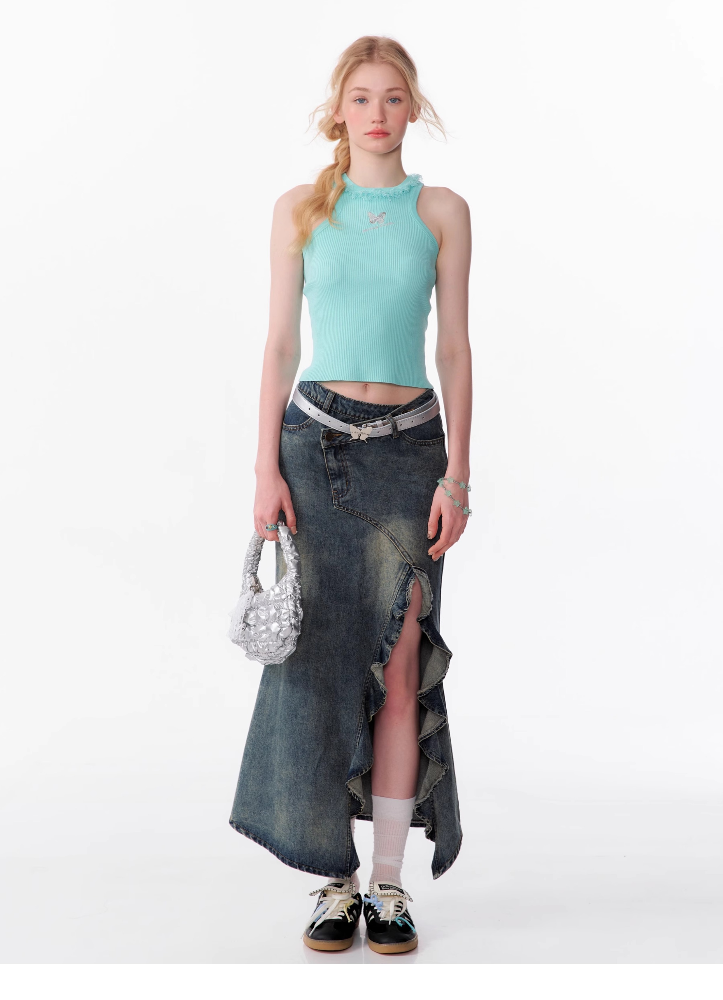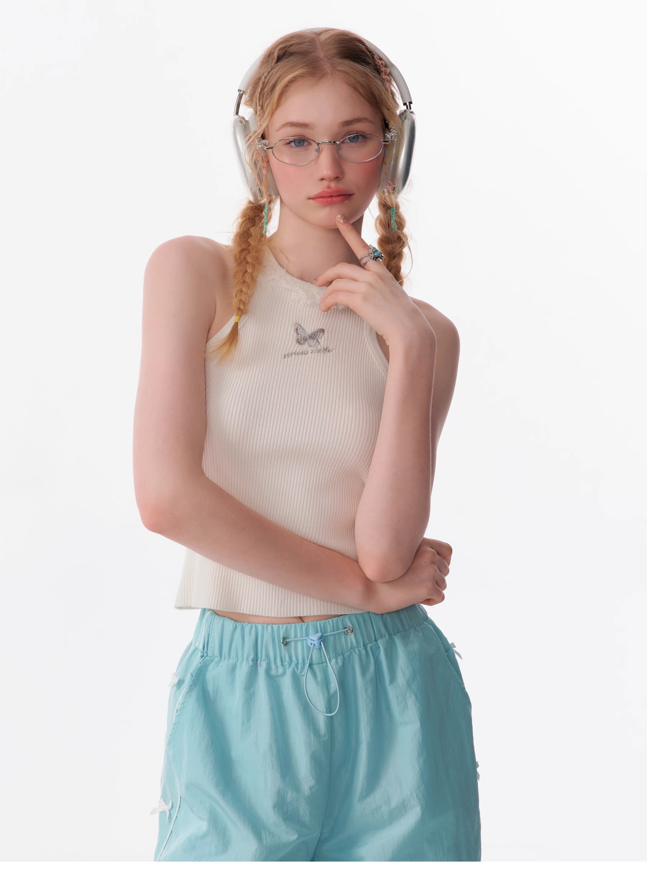 Butterfly Embroidered Backless Tank Top | Retro Sleeveless Knitted Design for Summer
