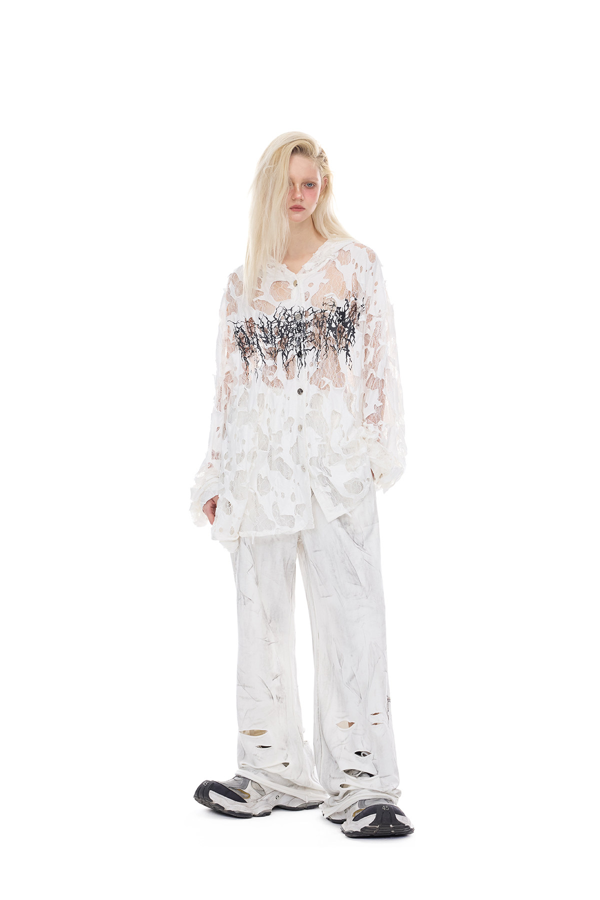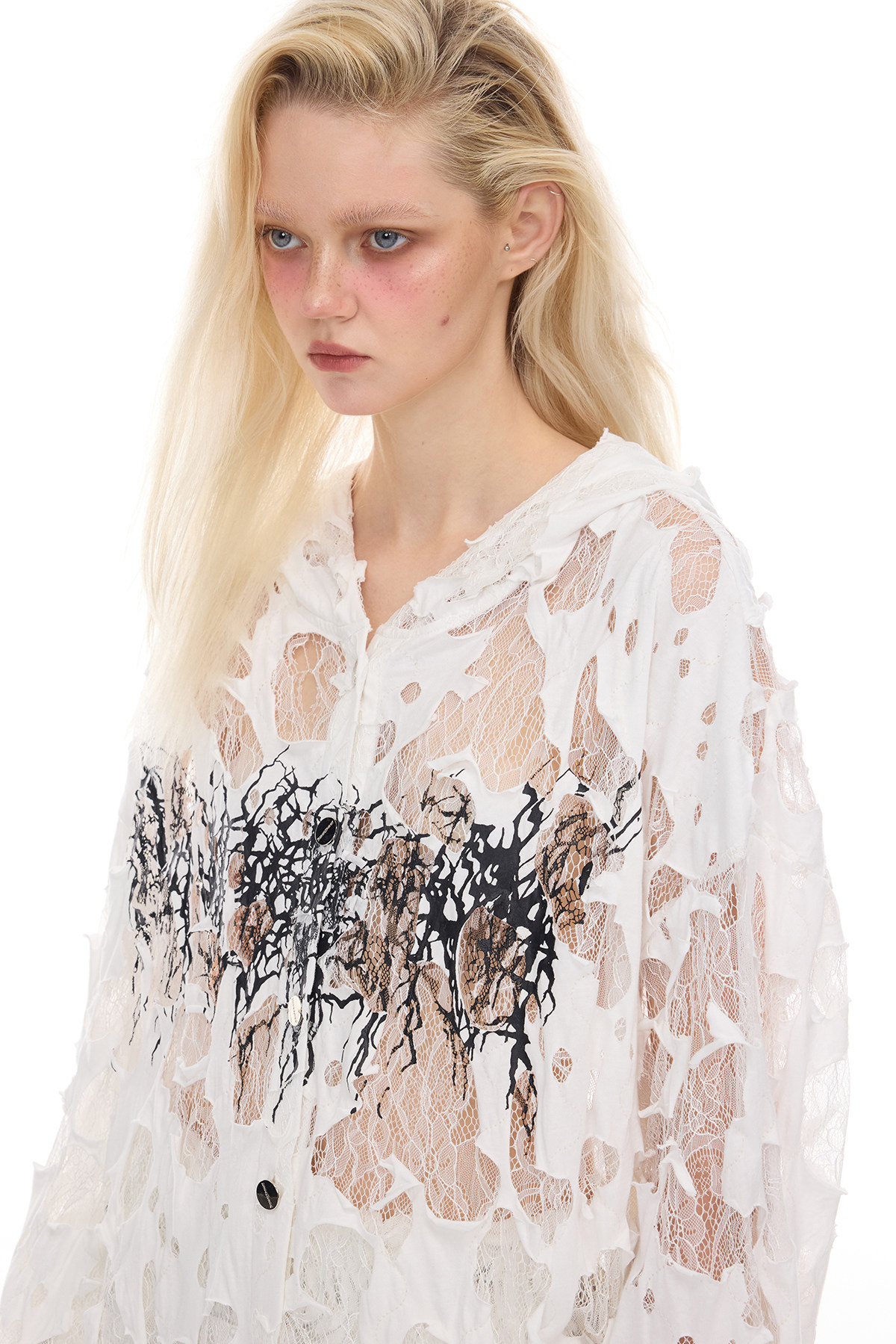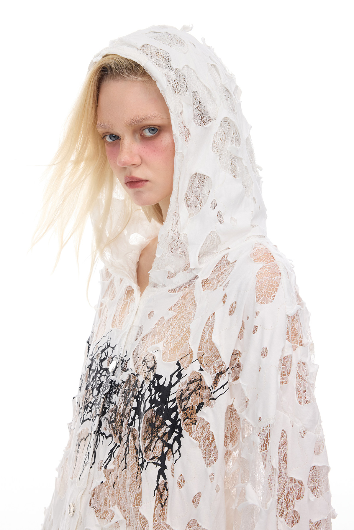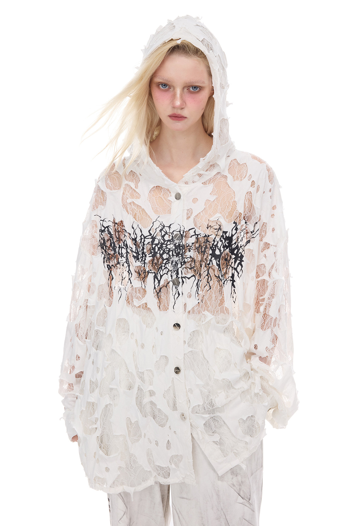 Thorn Lace Hooded Sheer Y3K White Statement Shirt