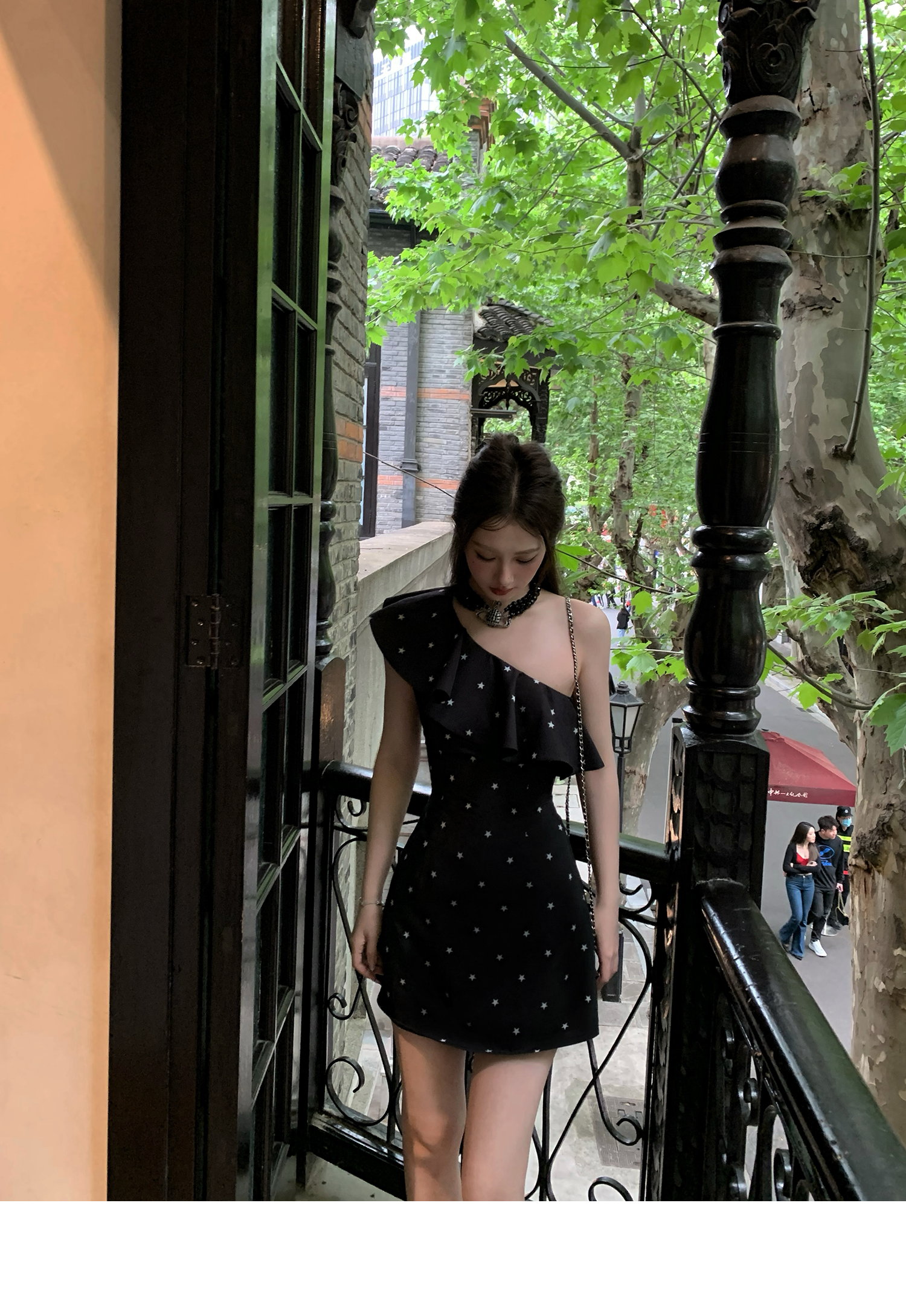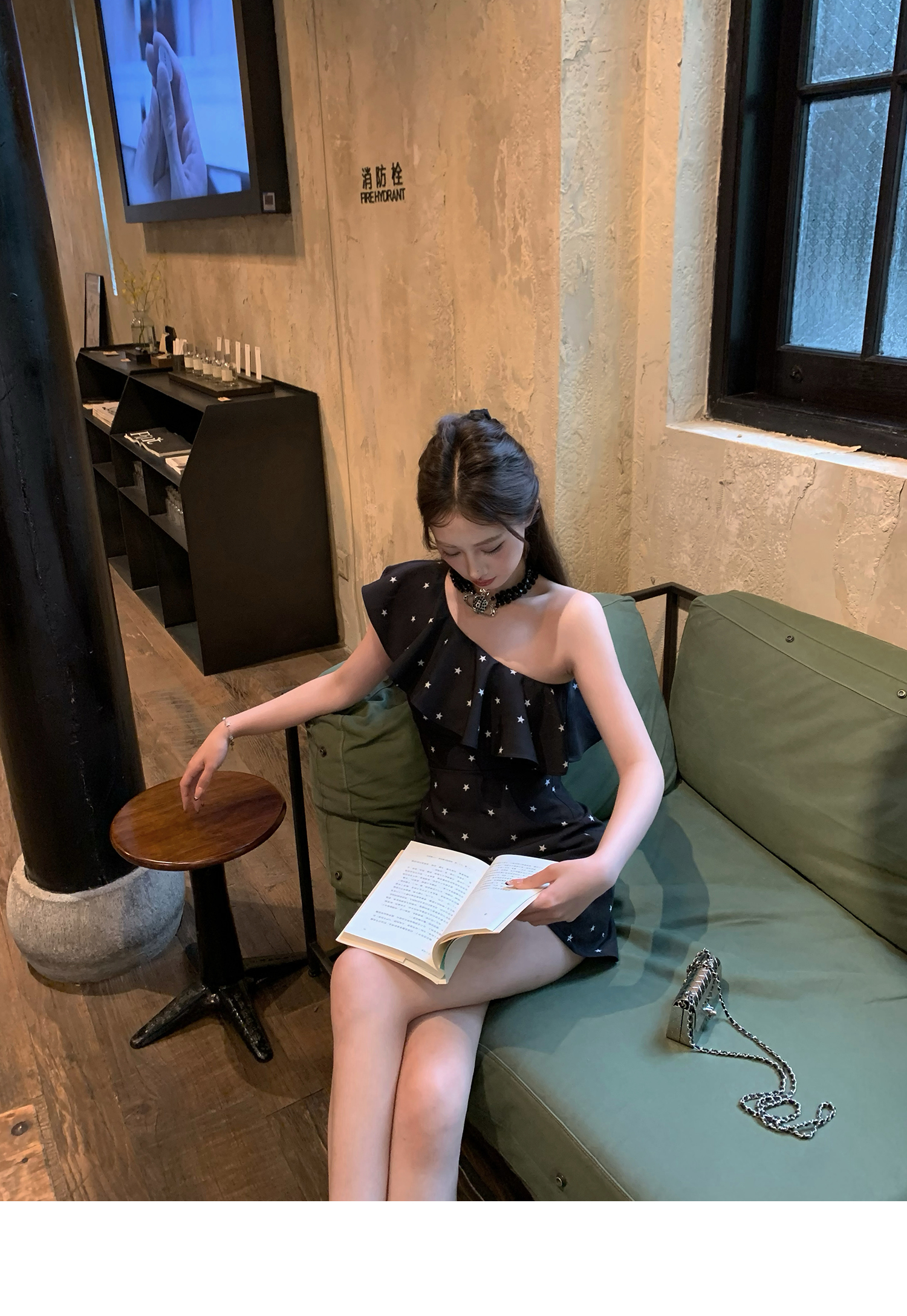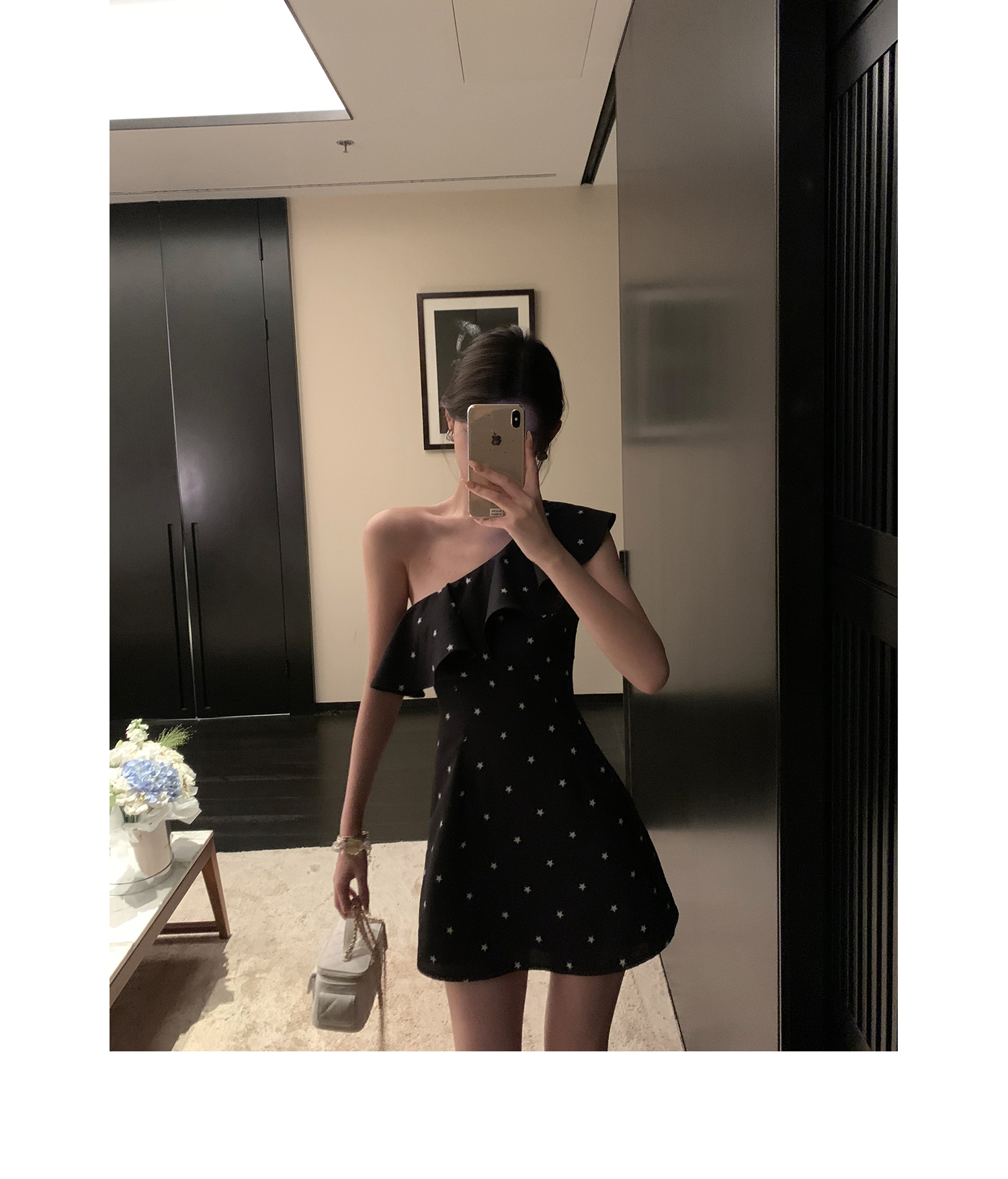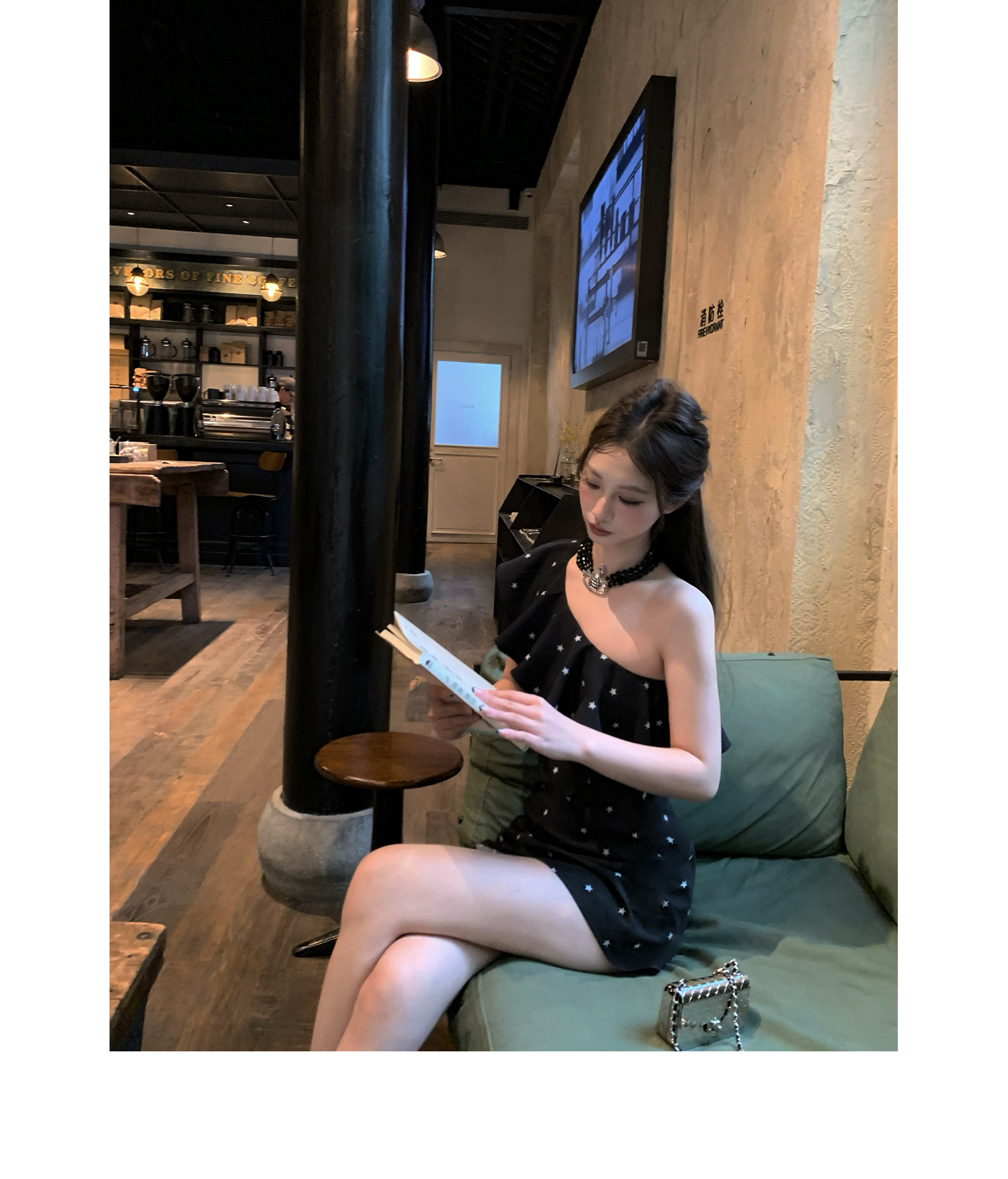[Tipsy Star Ice Music] White Sloping Shoulder Backless Summer Dress