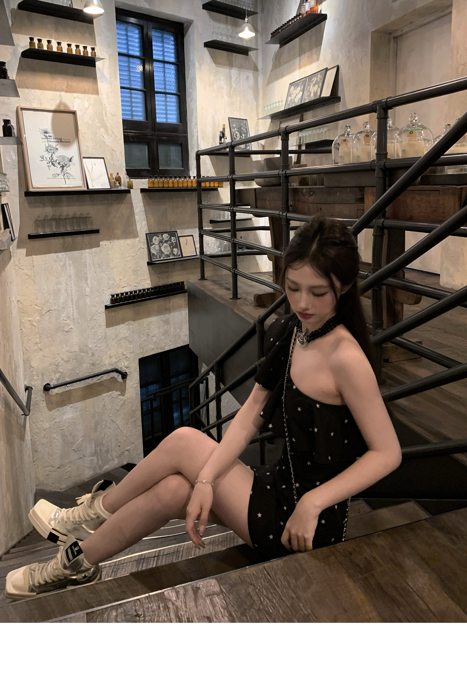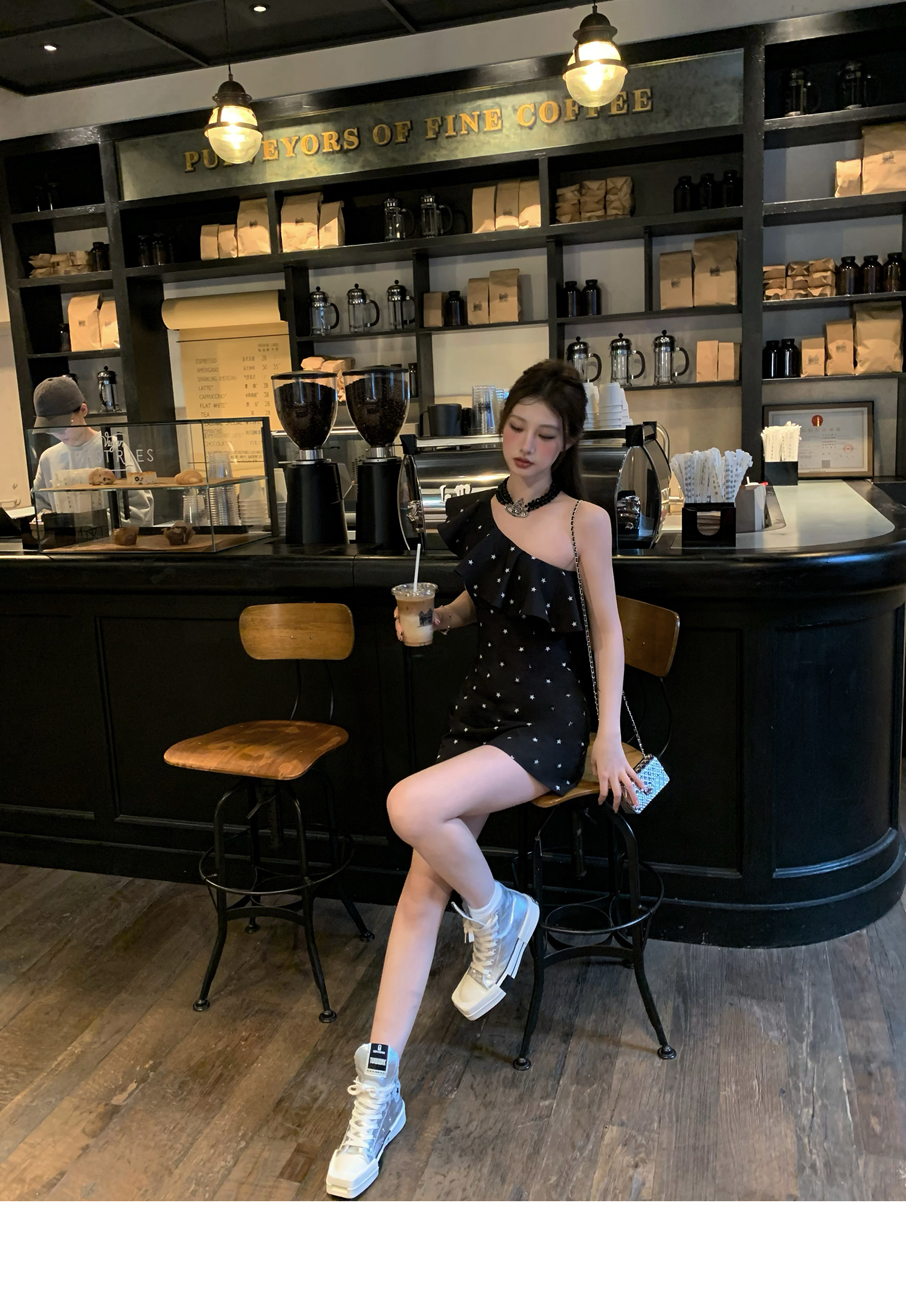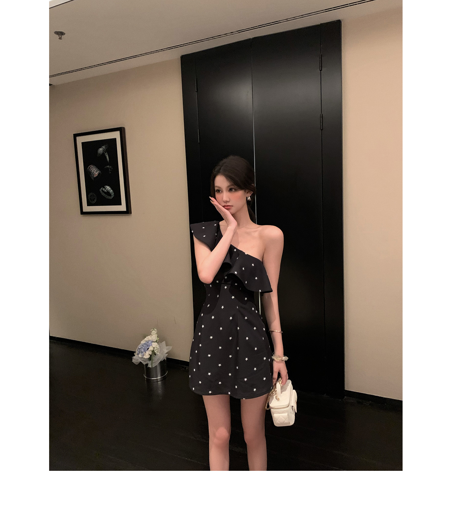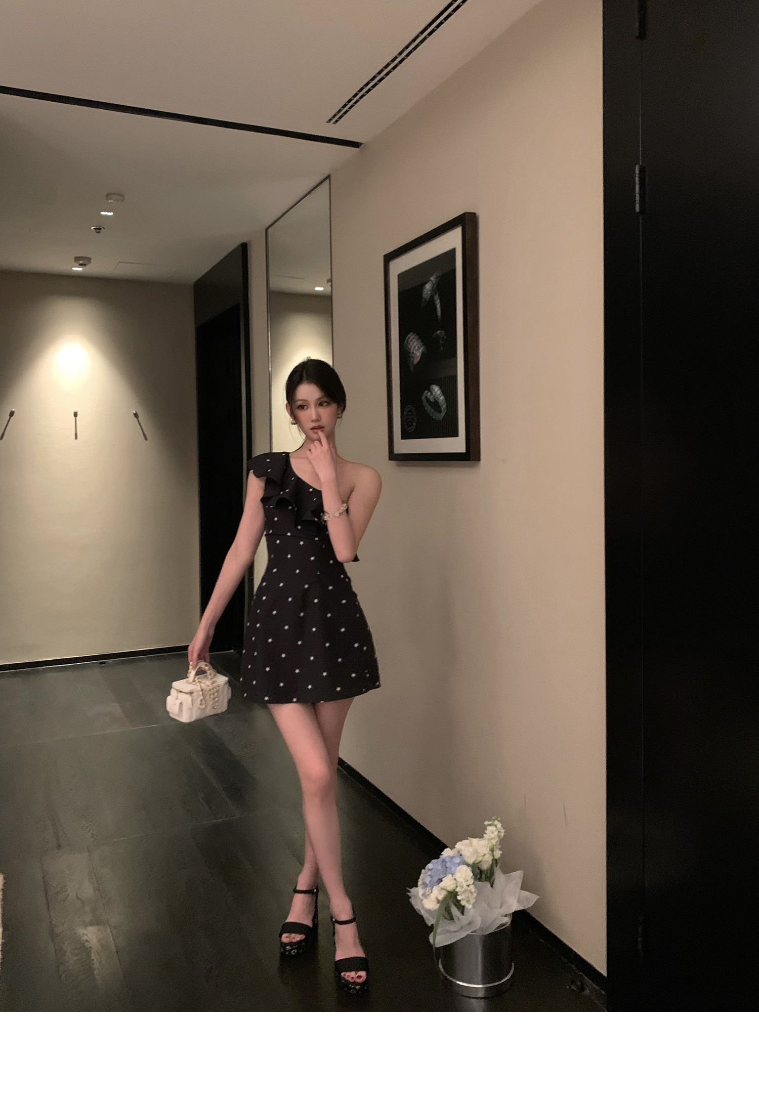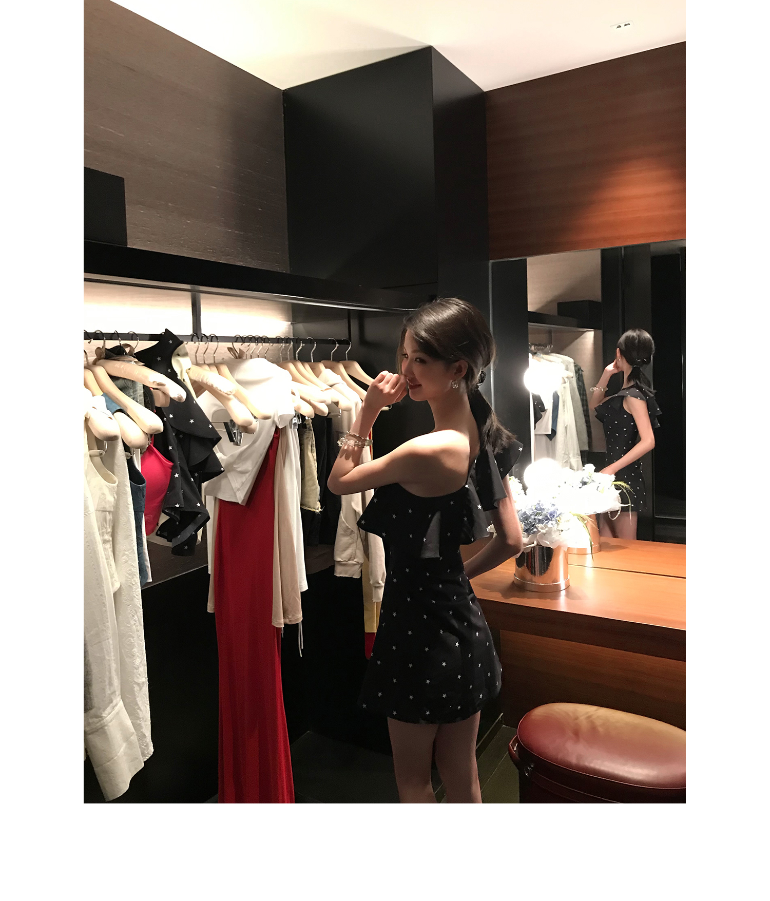 [Tipsy Star Ice Music] White Sloping Shoulder Backless Summer Dress