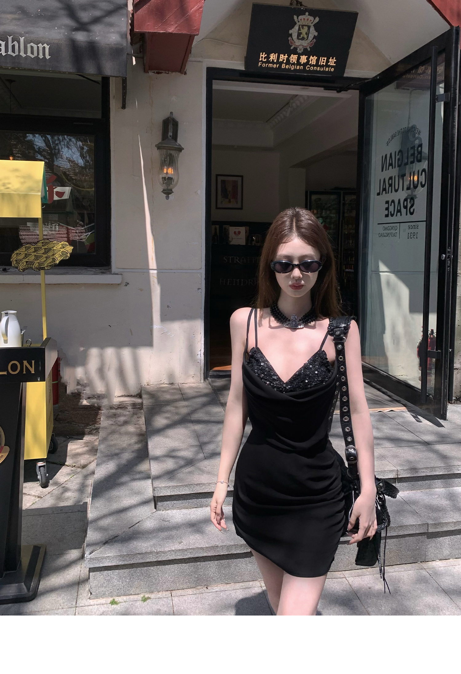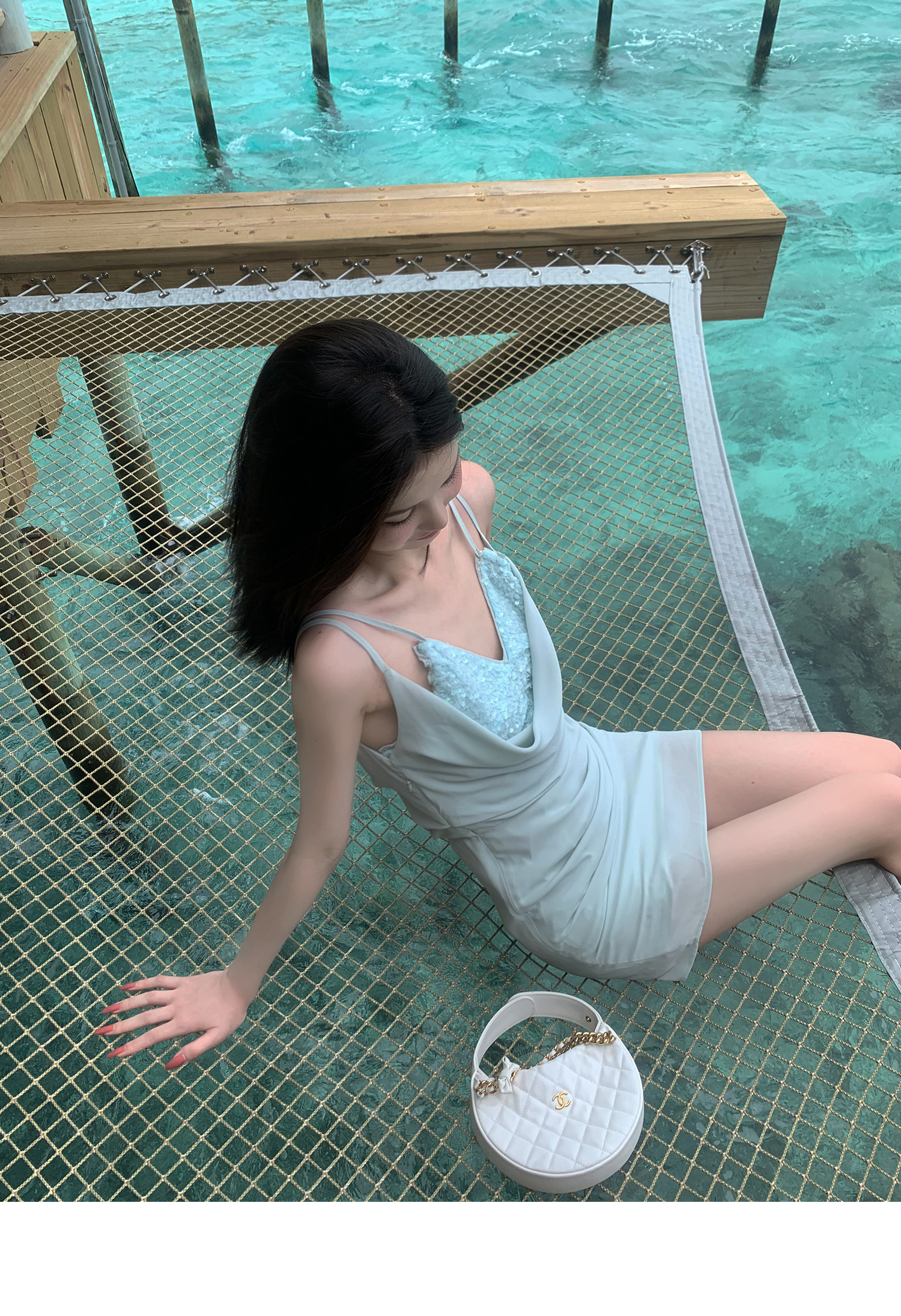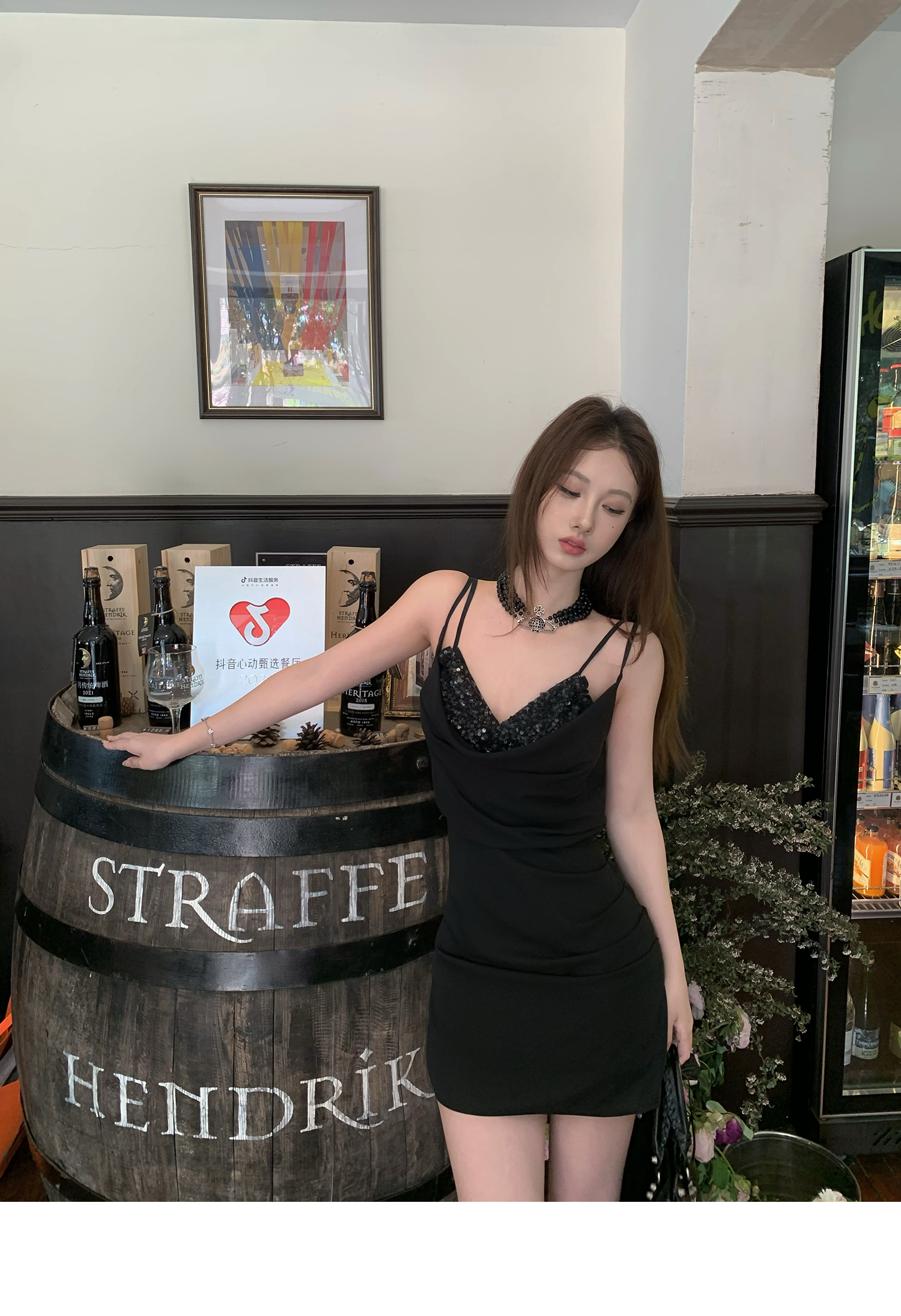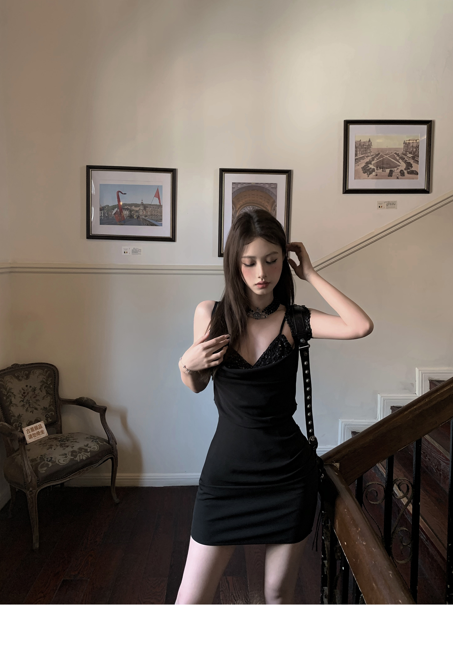 Sequin Swing Collar Camisole Dress - Niche Design Spicy Girl Style