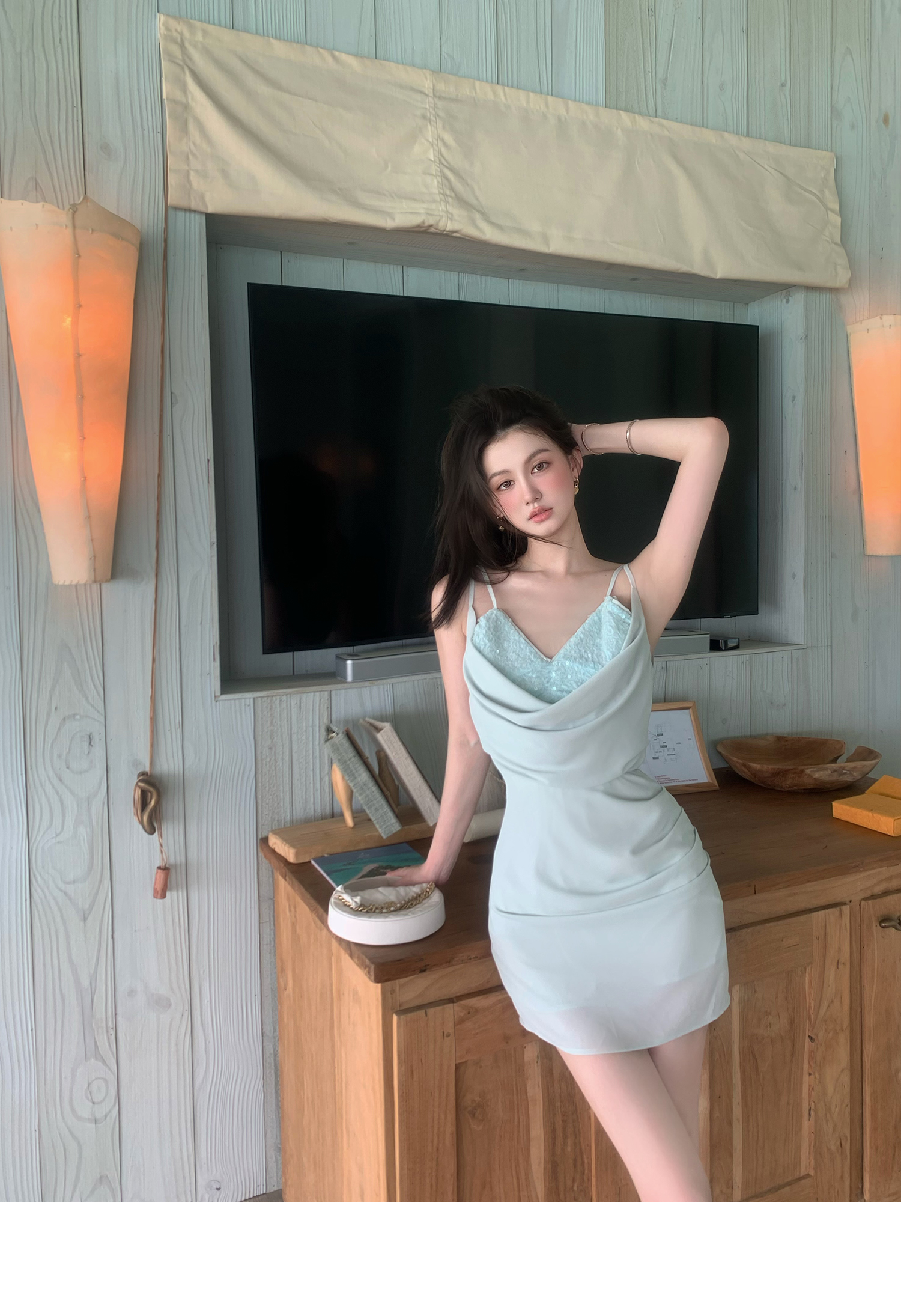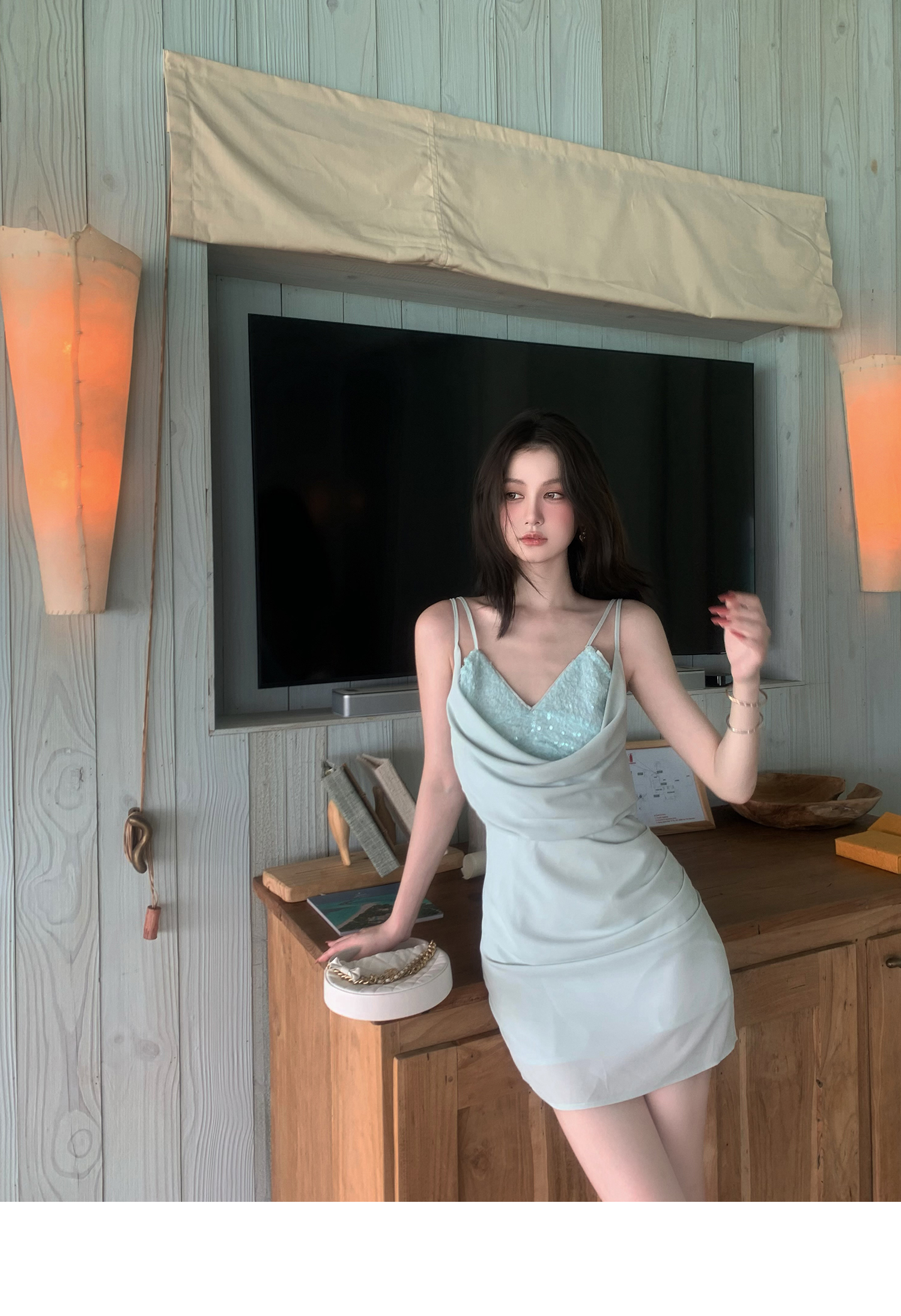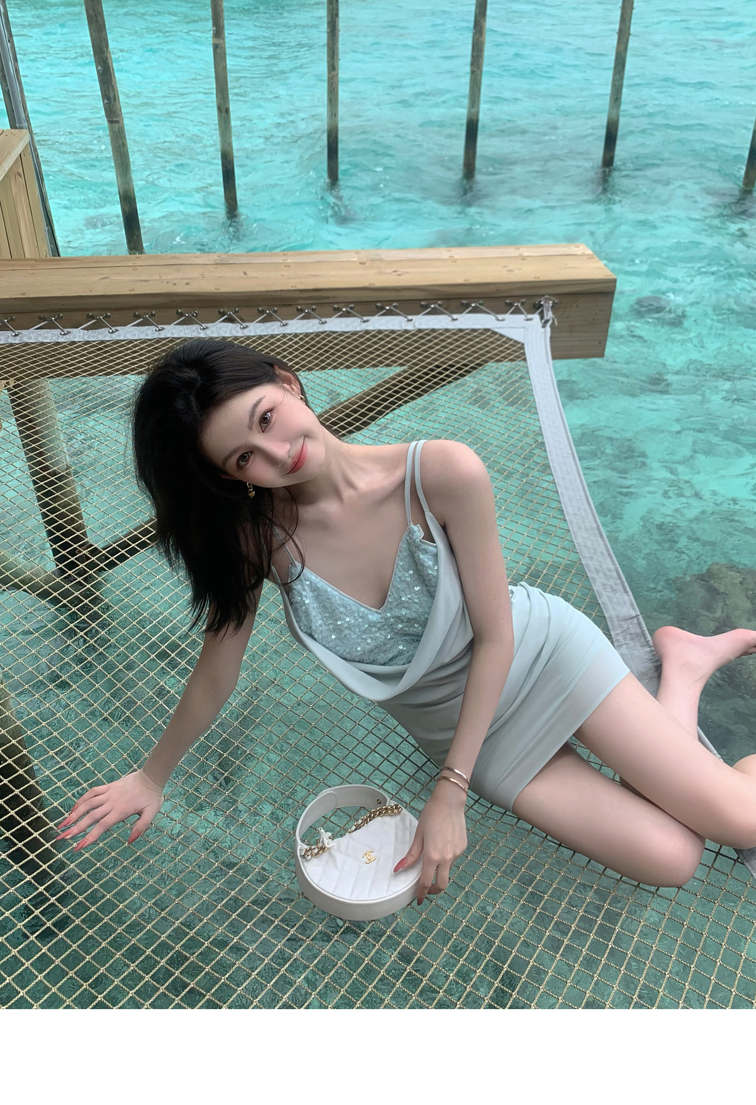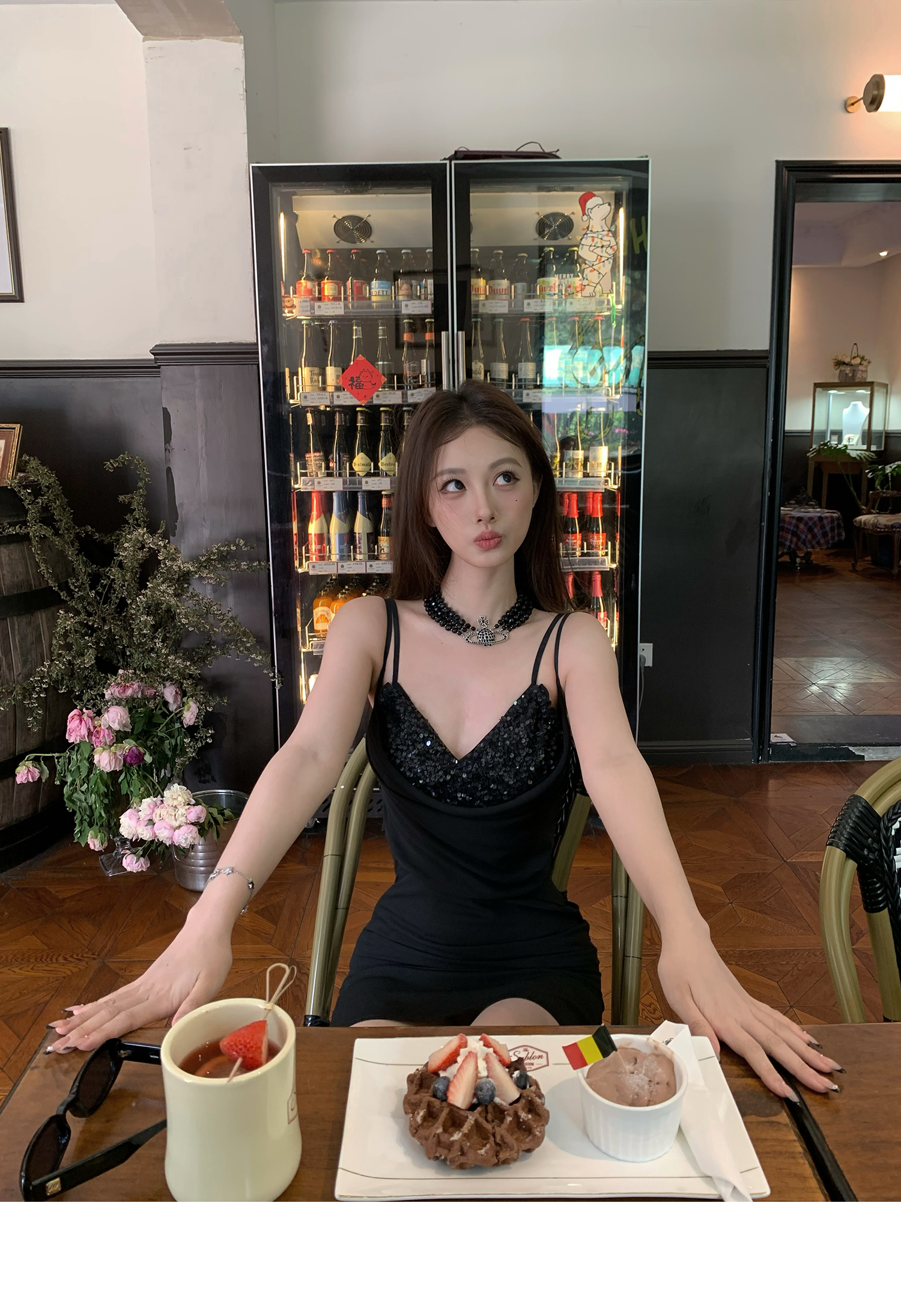 Sequin Swing Collar Camisole Dress - Niche Design Spicy Girl Style