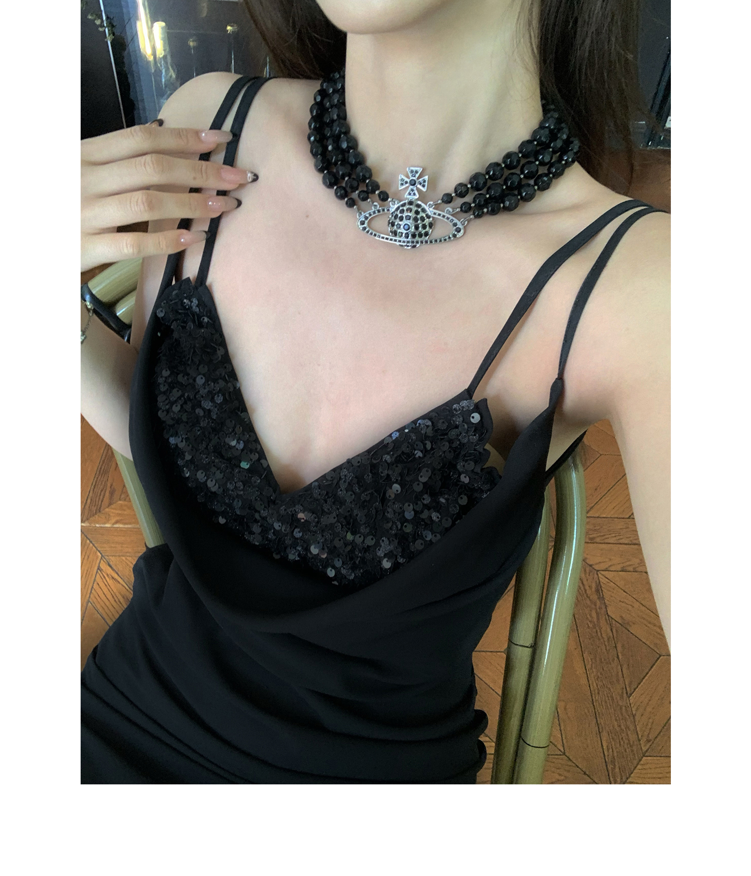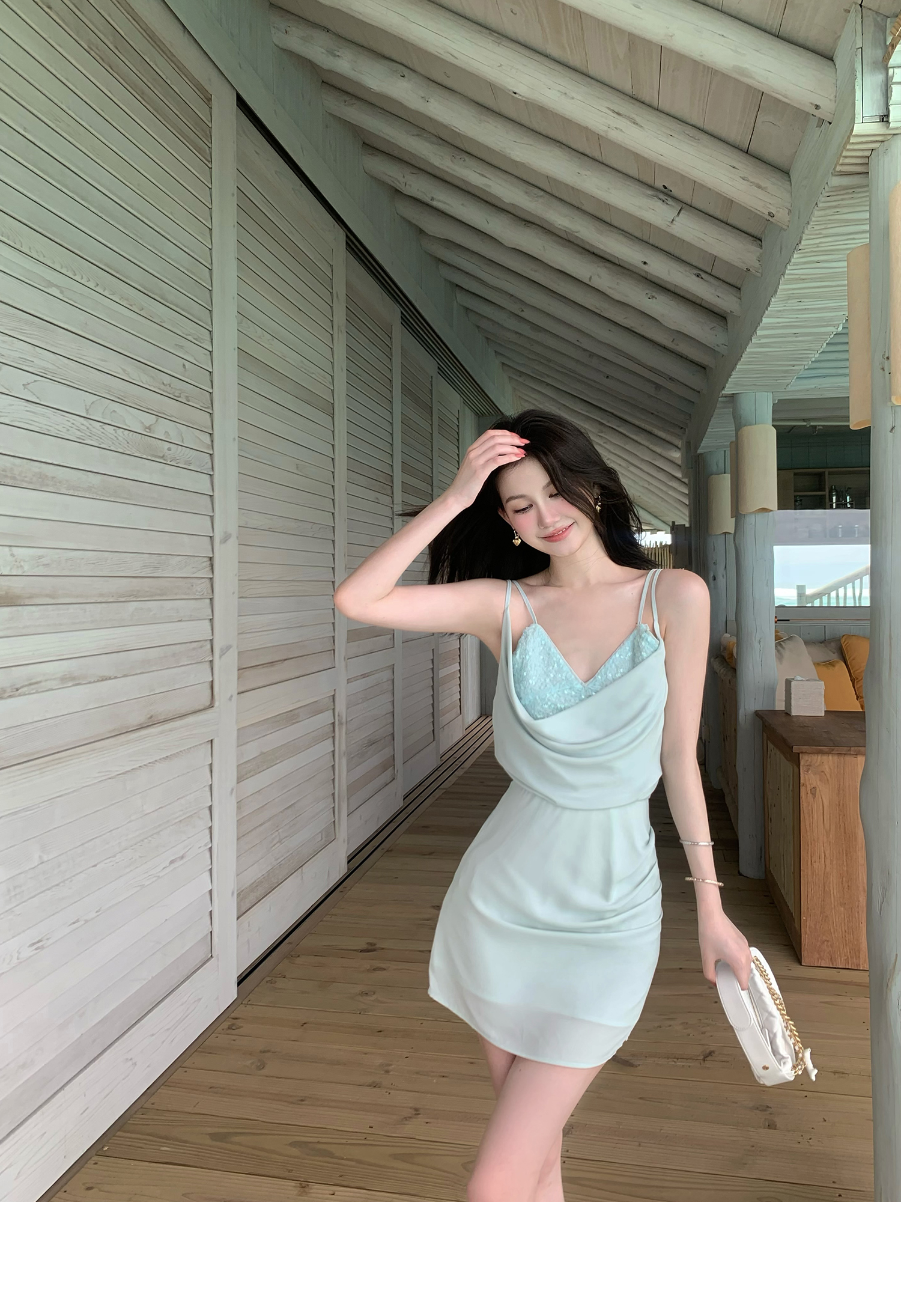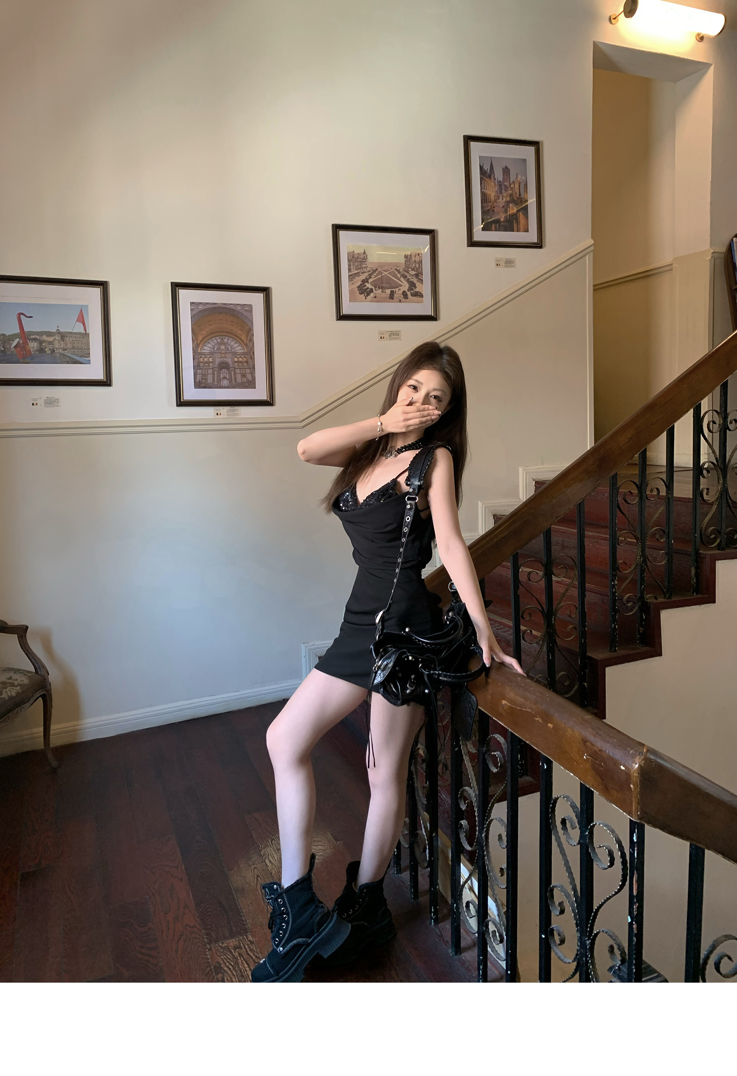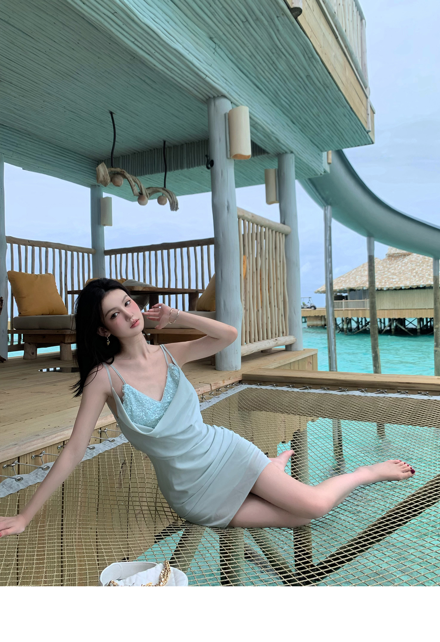 Sequin Swing Collar Camisole Dress - Niche Design Spicy Girl Style
