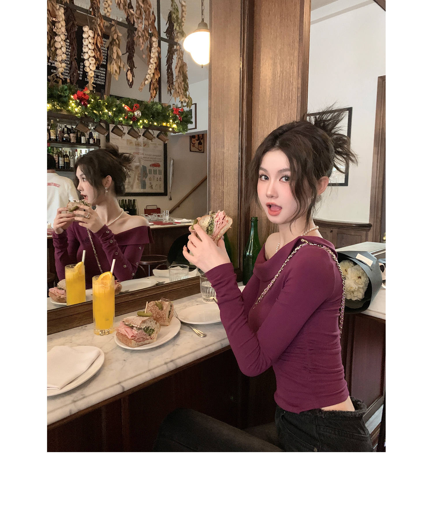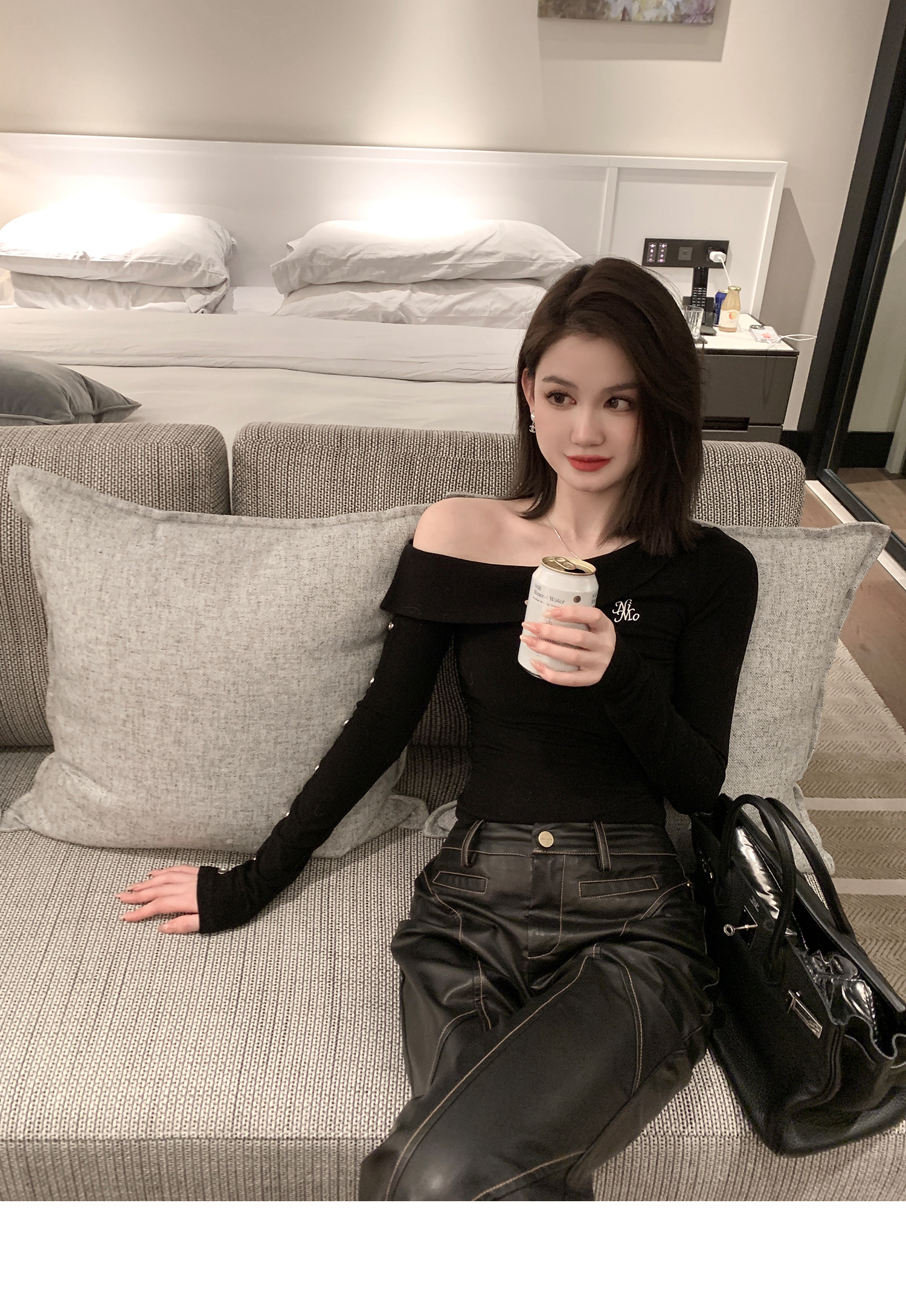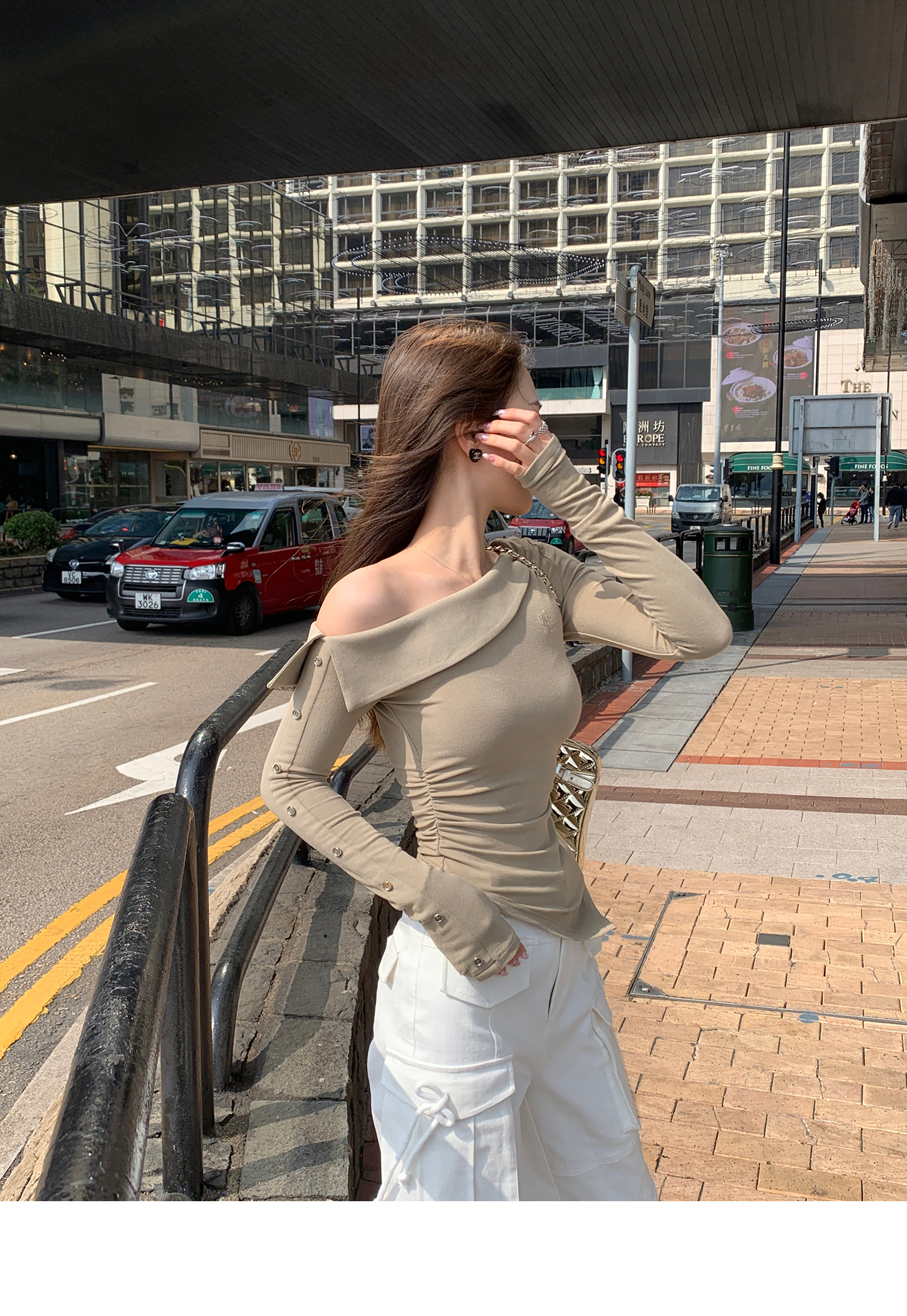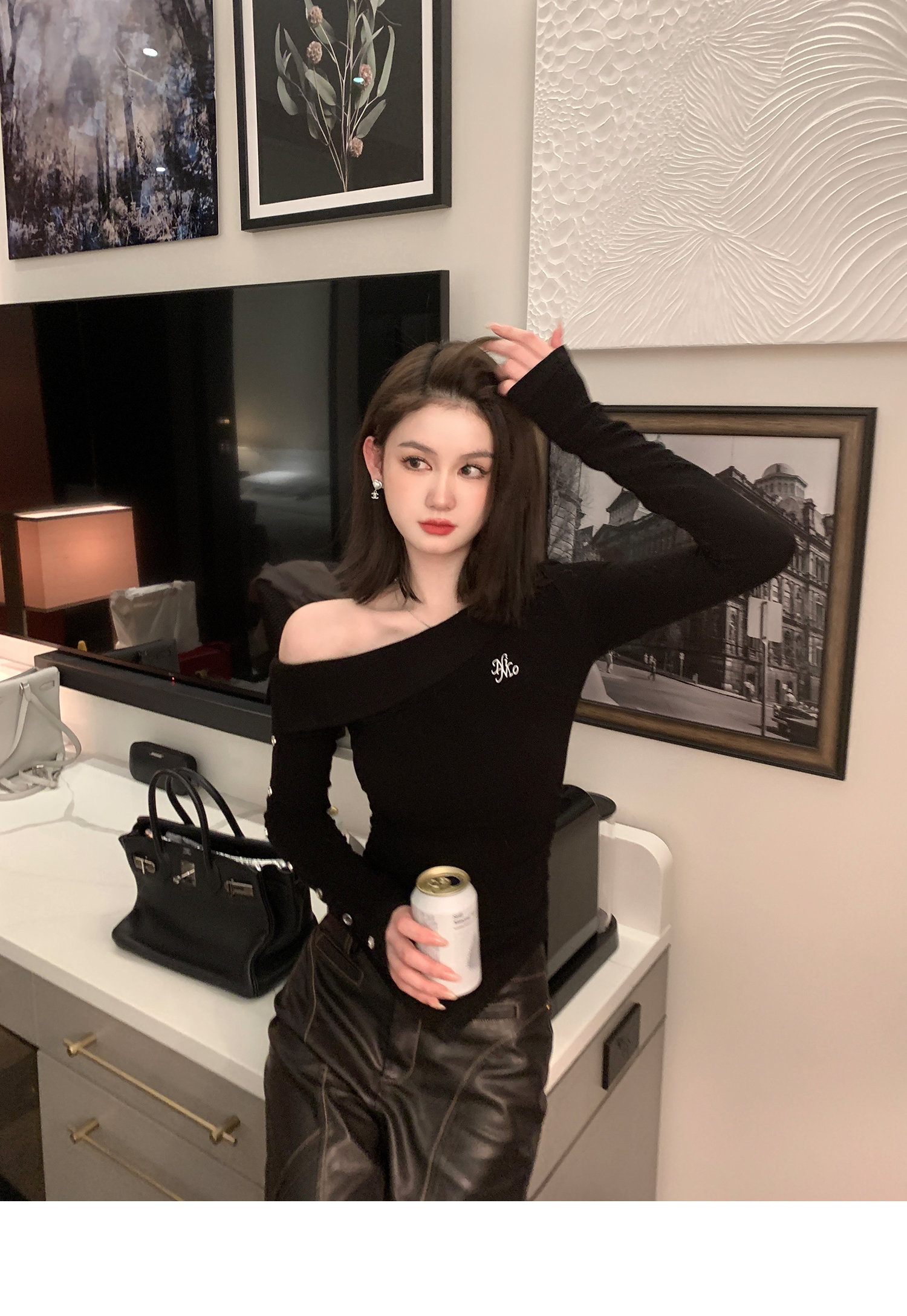 [Collarbone Killer] Asymmetrical Slim-Fit Spicy Girl T-Shirt