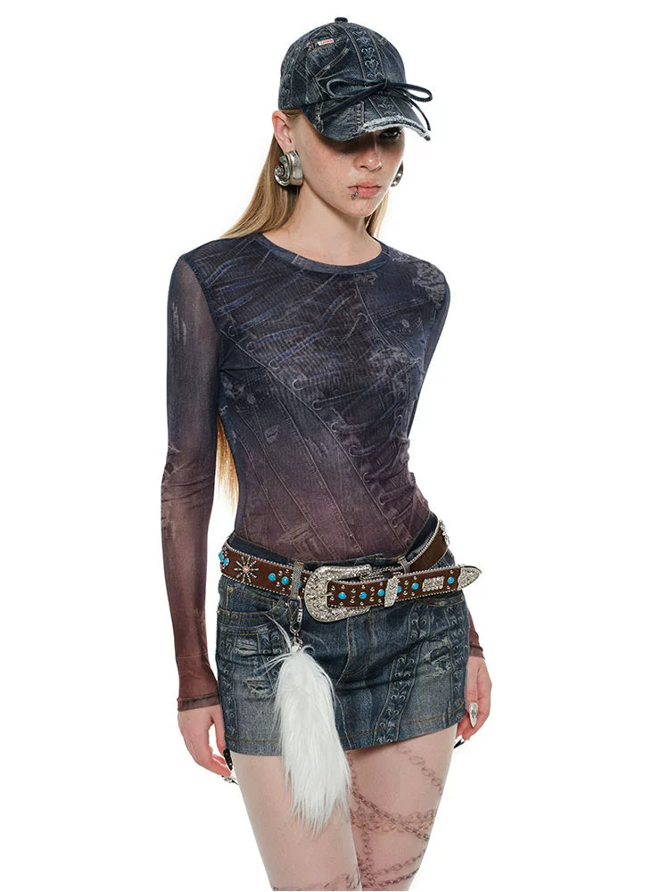 Washed Denim Hip Skirt – Slightly Stretchy Vintage Design