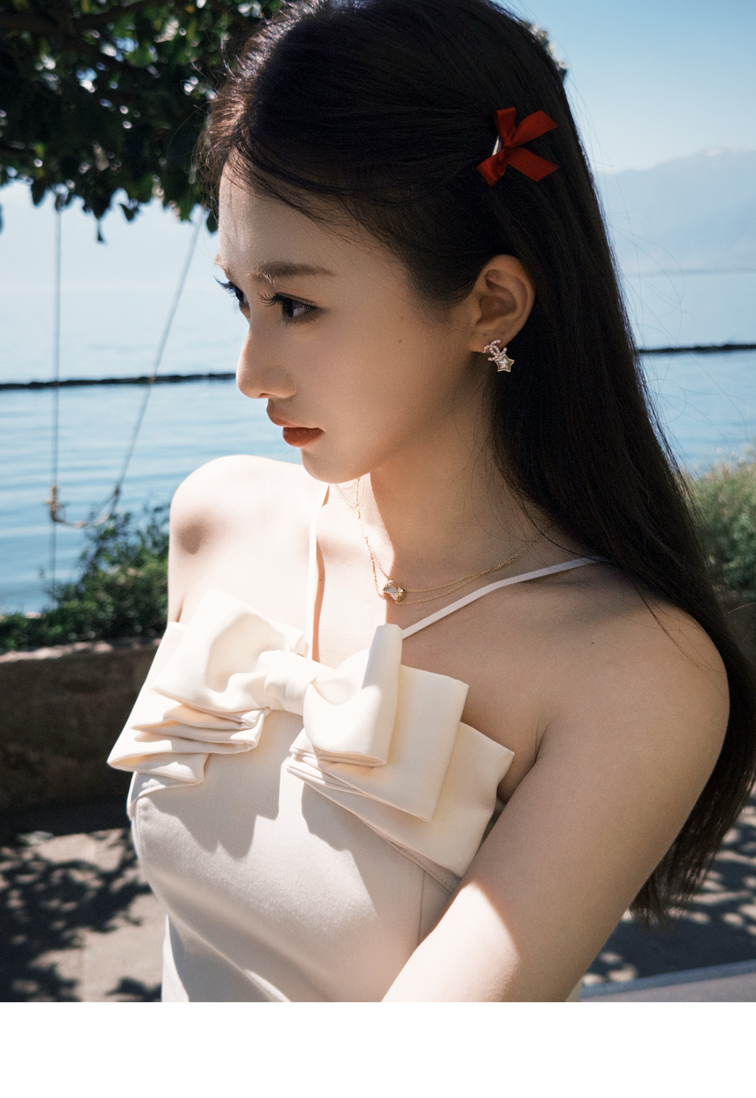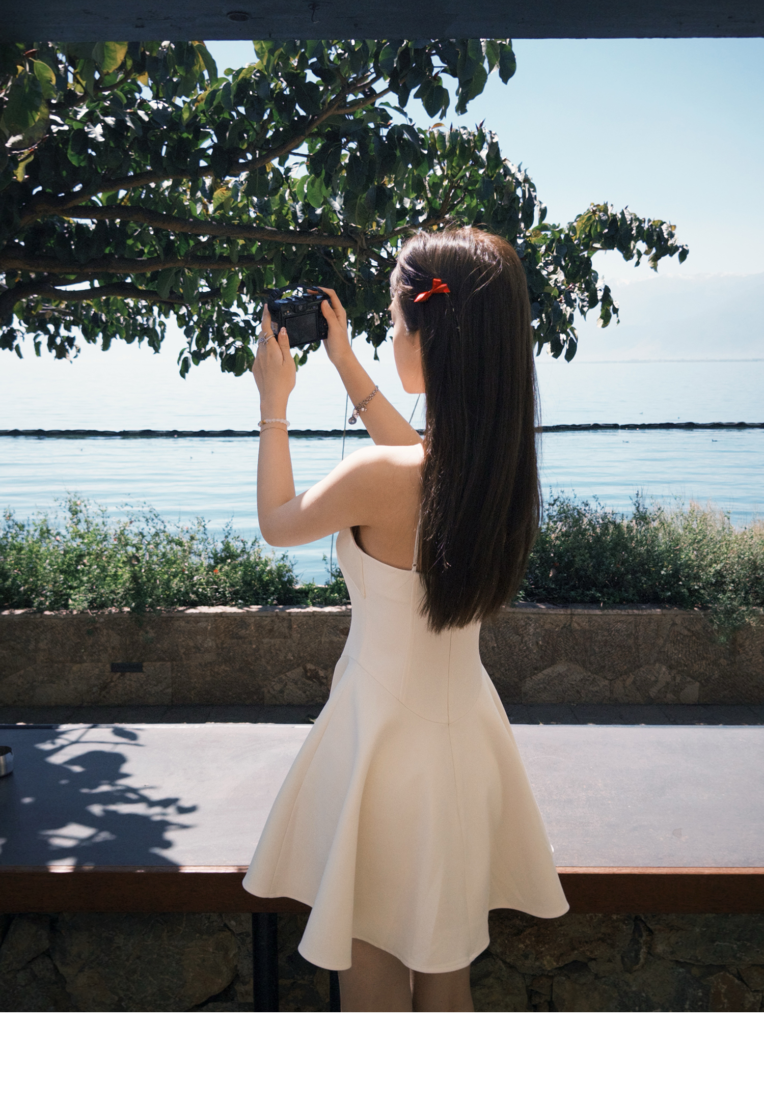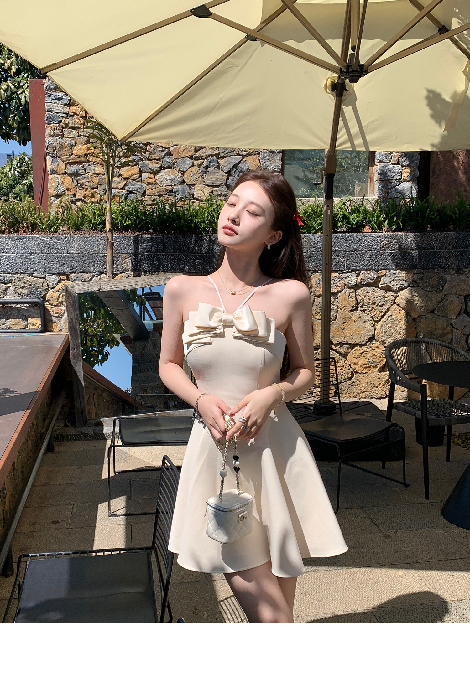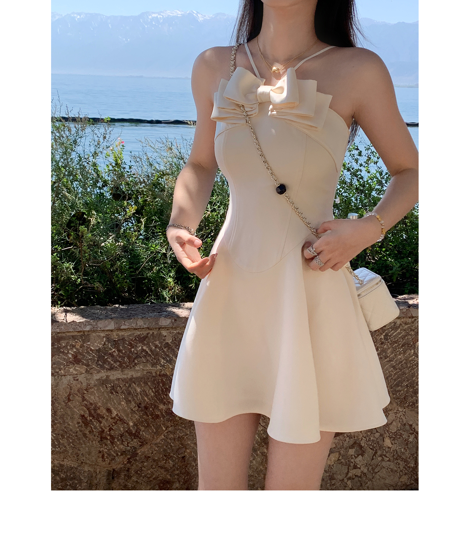 Wealthy Lady White Spicy Girl Dress with Waist Bow - Summer Style