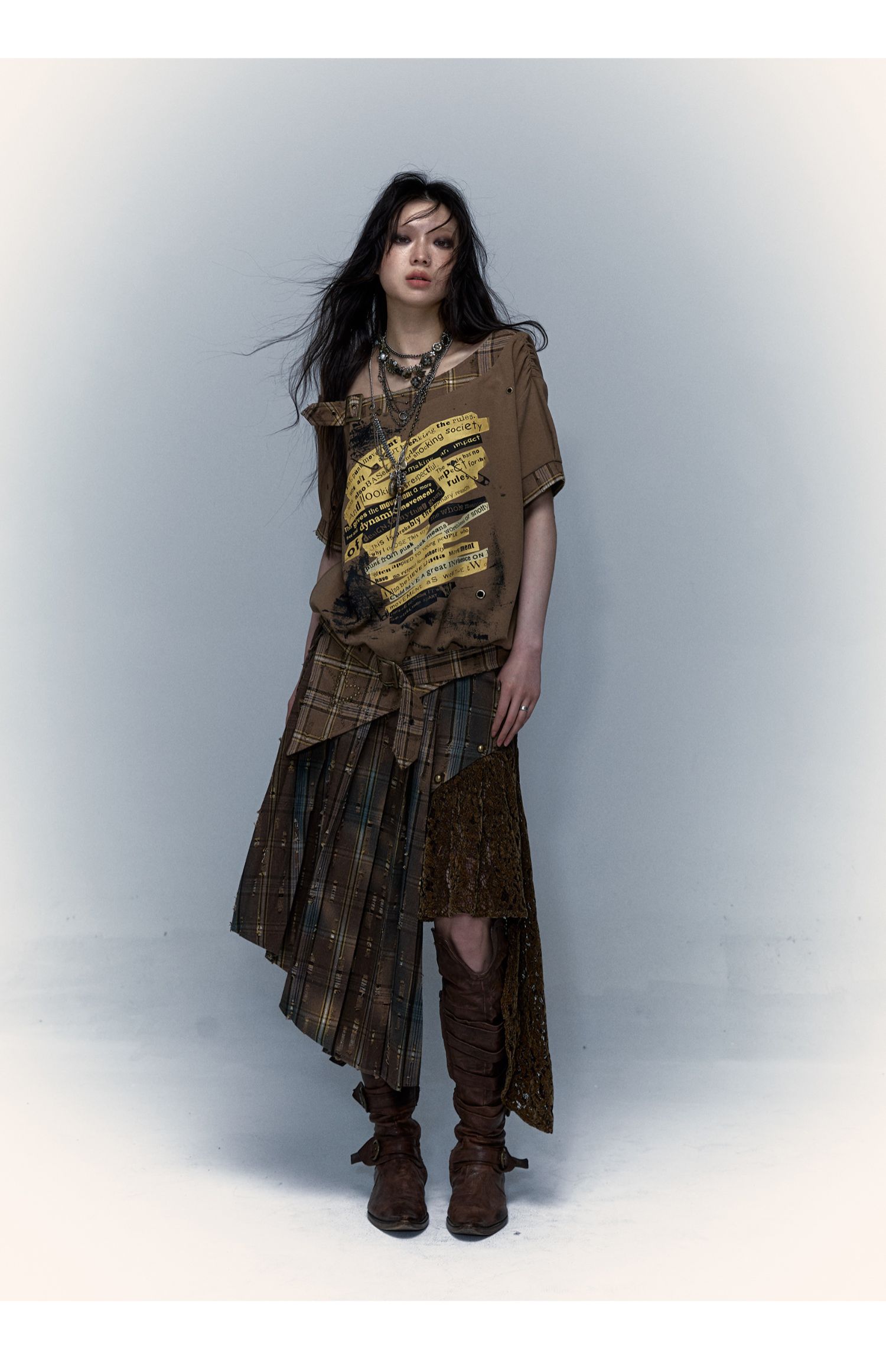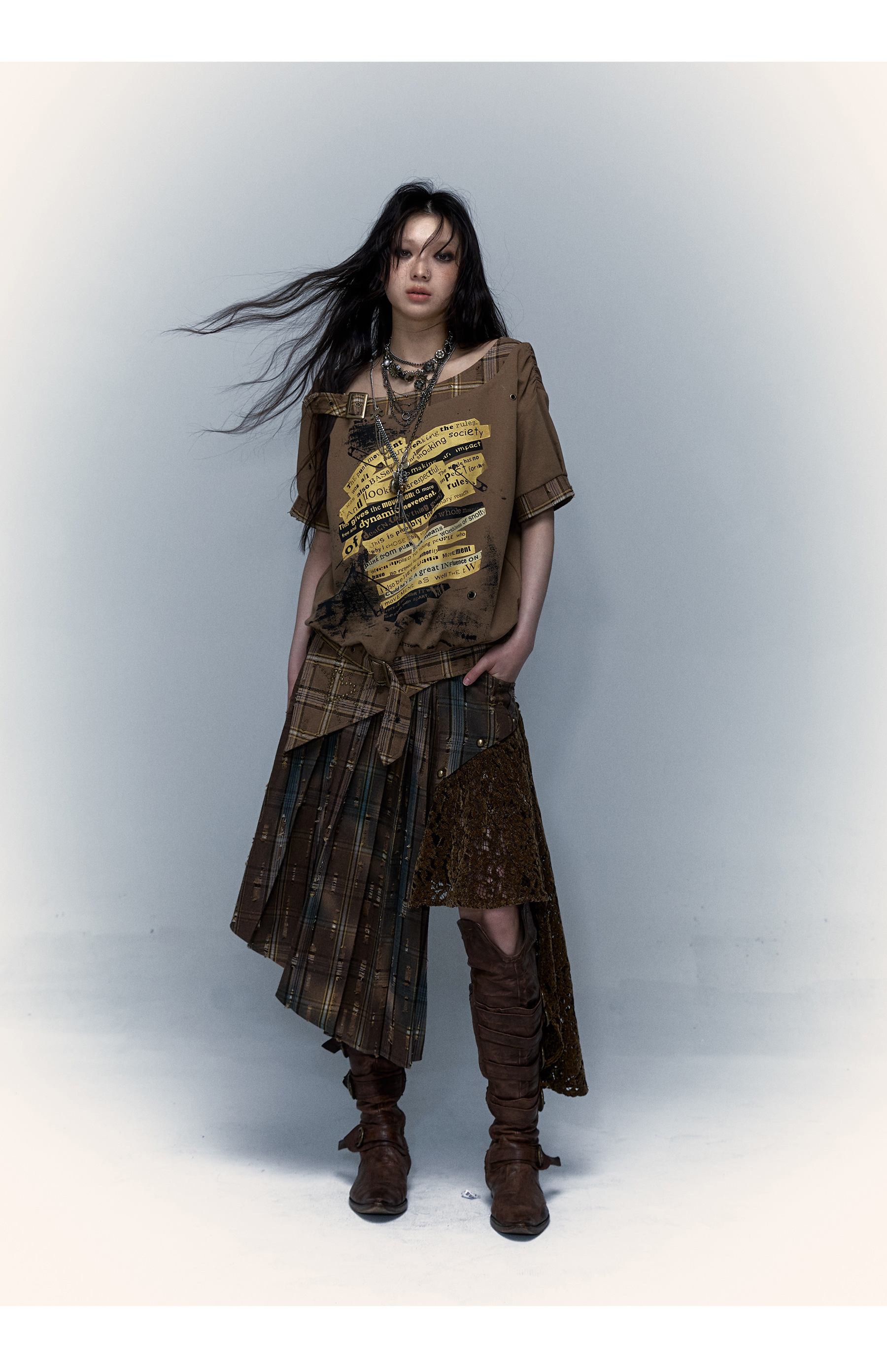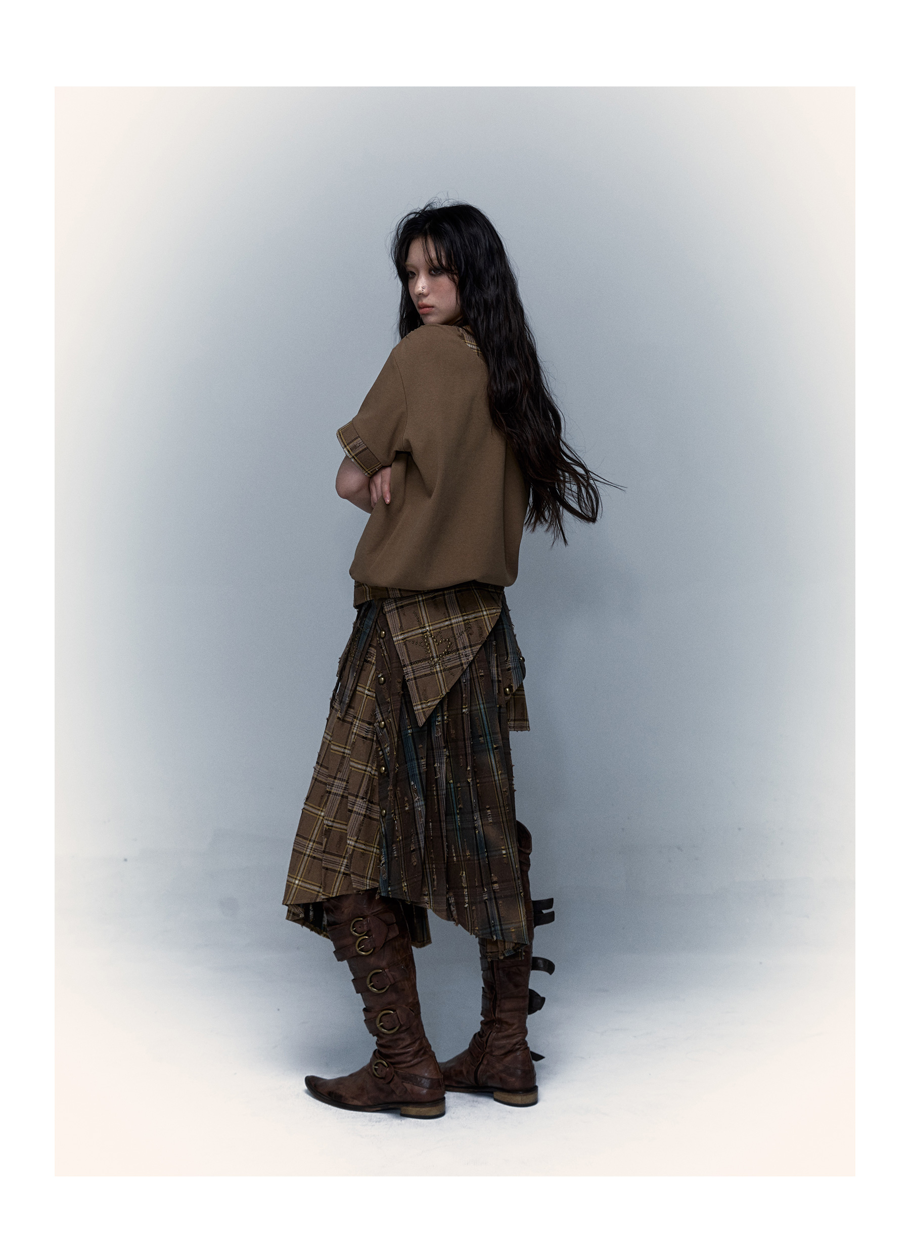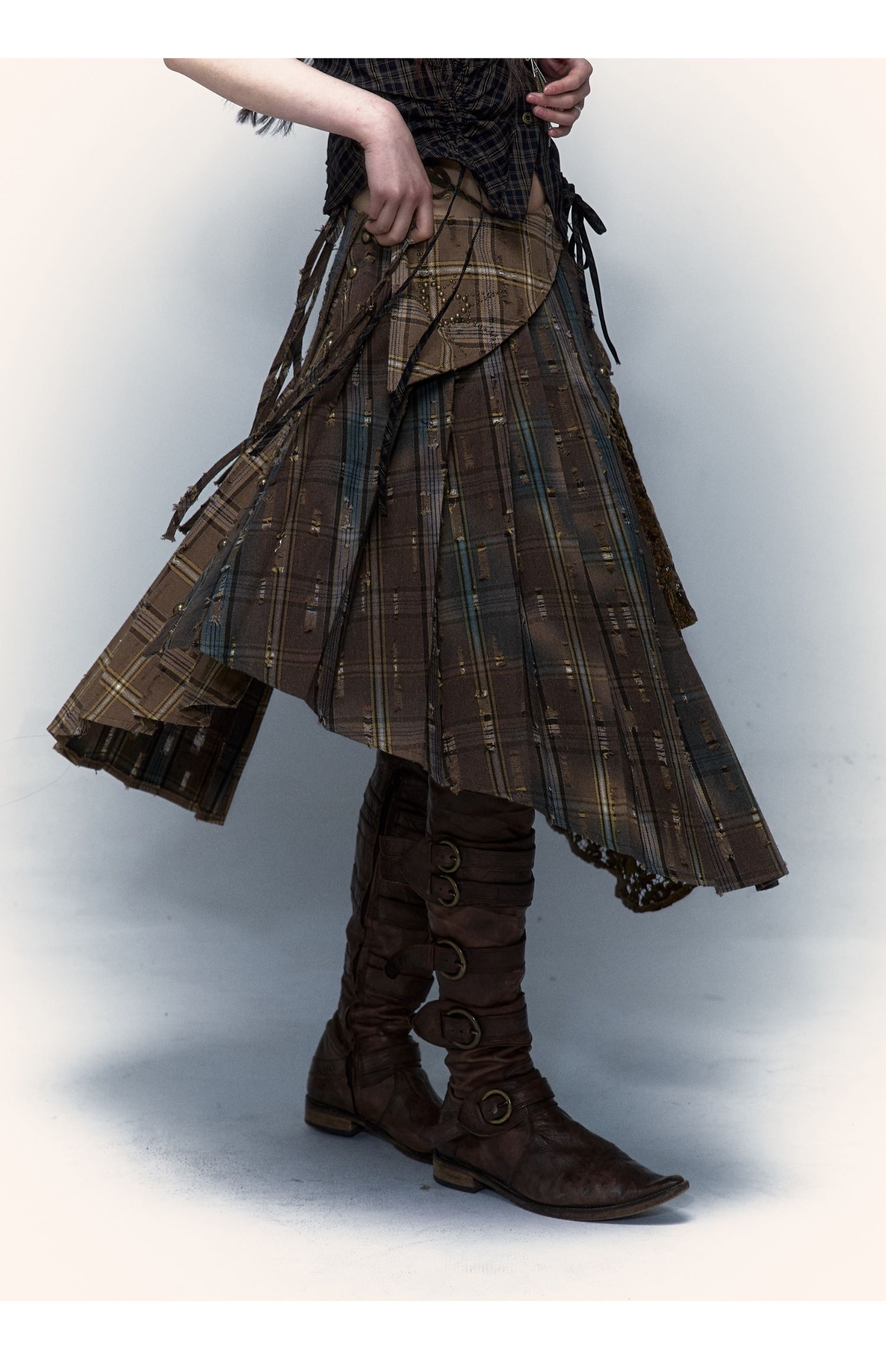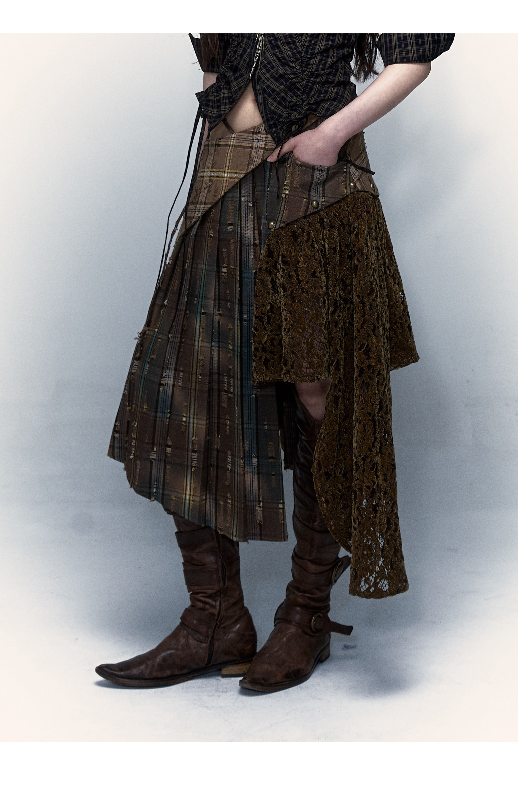 Irregular Pleated Skirt | Detachable Double-Wear Wilderness Punk Design