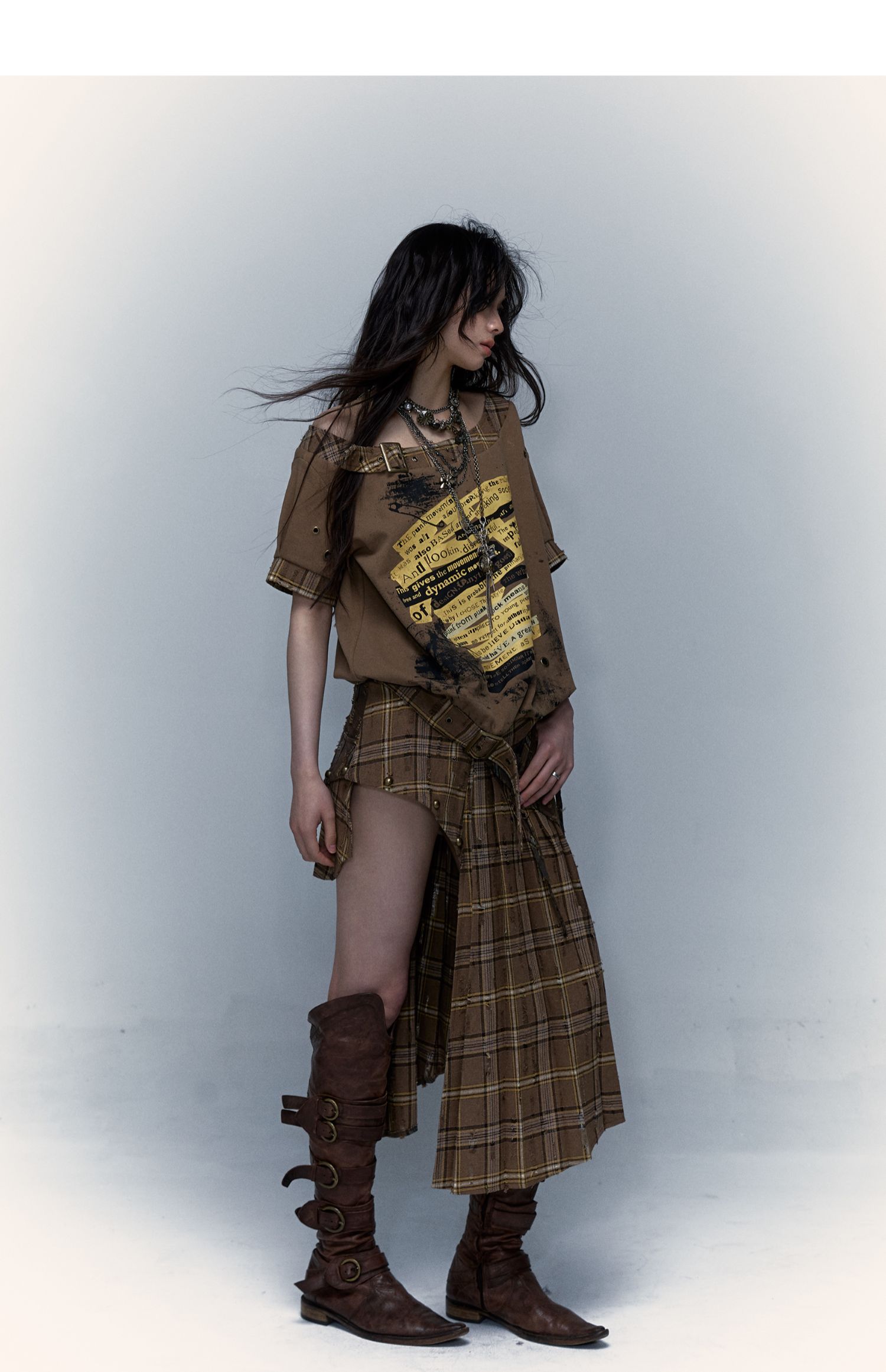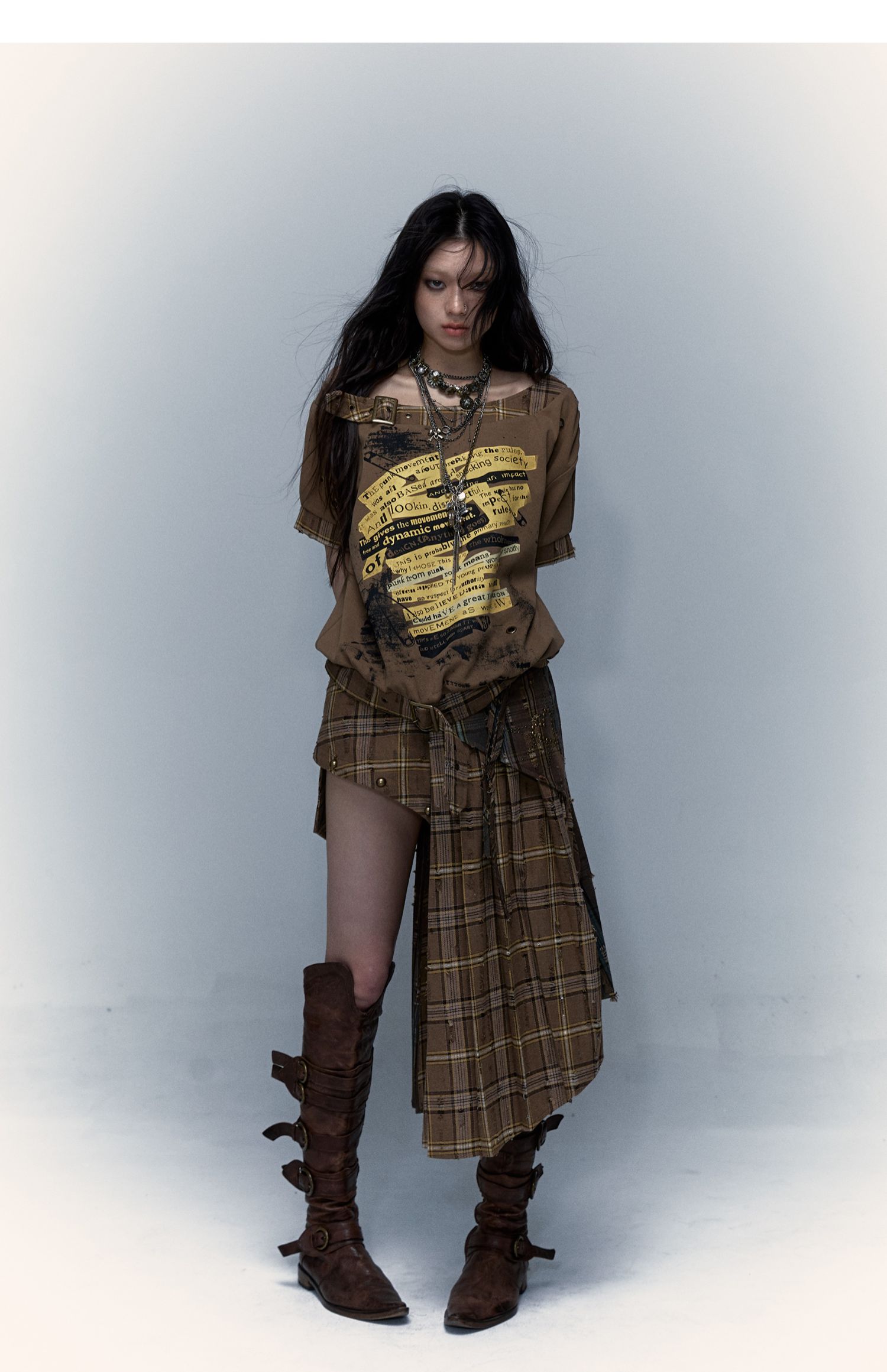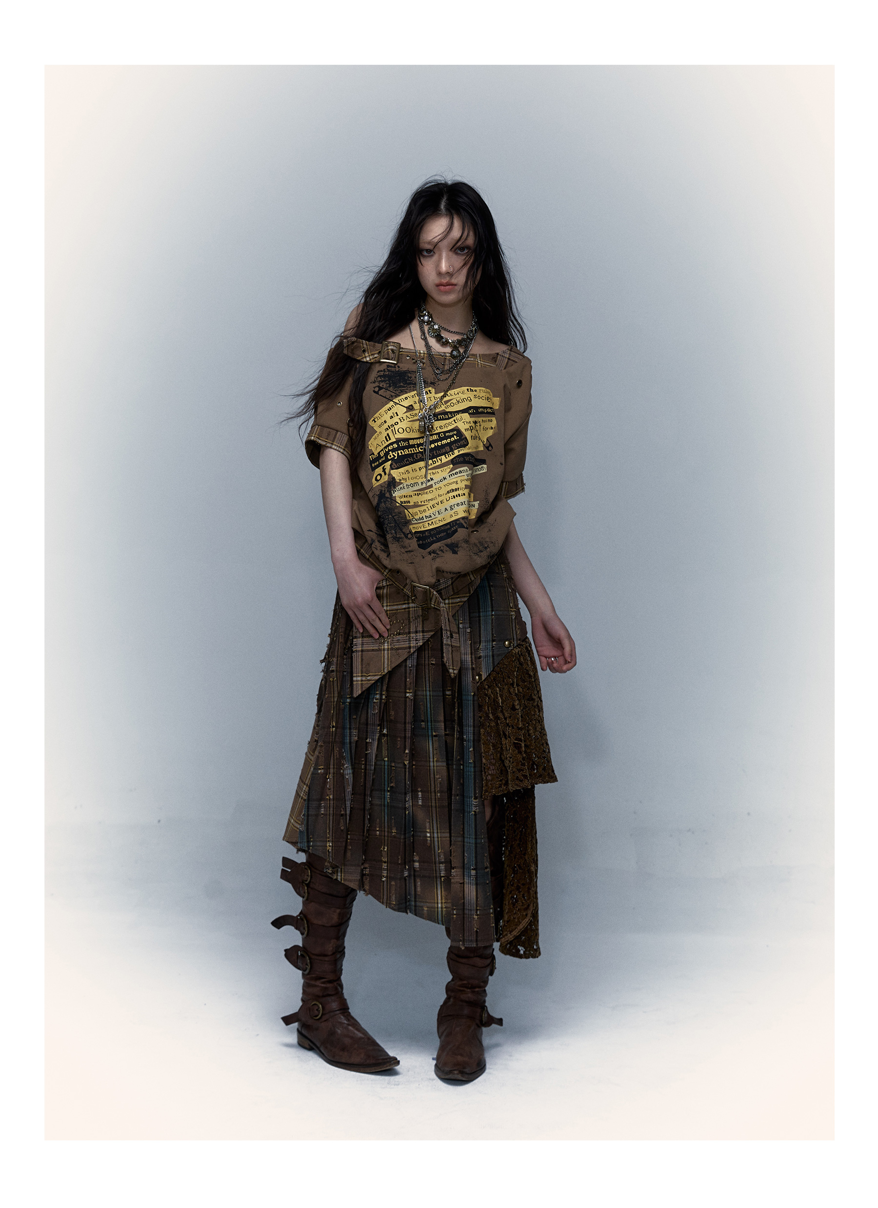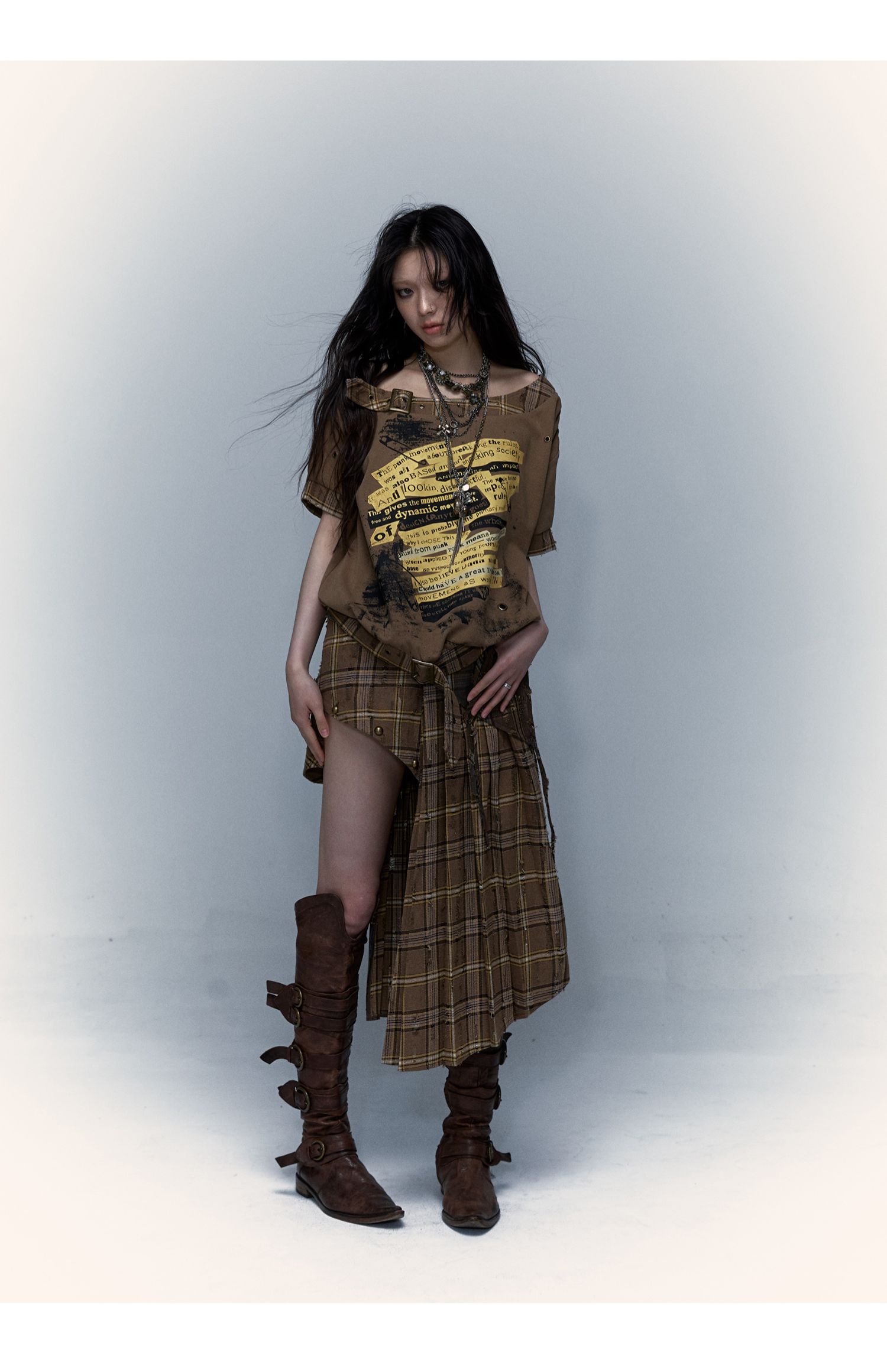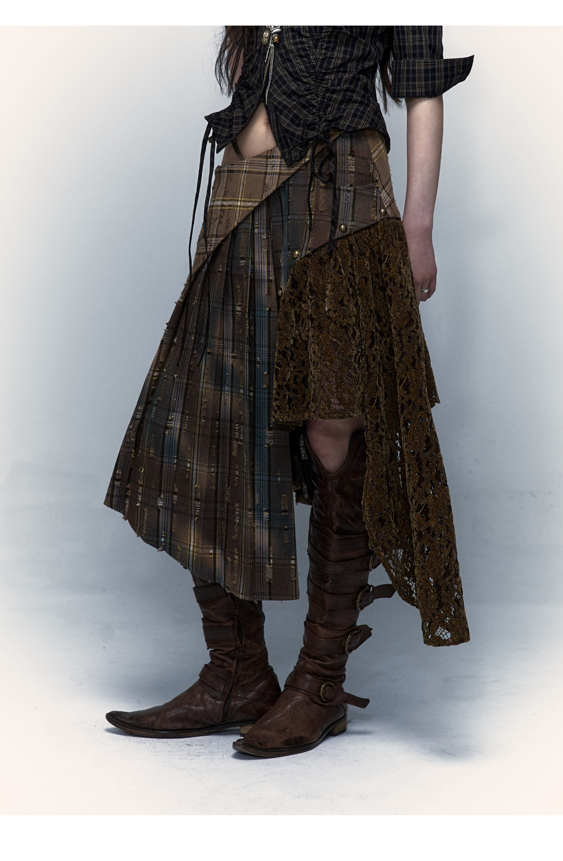 Irregular Pleated Skirt | Detachable Double-Wear Wilderness Punk Design