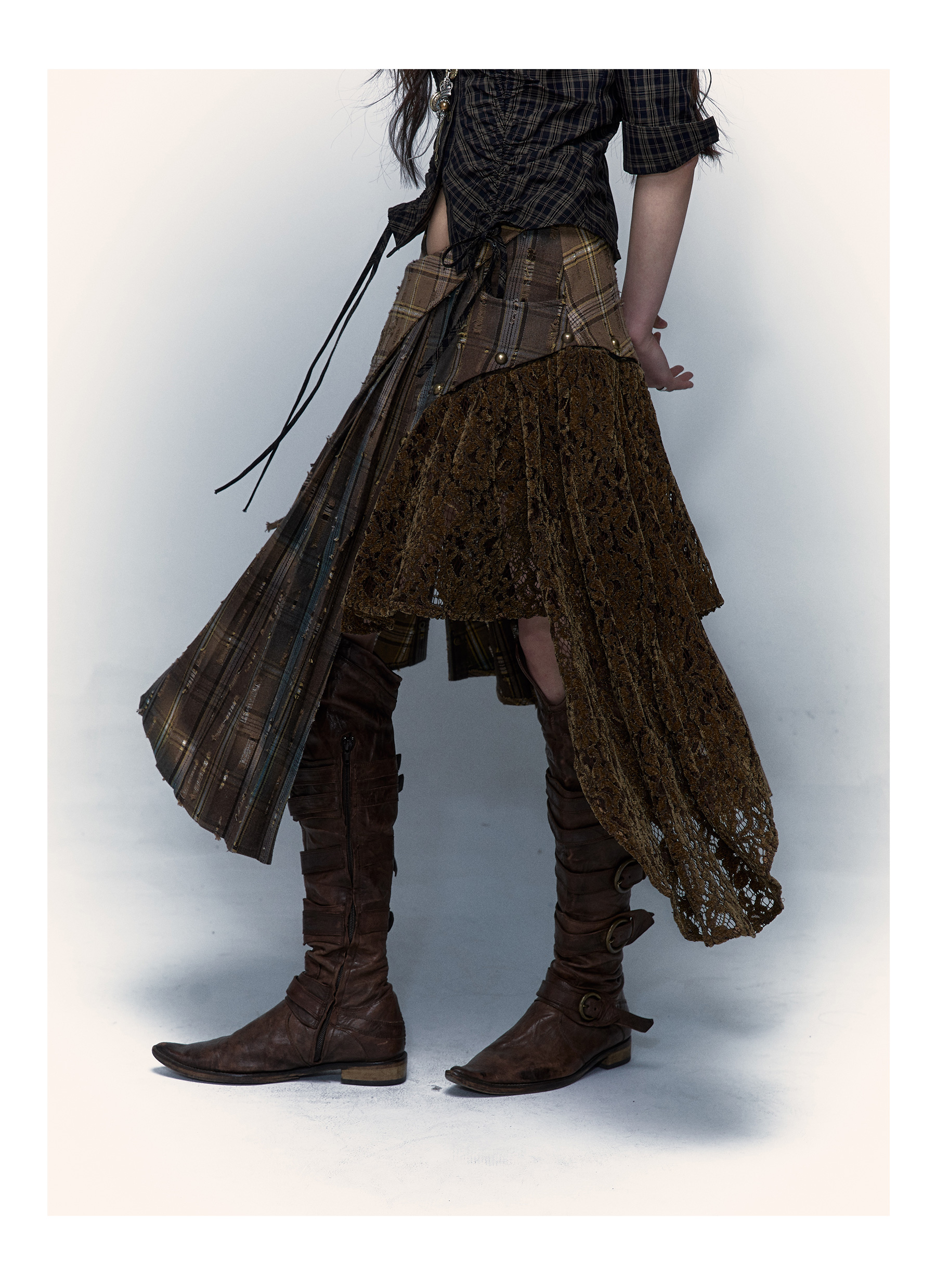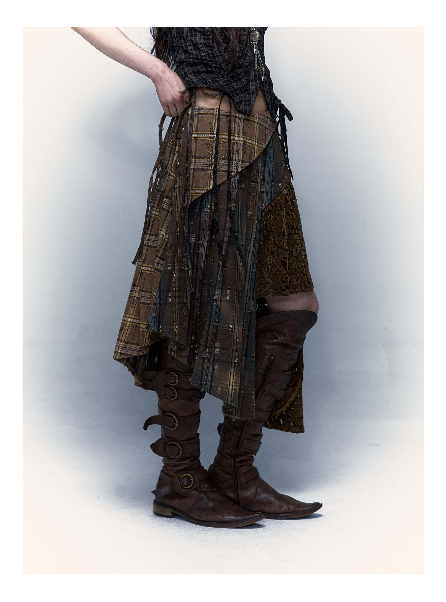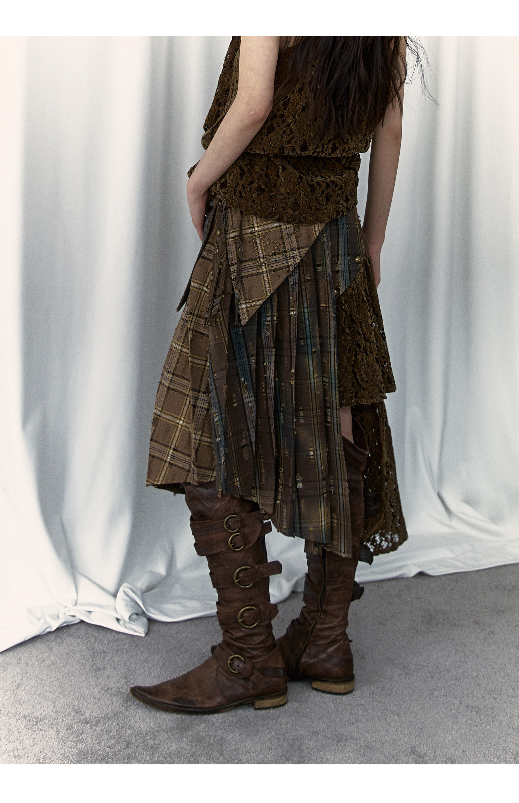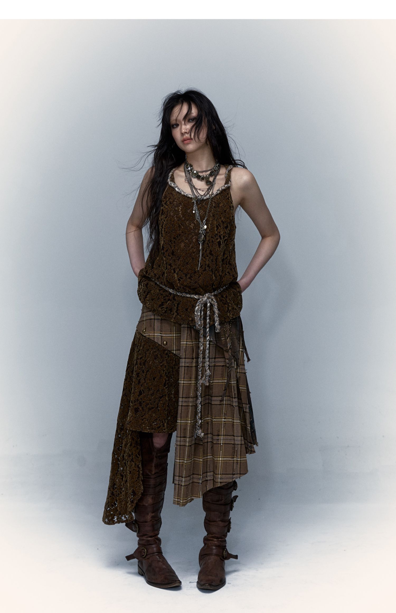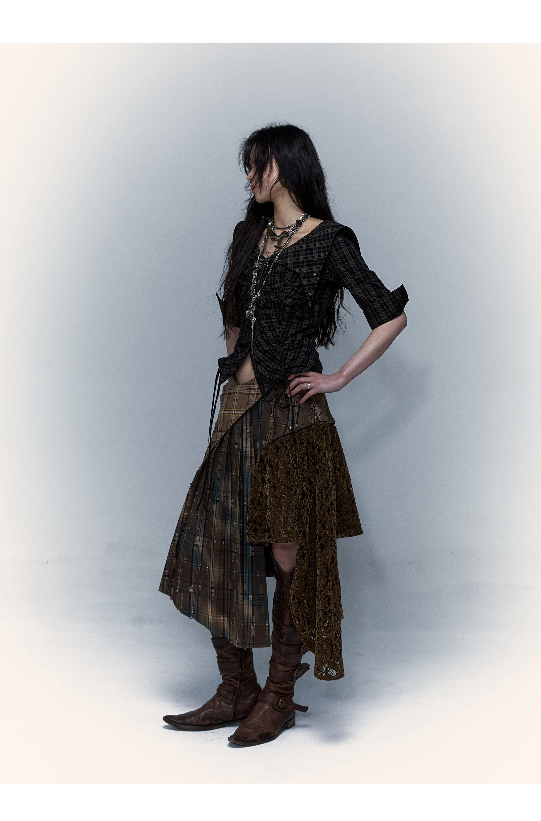 Irregular Pleated Skirt | Detachable Double-Wear Wilderness Punk Design
