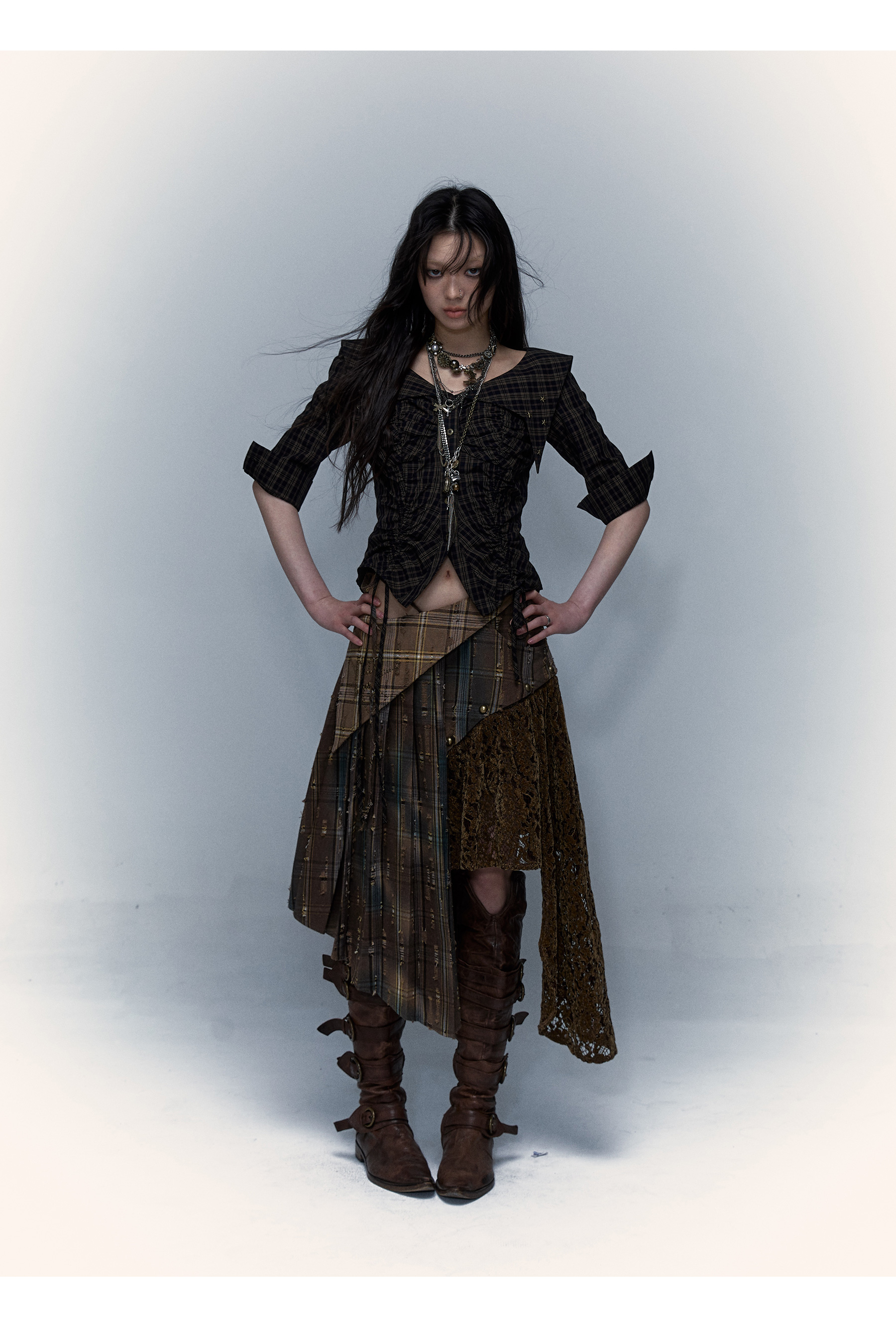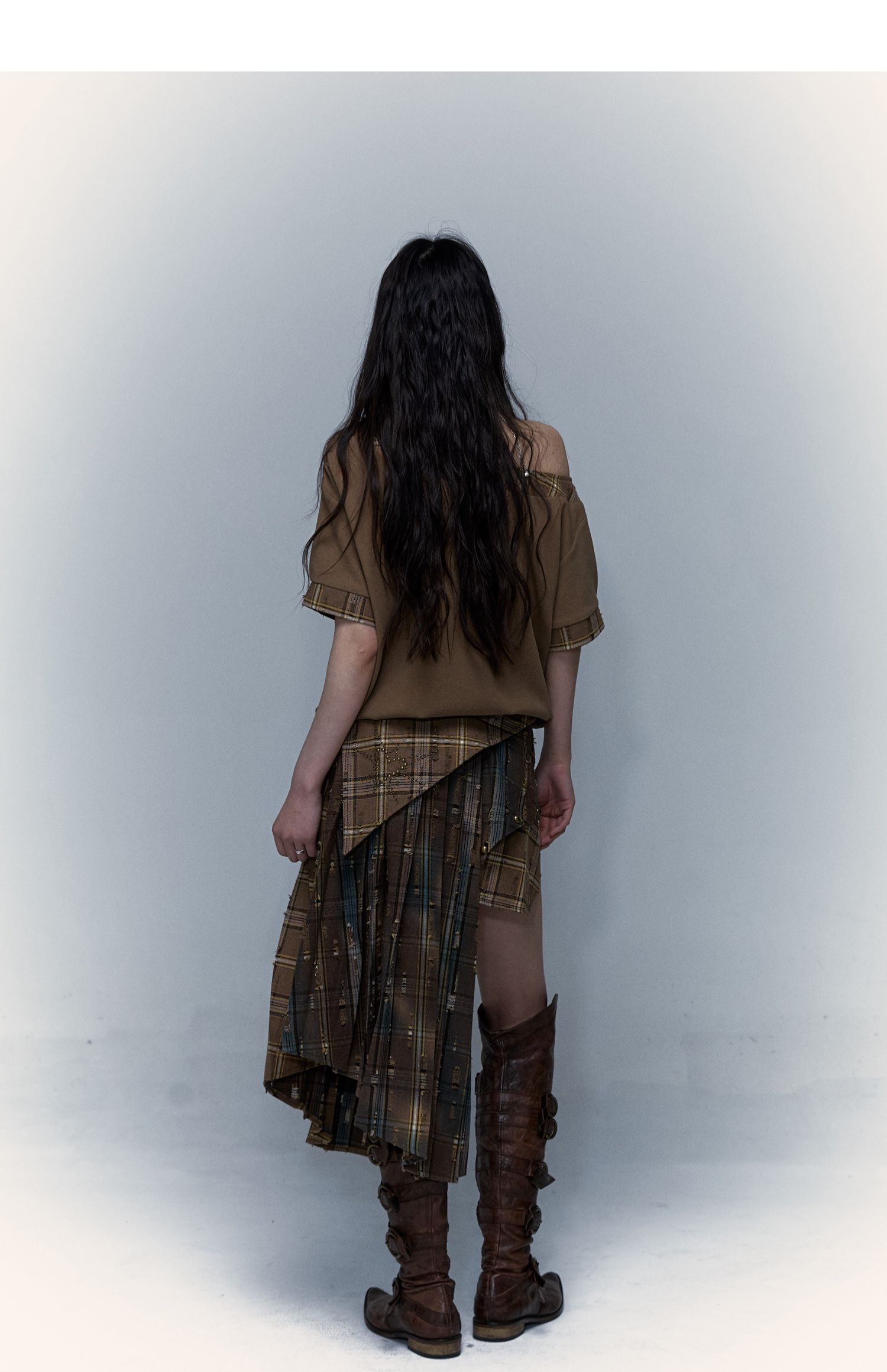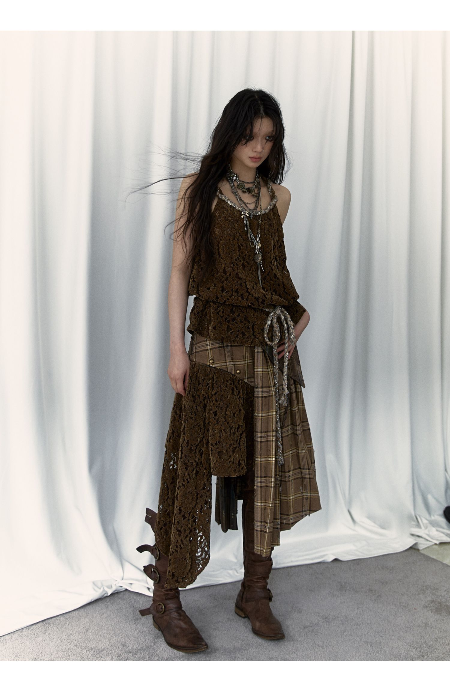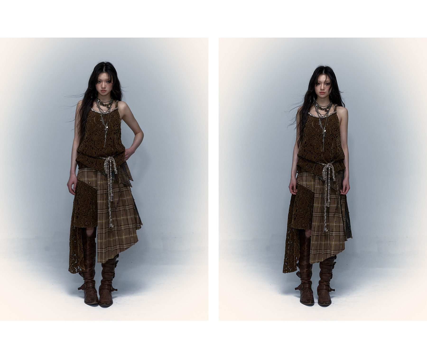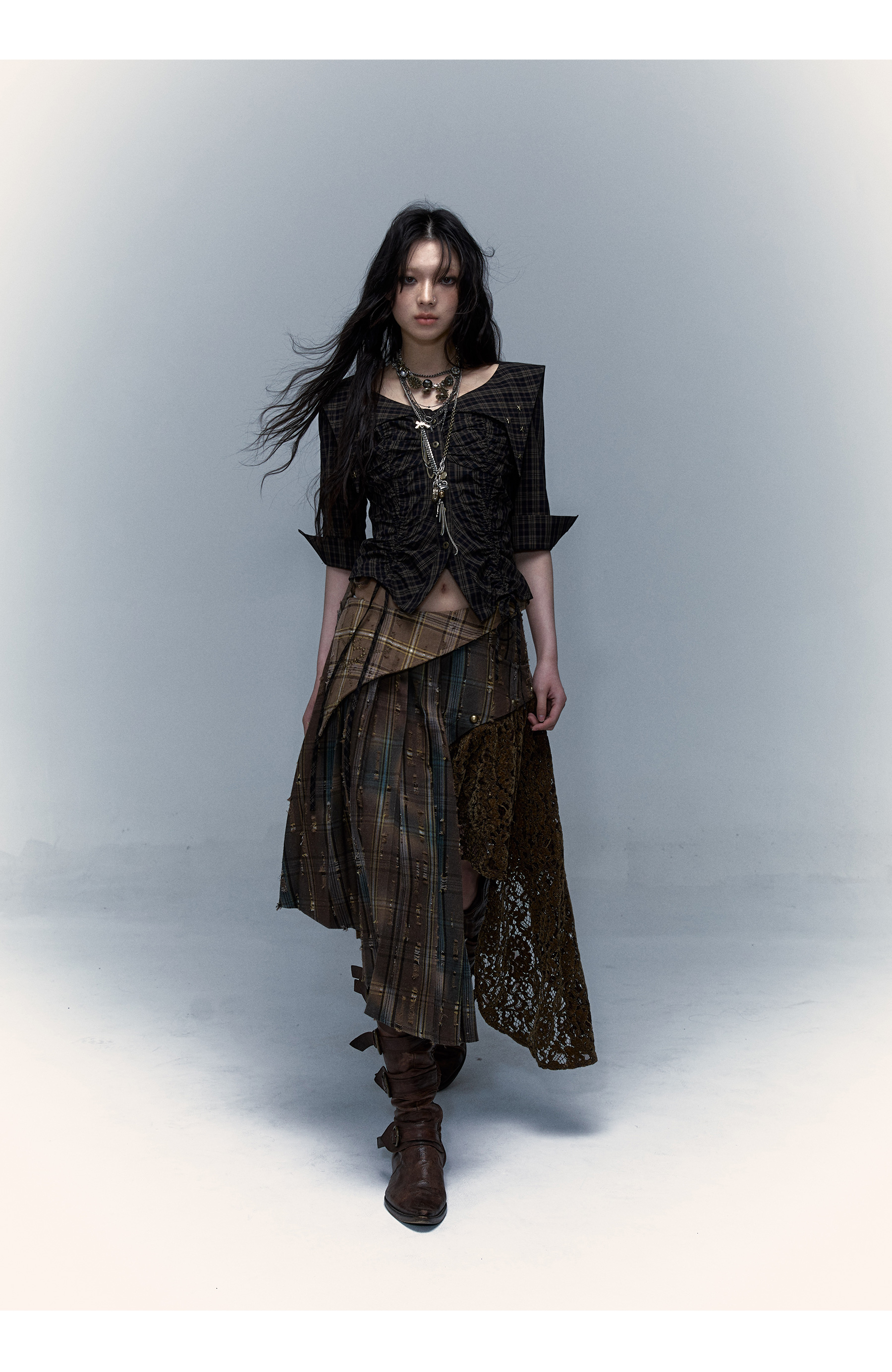 Irregular Pleated Skirt | Detachable Double-Wear Wilderness Punk Design