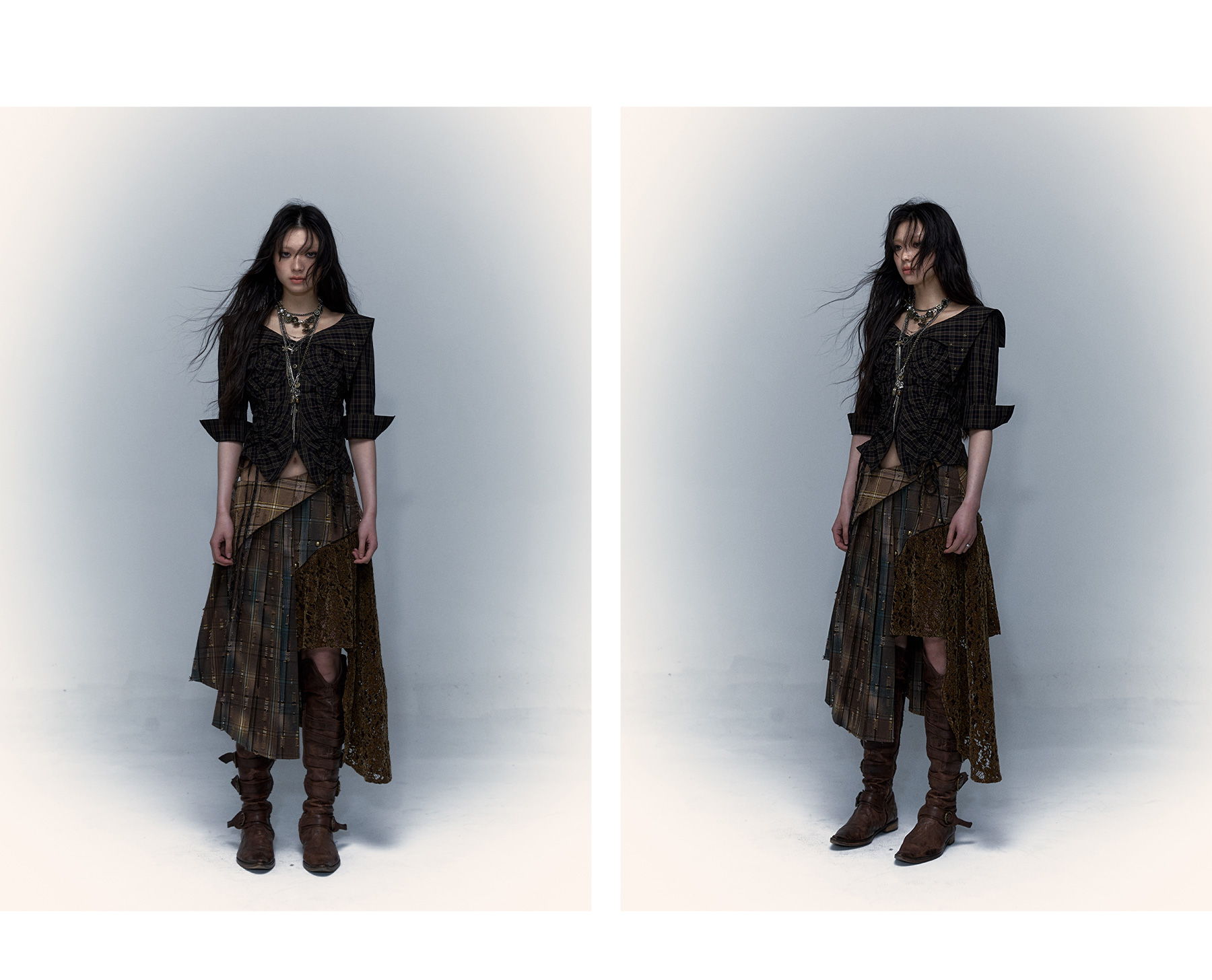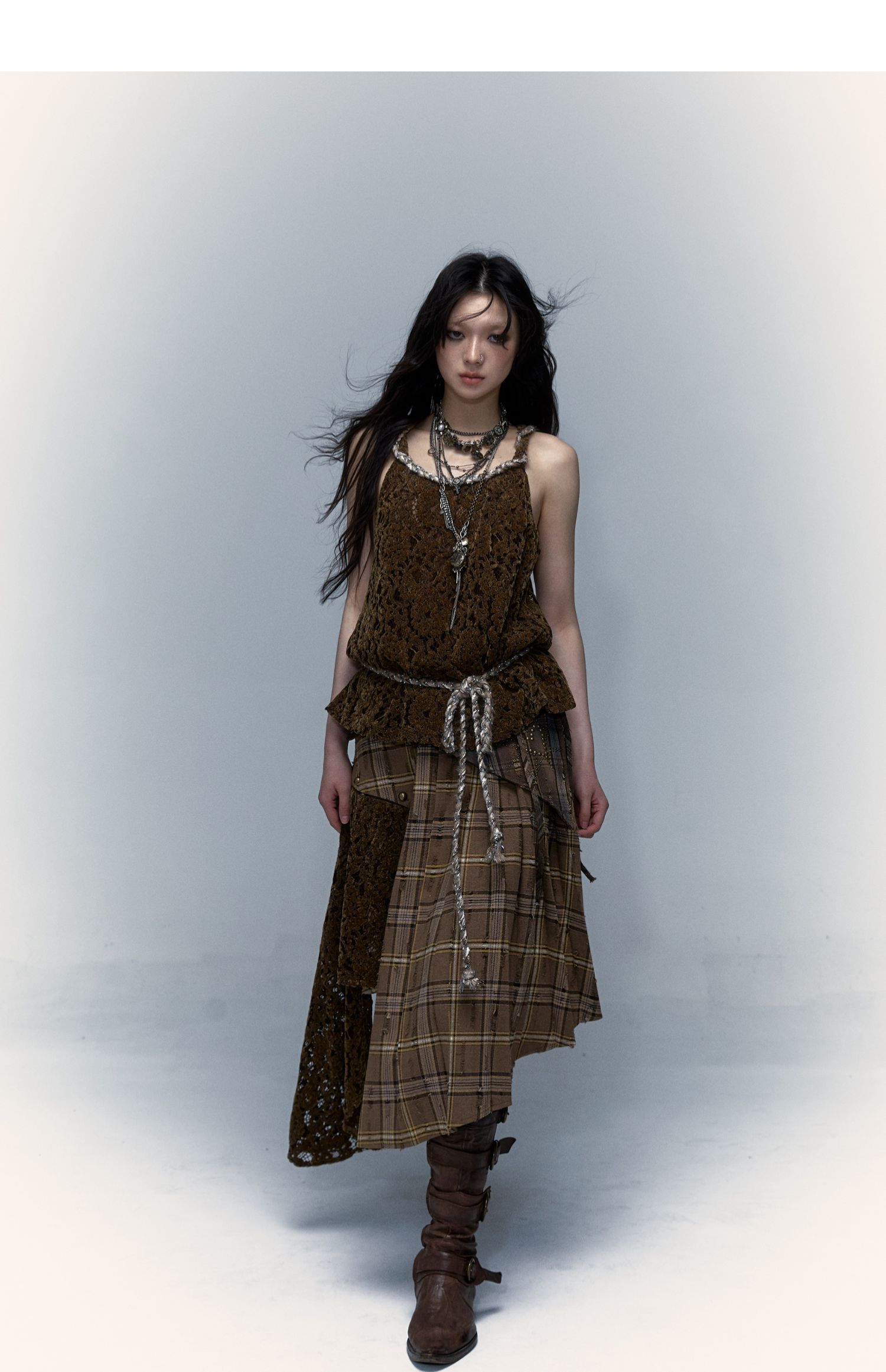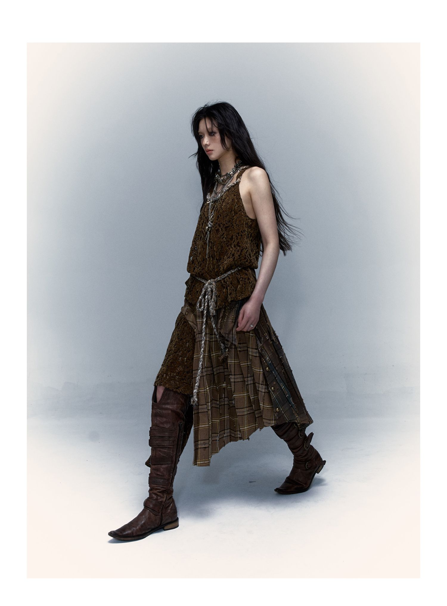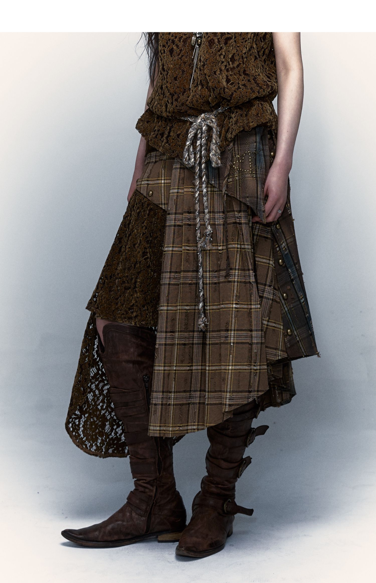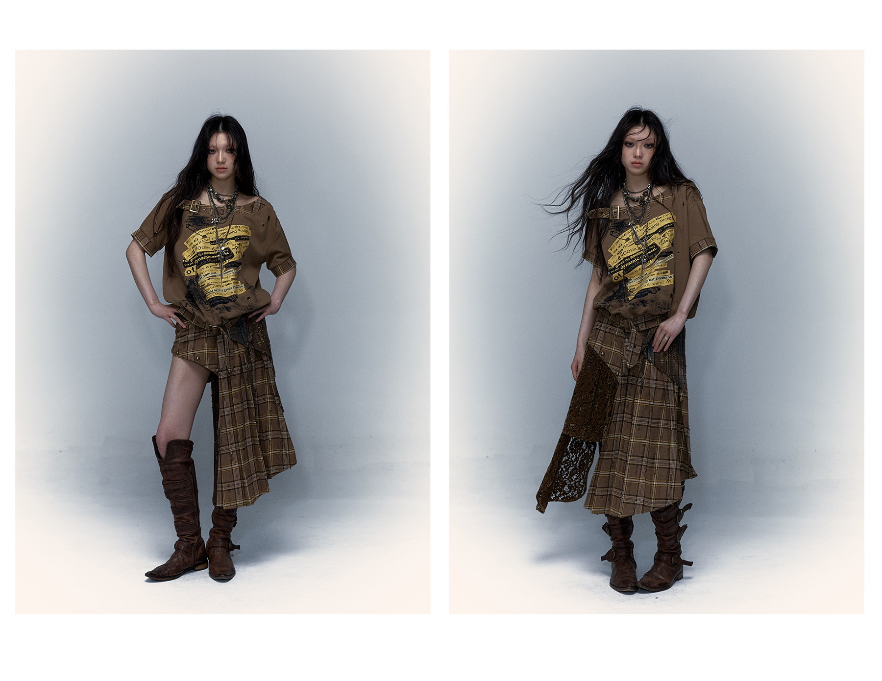 Irregular Pleated Skirt | Detachable Double-Wear Wilderness Punk Design