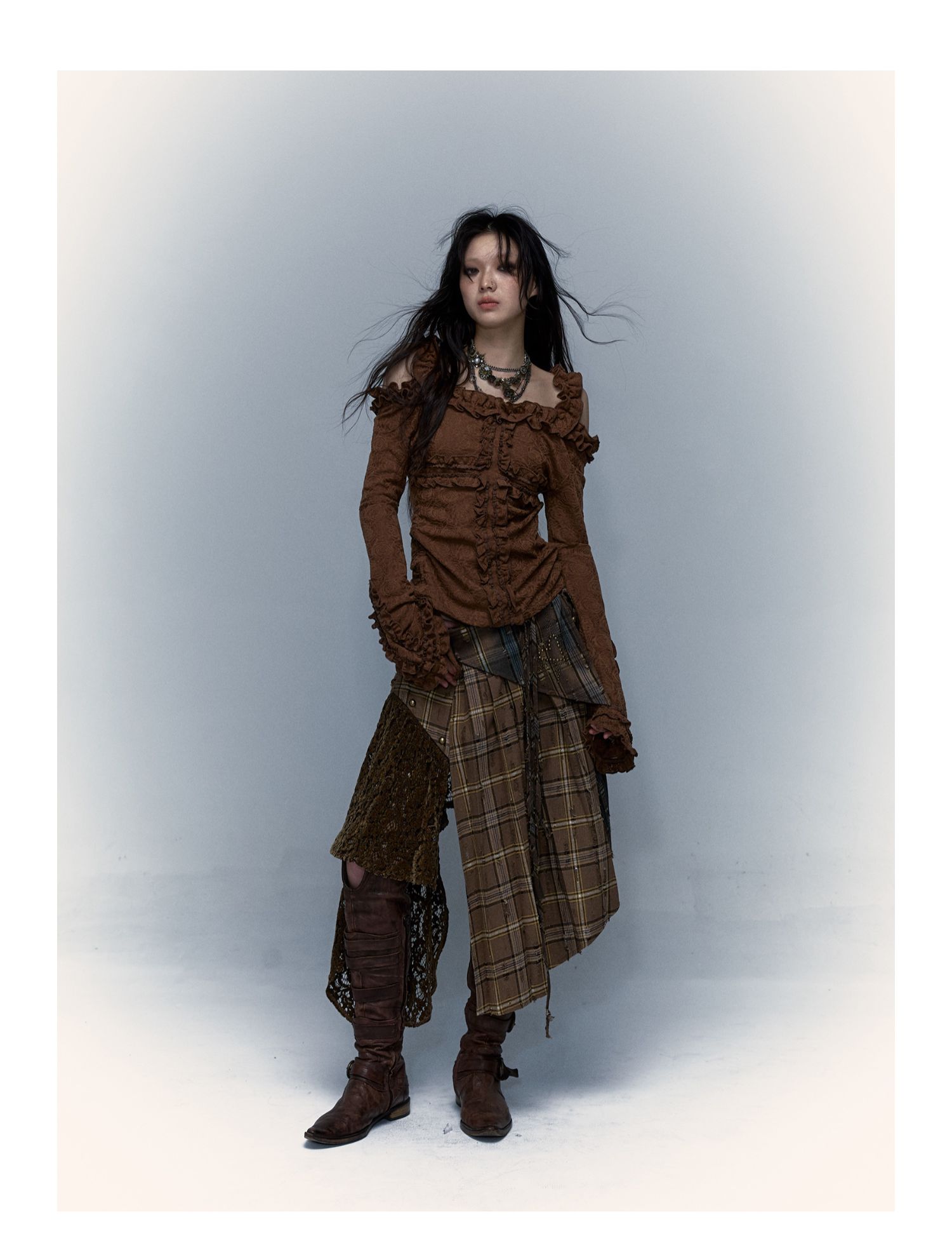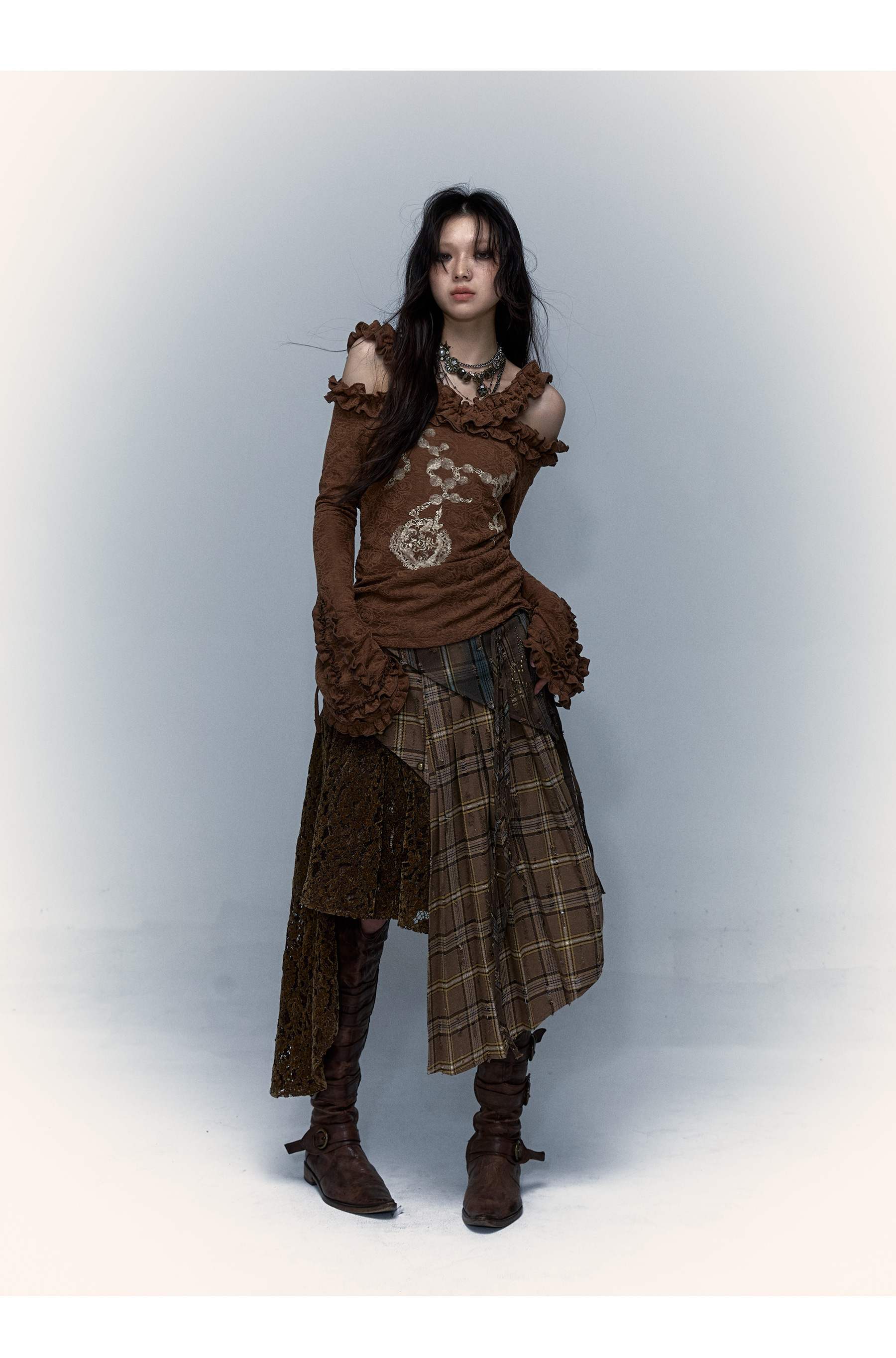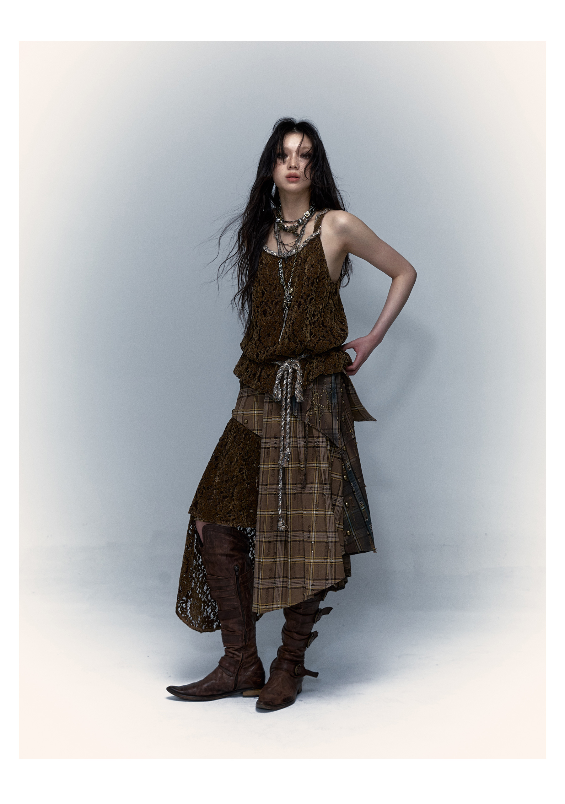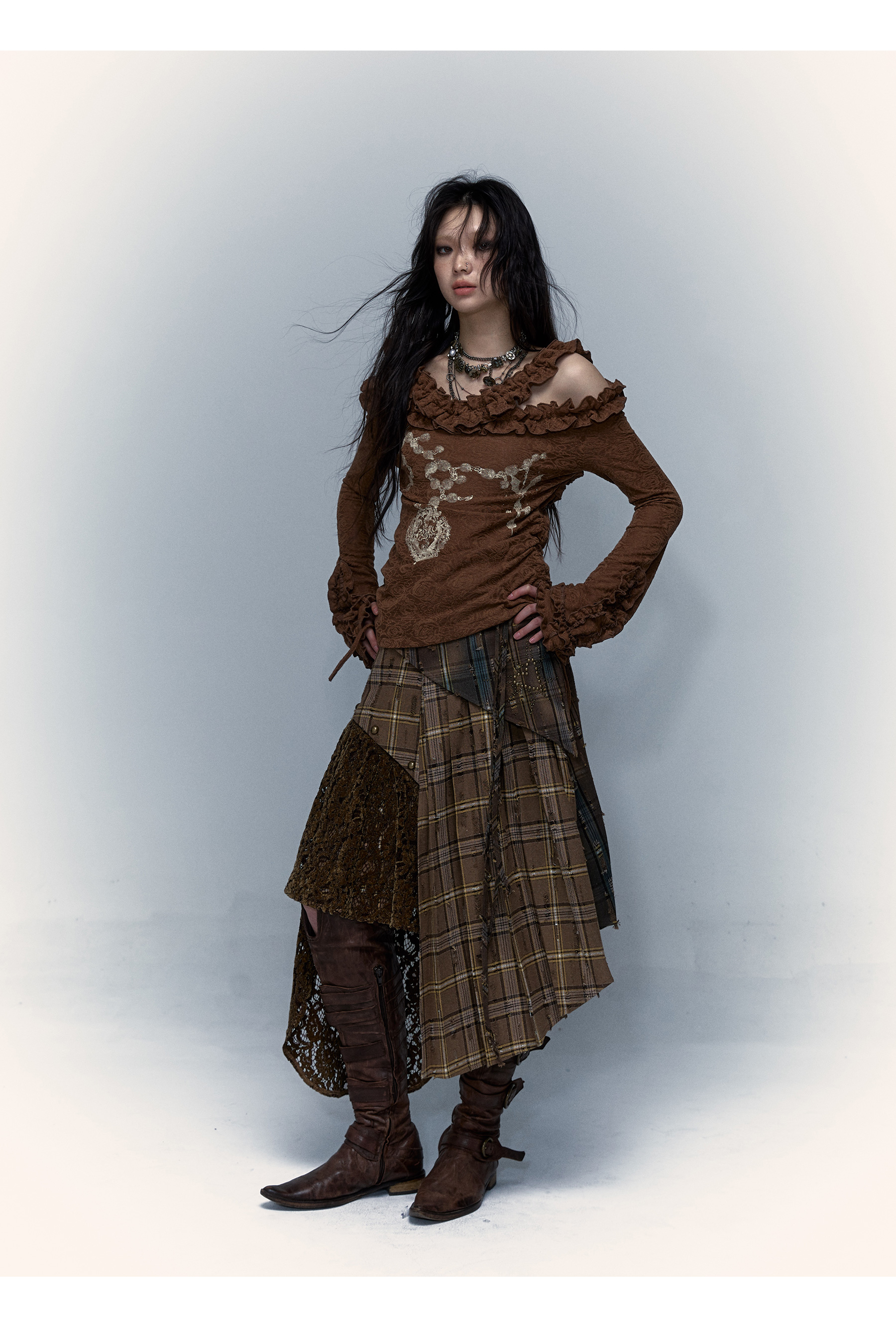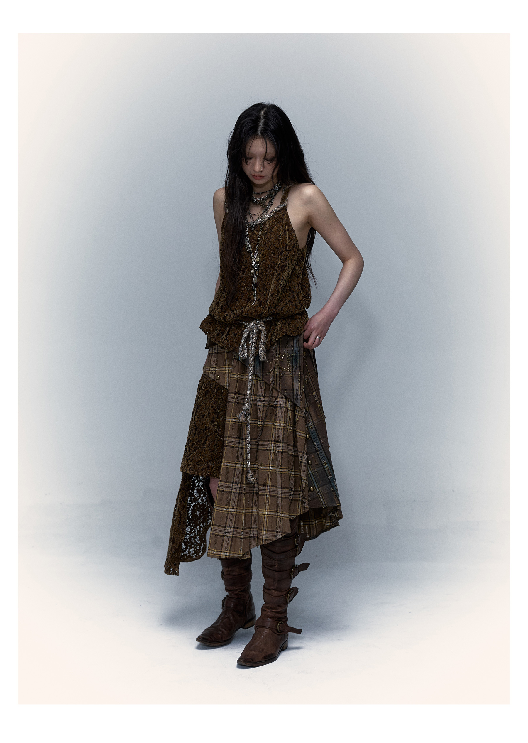 Irregular Pleated Skirt | Detachable Double-Wear Wilderness Punk Design