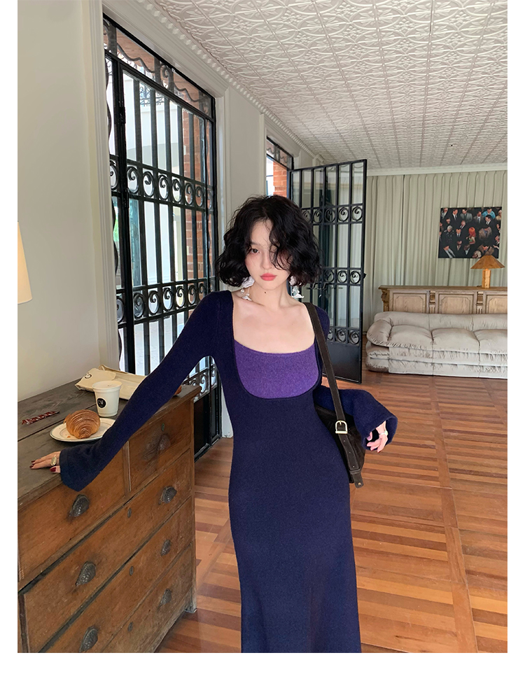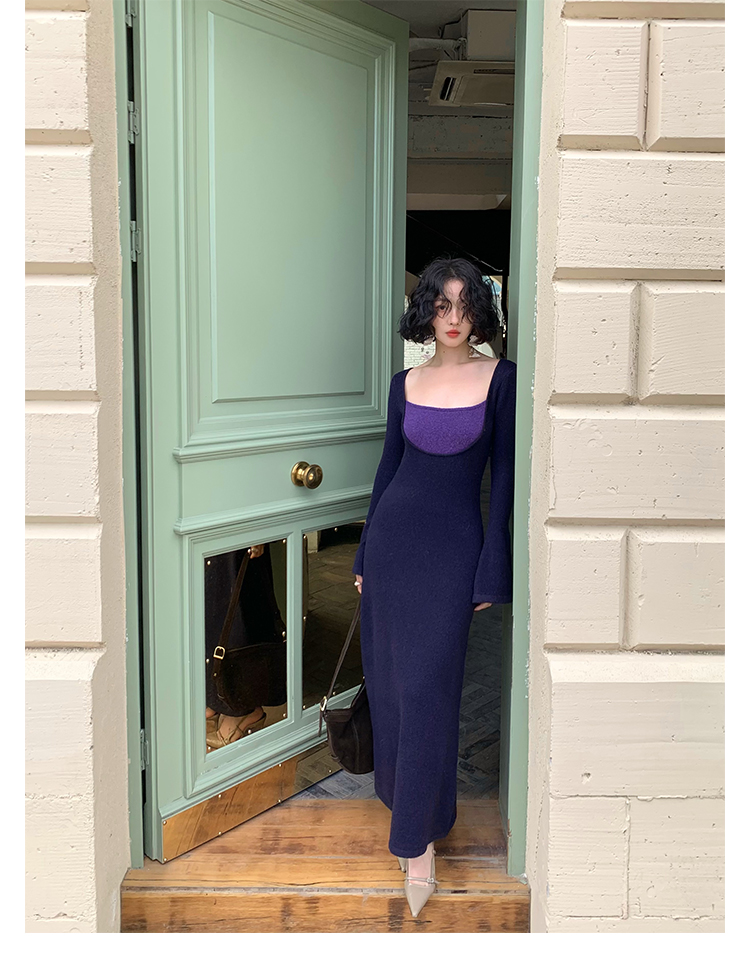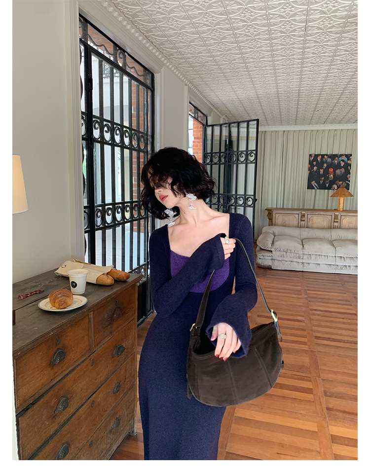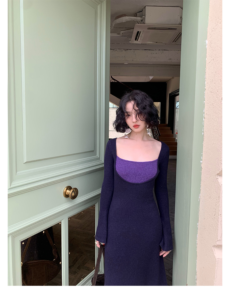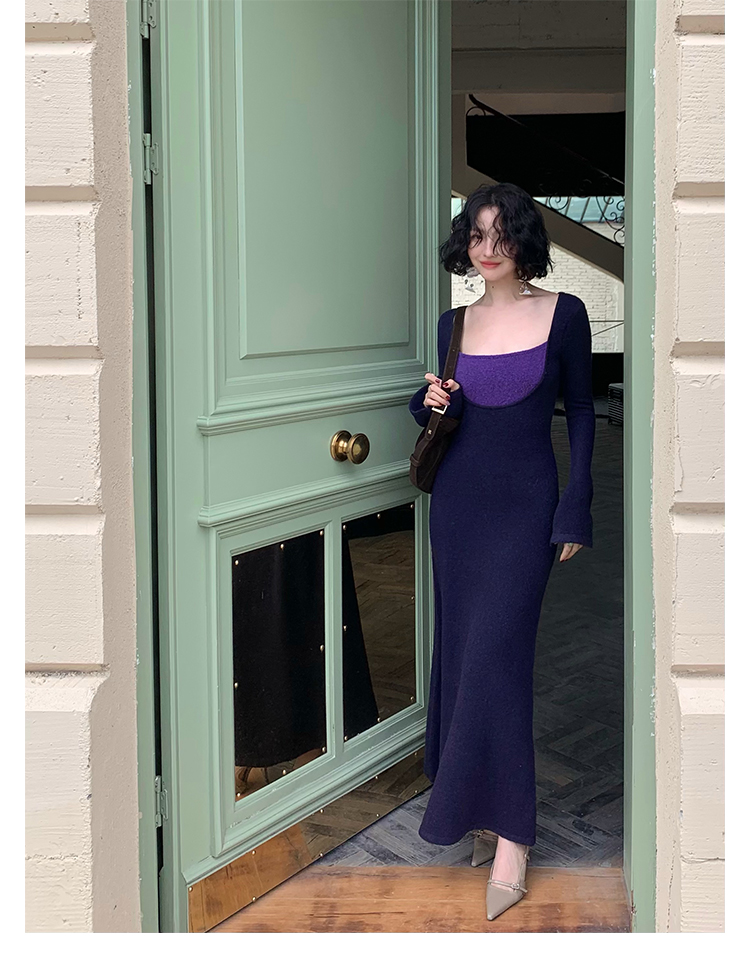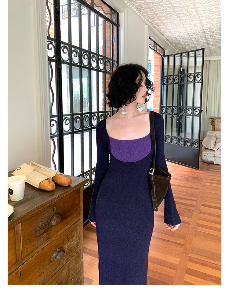 Half-String Poem Purple Slim Wool Long Knitted Dress – Romantic Charm