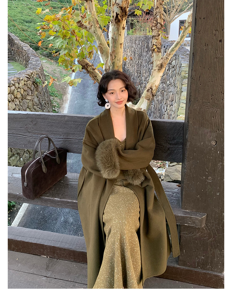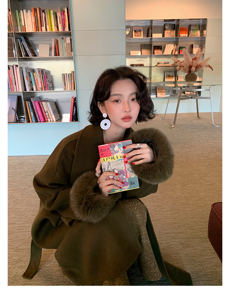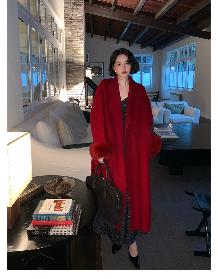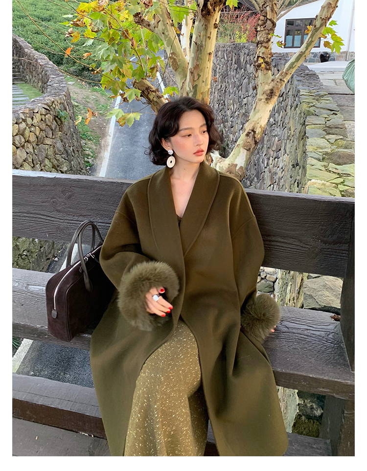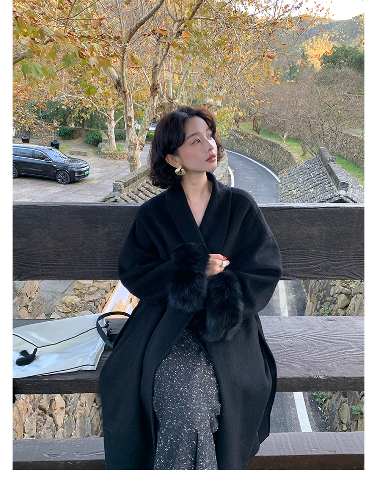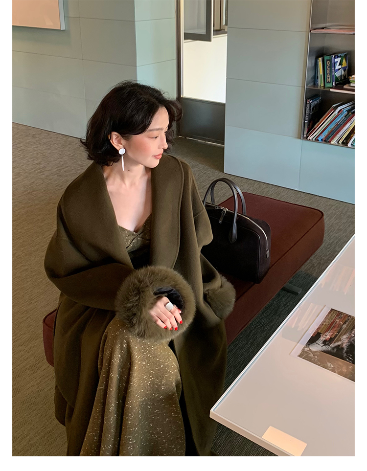 Fox Fur Sleeve Wool Coat – Yakin Tone Luxe Warmth
