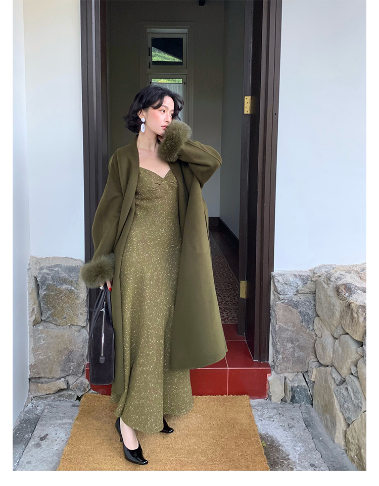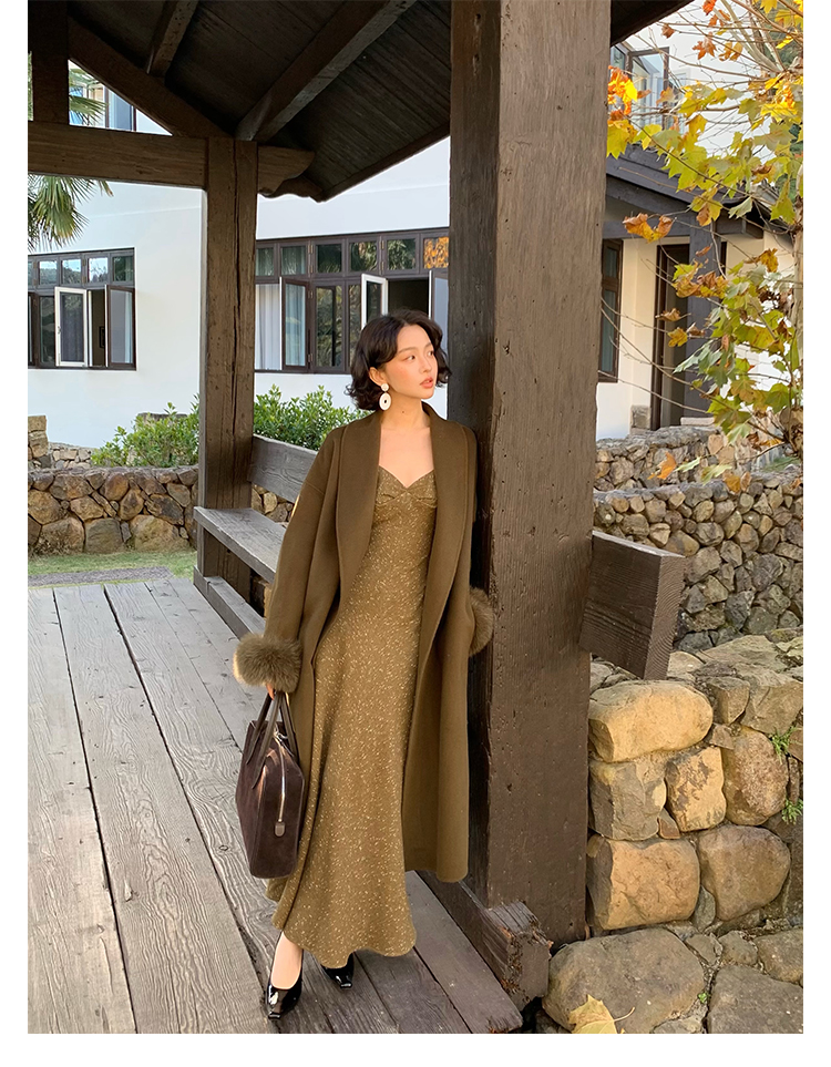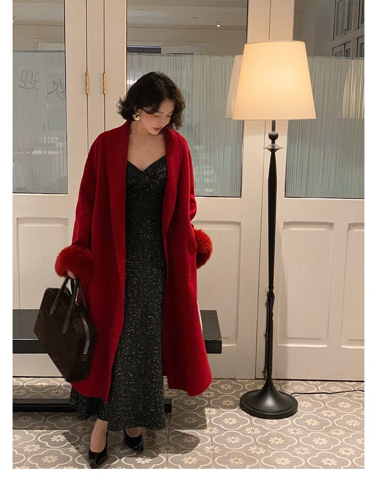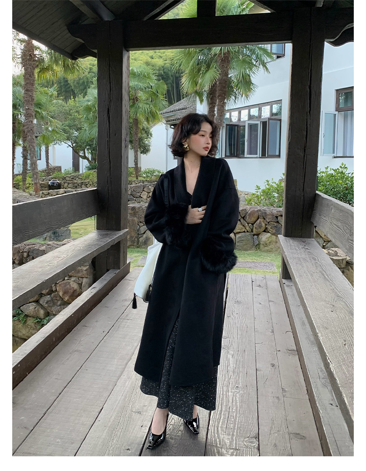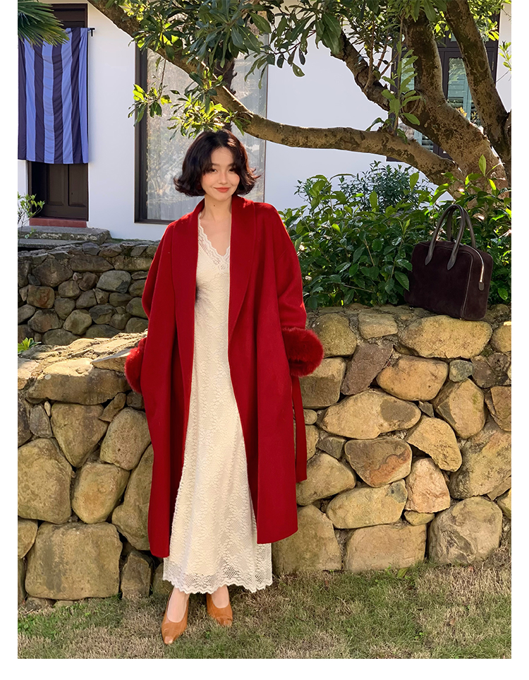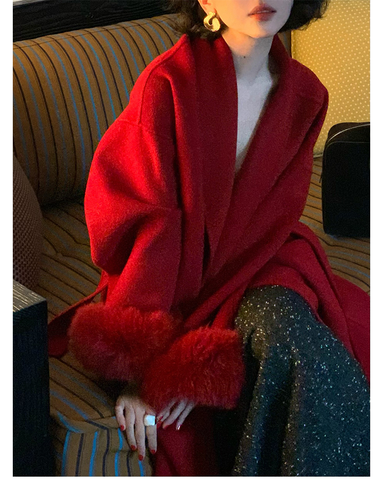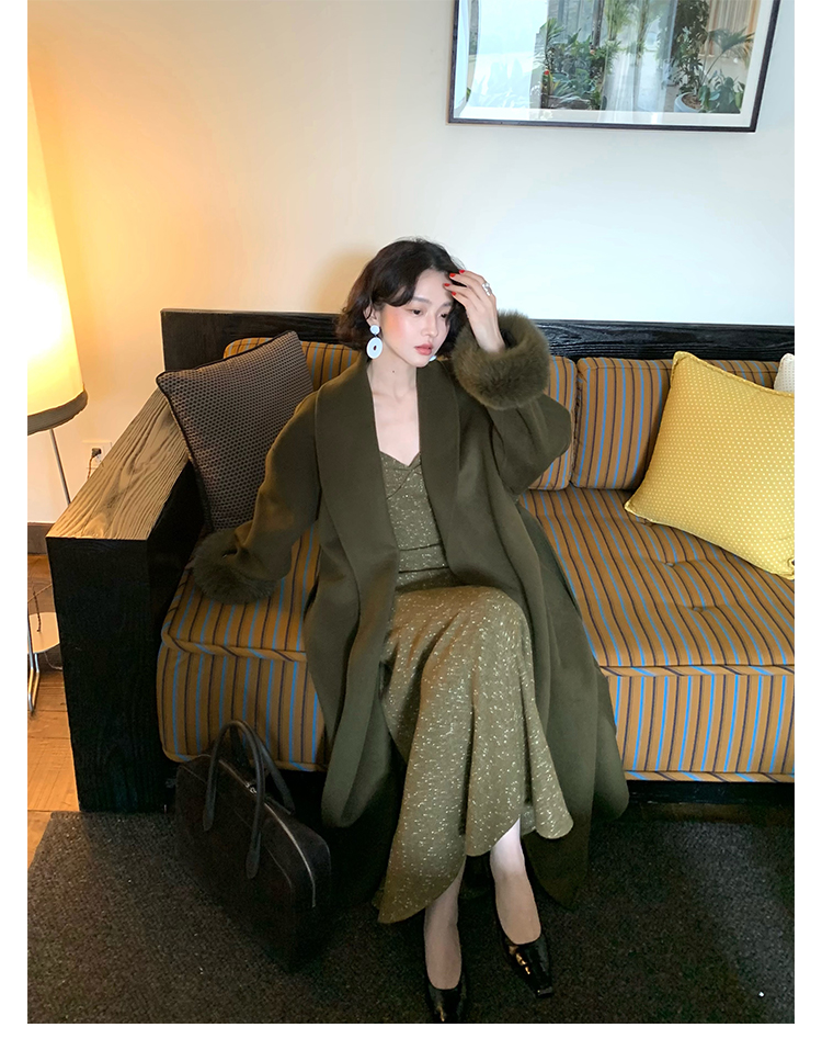 Fox Fur Sleeve Wool Coat – Yakin Tone Luxe Warmth