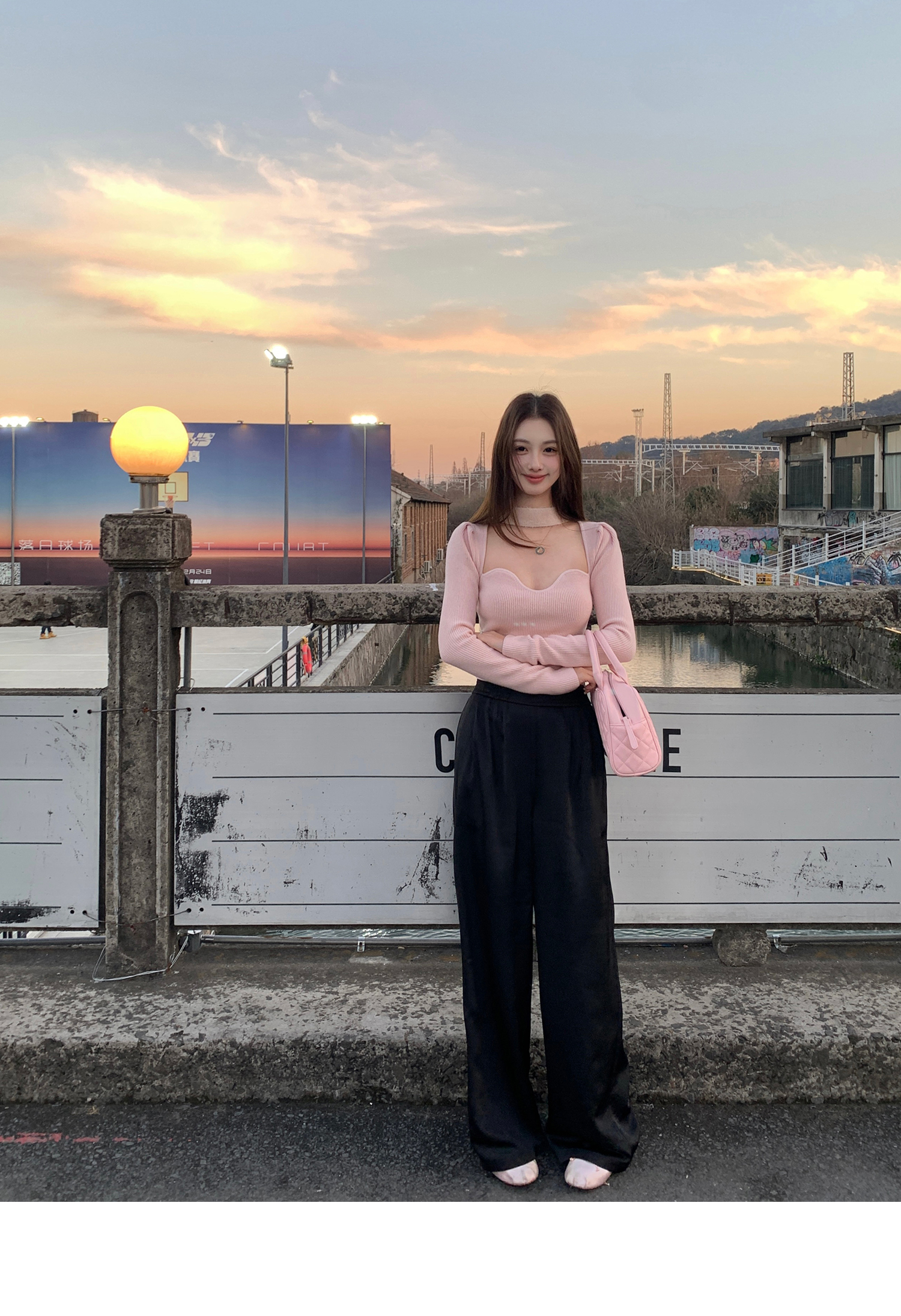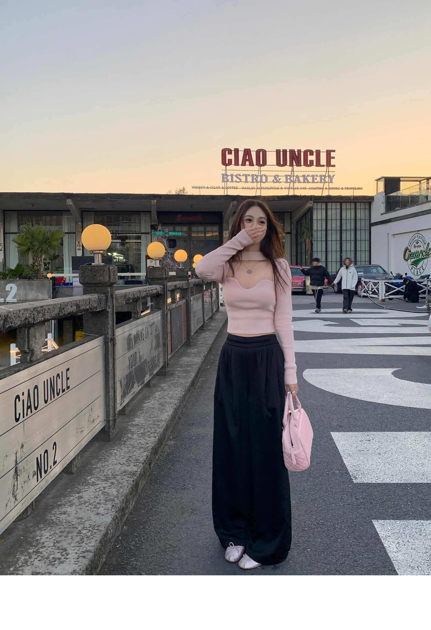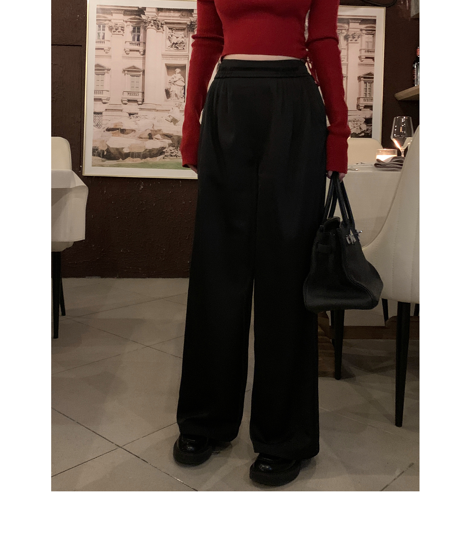 Black High-Waist Wide-Leg Velvet Pants - Women's Autumn/Winter Casual Style