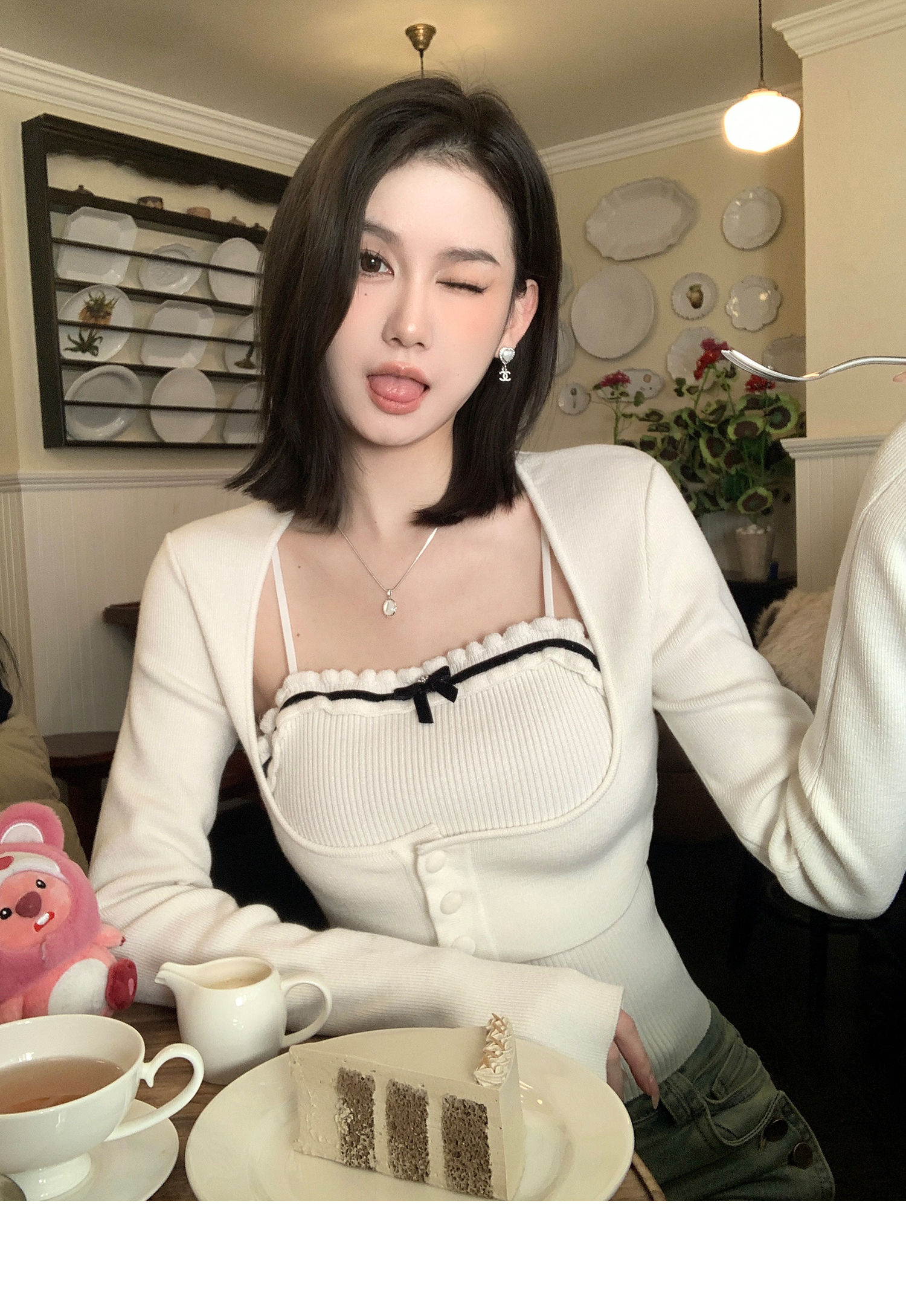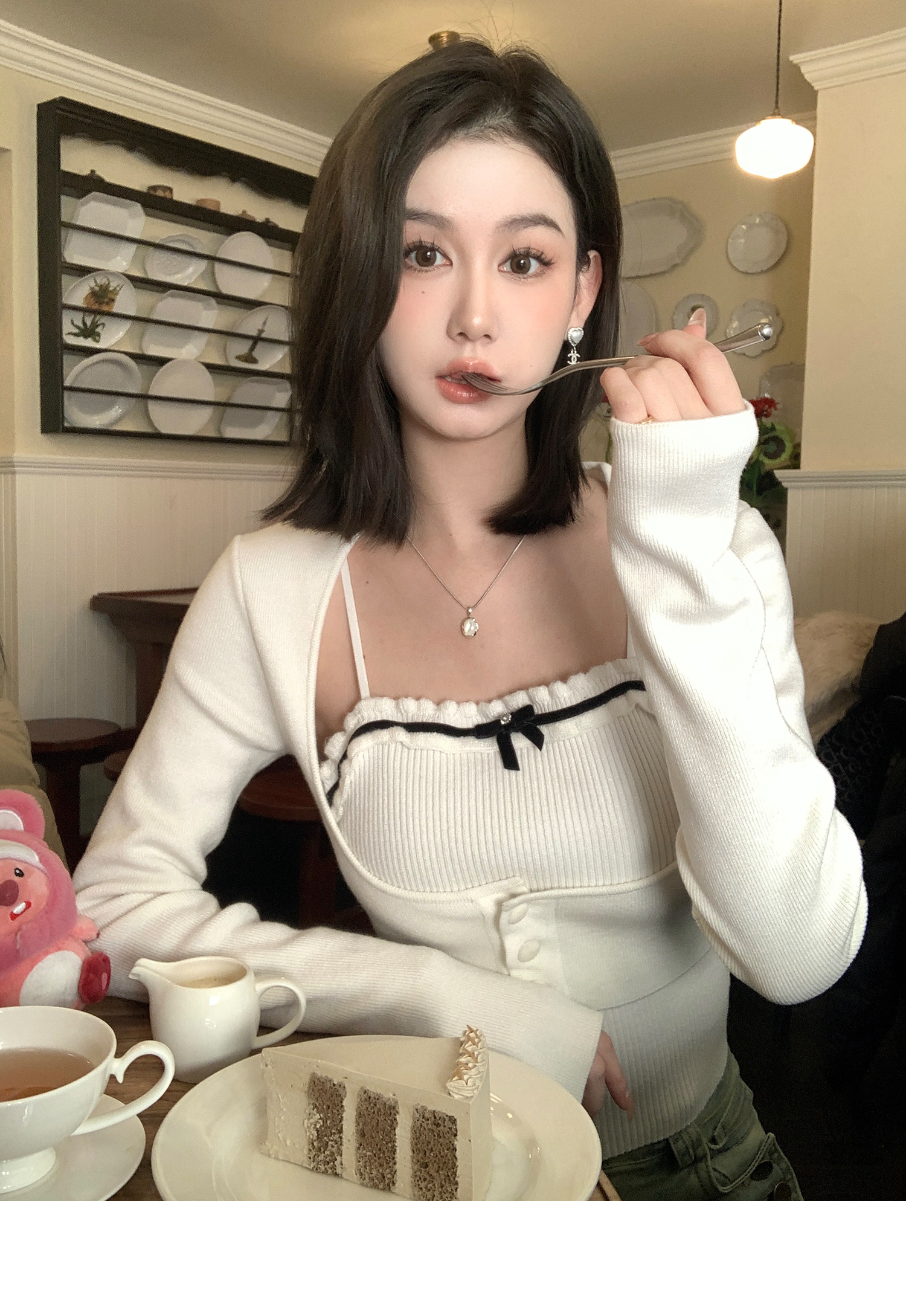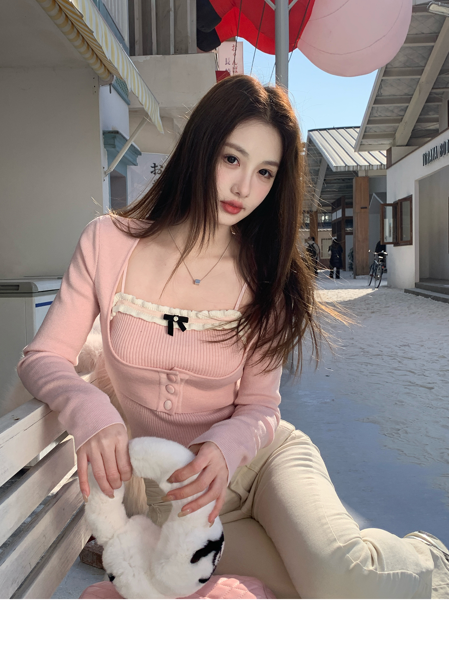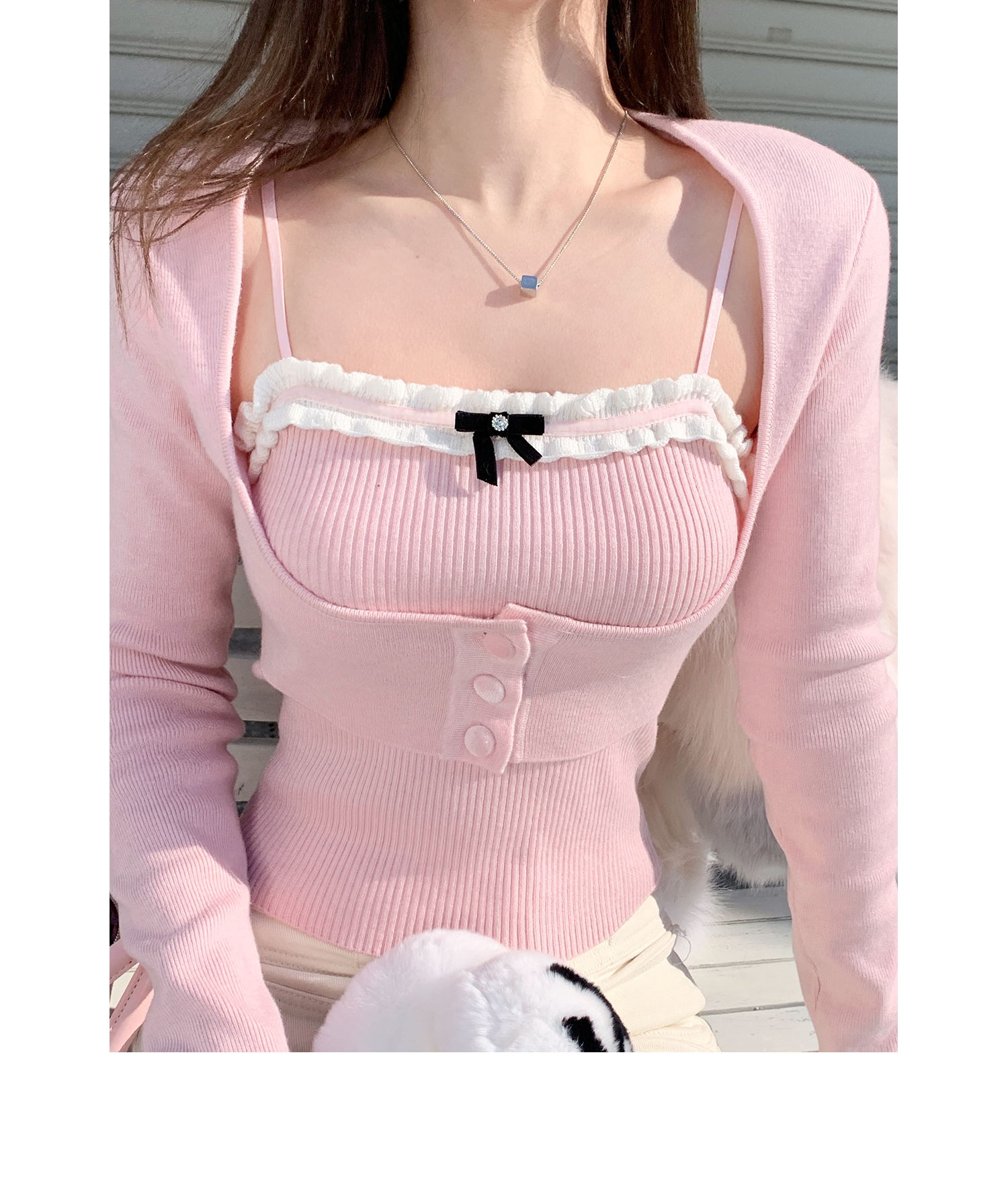 Pink U-Neck Two-Piece Base Shirt - Autumn/Winter Striped Slim Short Top