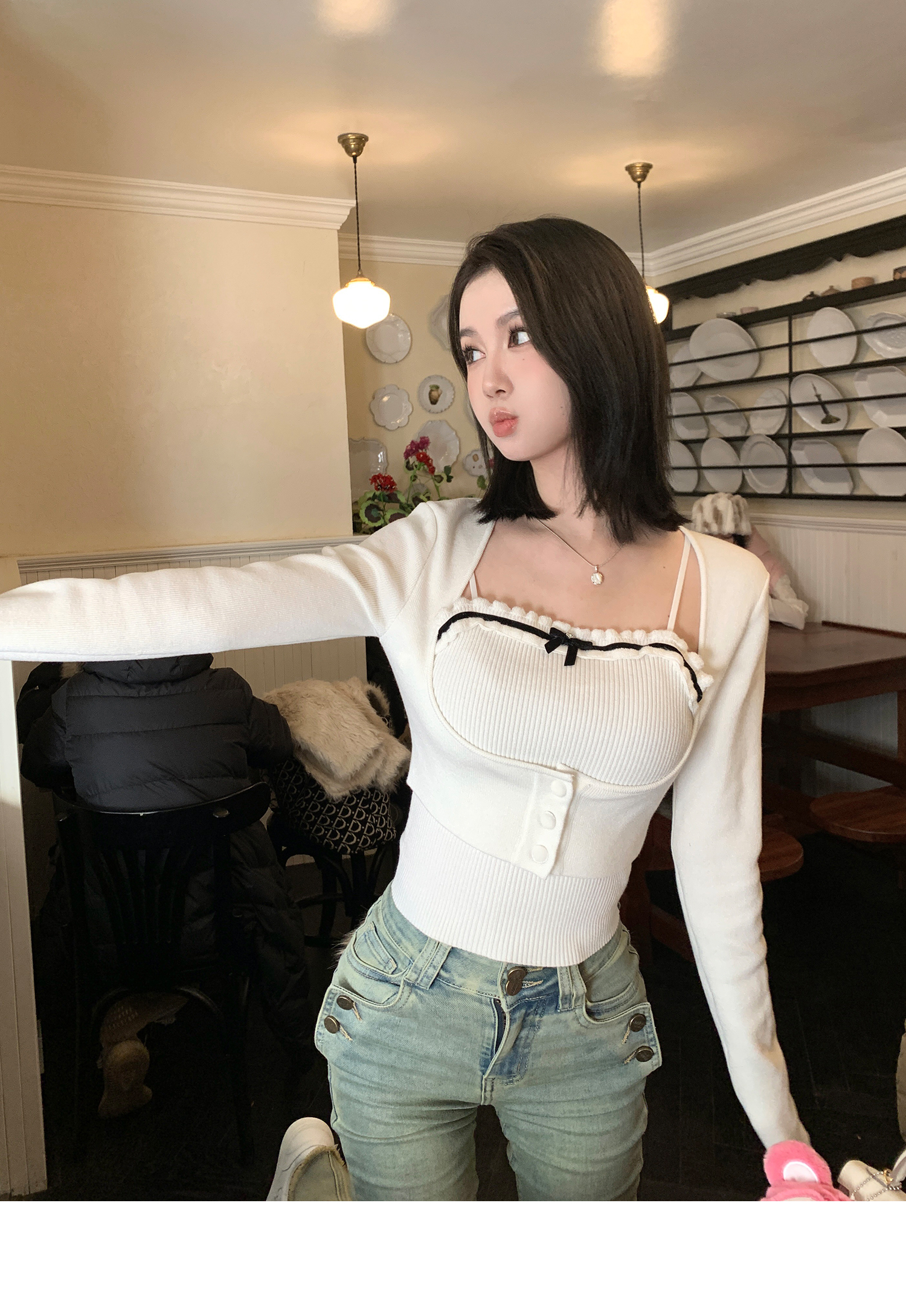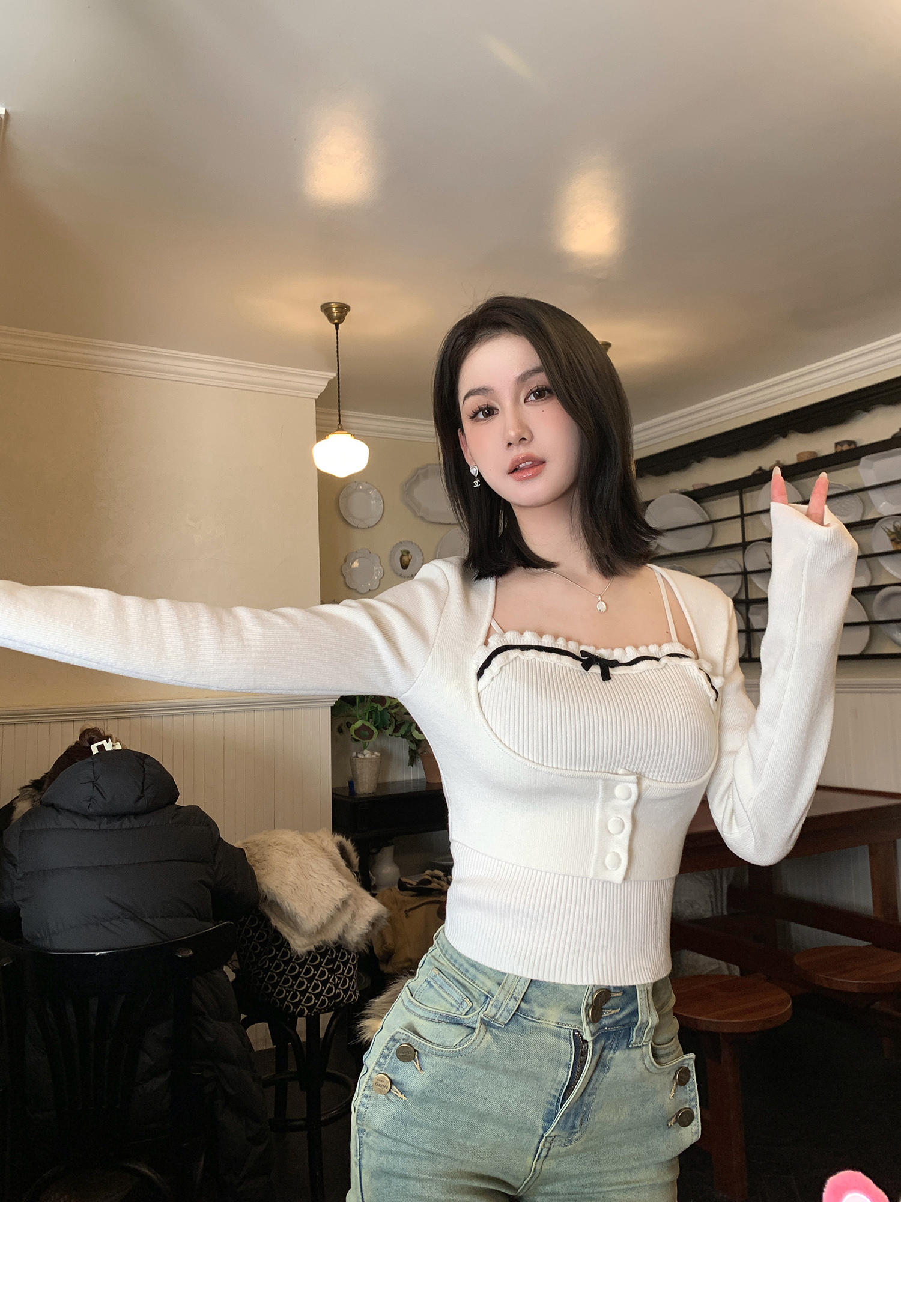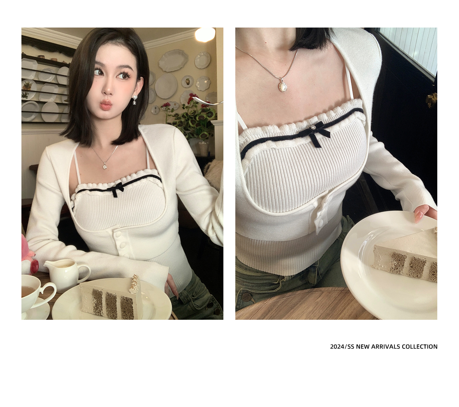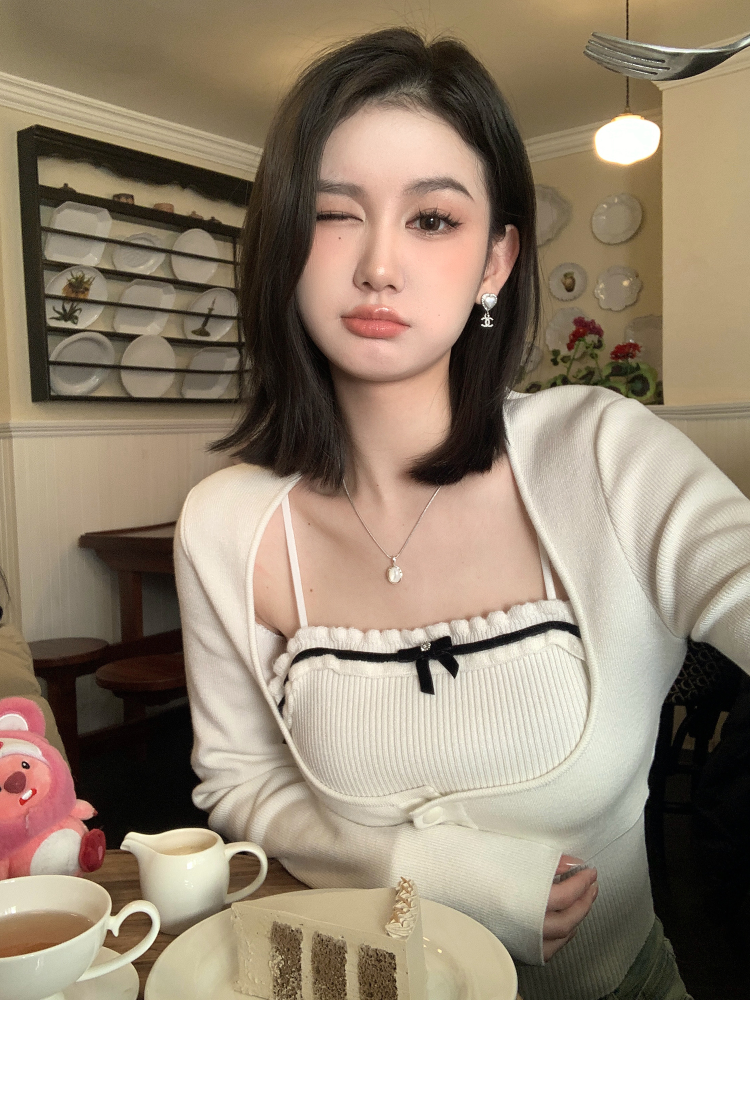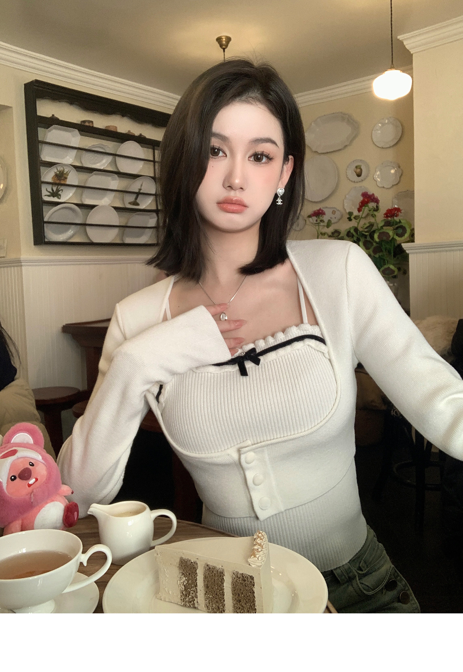 Pink U-Neck Two-Piece Base Shirt - Autumn/Winter Striped Slim Short Top
