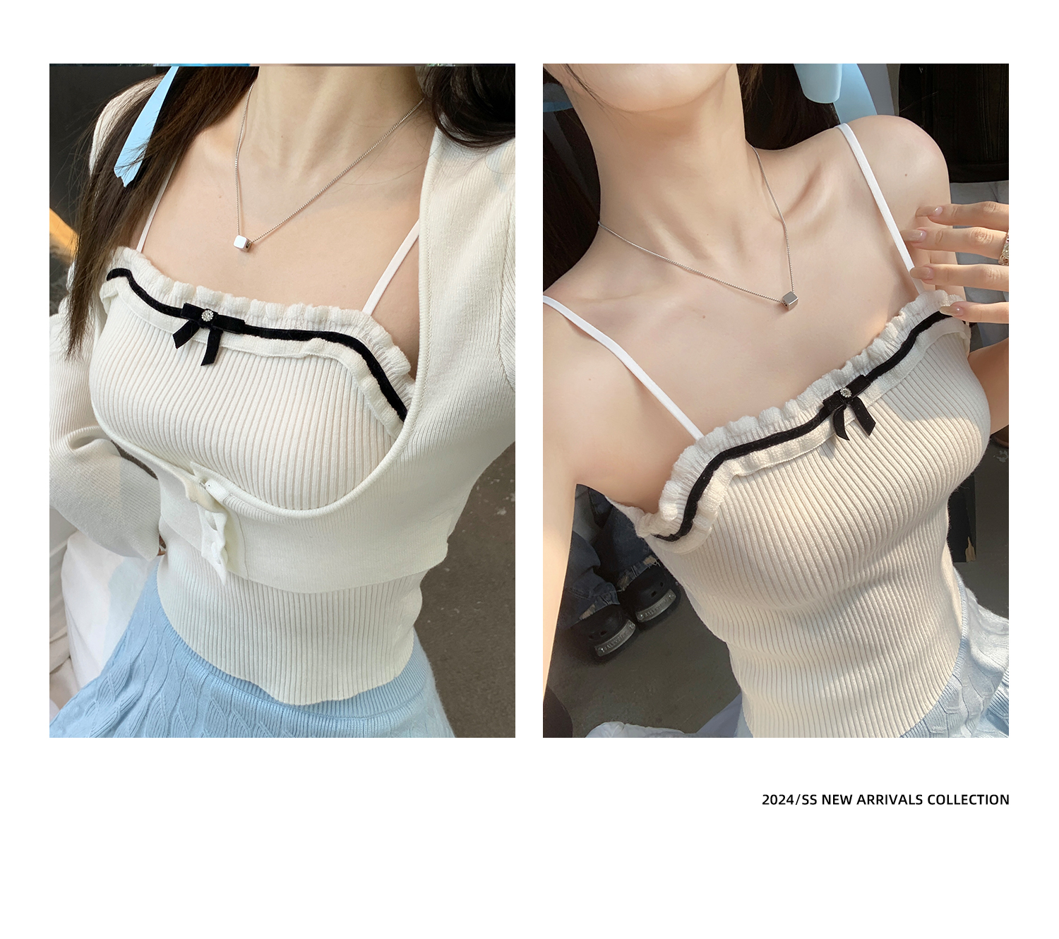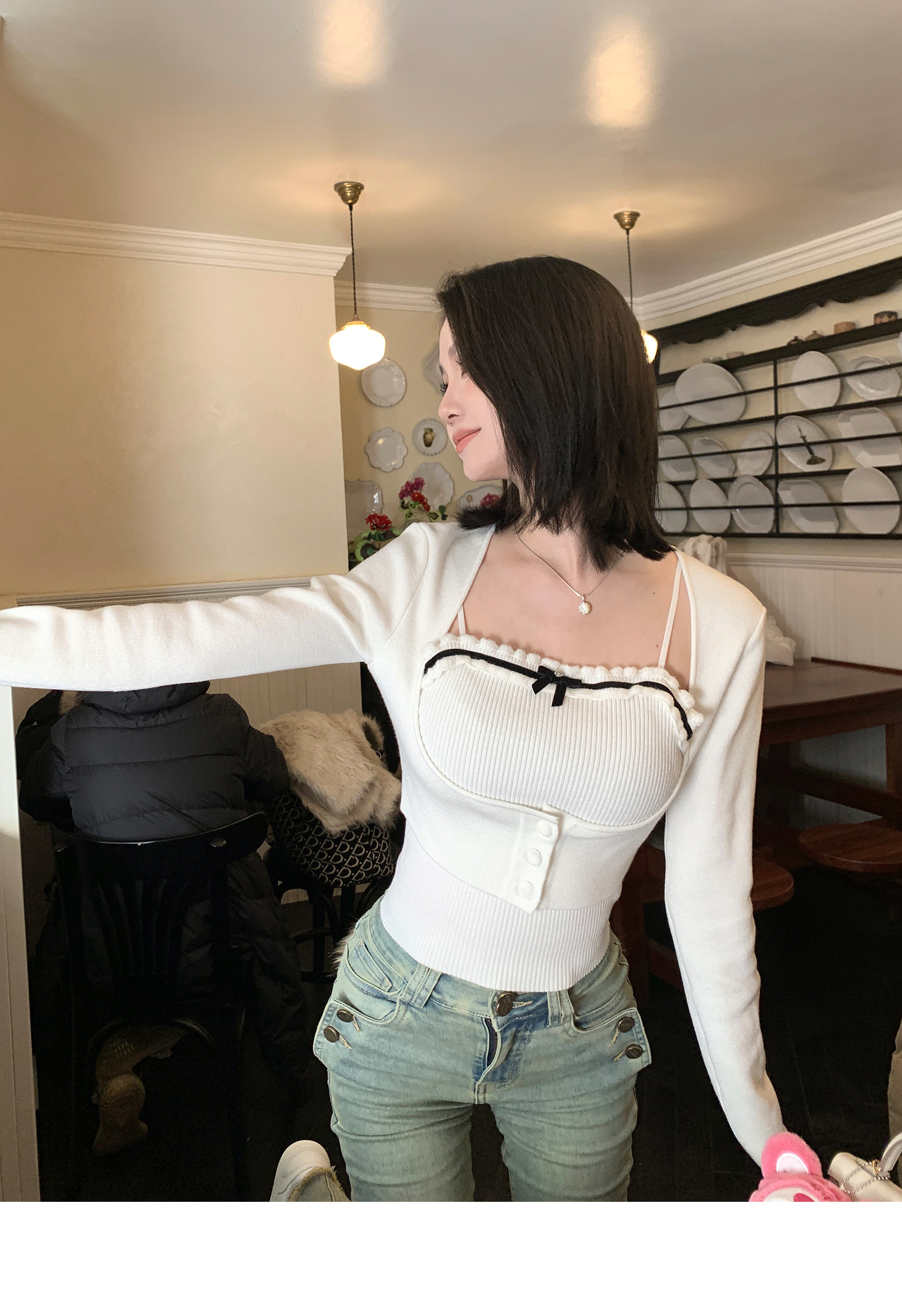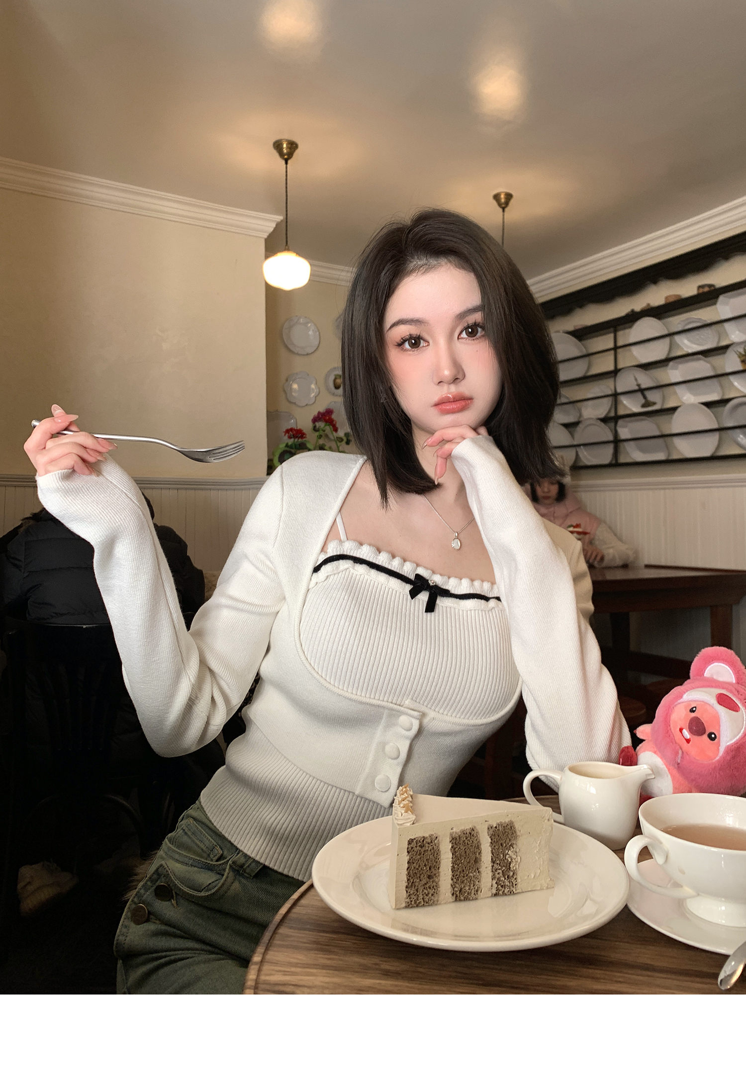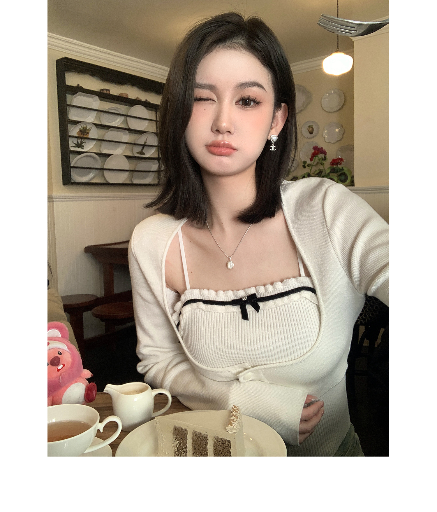 Pink U-Neck Two-Piece Base Shirt - Autumn/Winter Striped Slim Short Top