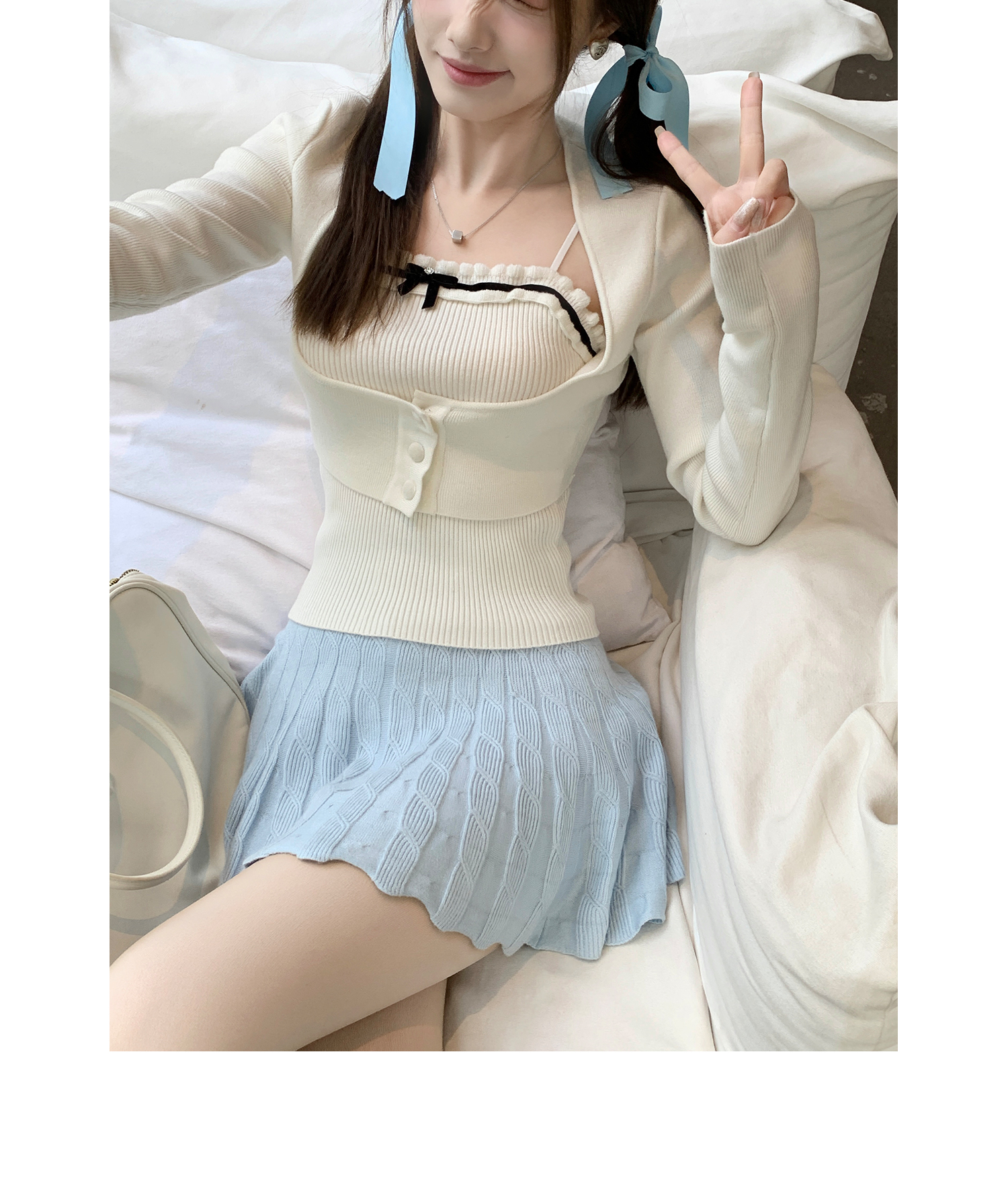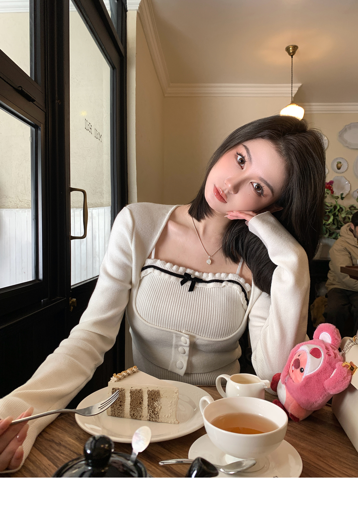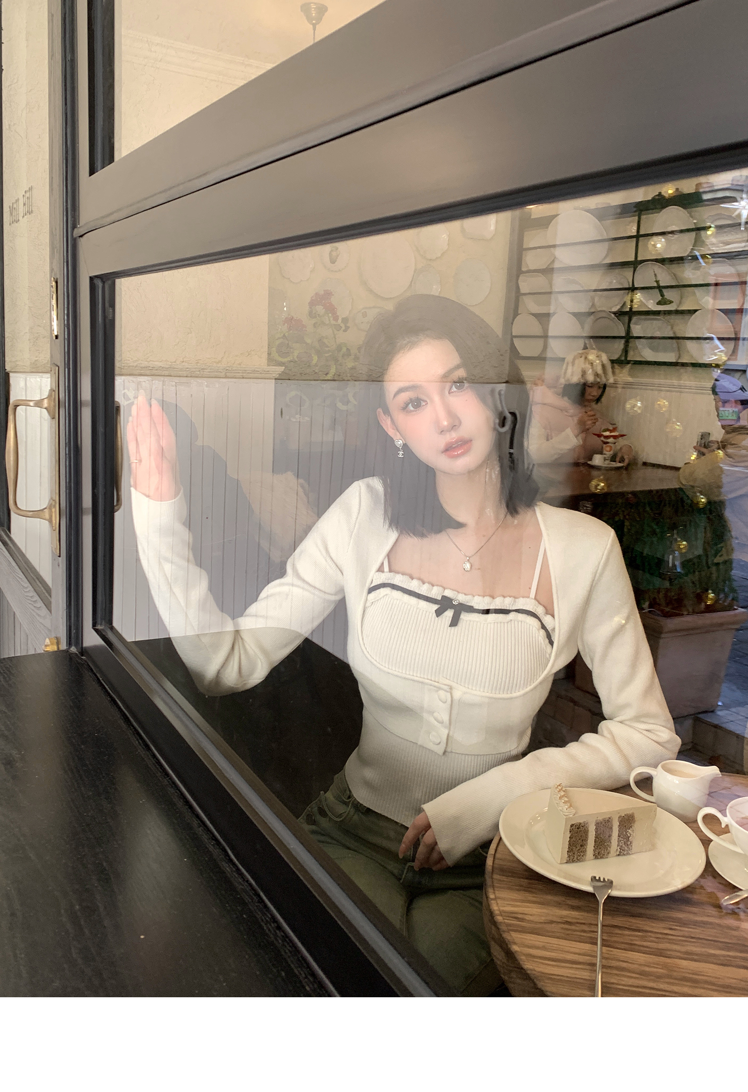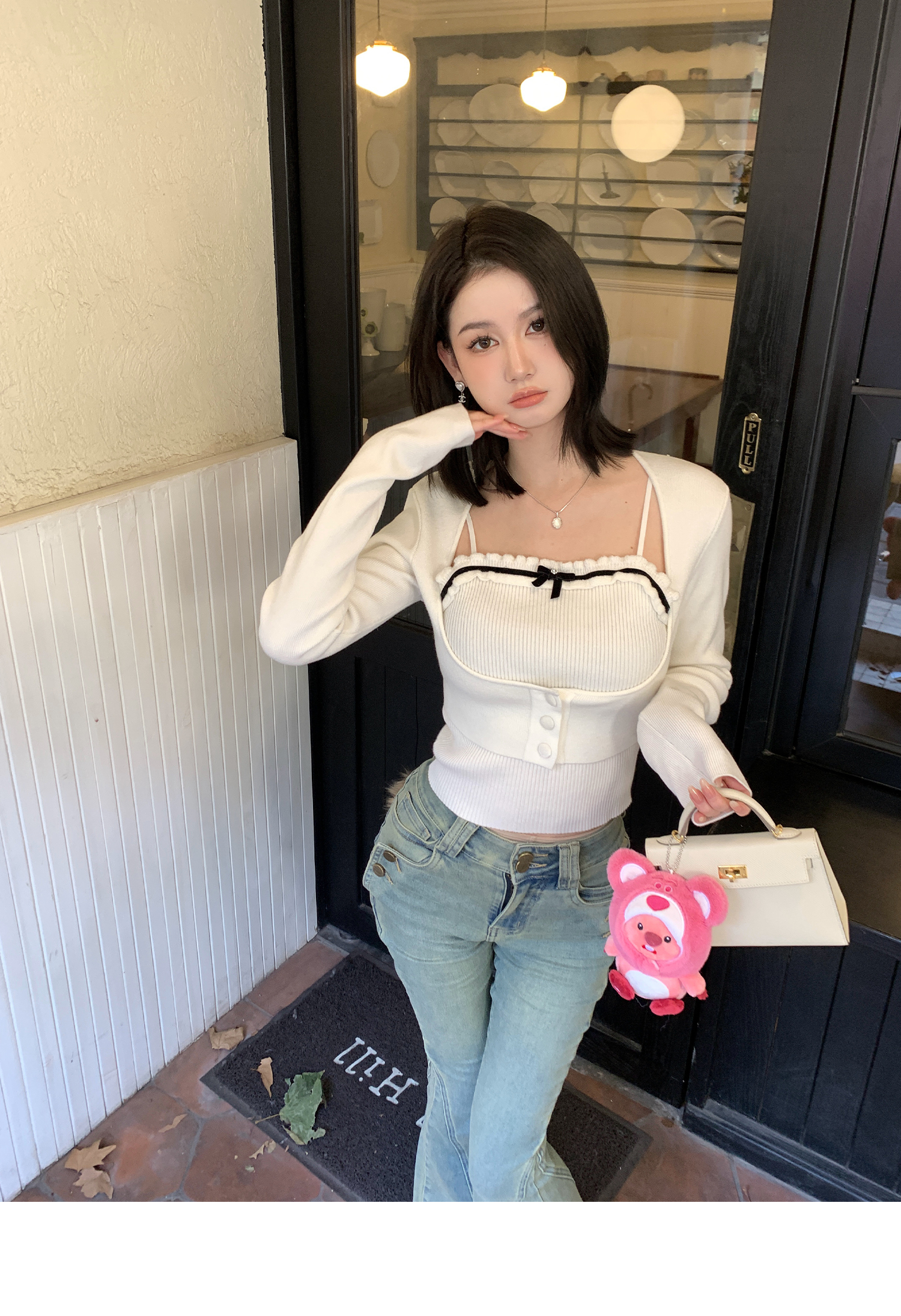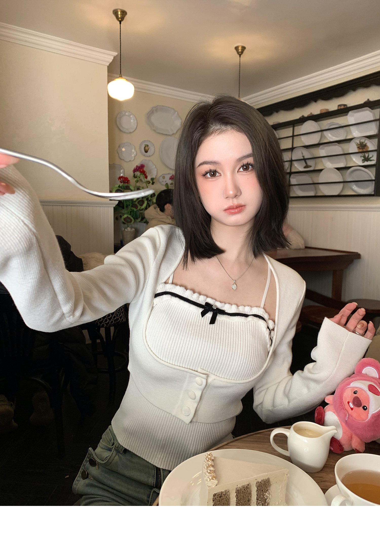 Pink U-Neck Two-Piece Base Shirt - Autumn/Winter Striped Slim Short Top