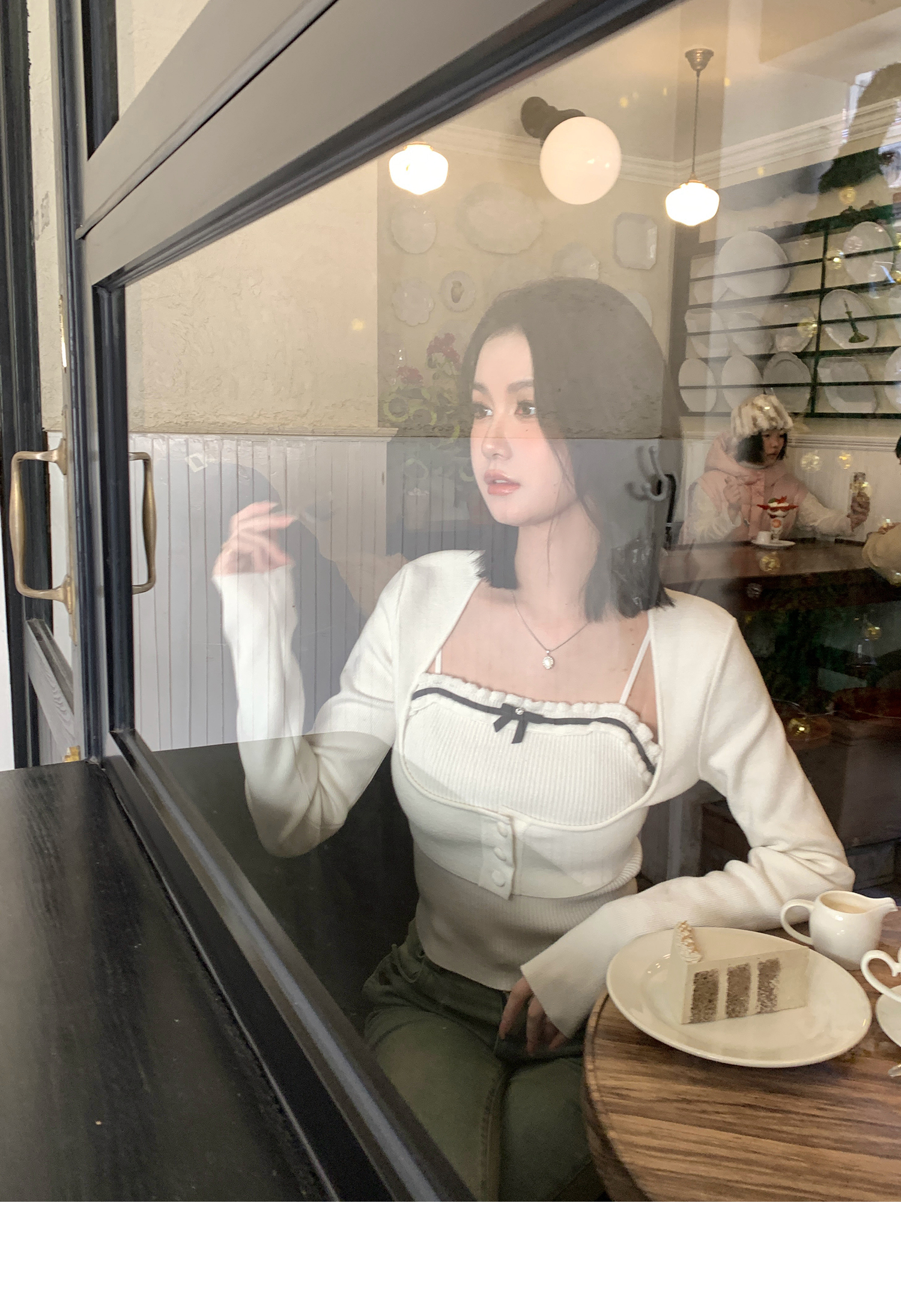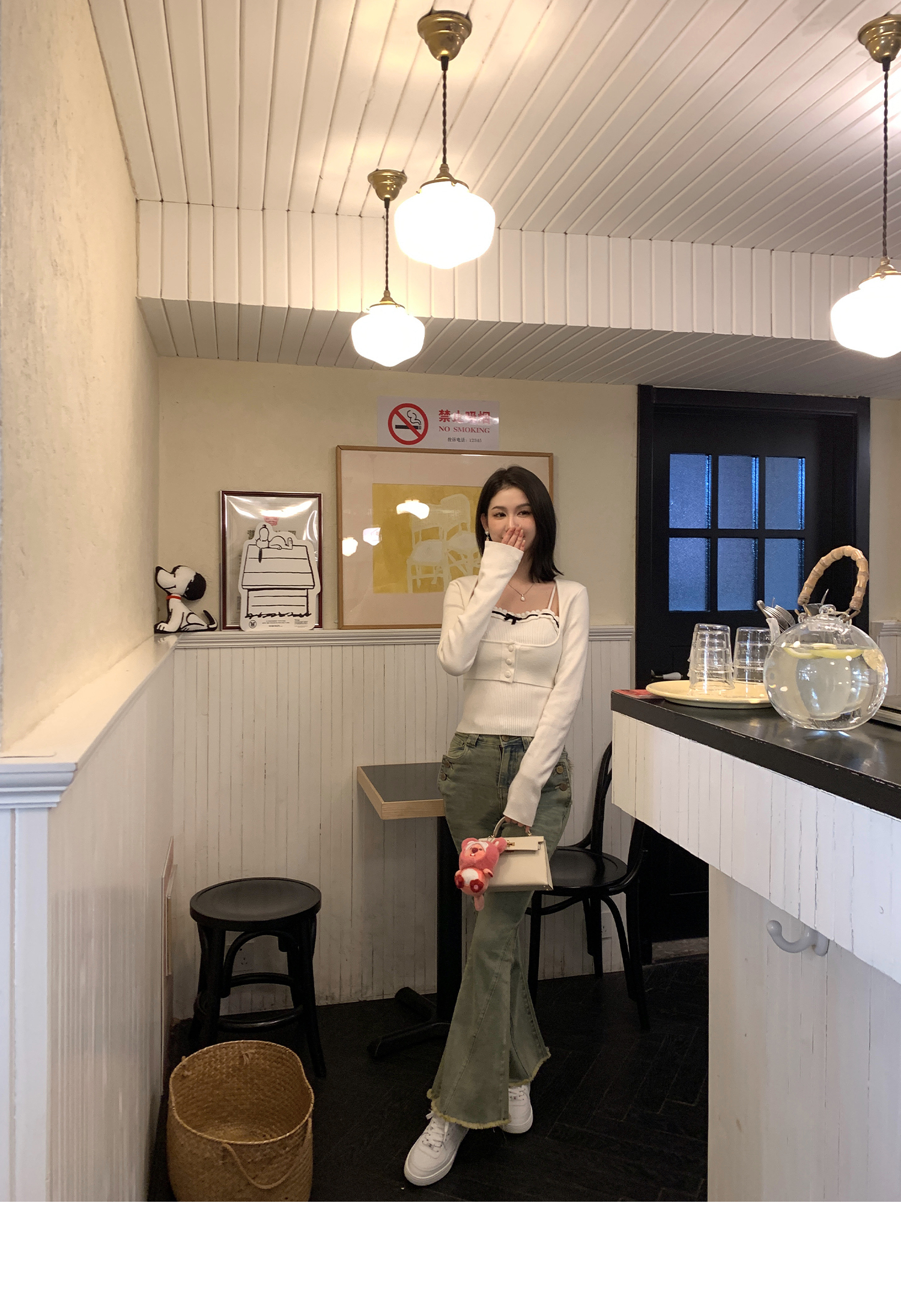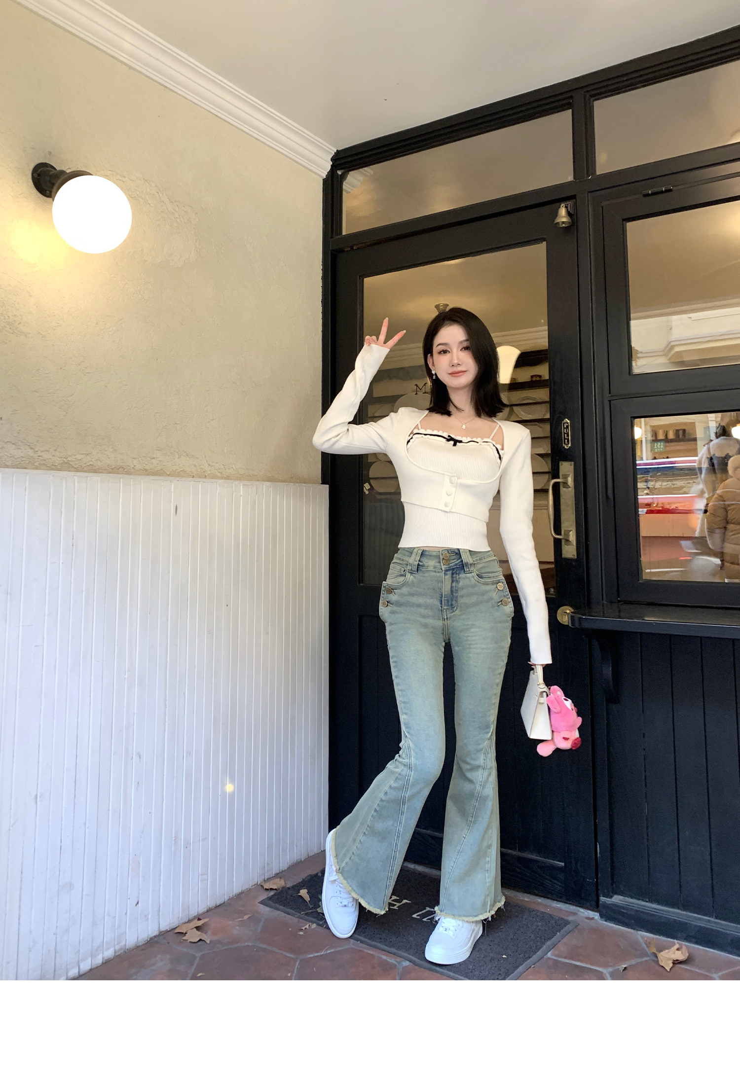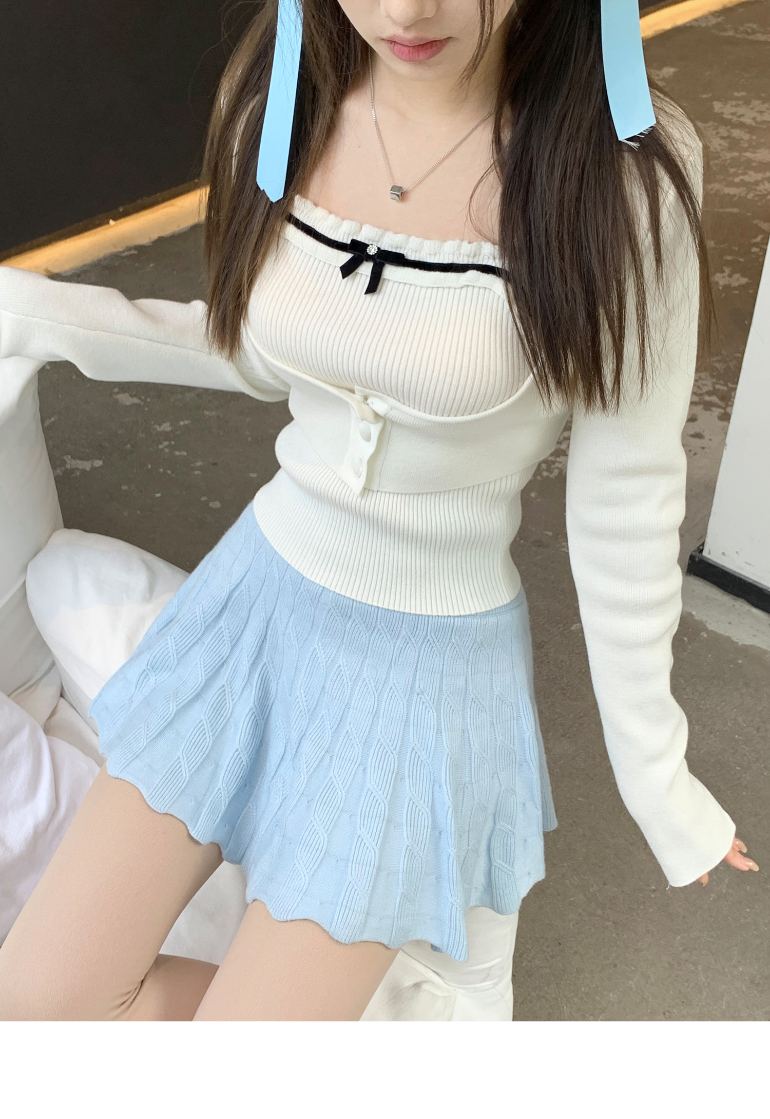 Pink U-Neck Two-Piece Base Shirt - Autumn/Winter Striped Slim Short Top