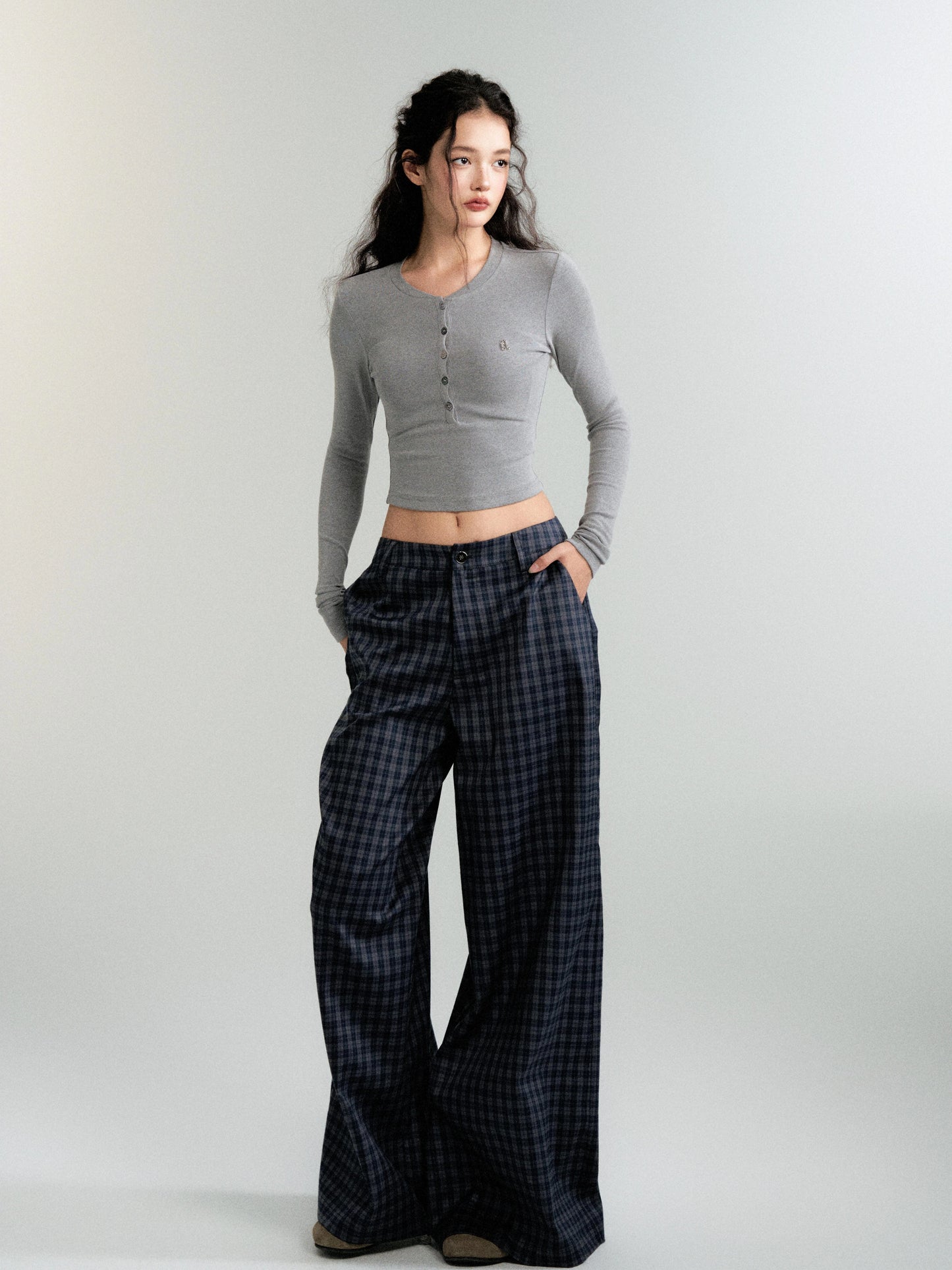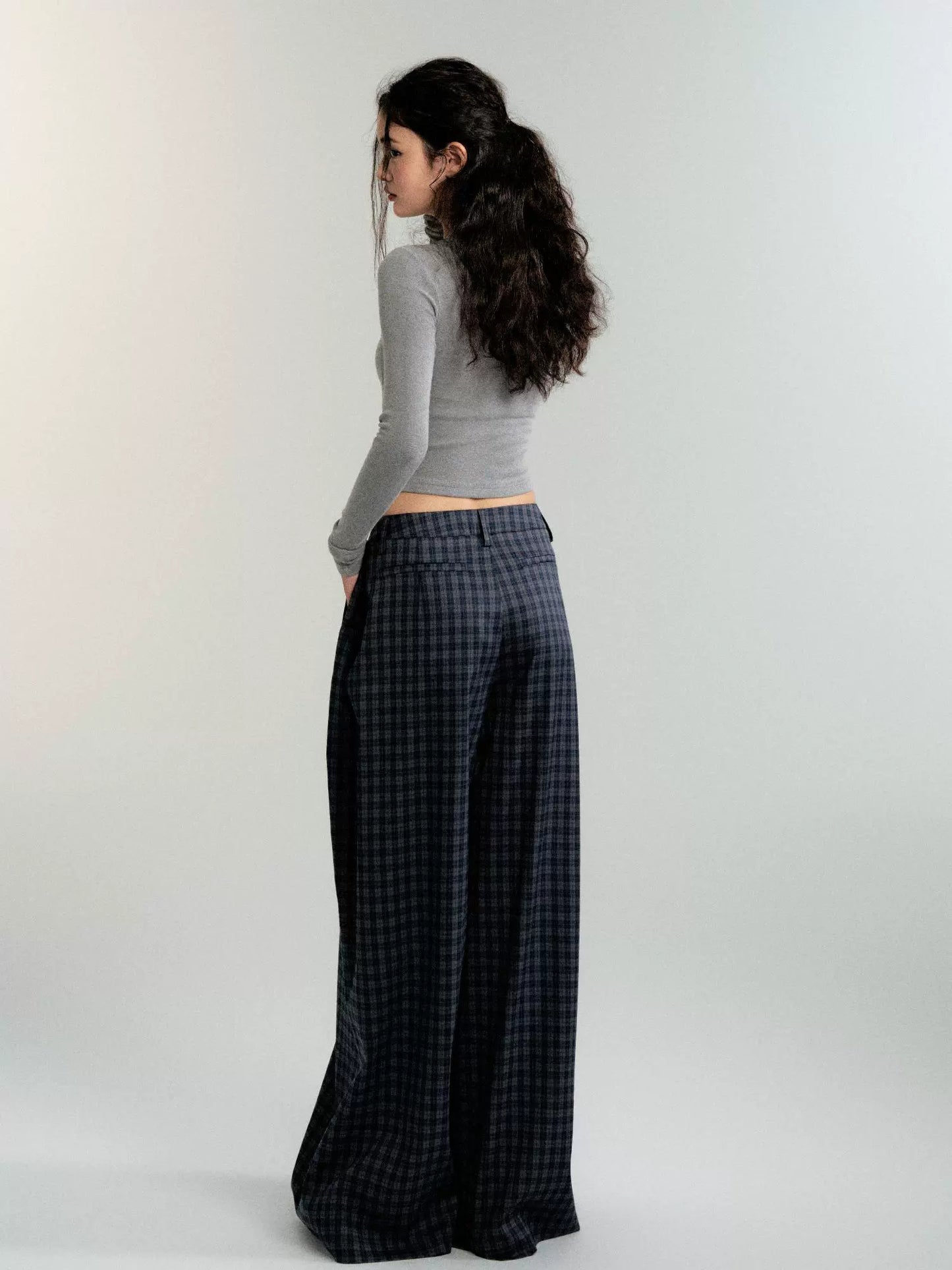 Antique Navy Plaid Wide-Leg Pants with Casual Vibes
