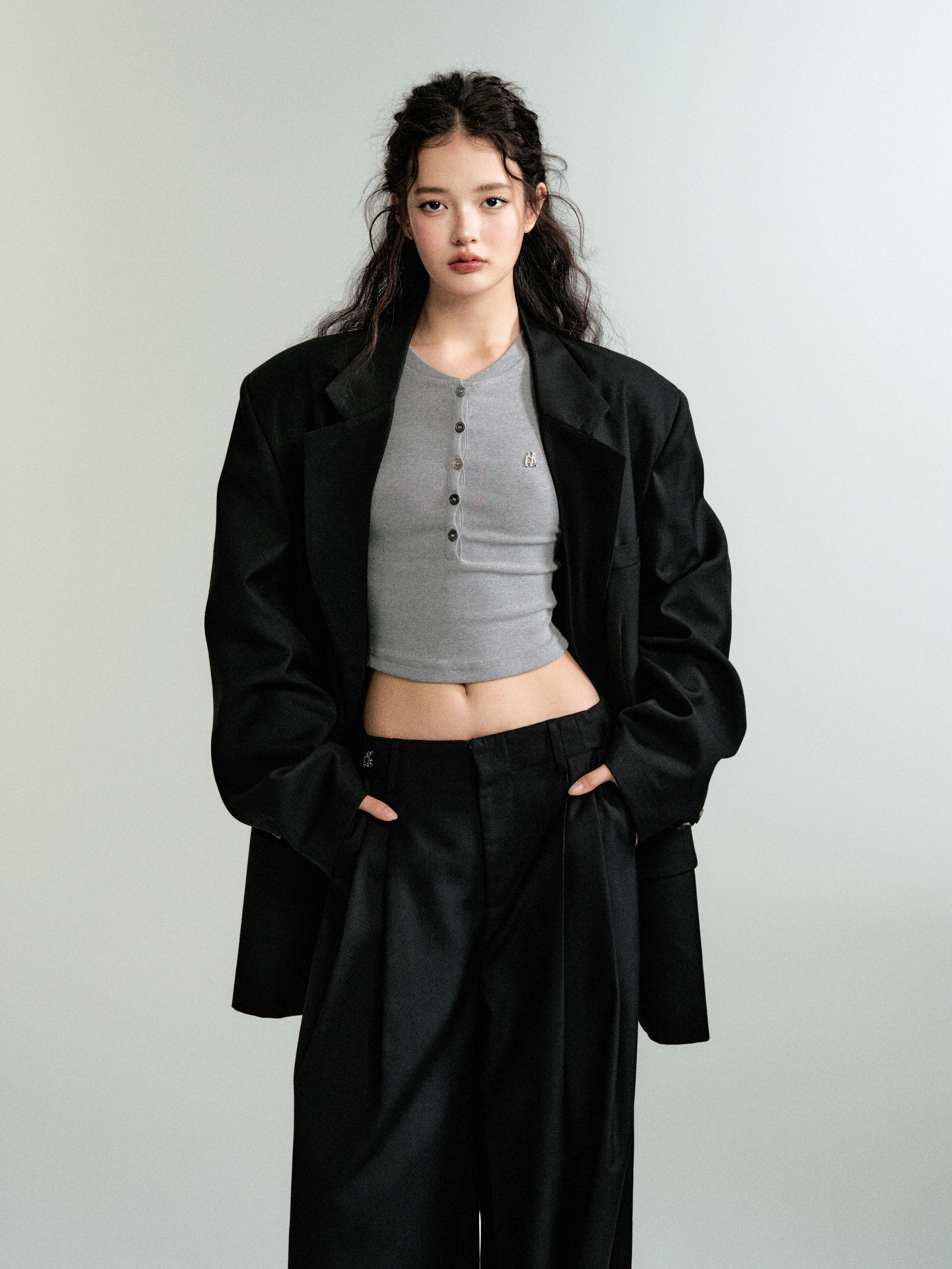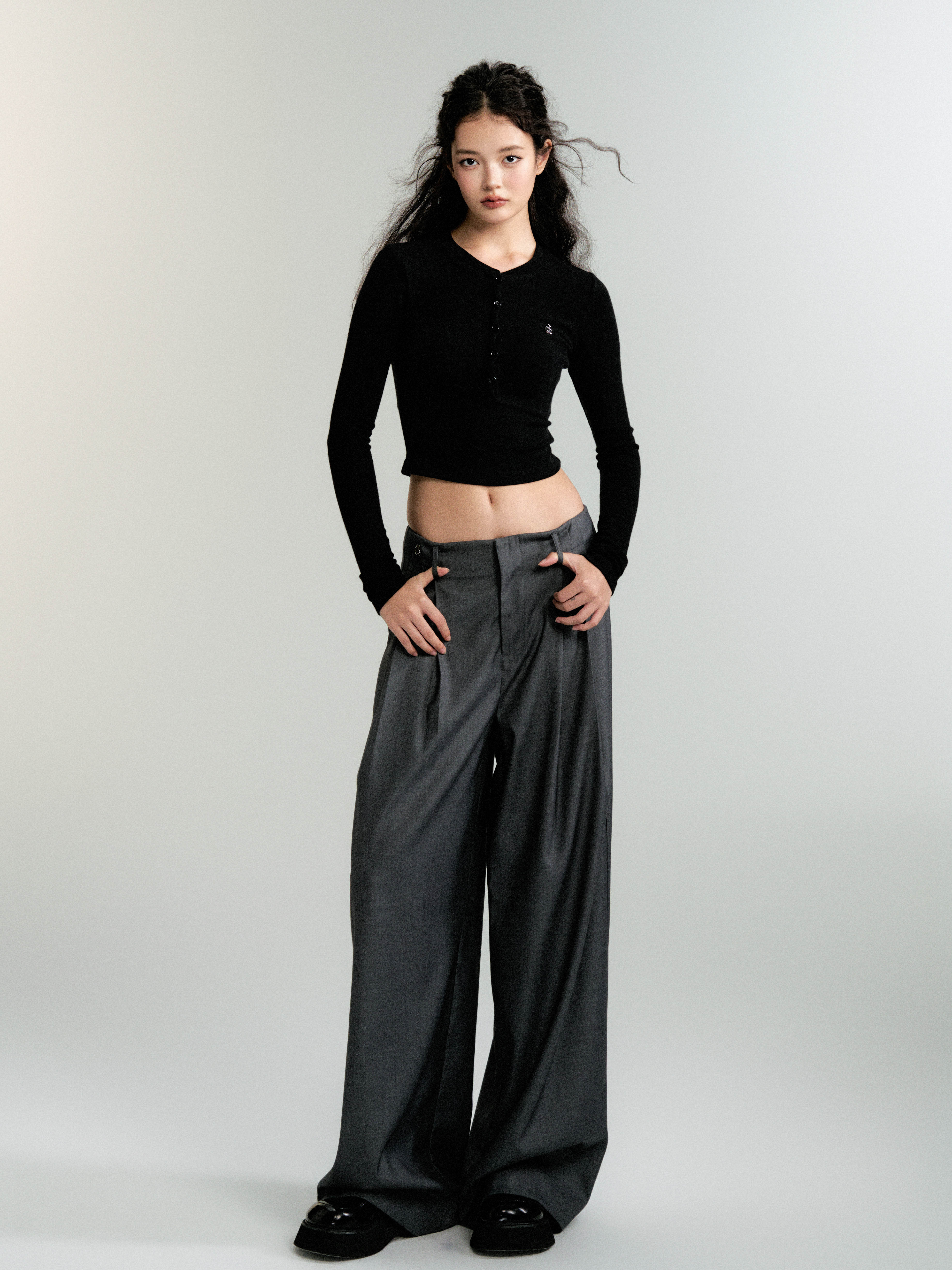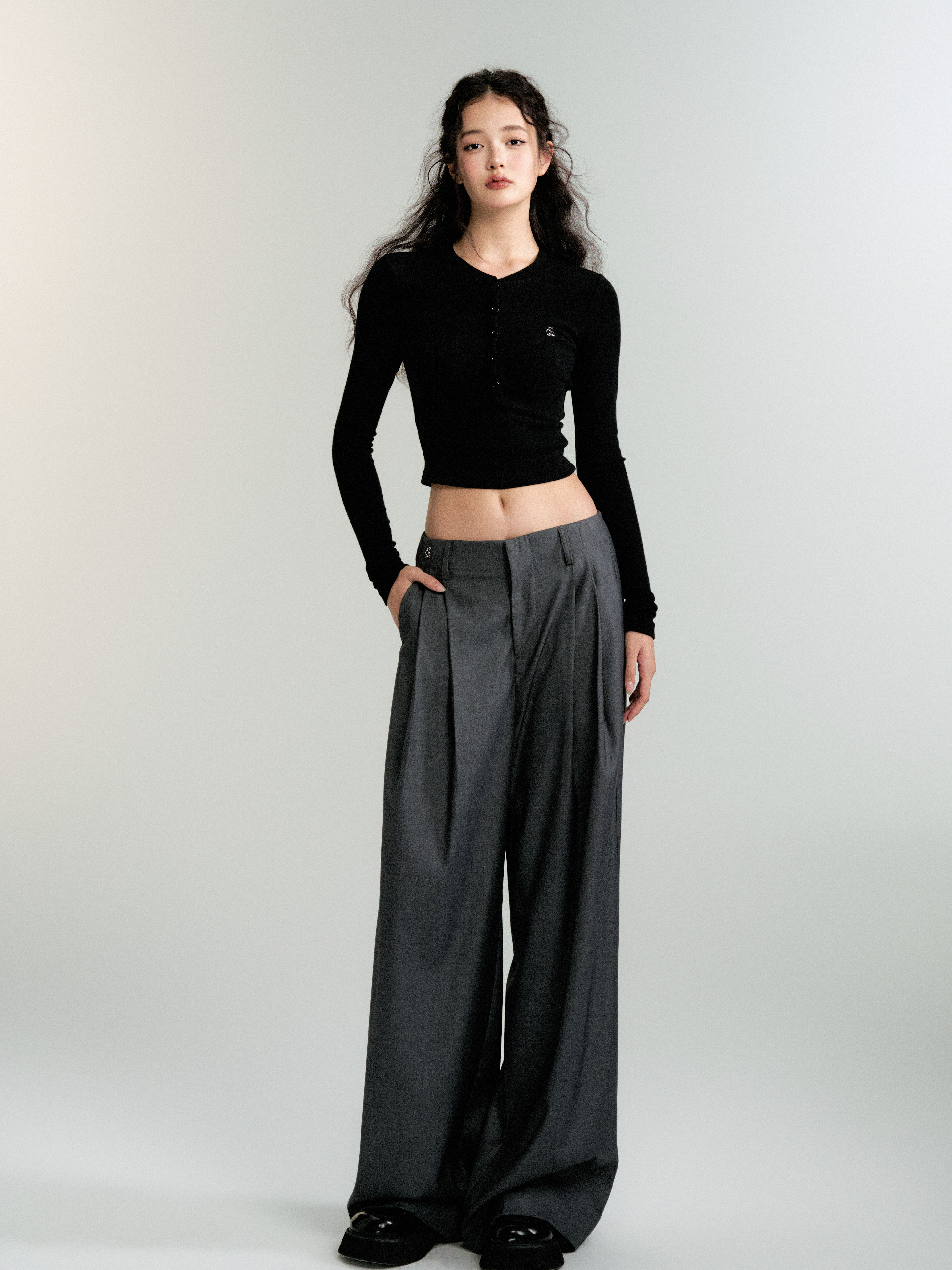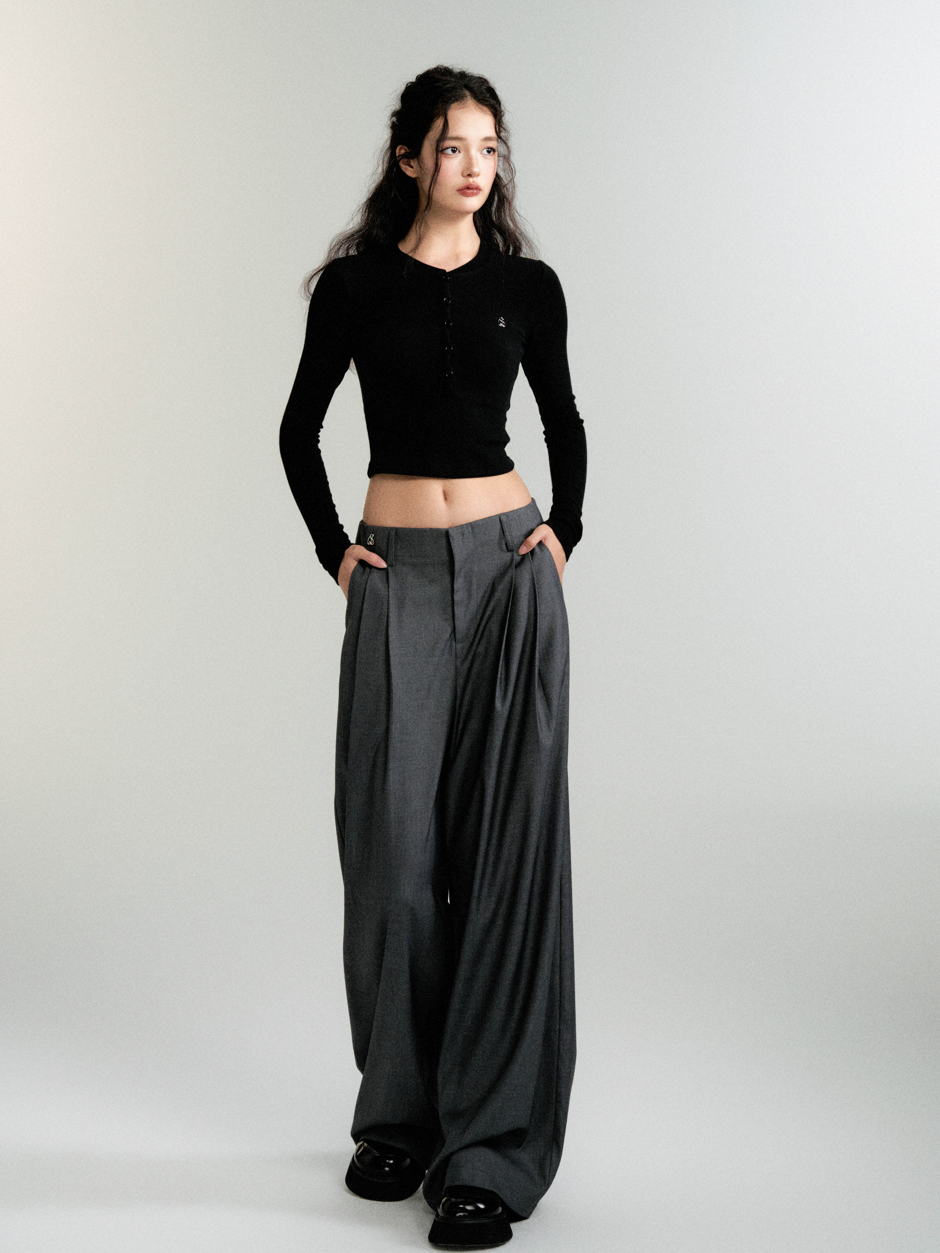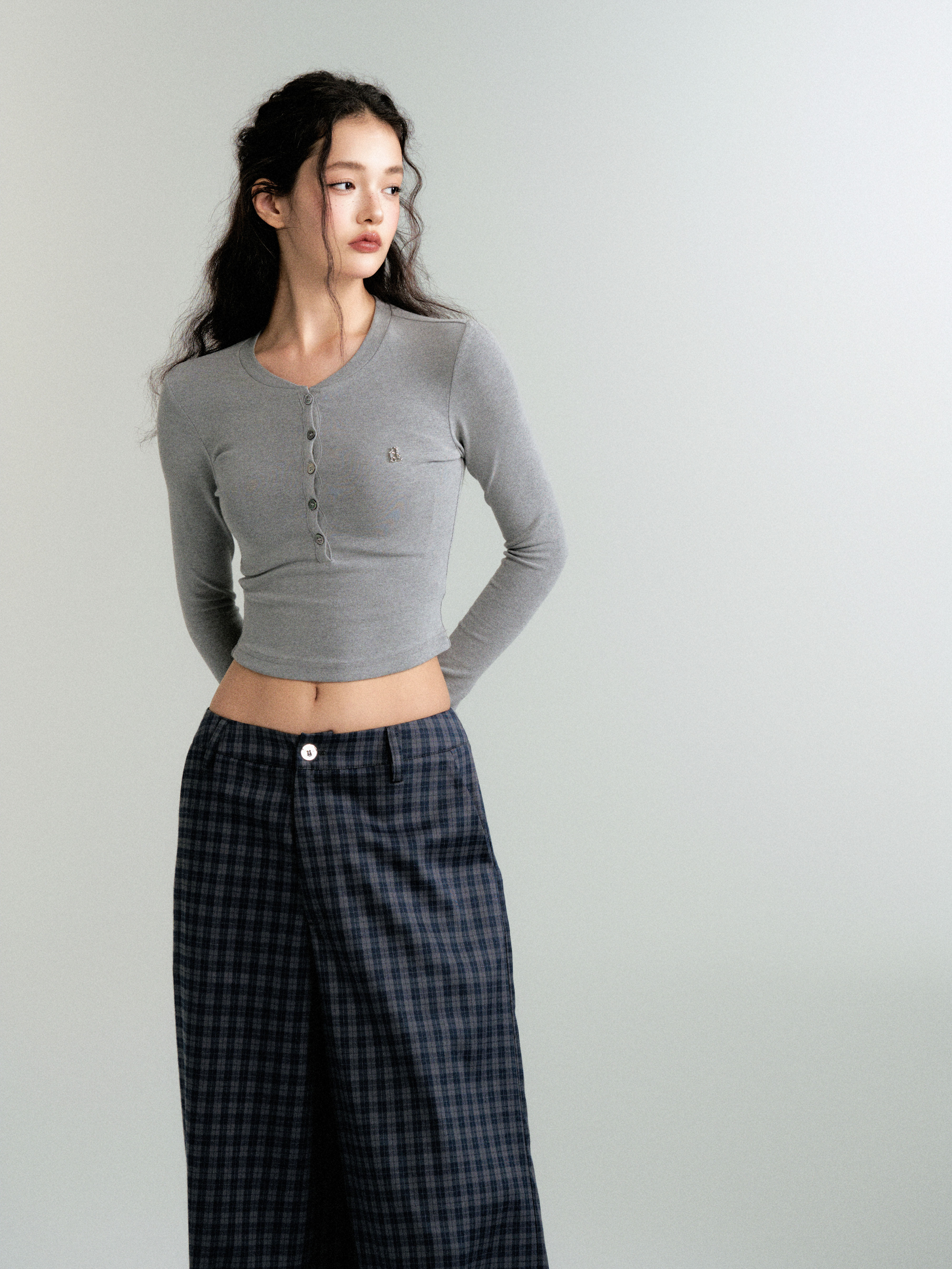 Vintage Henry Collar Slim Long Sleeve T-Shirt Base Layer