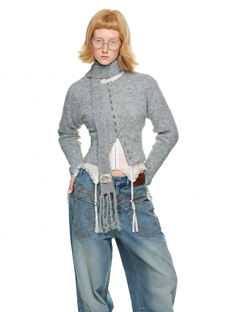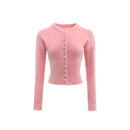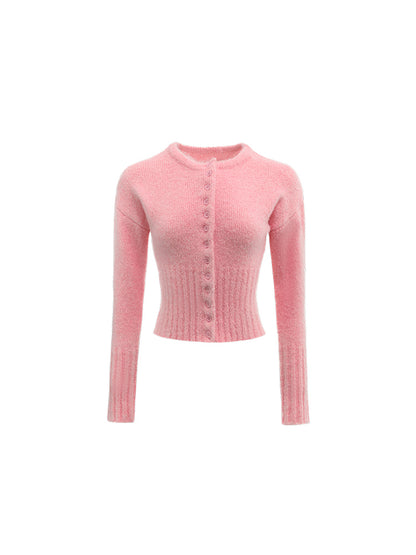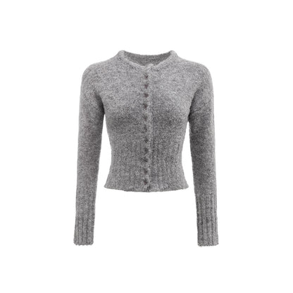 Alpaca Blend Knit Cardigan – Soft Slim Fit Round Neck Sweater