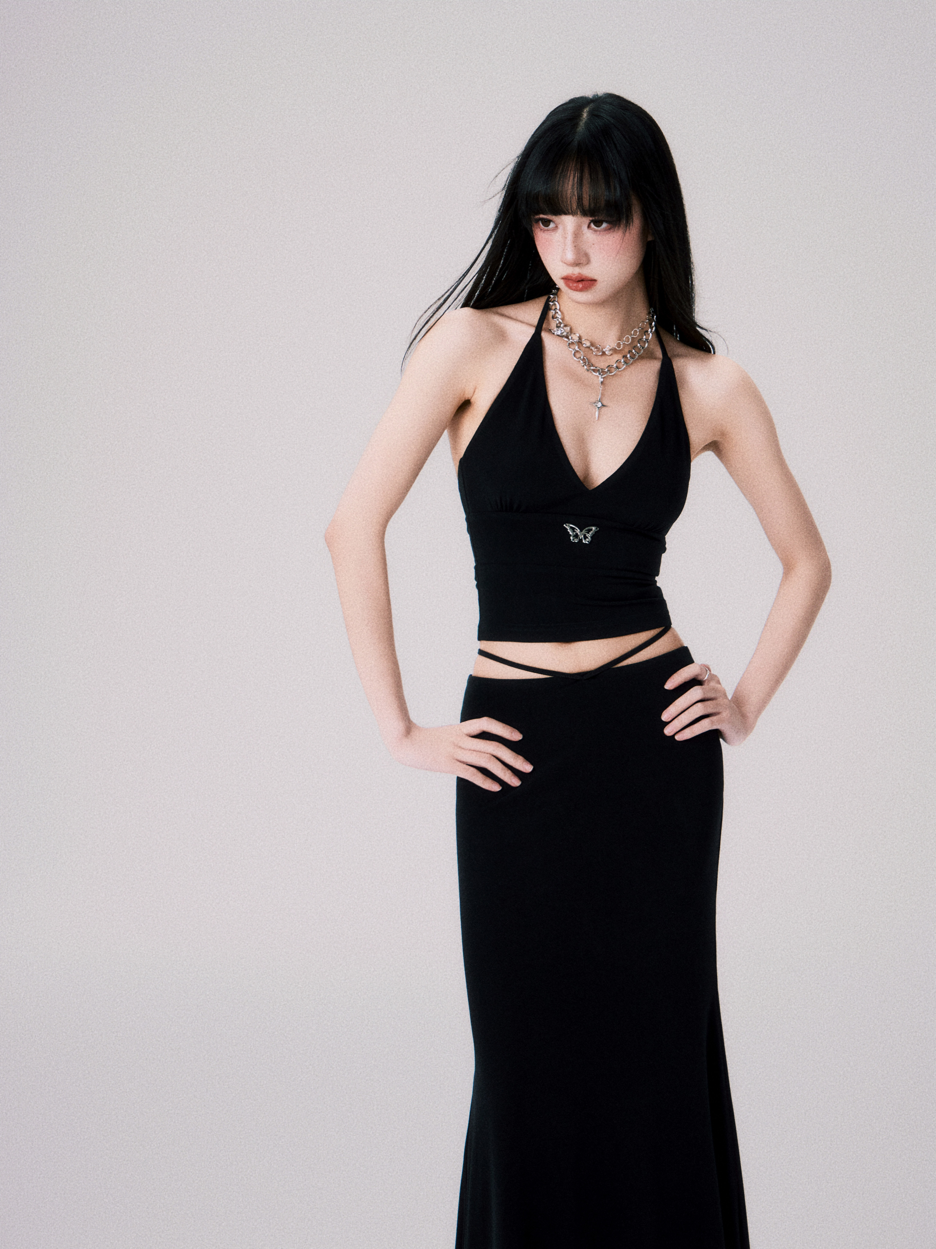 American Babes Strappy Vest & Low-Waist Maxi Skirt Set