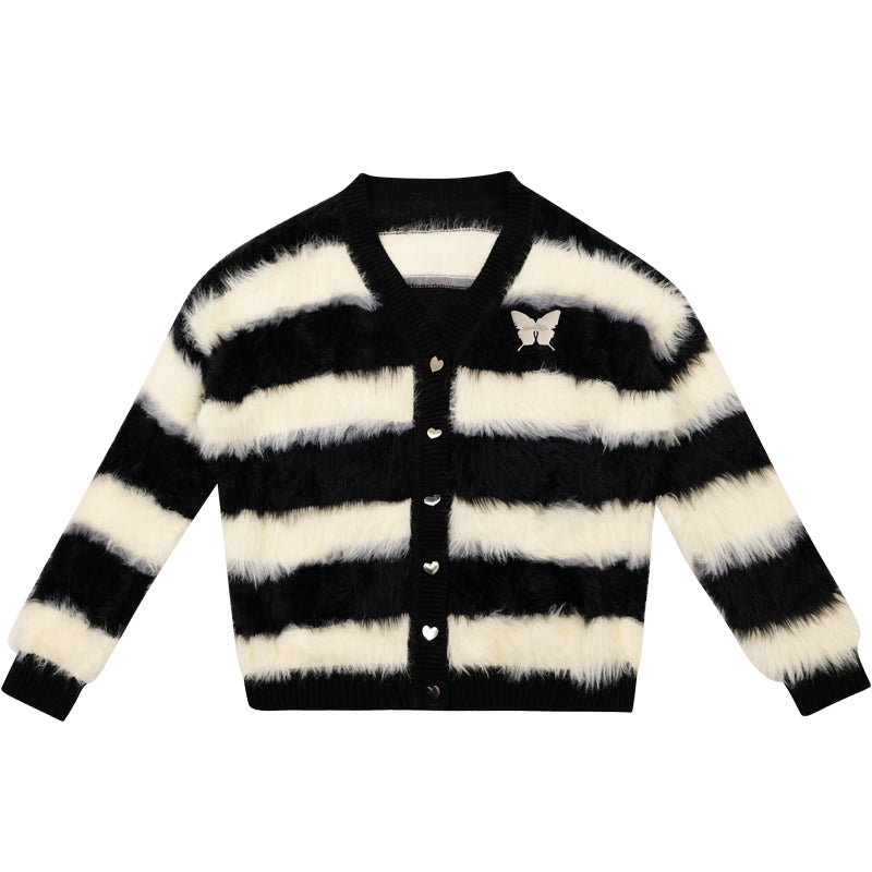 Black and White Stripes Glutinous Cardigan - Design Sense