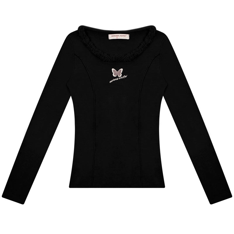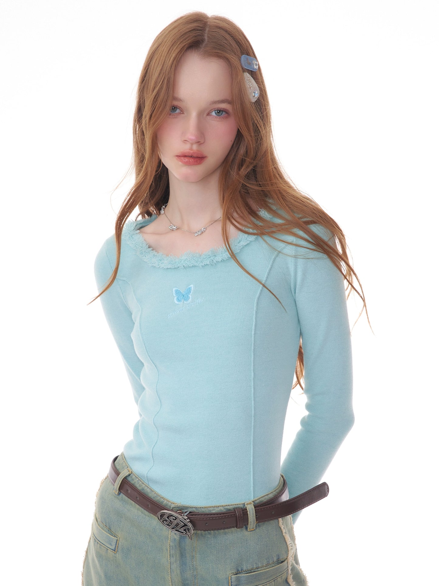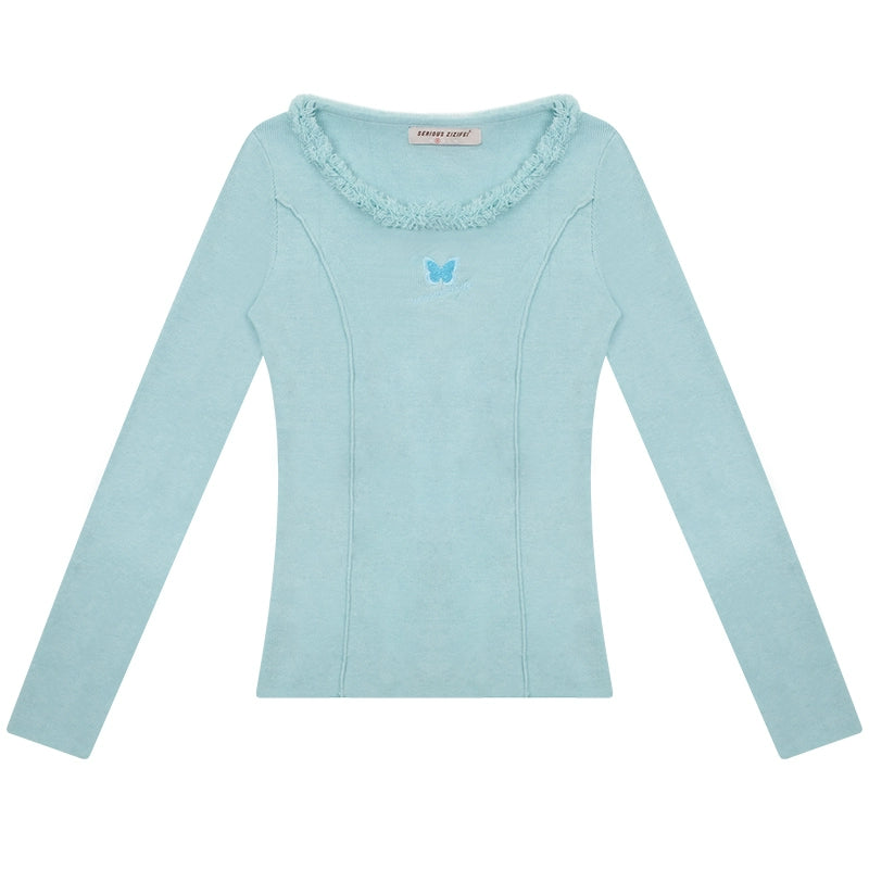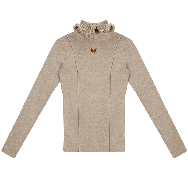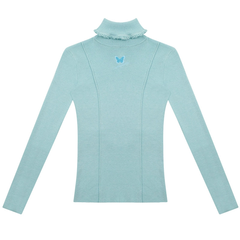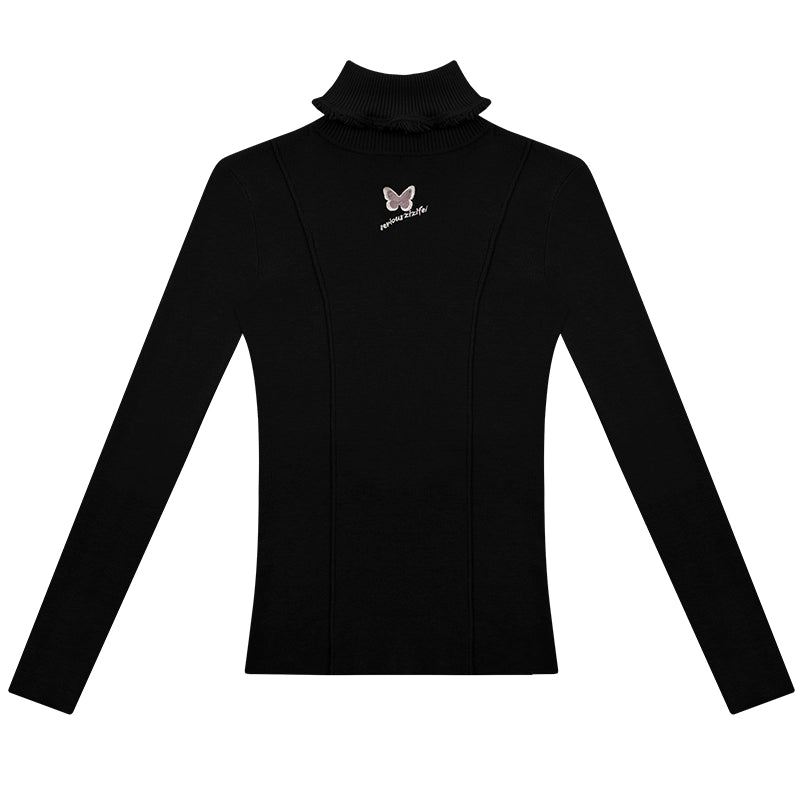 Butterfly Embroidered High Neck Knit Top | Slim Fit for Autumn/Winter