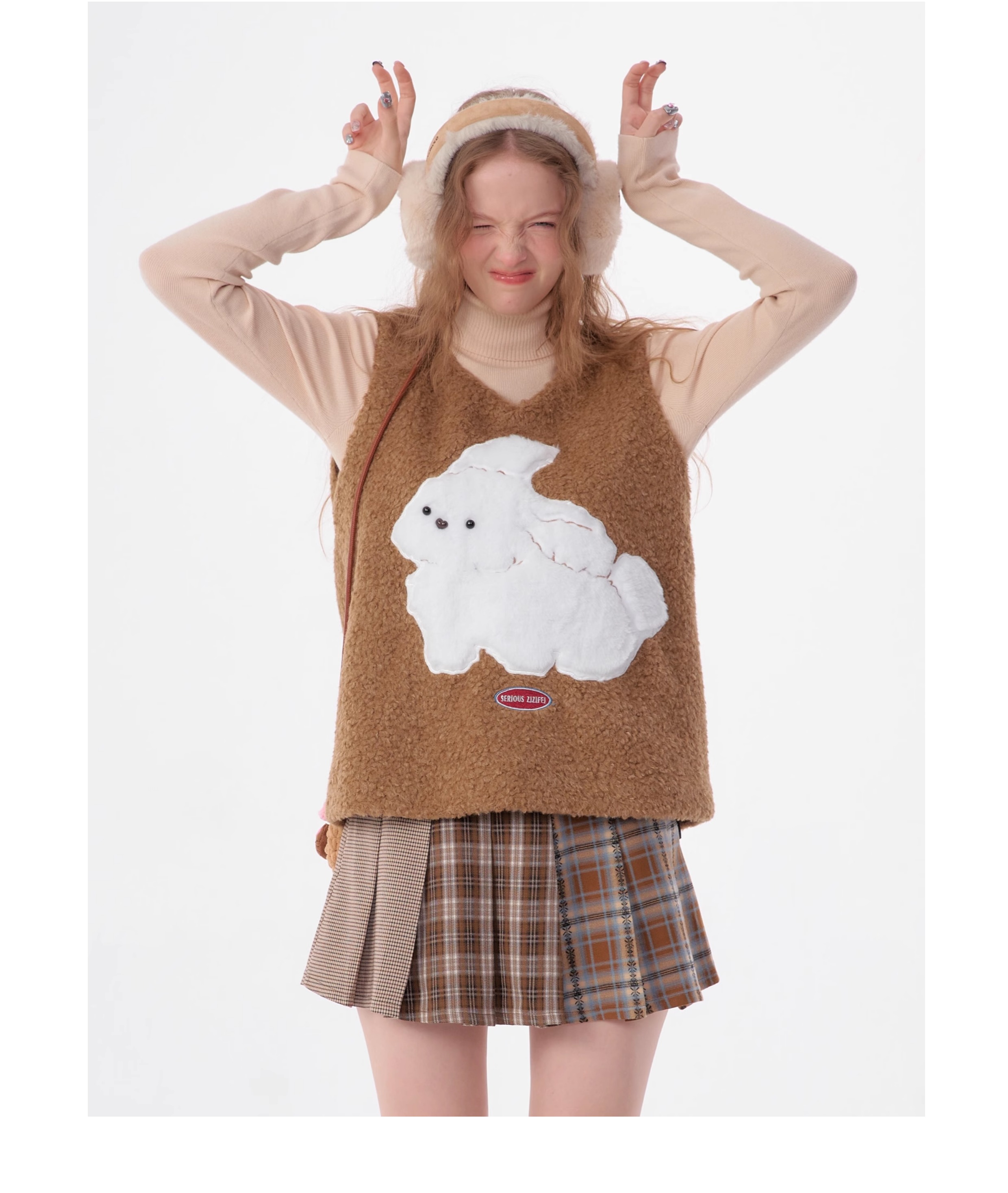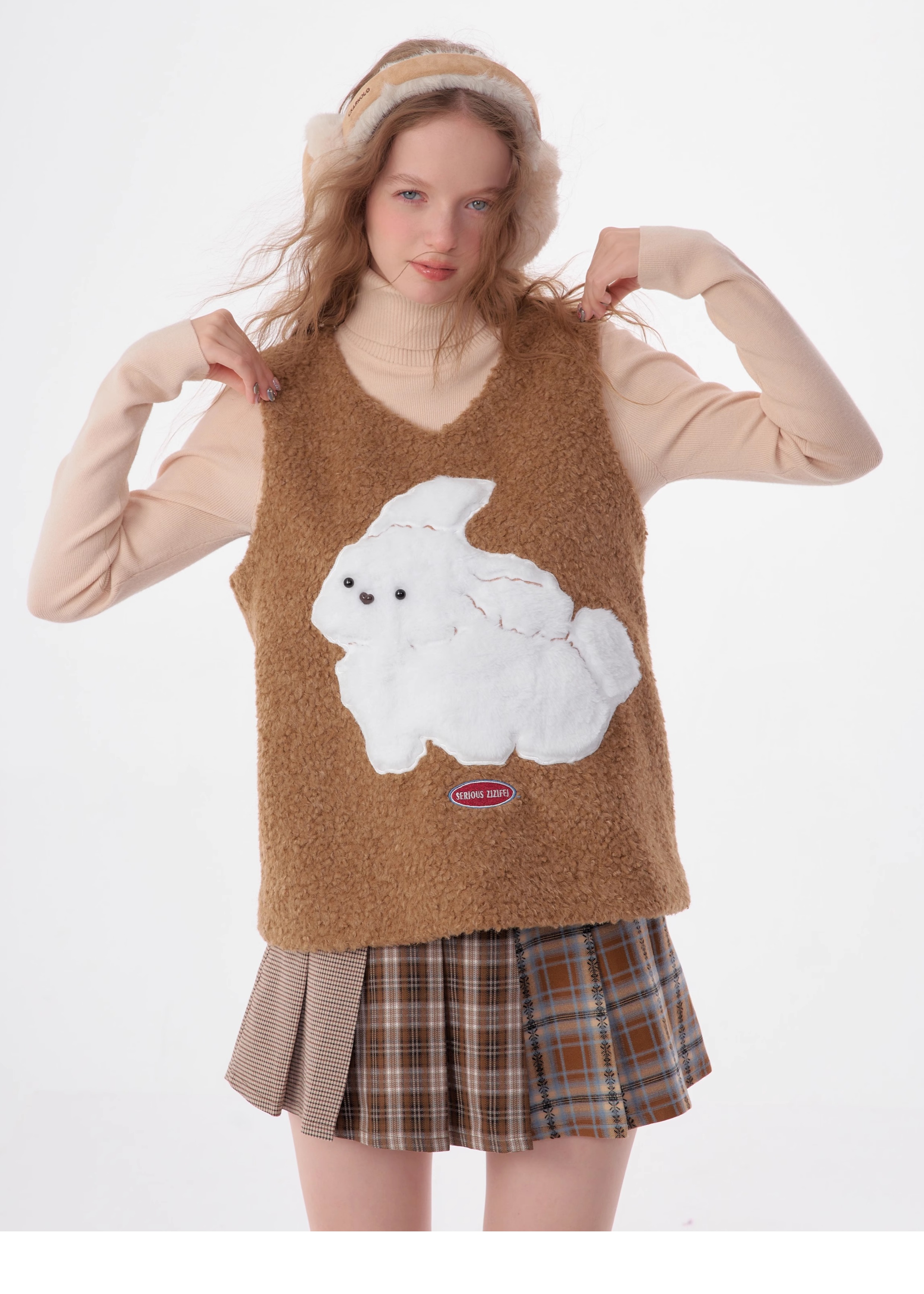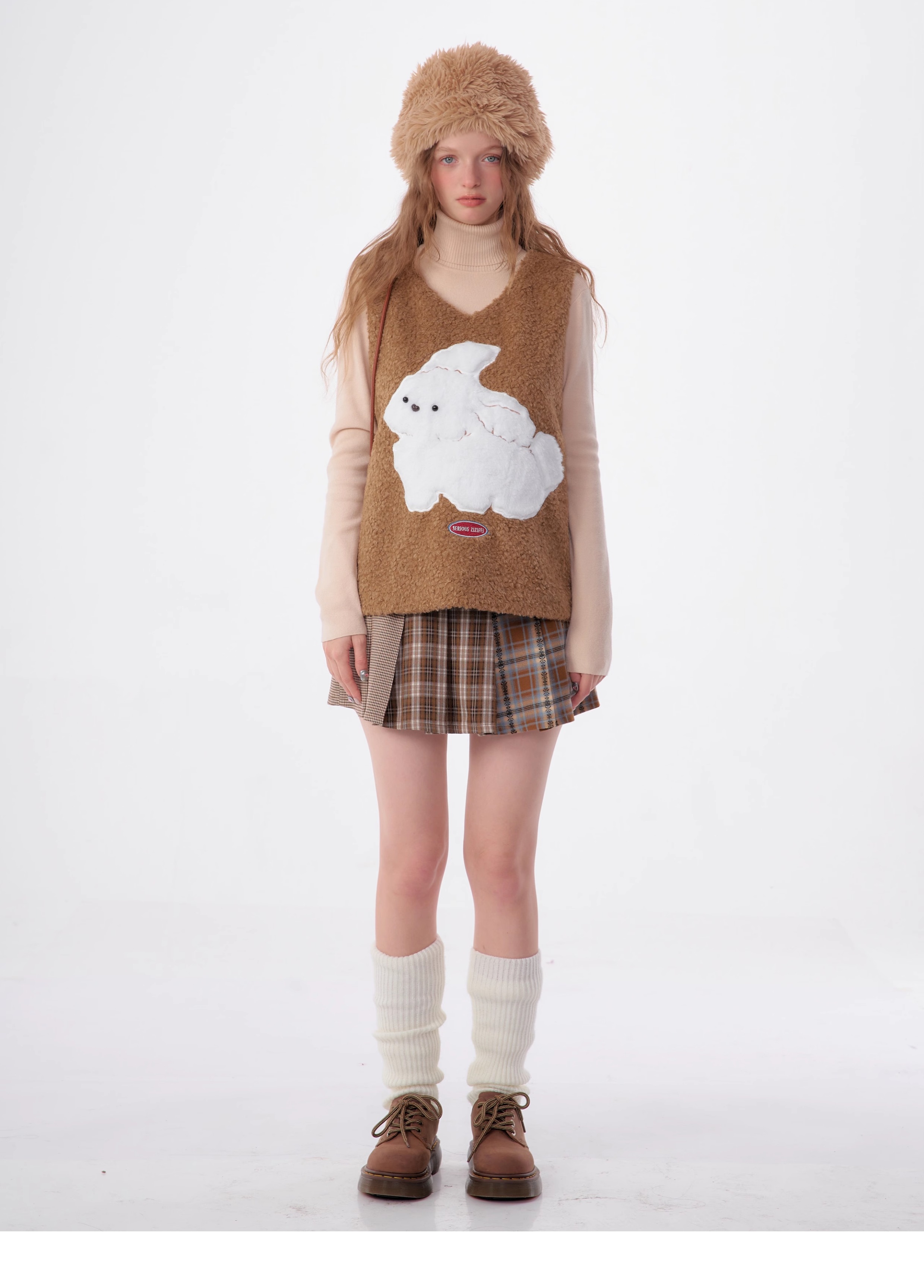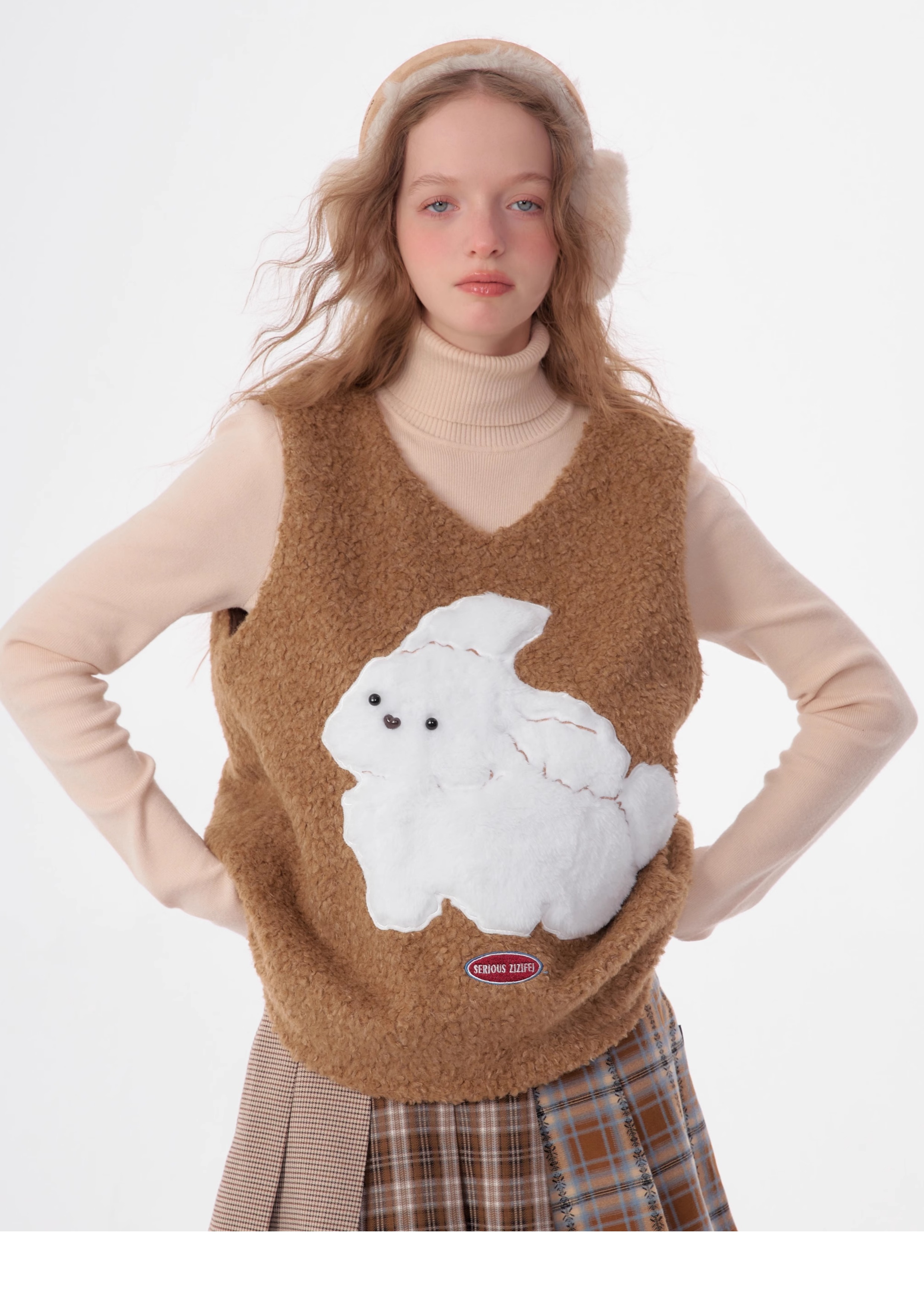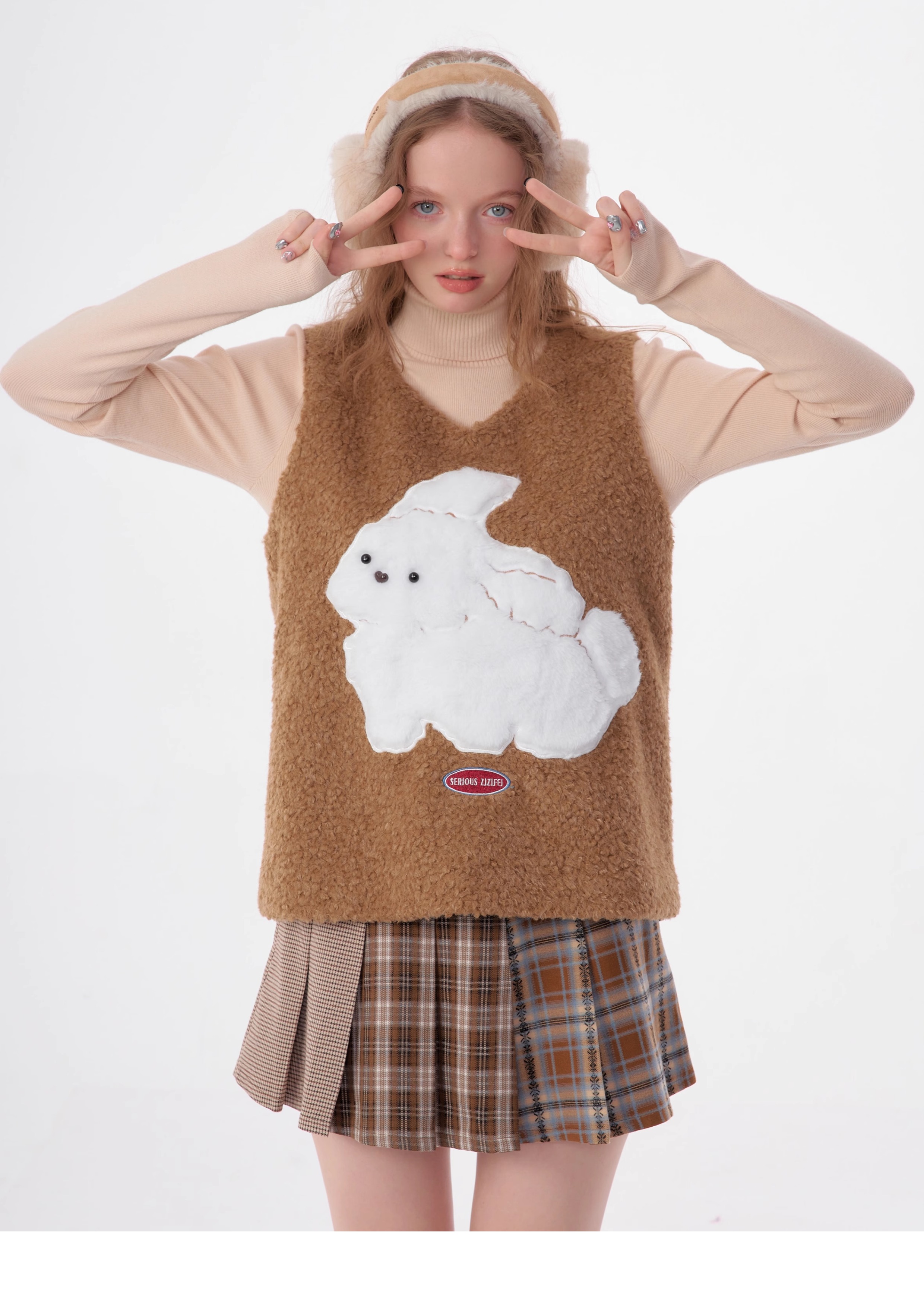 Rabbit Pattern Sweater Vest | Plush Knitted Retro Design for Autumn/Winter