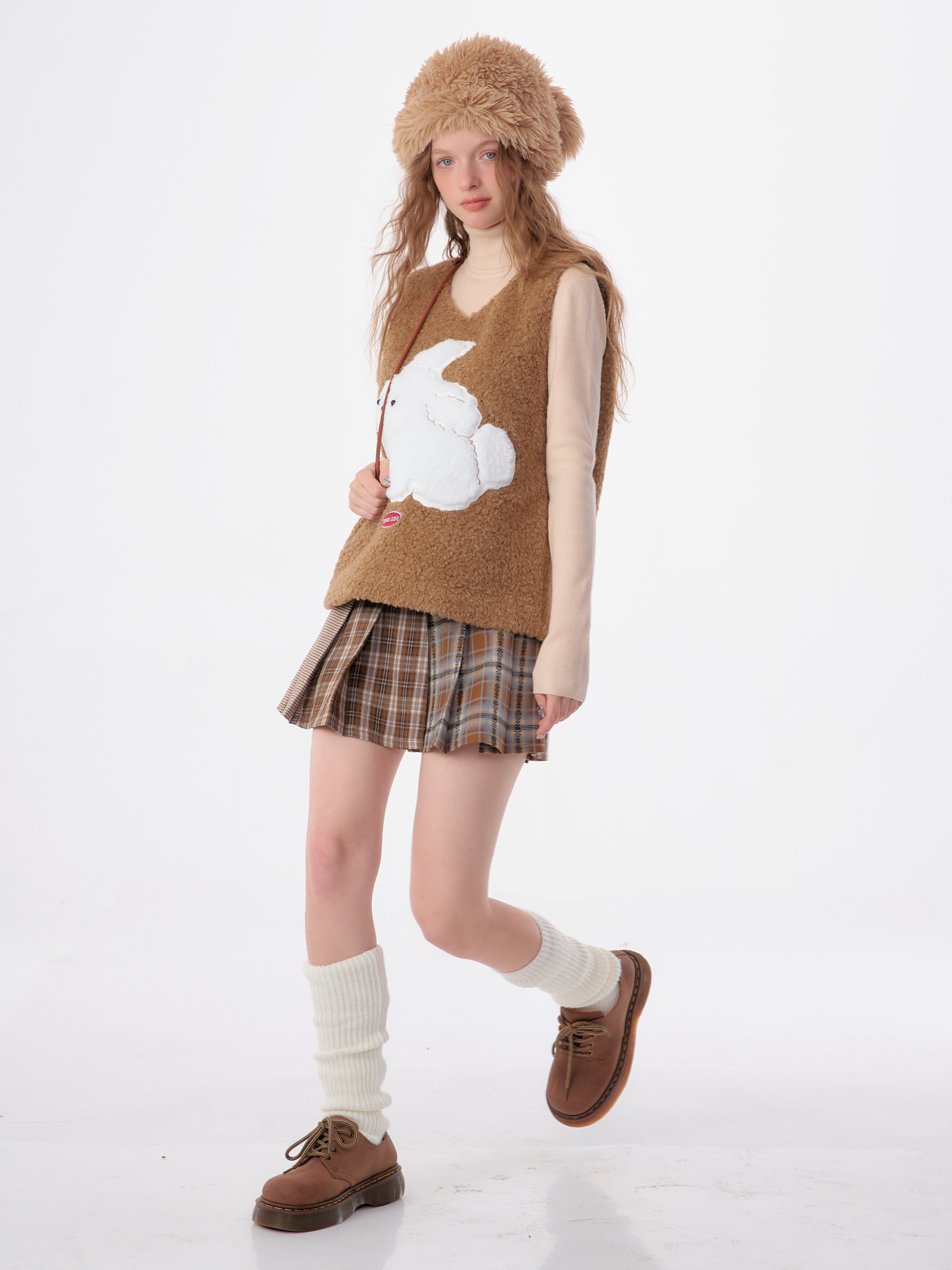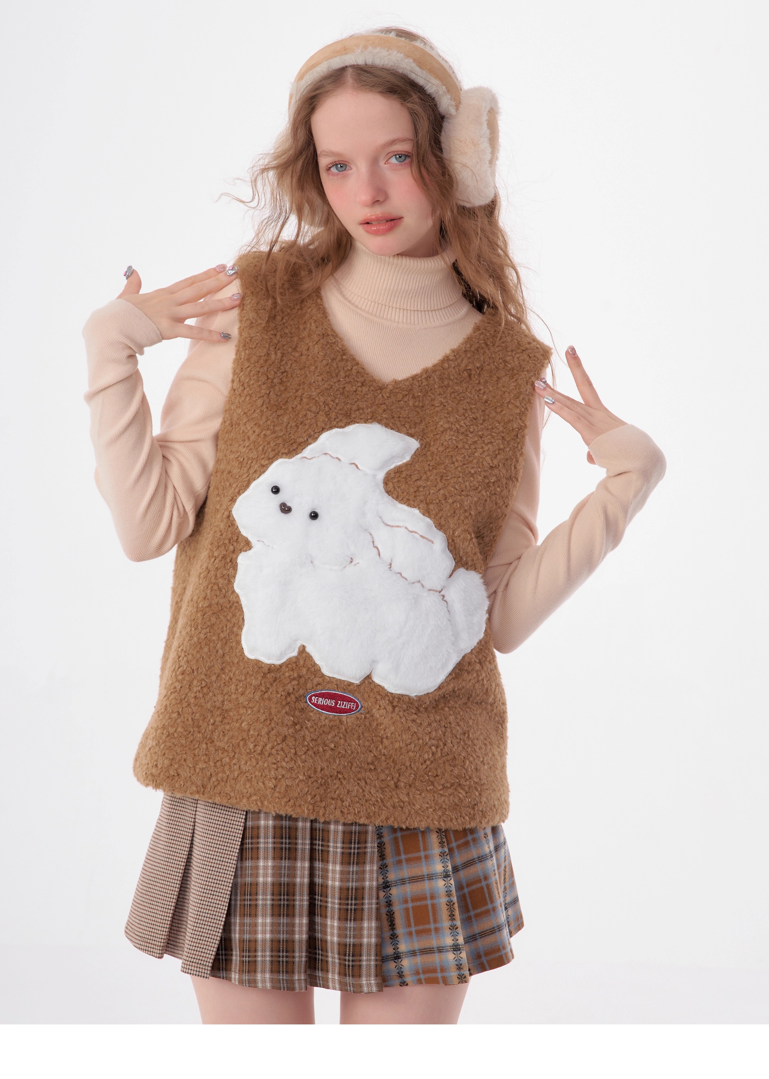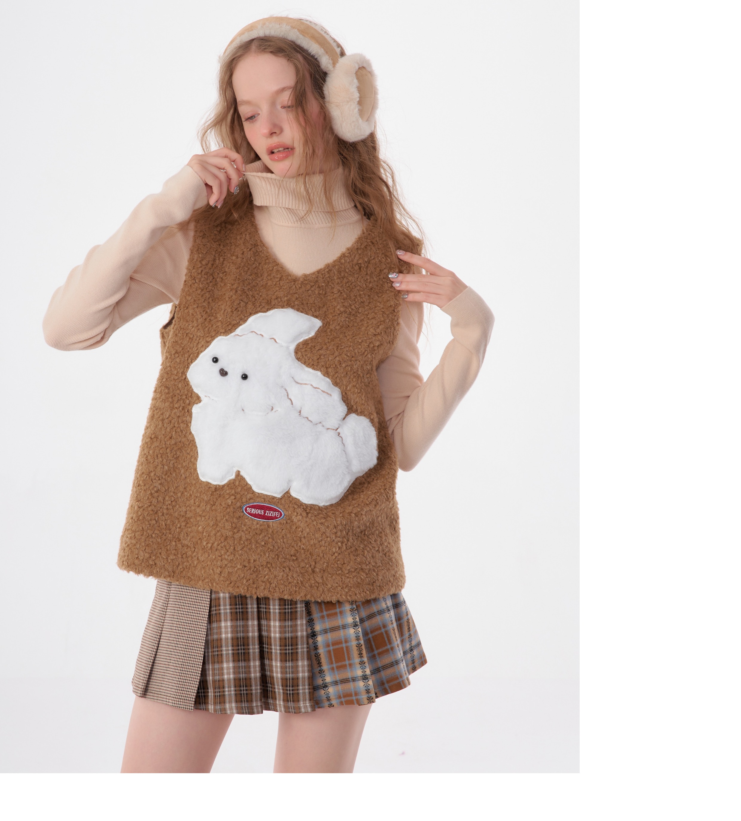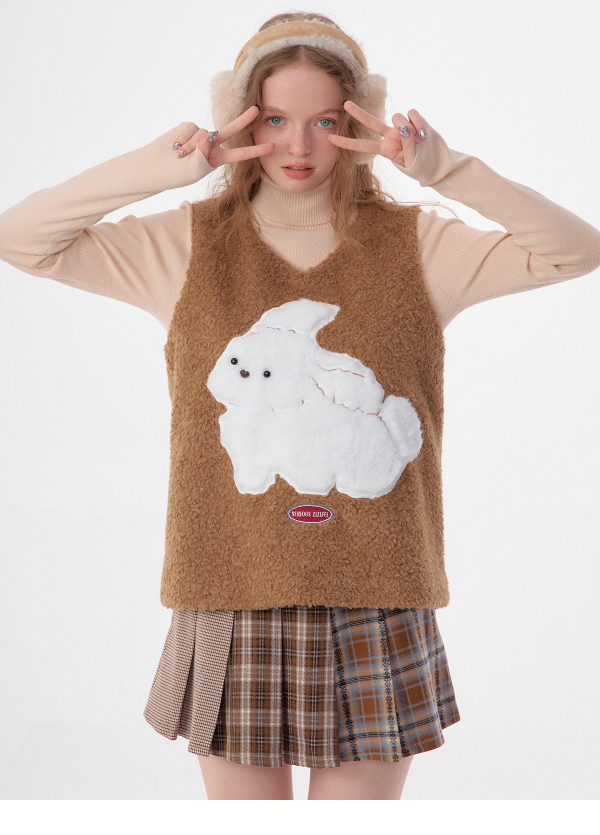Rabbit Pattern Sweater Vest | Plush Knitted Retro Design for Autumn/Winter