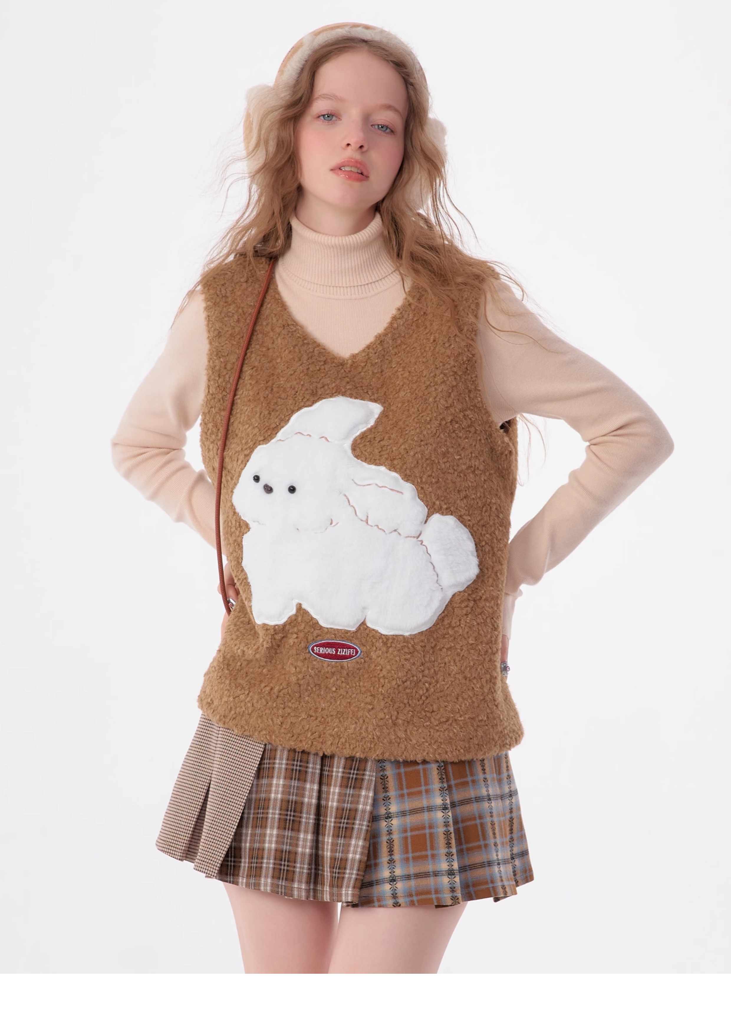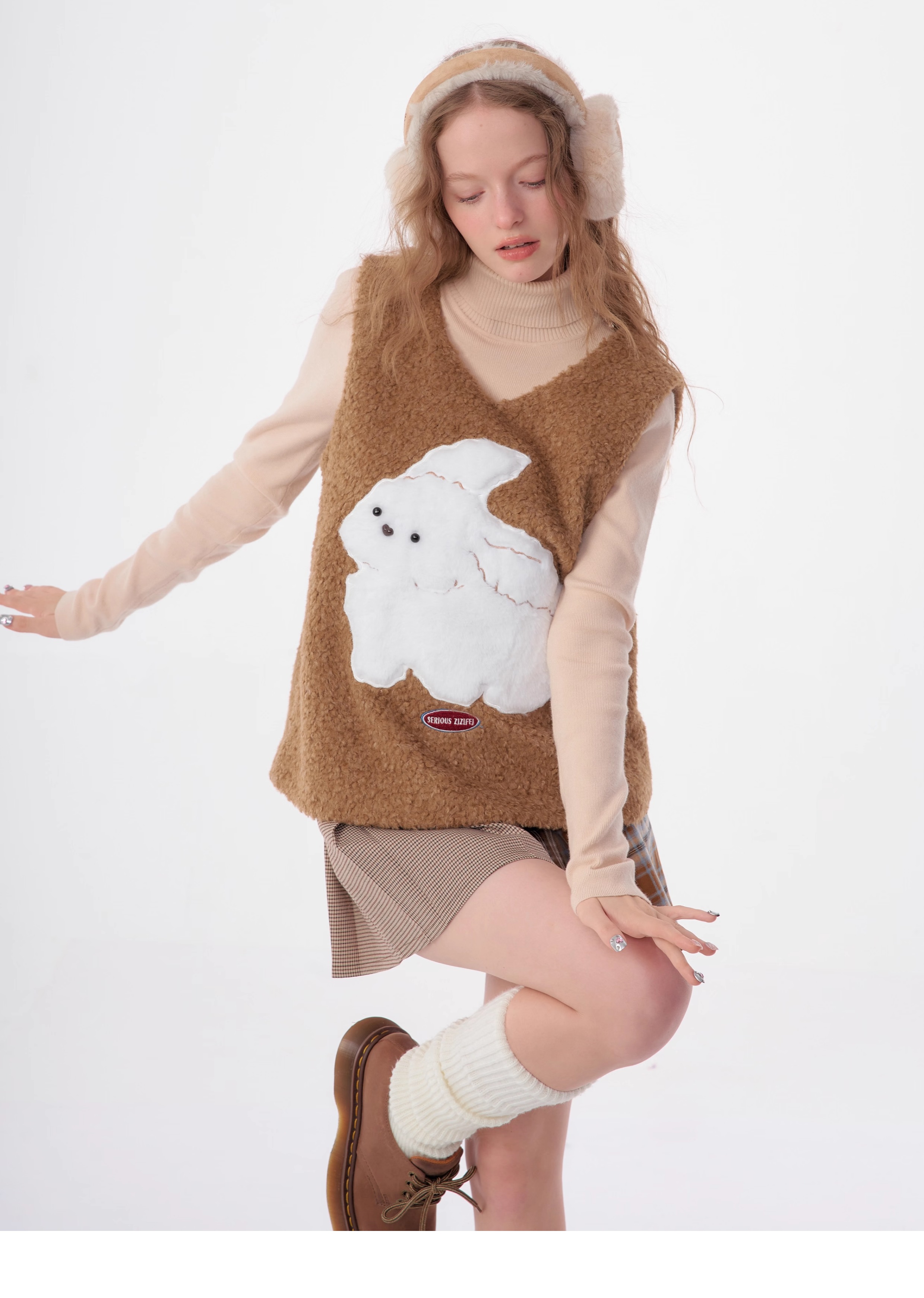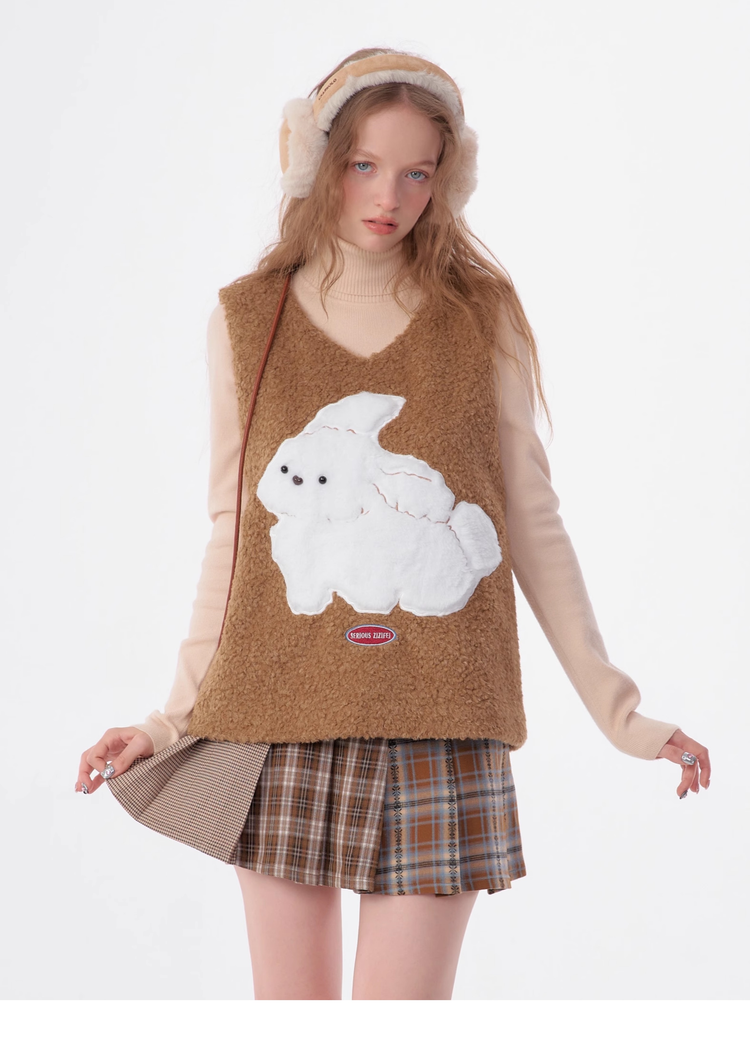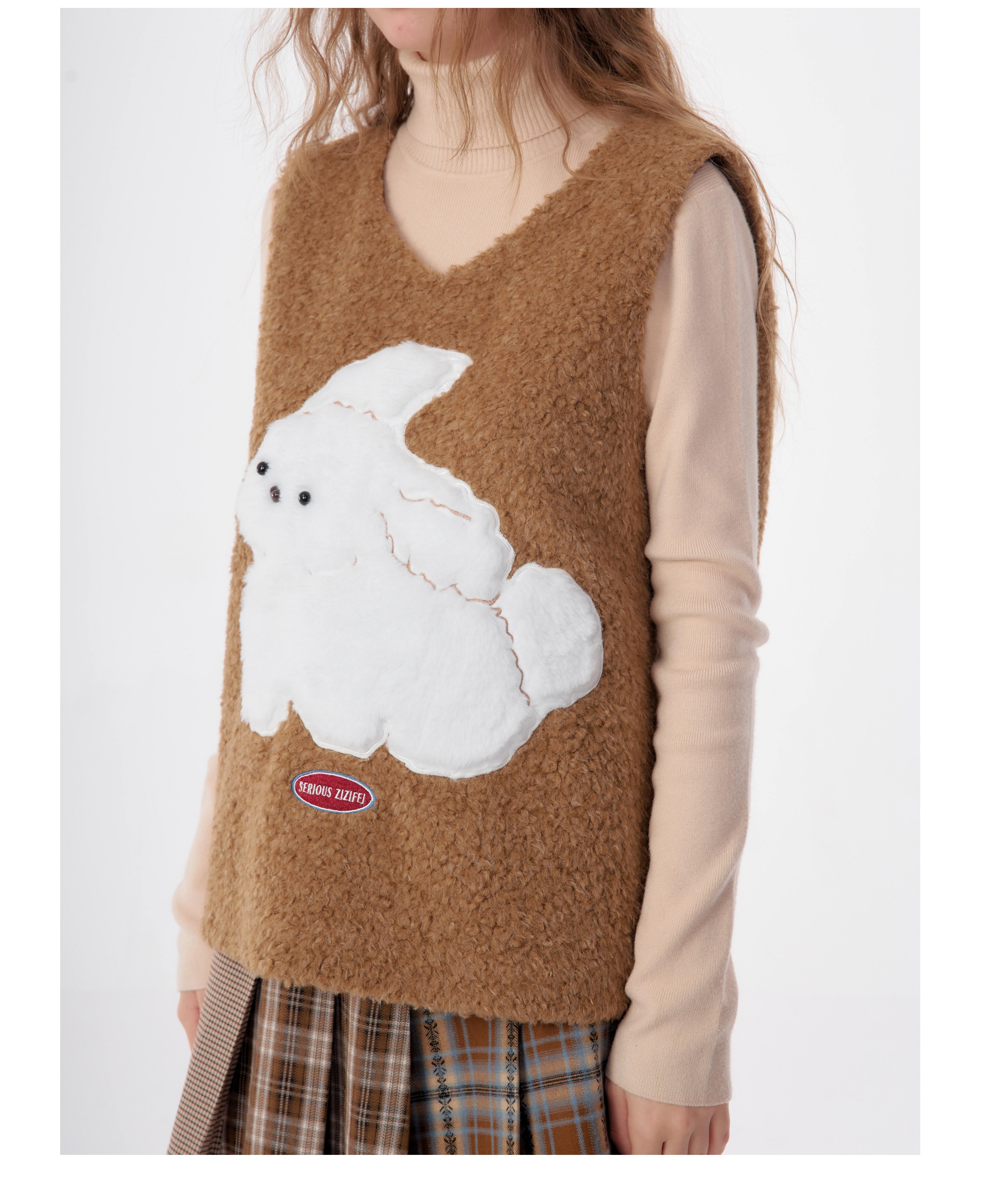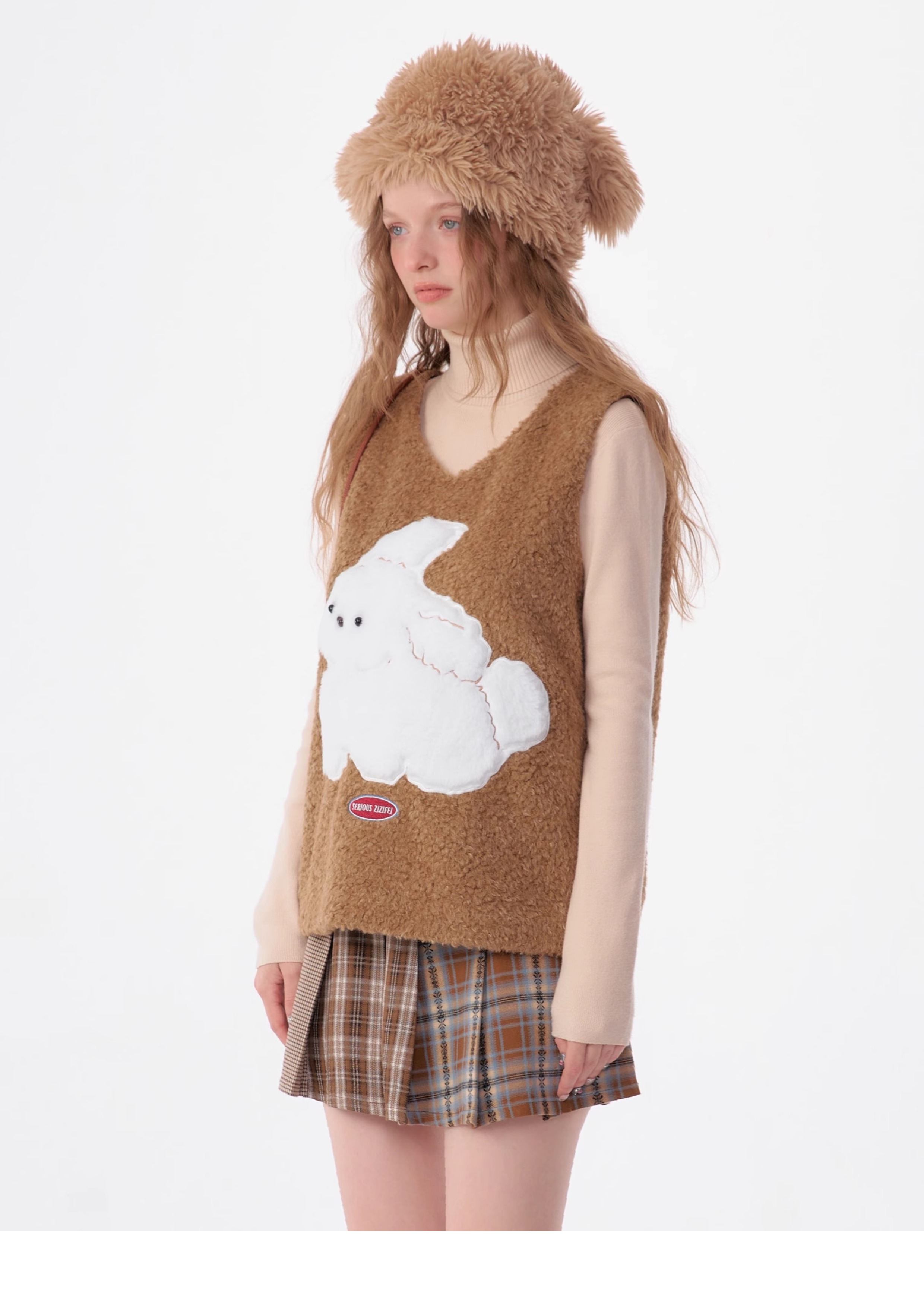 Rabbit Pattern Sweater Vest | Plush Knitted Retro Design for Autumn/Winter