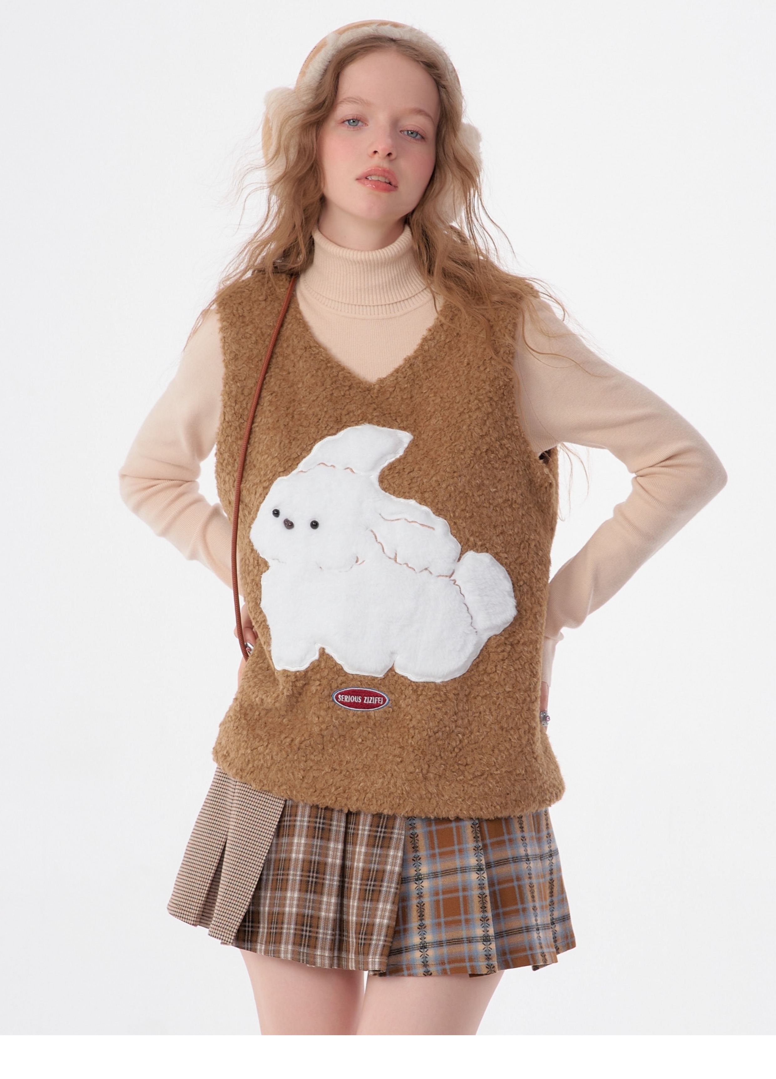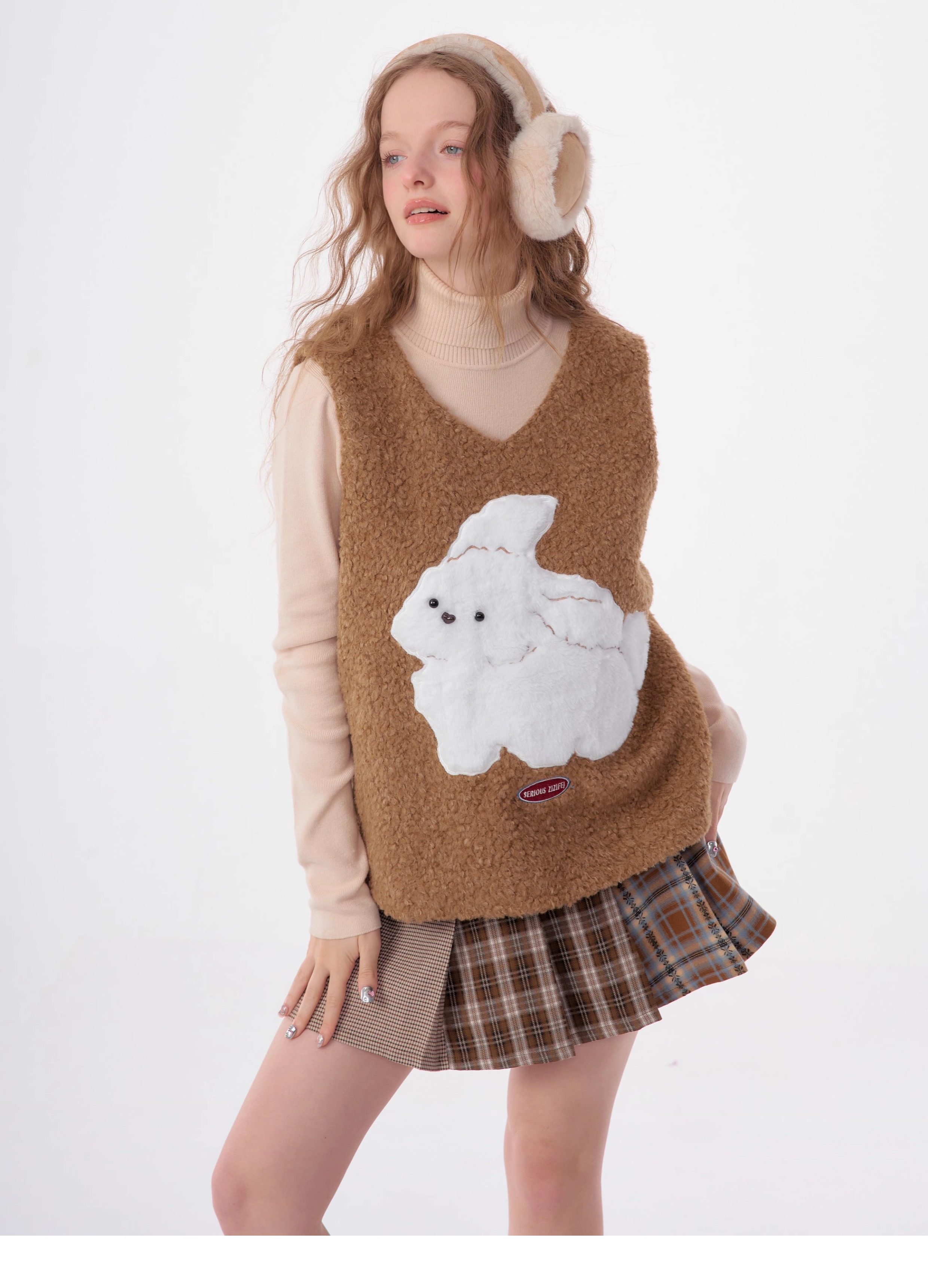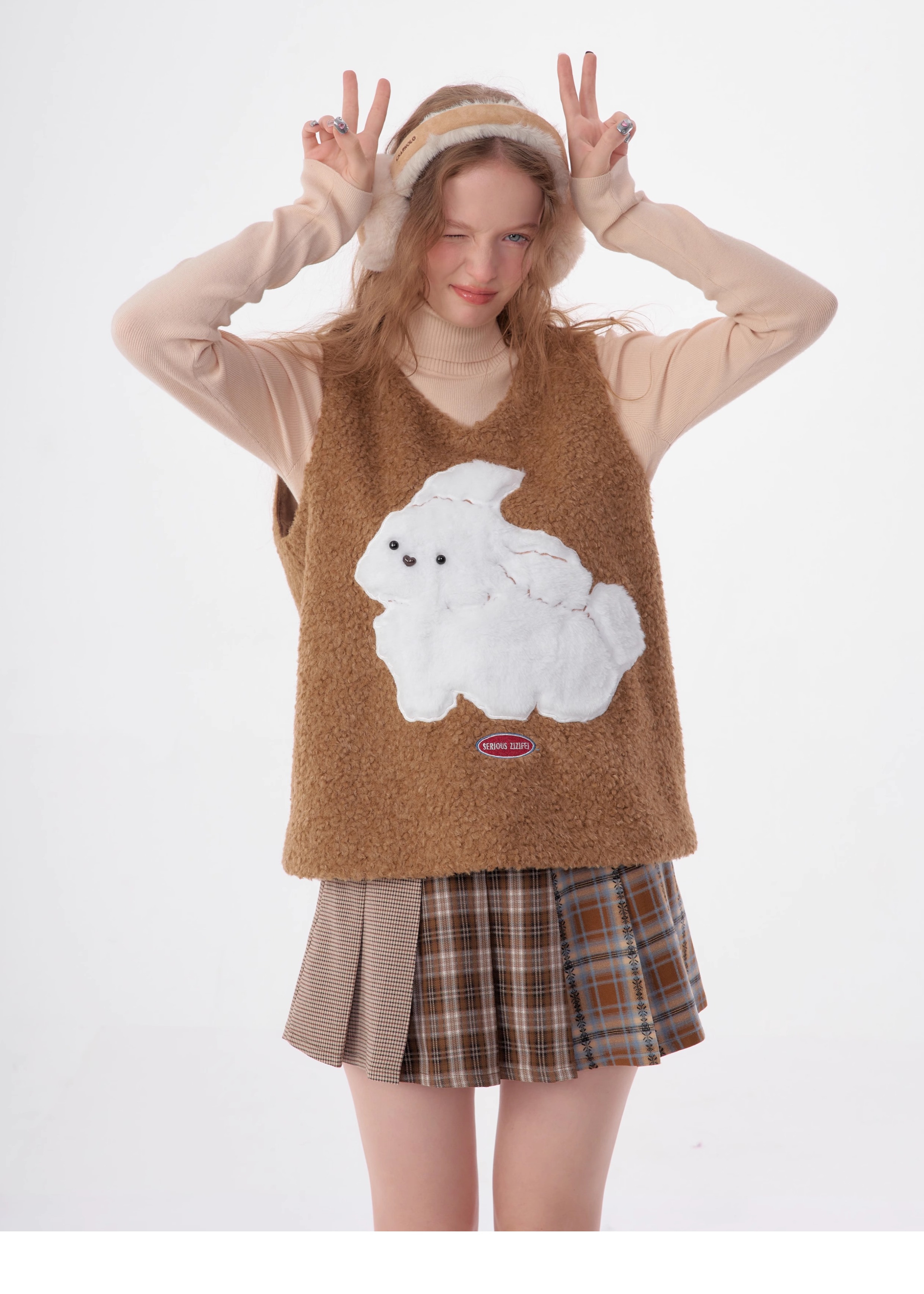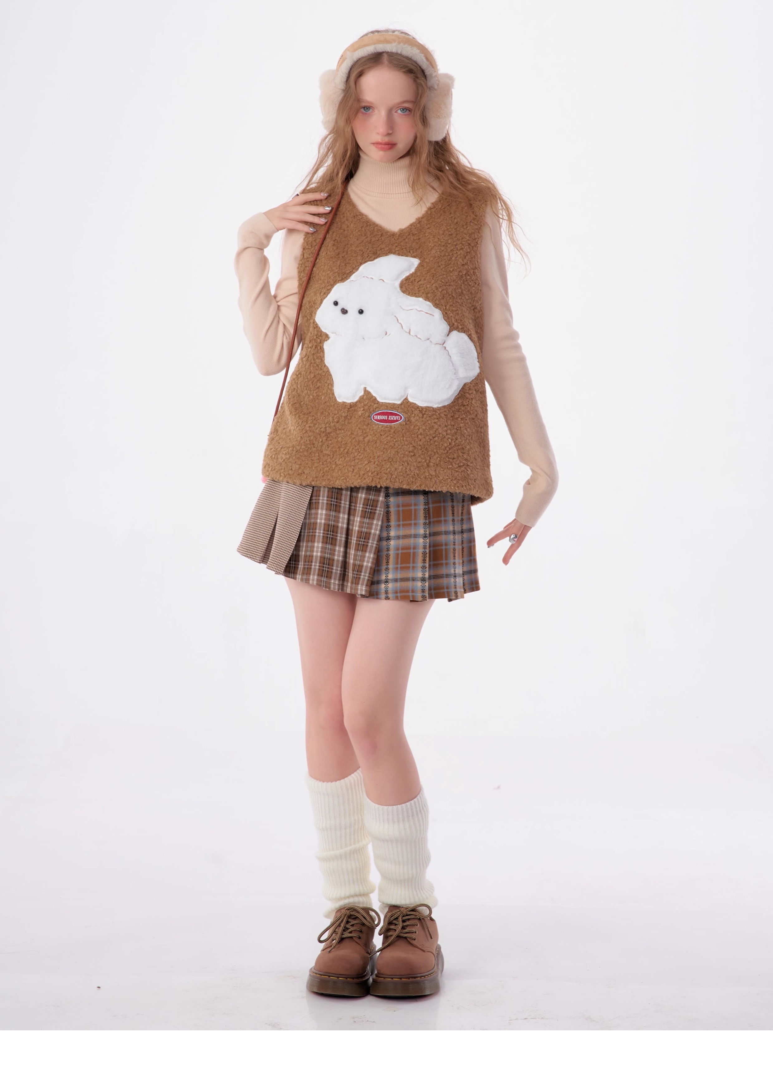 Rabbit Pattern Sweater Vest | Plush Knitted Retro Design for Autumn/Winter