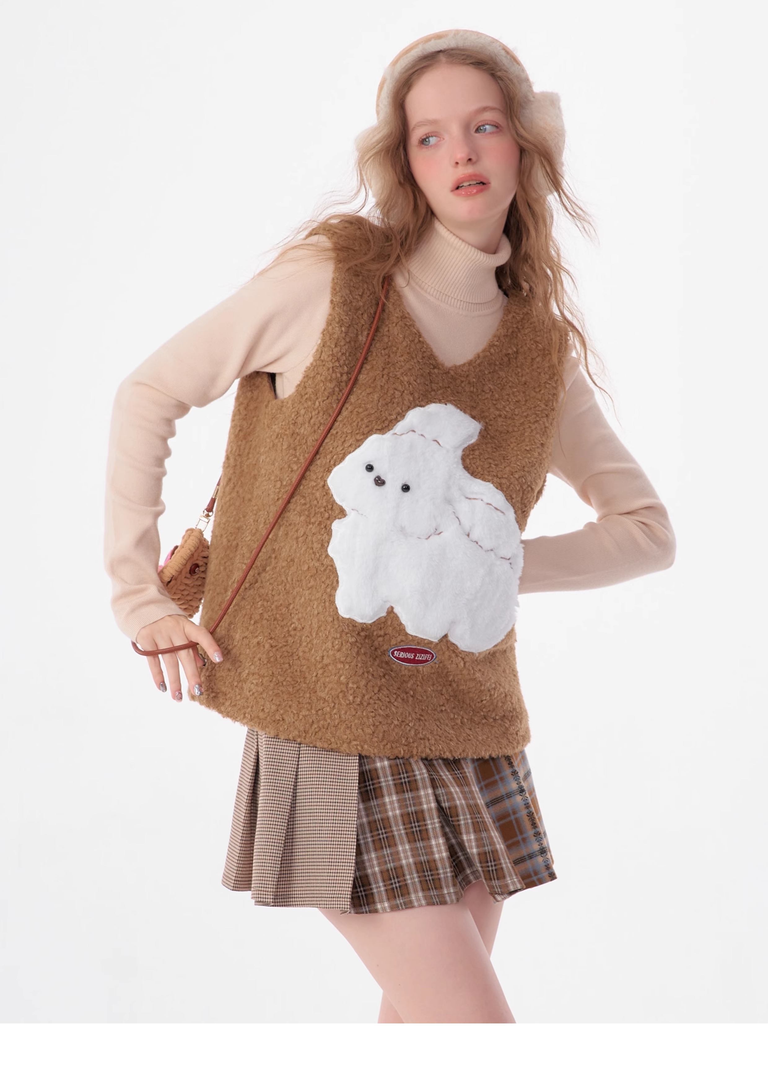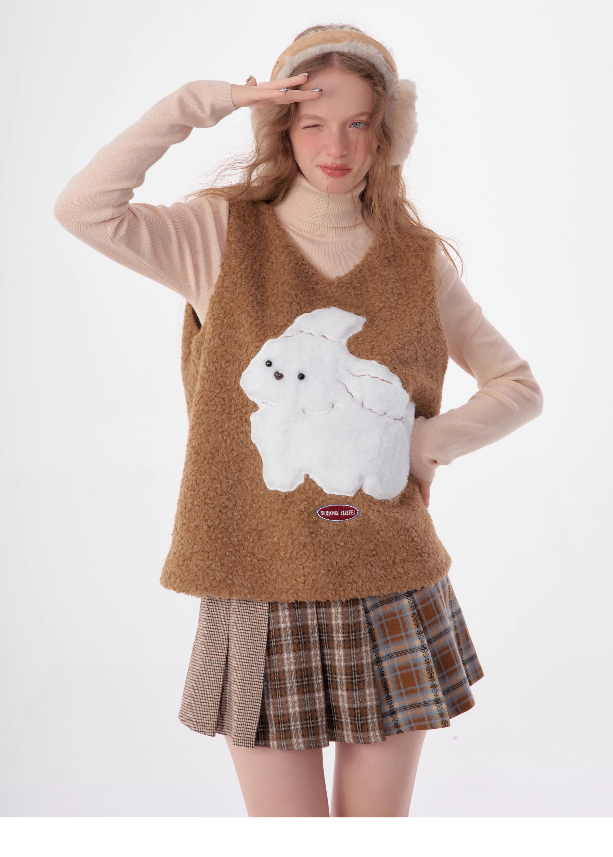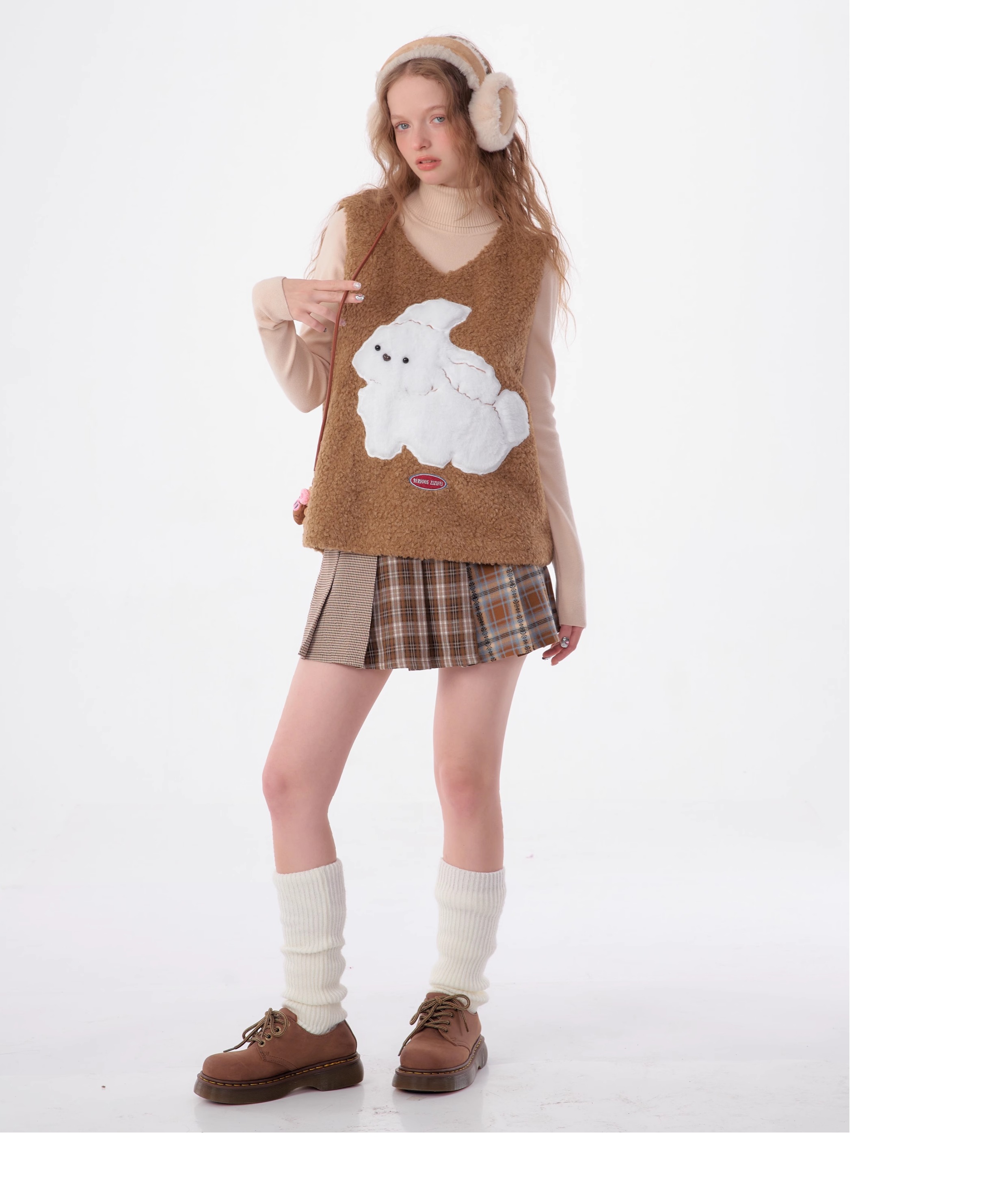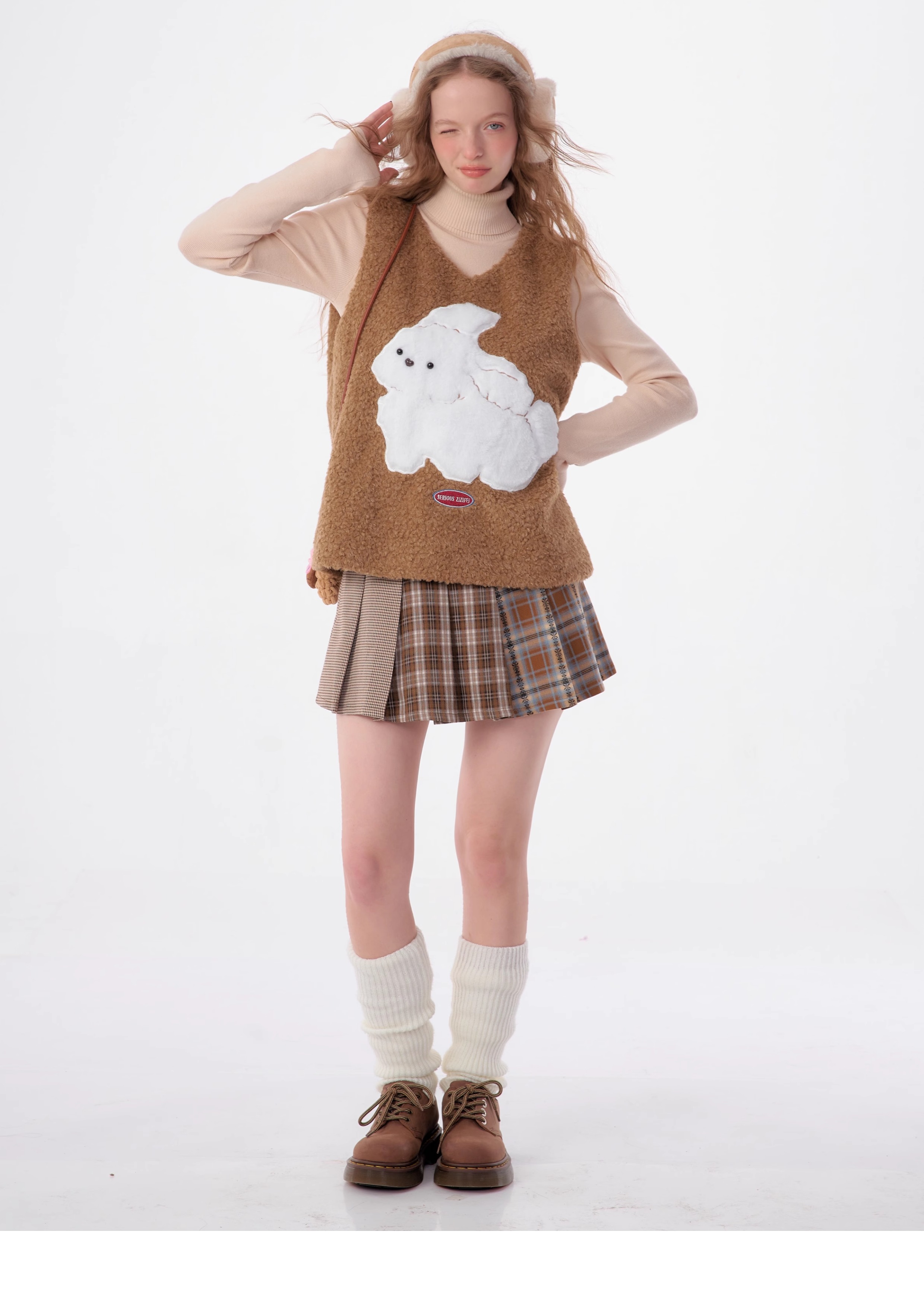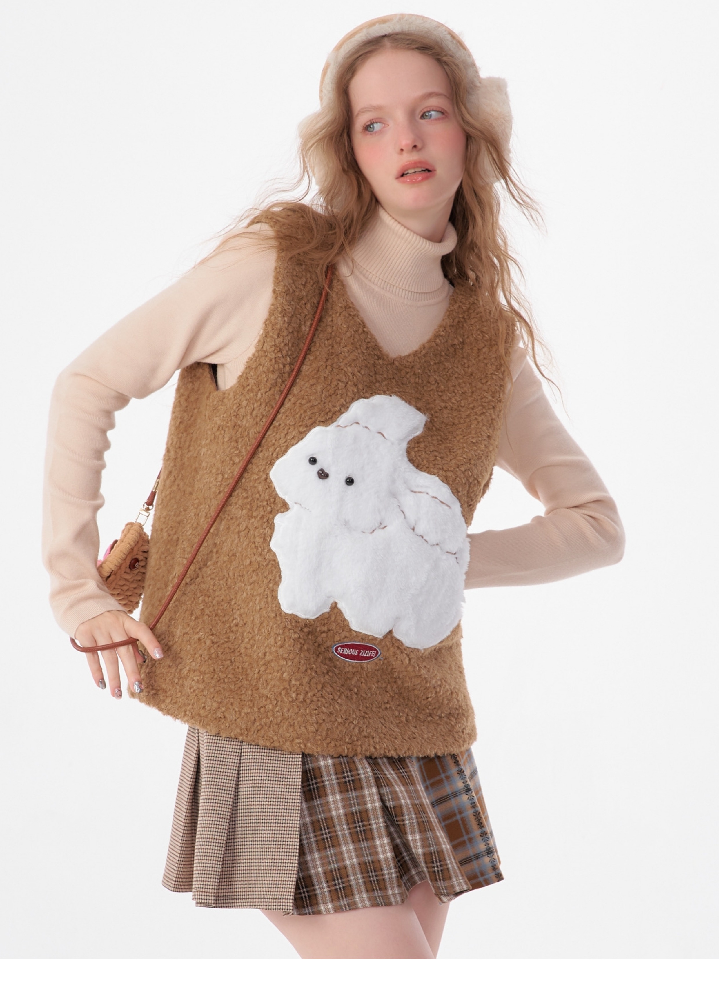 Rabbit Pattern Sweater Vest | Plush Knitted Retro Design for Autumn/Winter