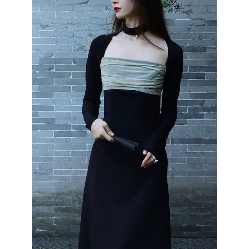 Autumn Plant Dye Spliced Long Dress