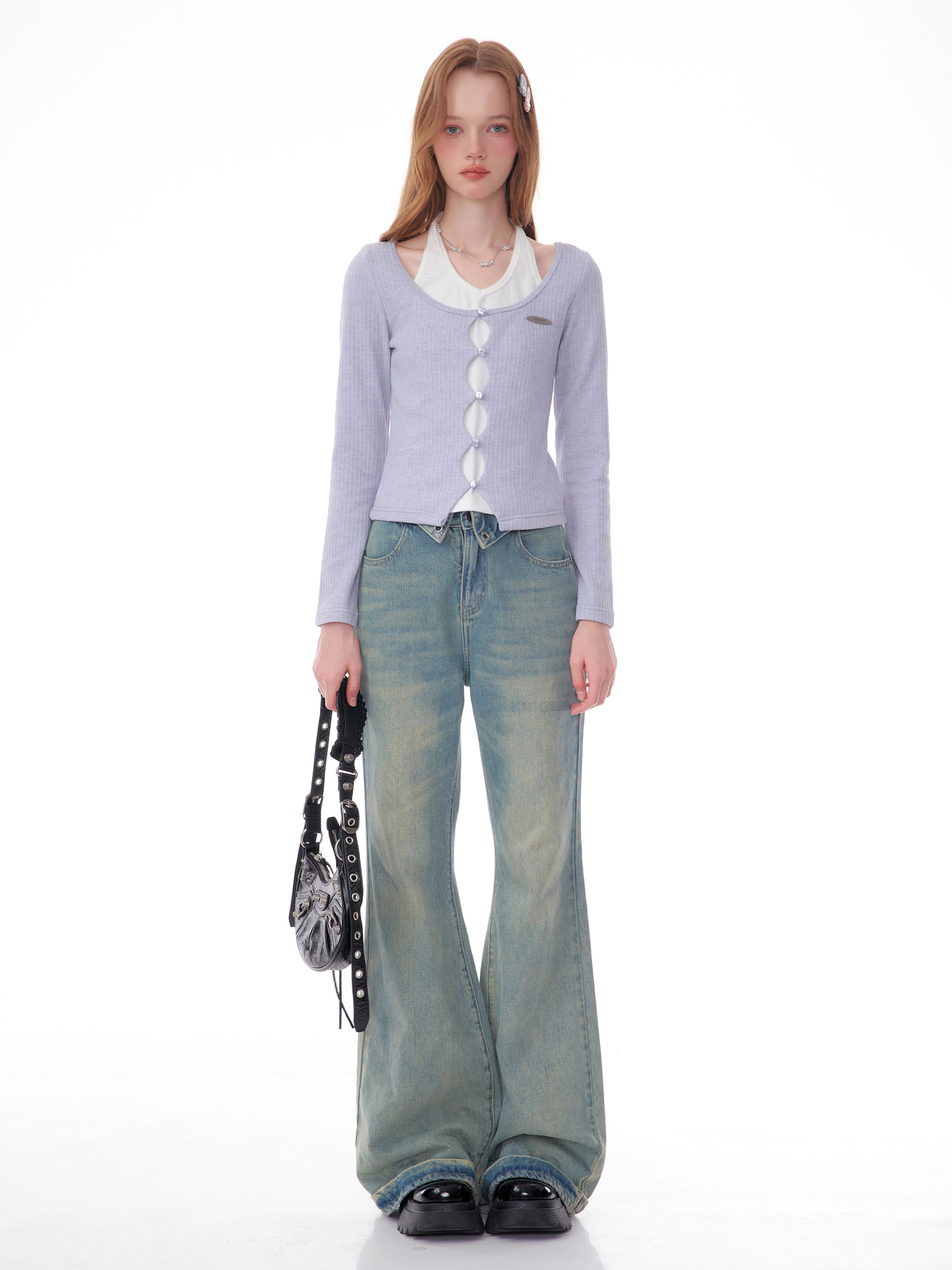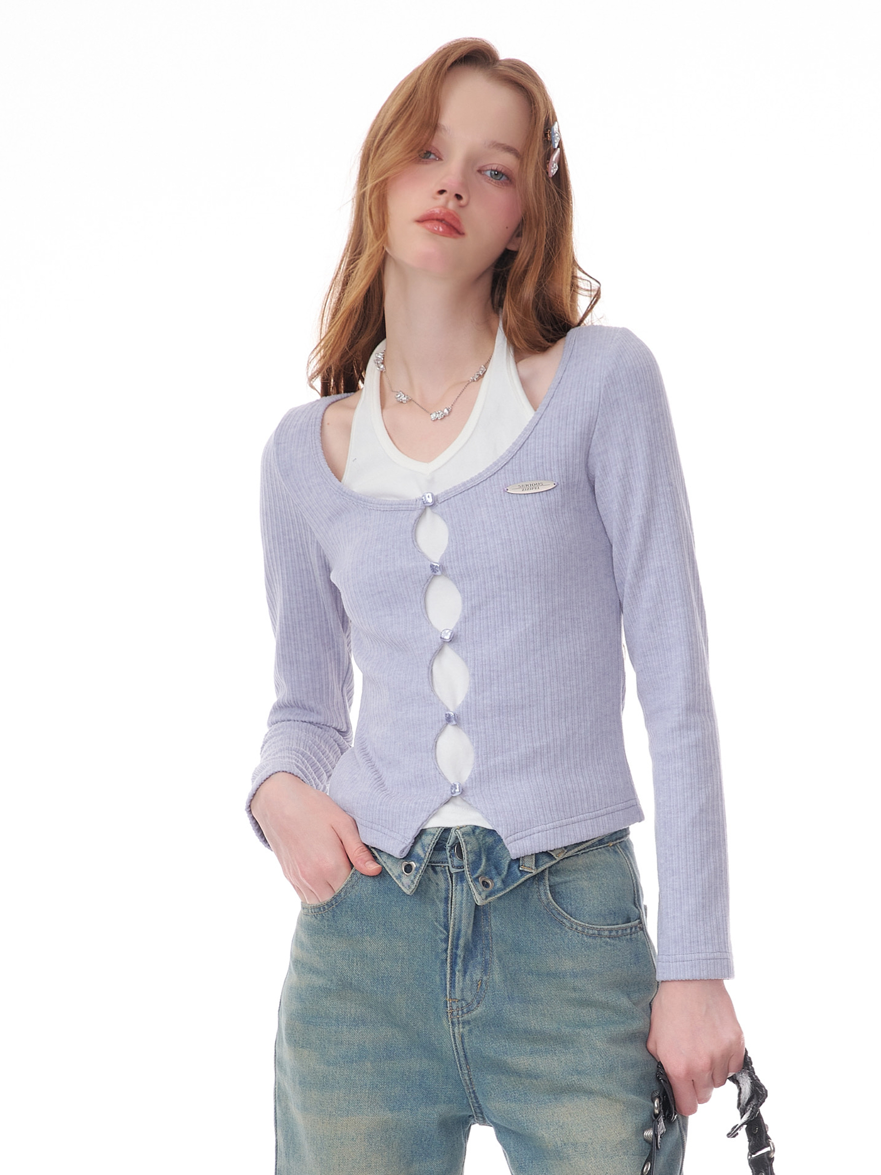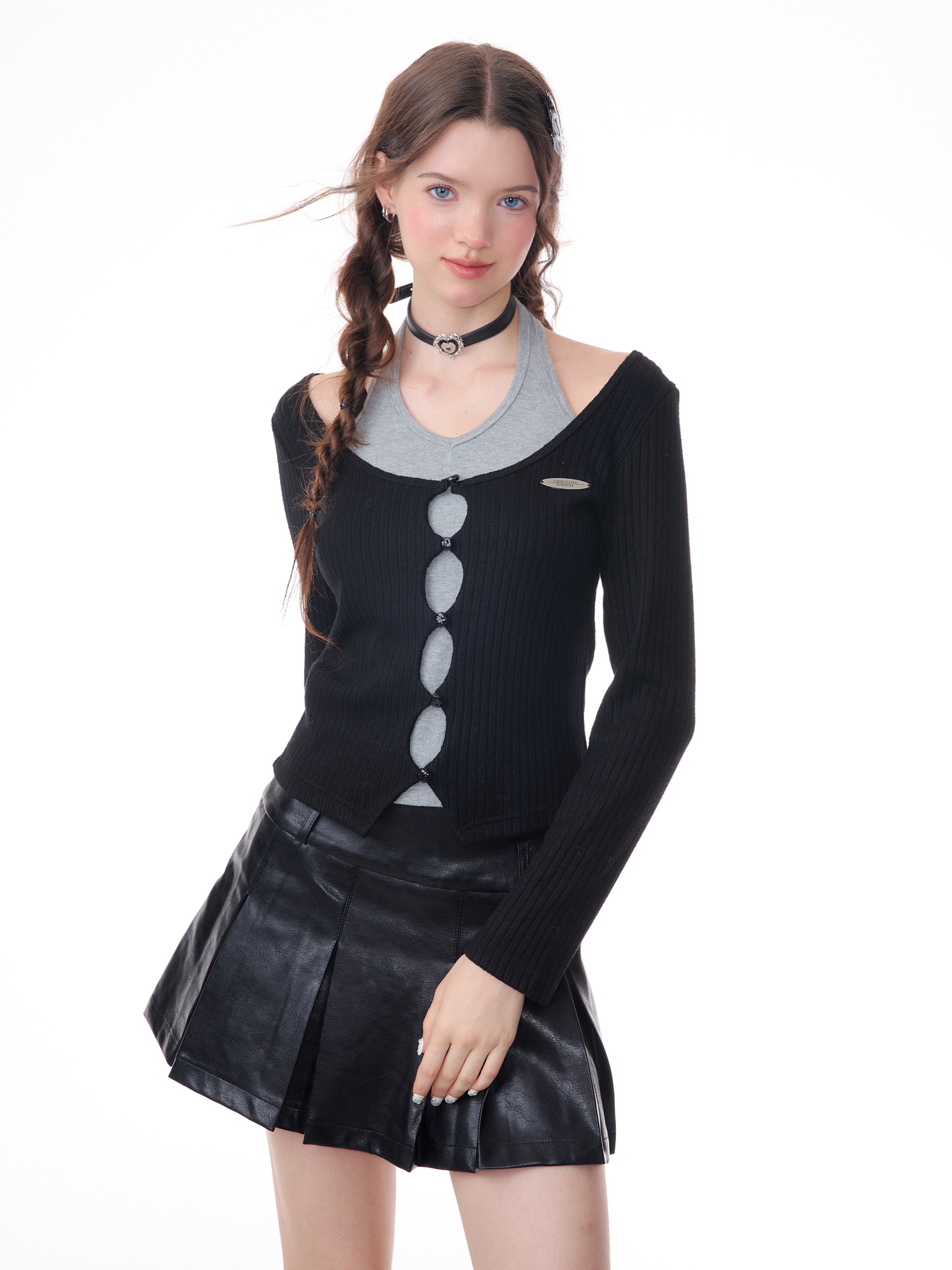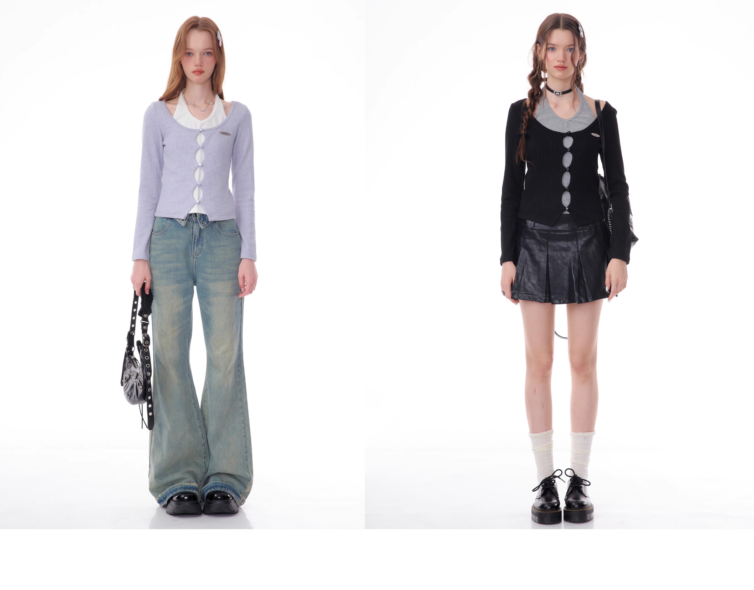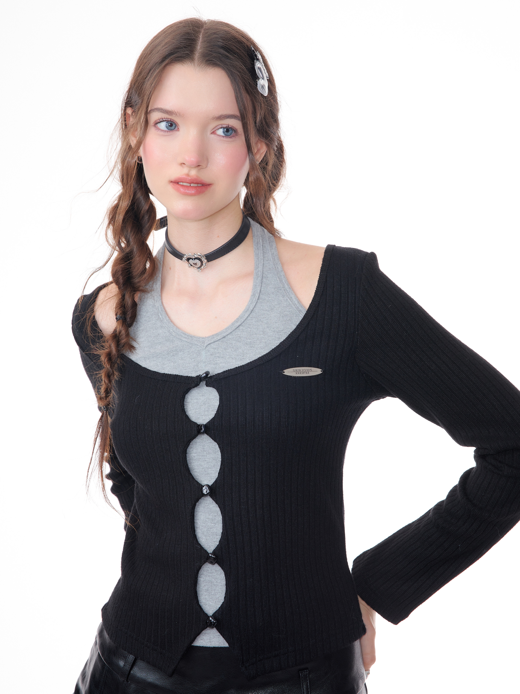 Backless Stand Collar Slim Fit Sweater | Retro Long Sleeve Design for Autumn/Winter