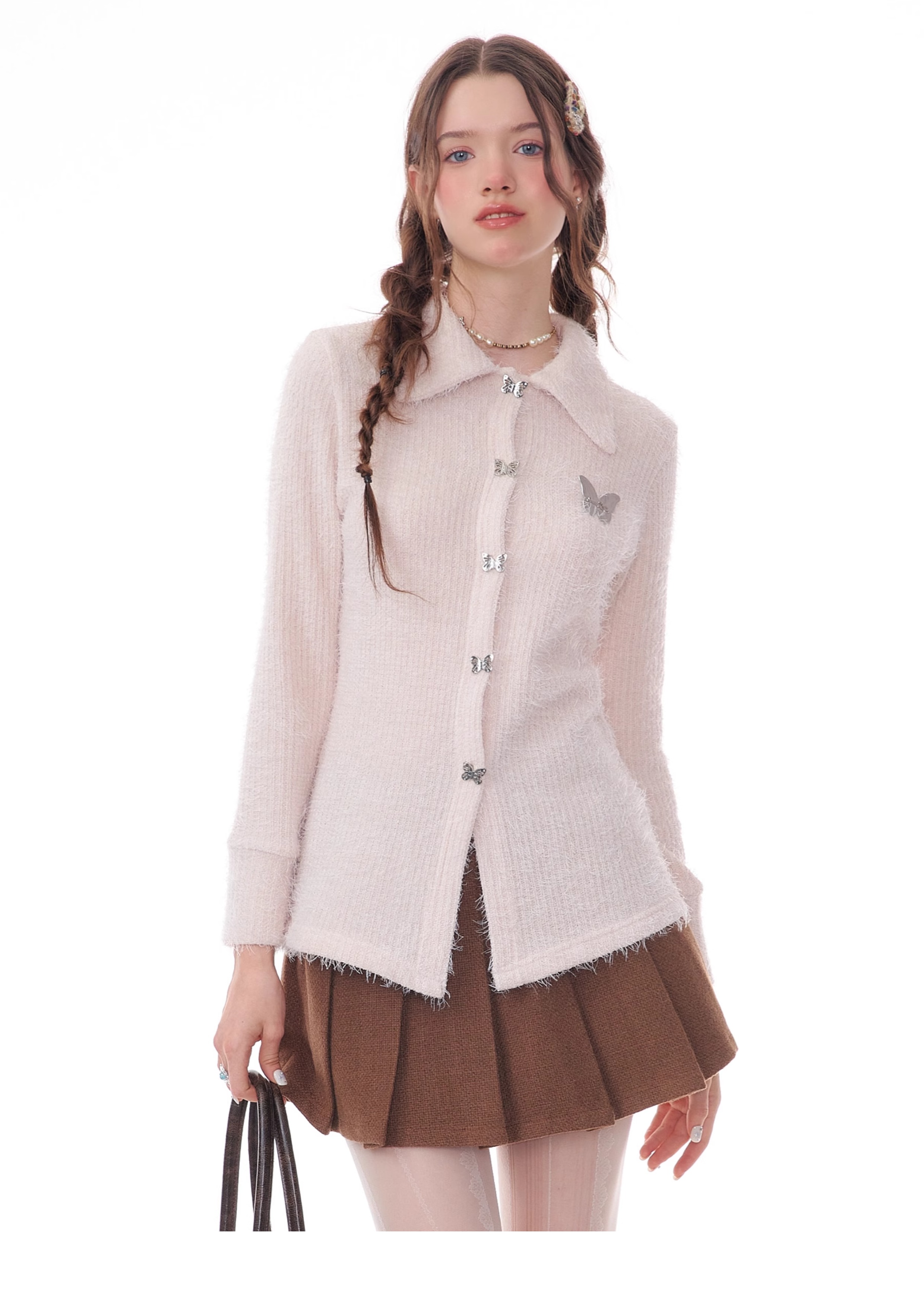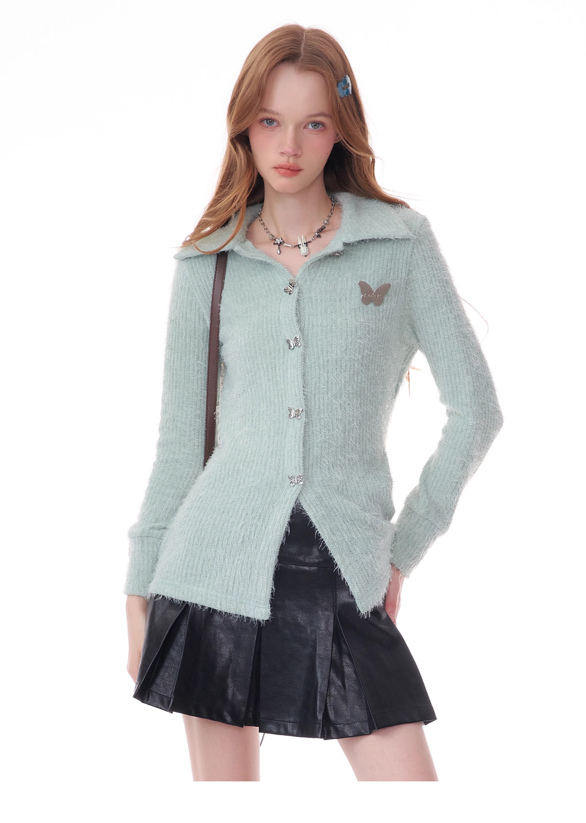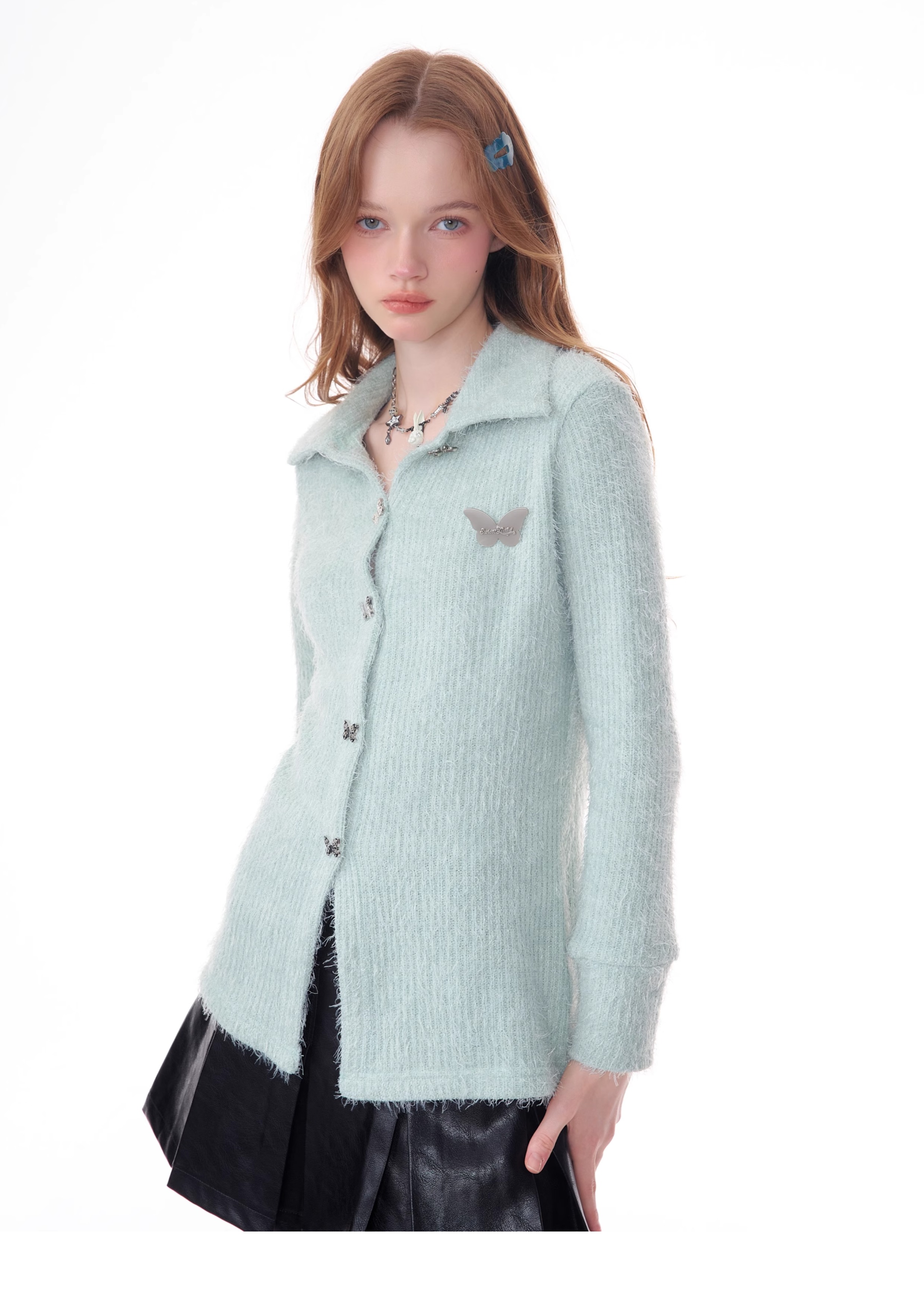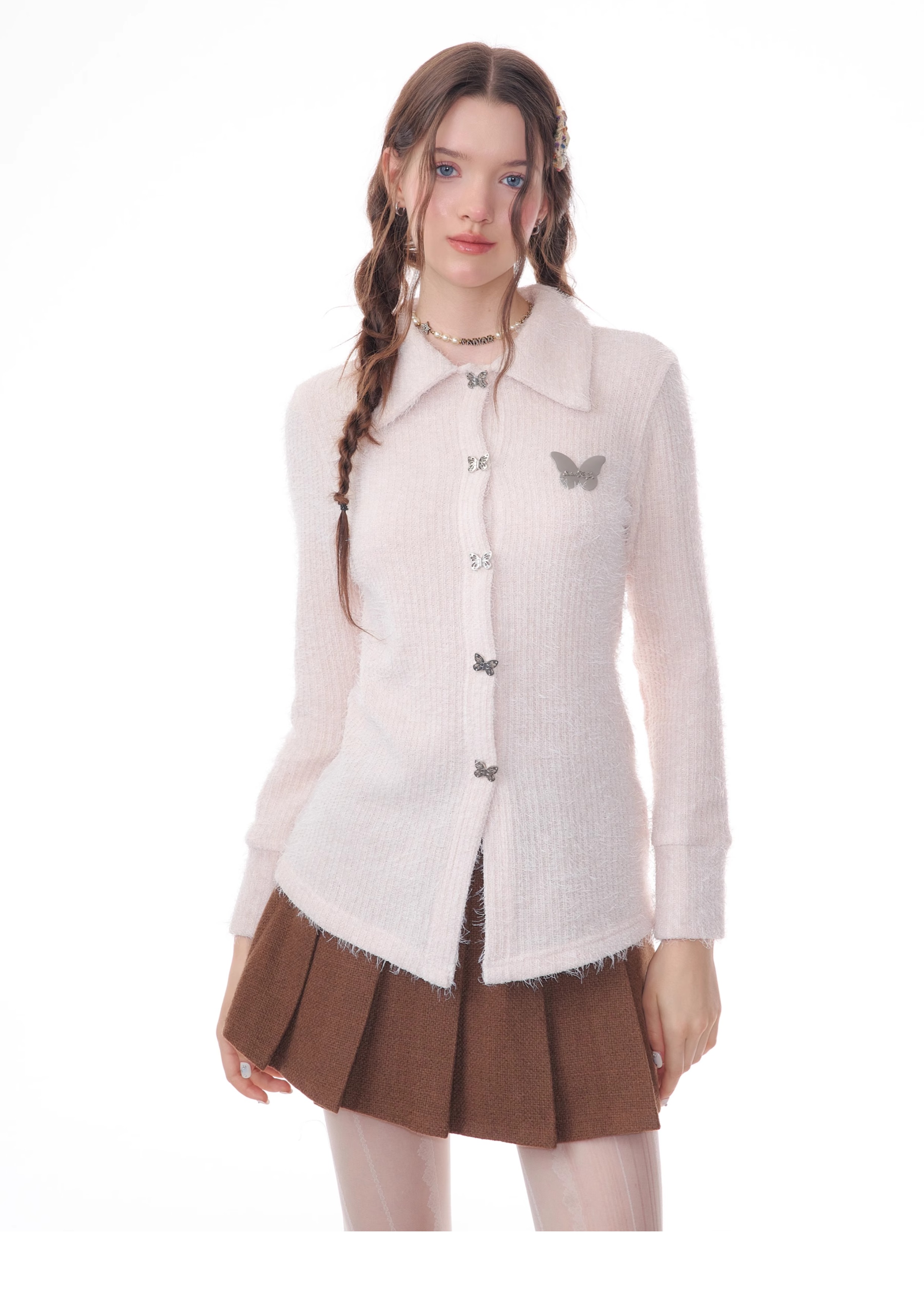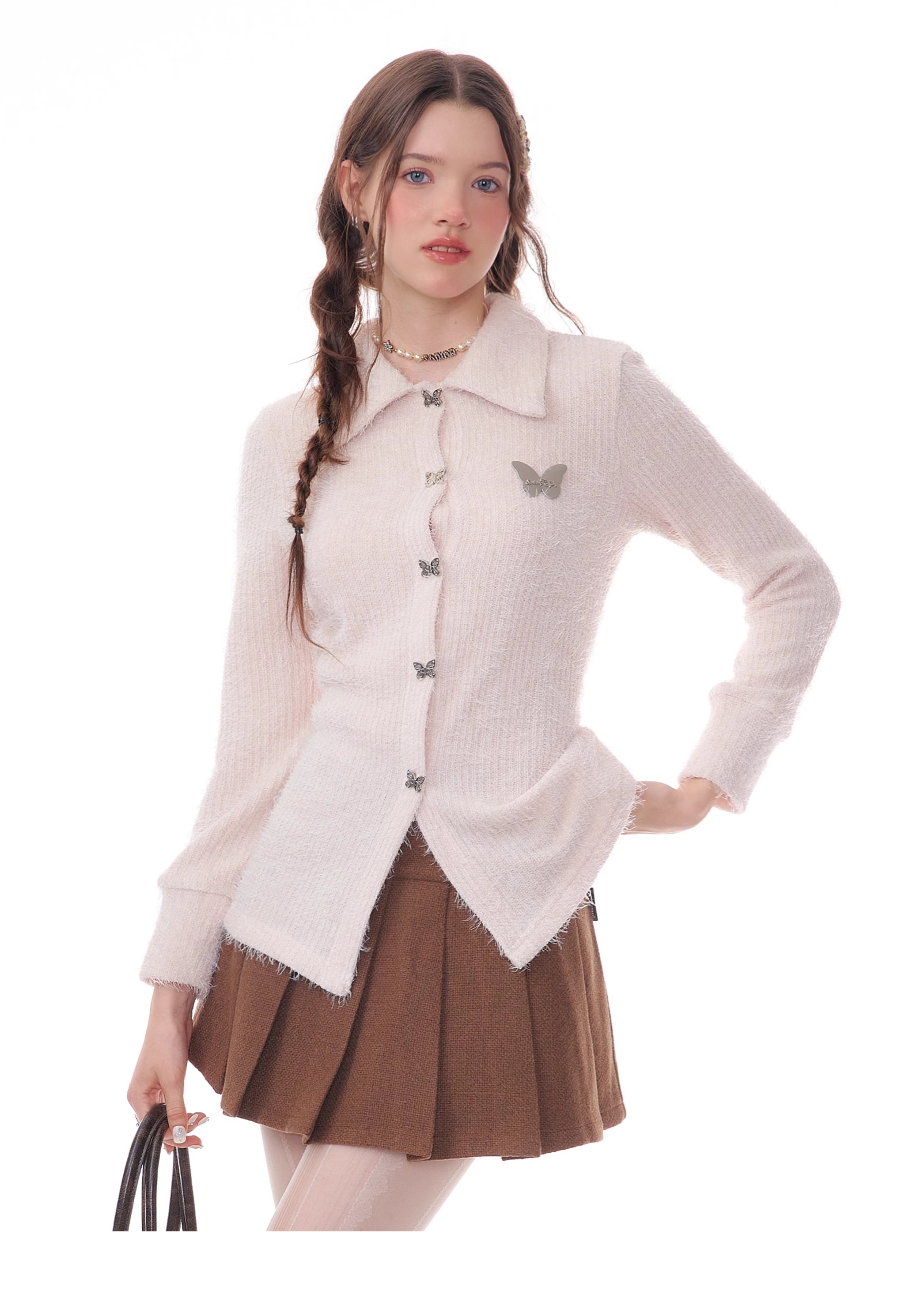 Butterfly Embroidered Thick Cardigan | Slim Fit Long Sleeve Retro Jacket for Autumn/Winter