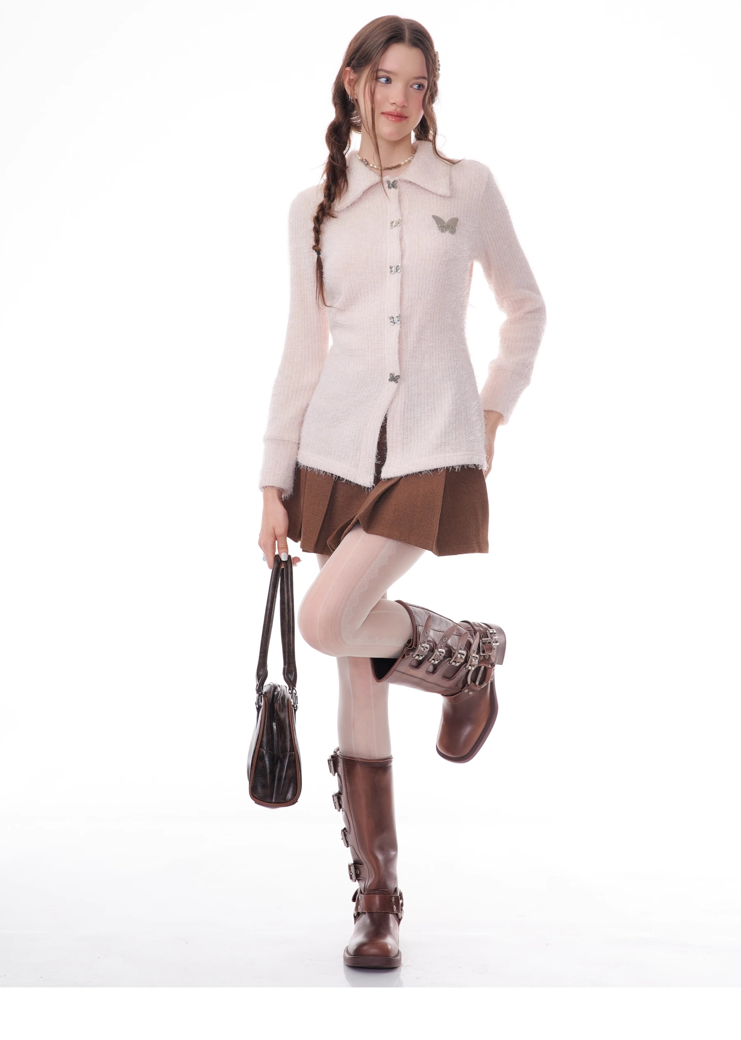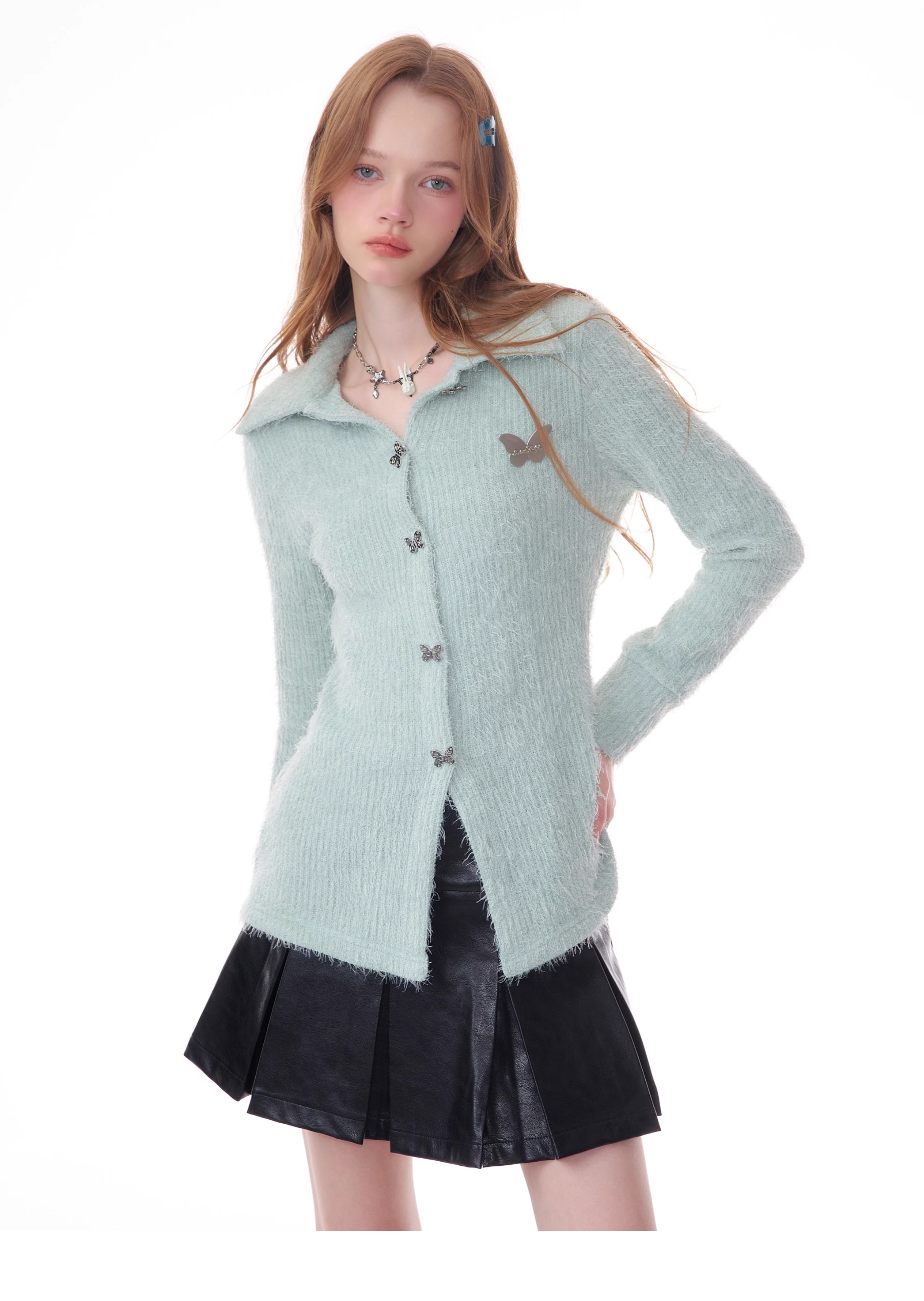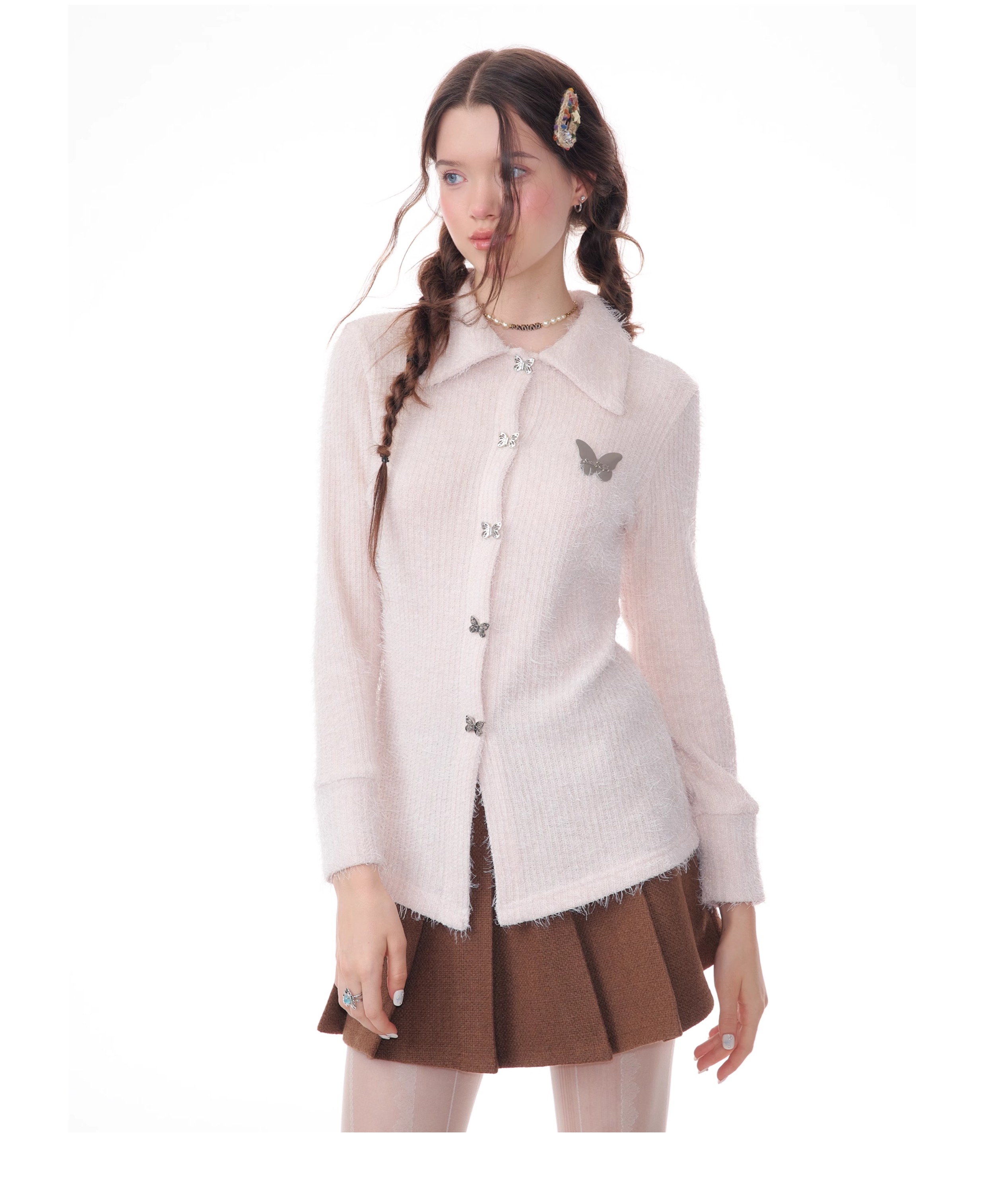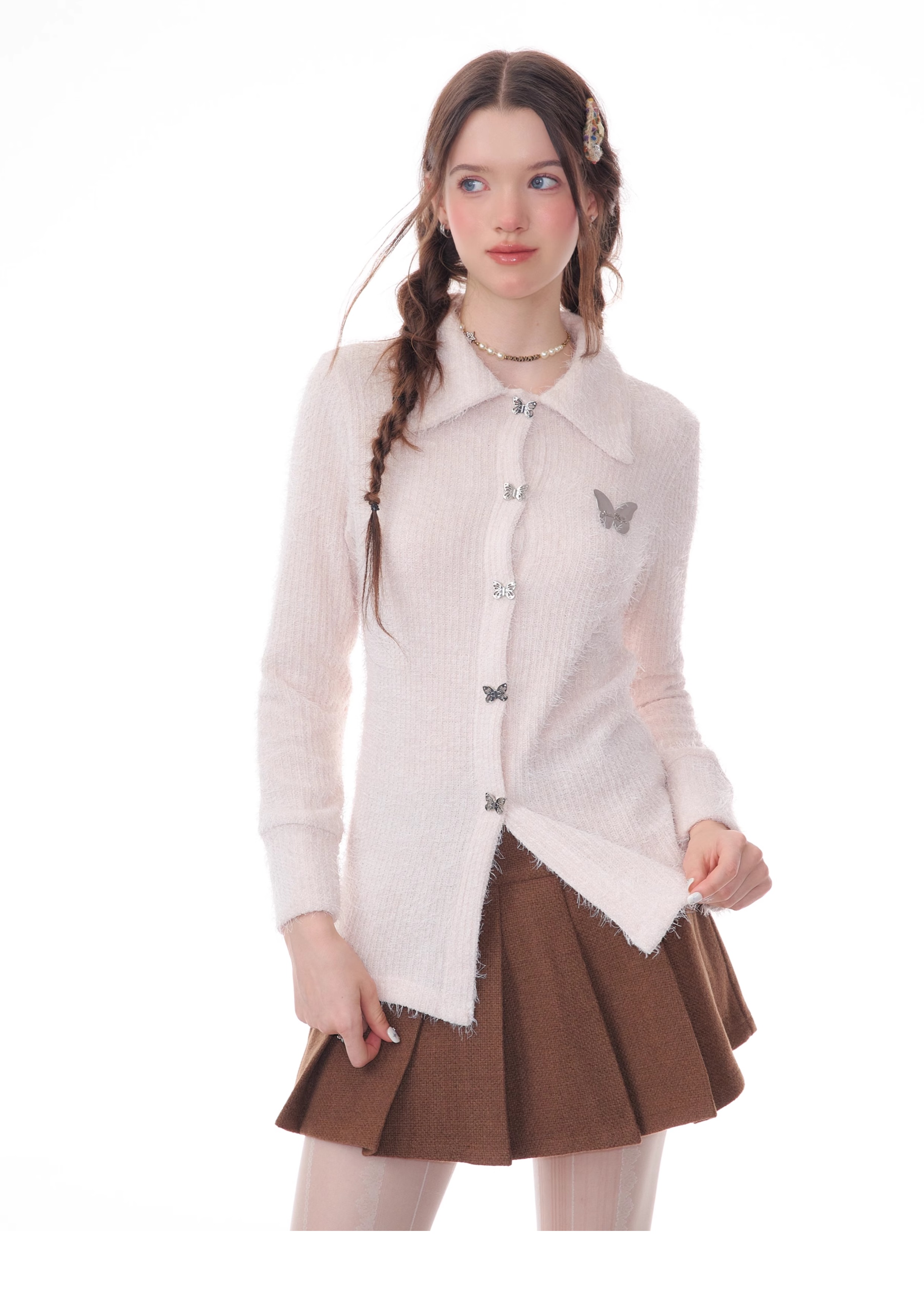Butterfly Embroidered Thick Cardigan | Slim Fit Long Sleeve Retro Jacket for Autumn/Winter