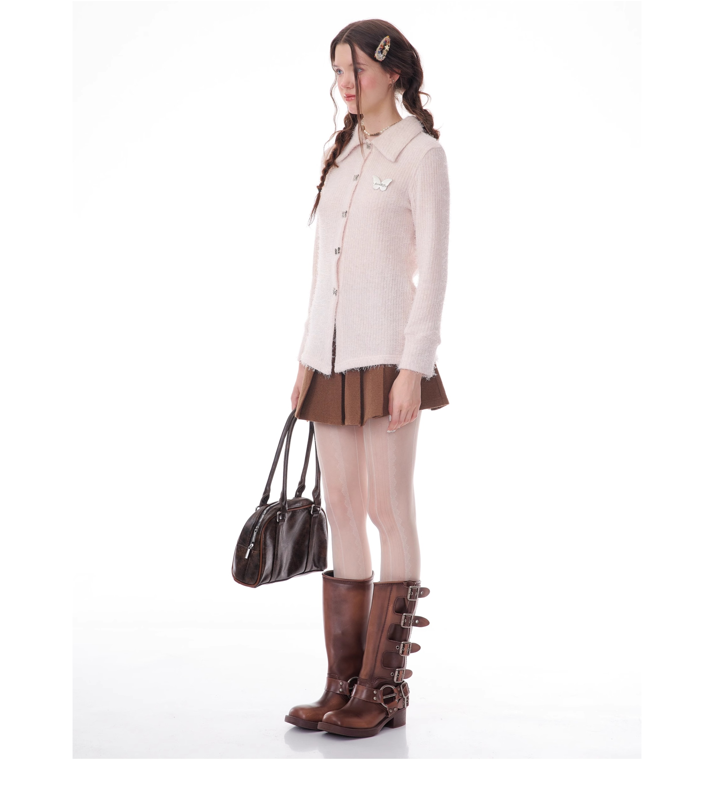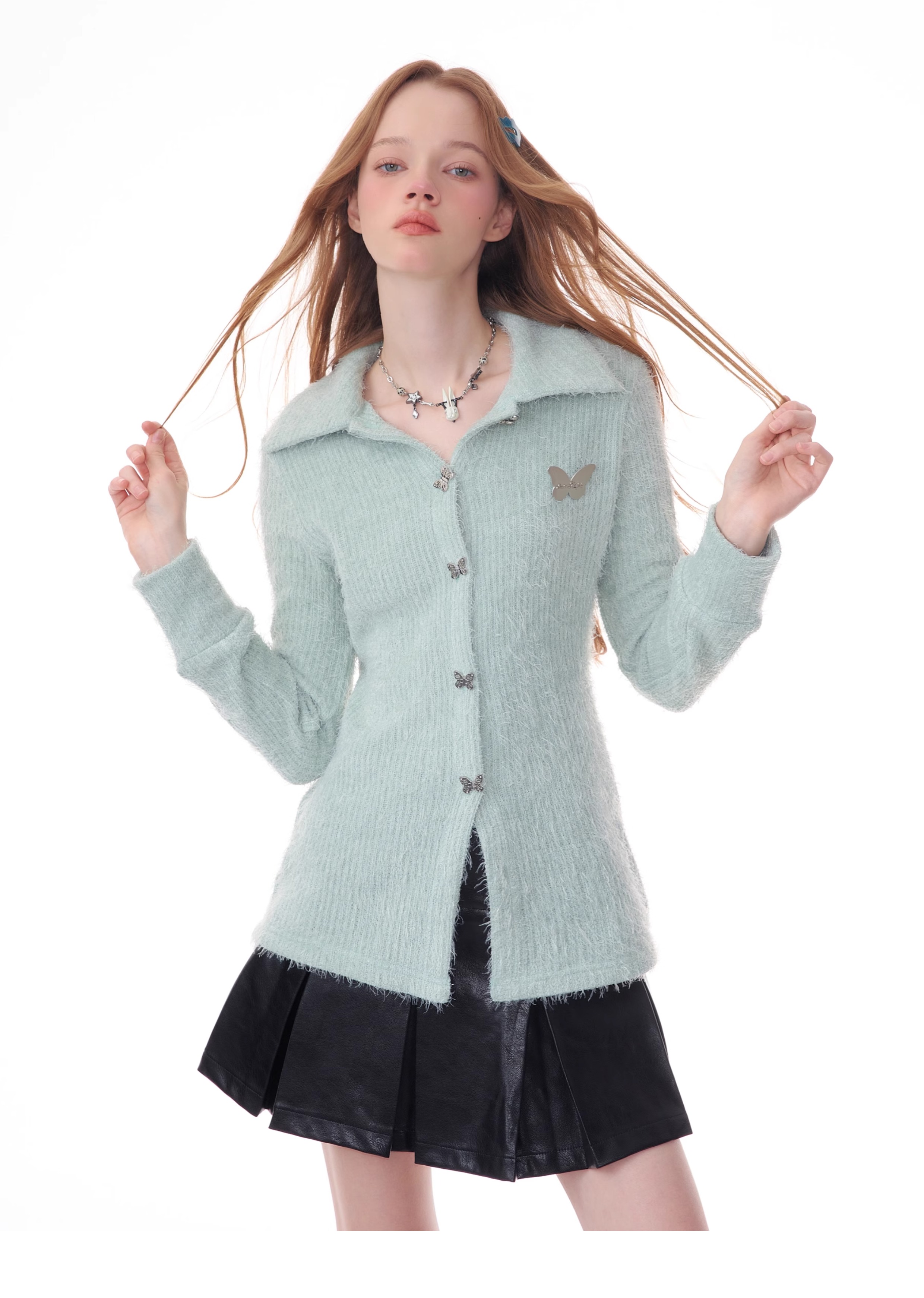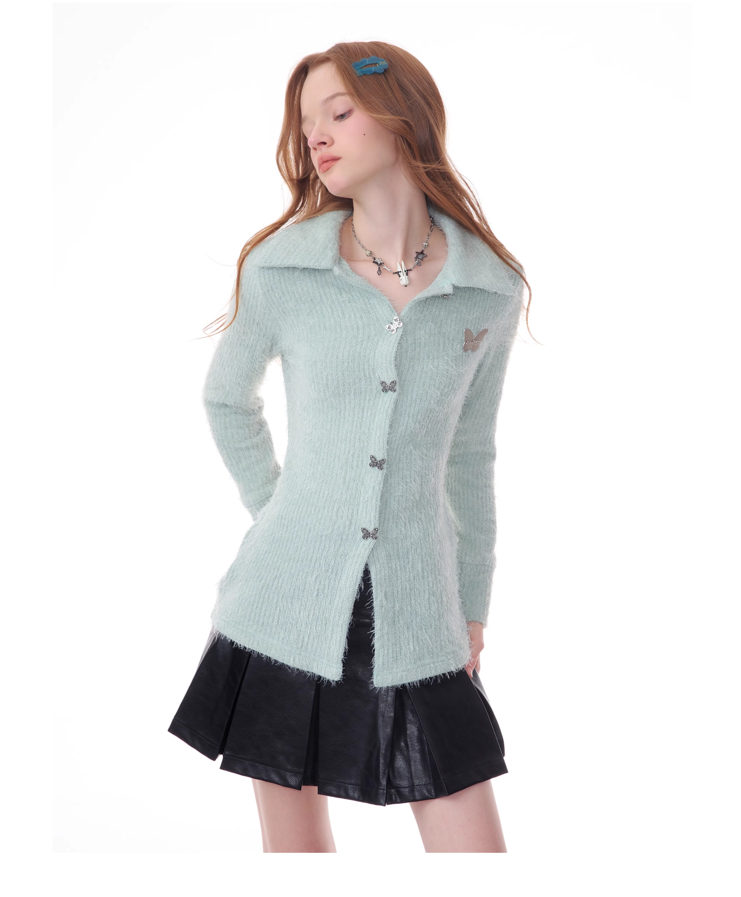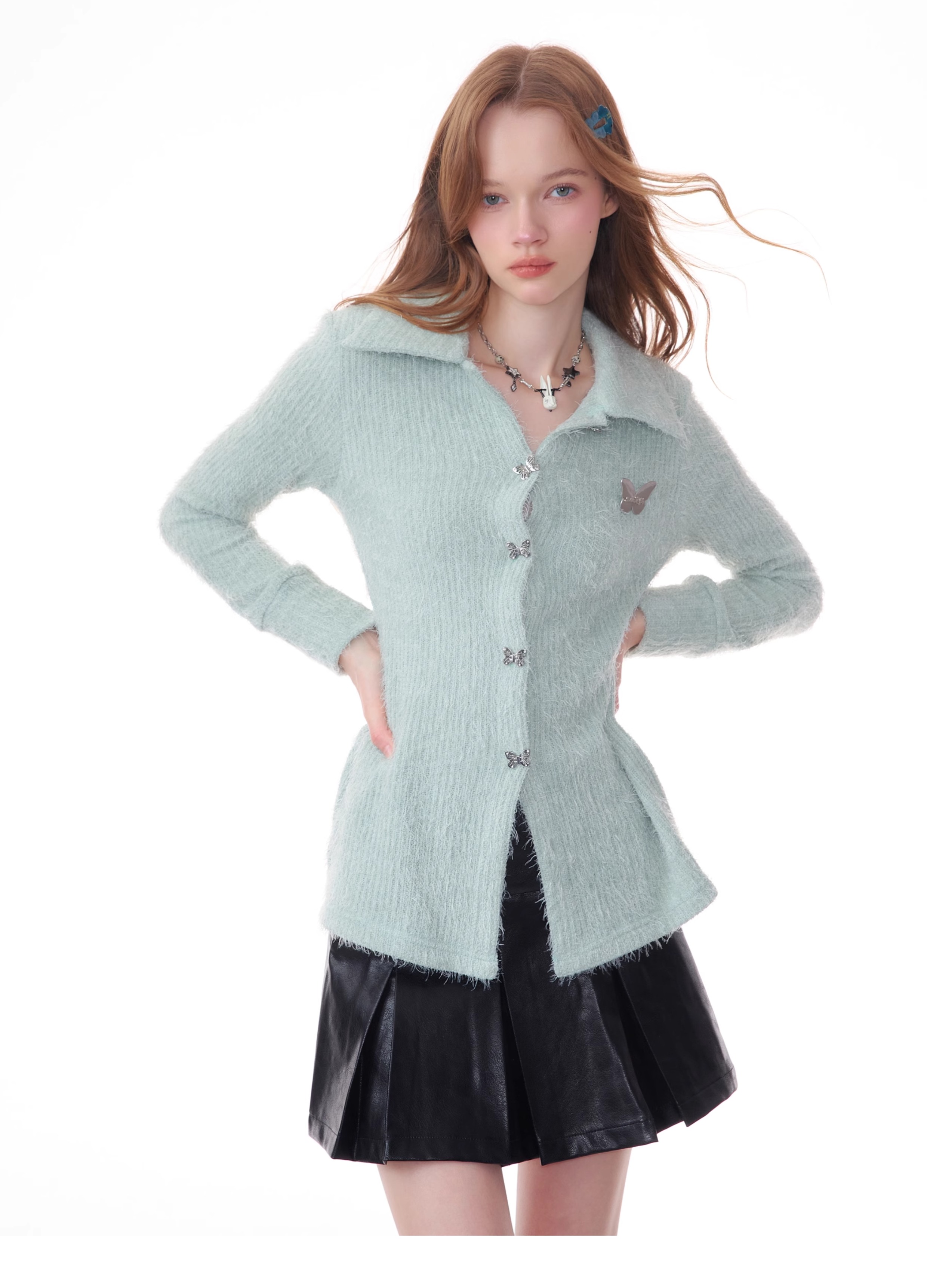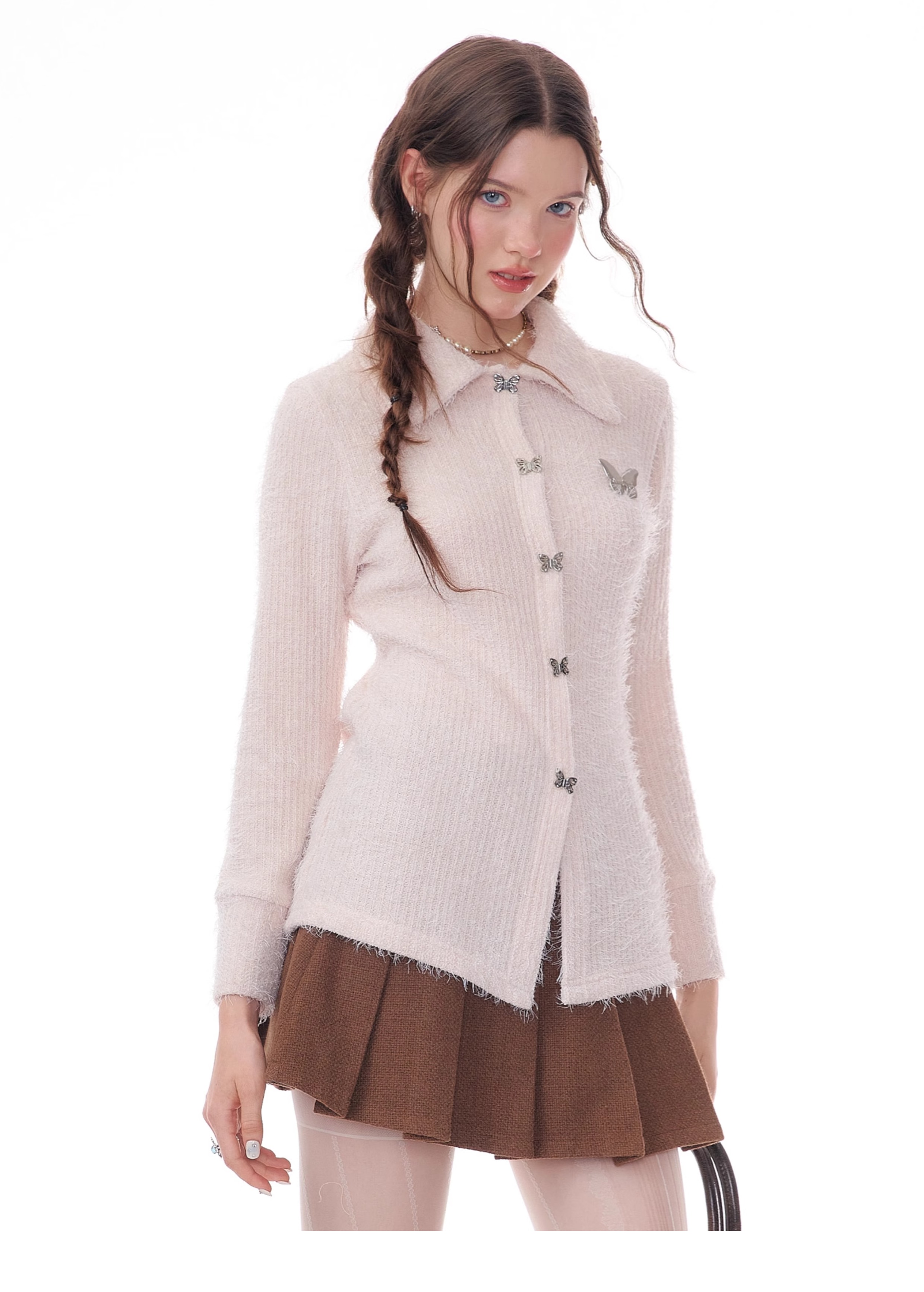 Butterfly Embroidered Thick Cardigan | Slim Fit Long Sleeve Retro Jacket for Autumn/Winter