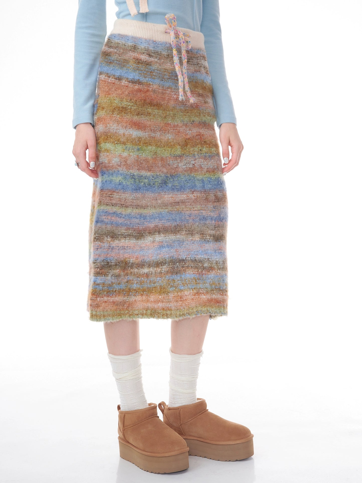Retro Striped Knitted Half Fishtail Skirt | Slim Fit High Waist Design for Autumn/Winter