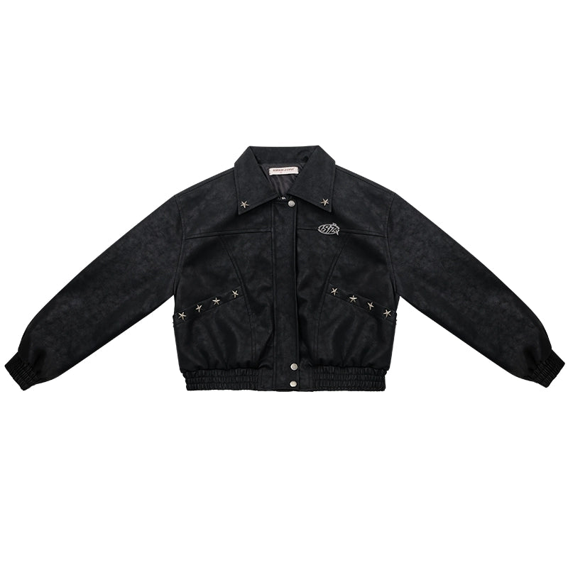 Motorcycle Stars PU Leather Jacket | Popular High-End Retro Style for Autumn/Winter