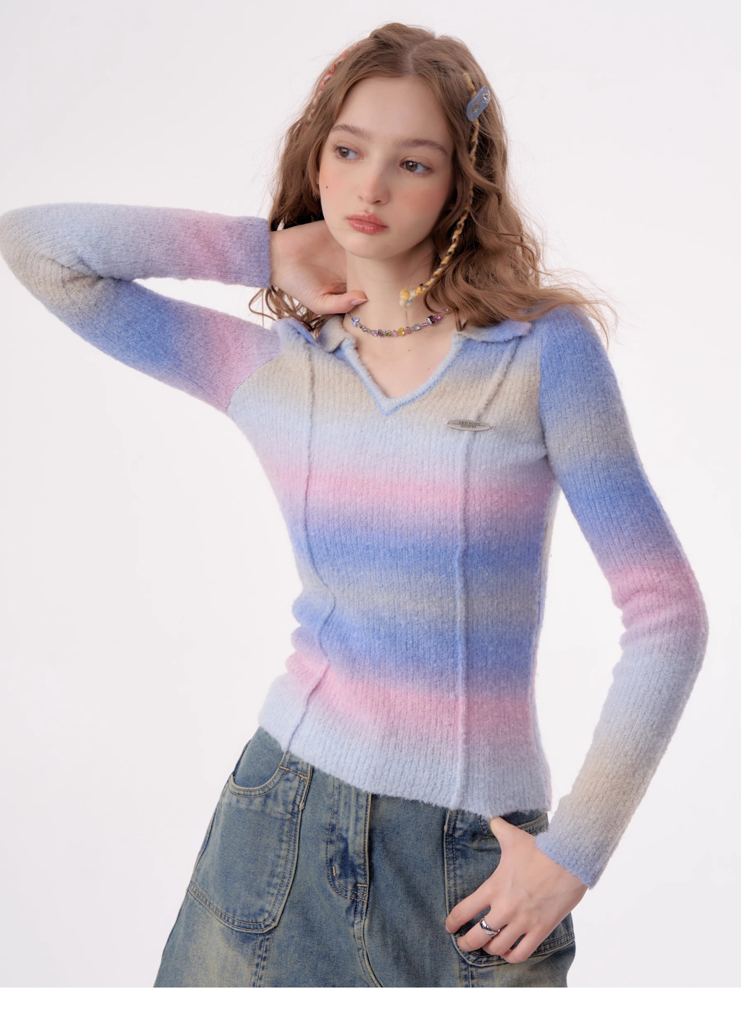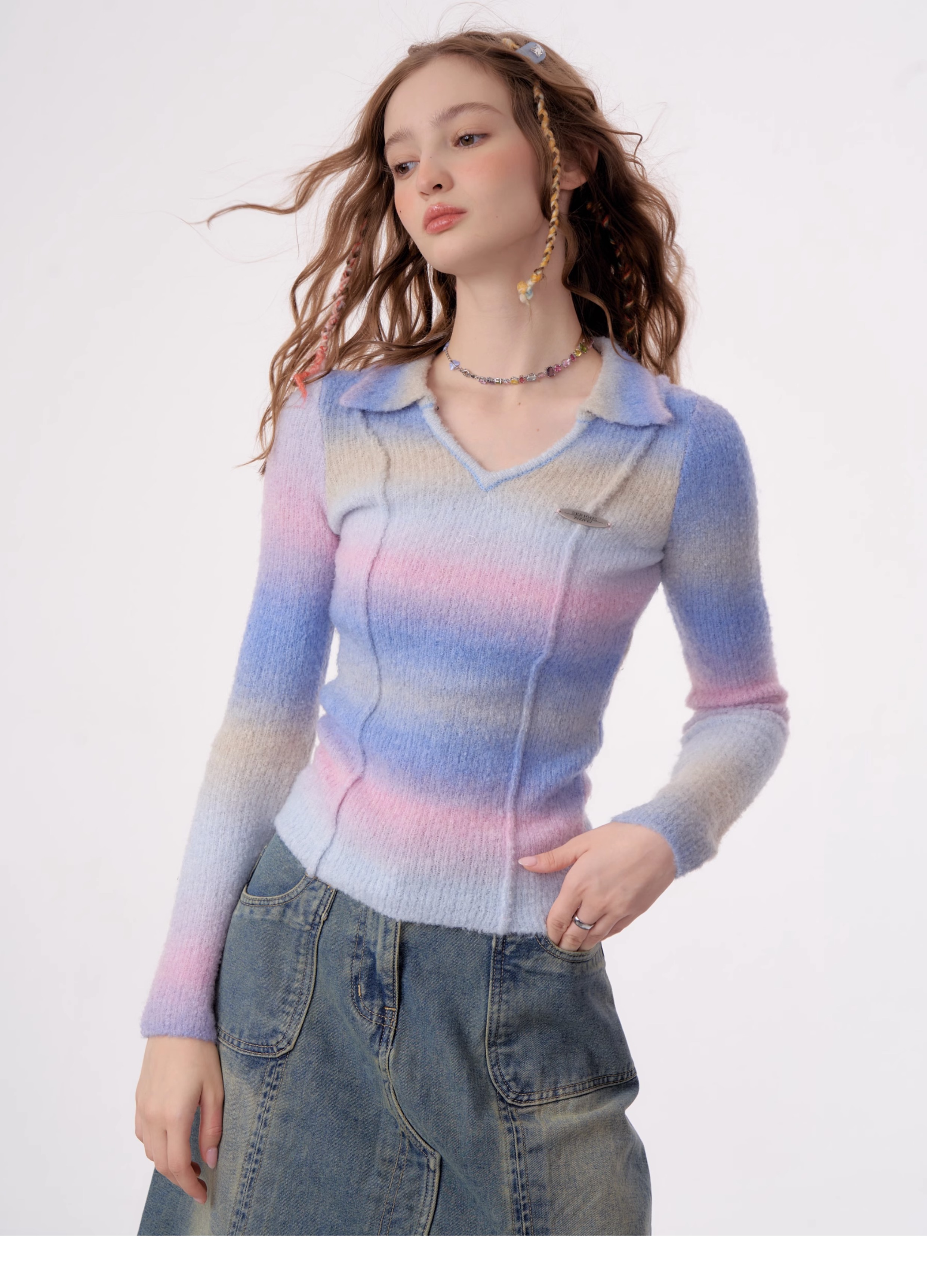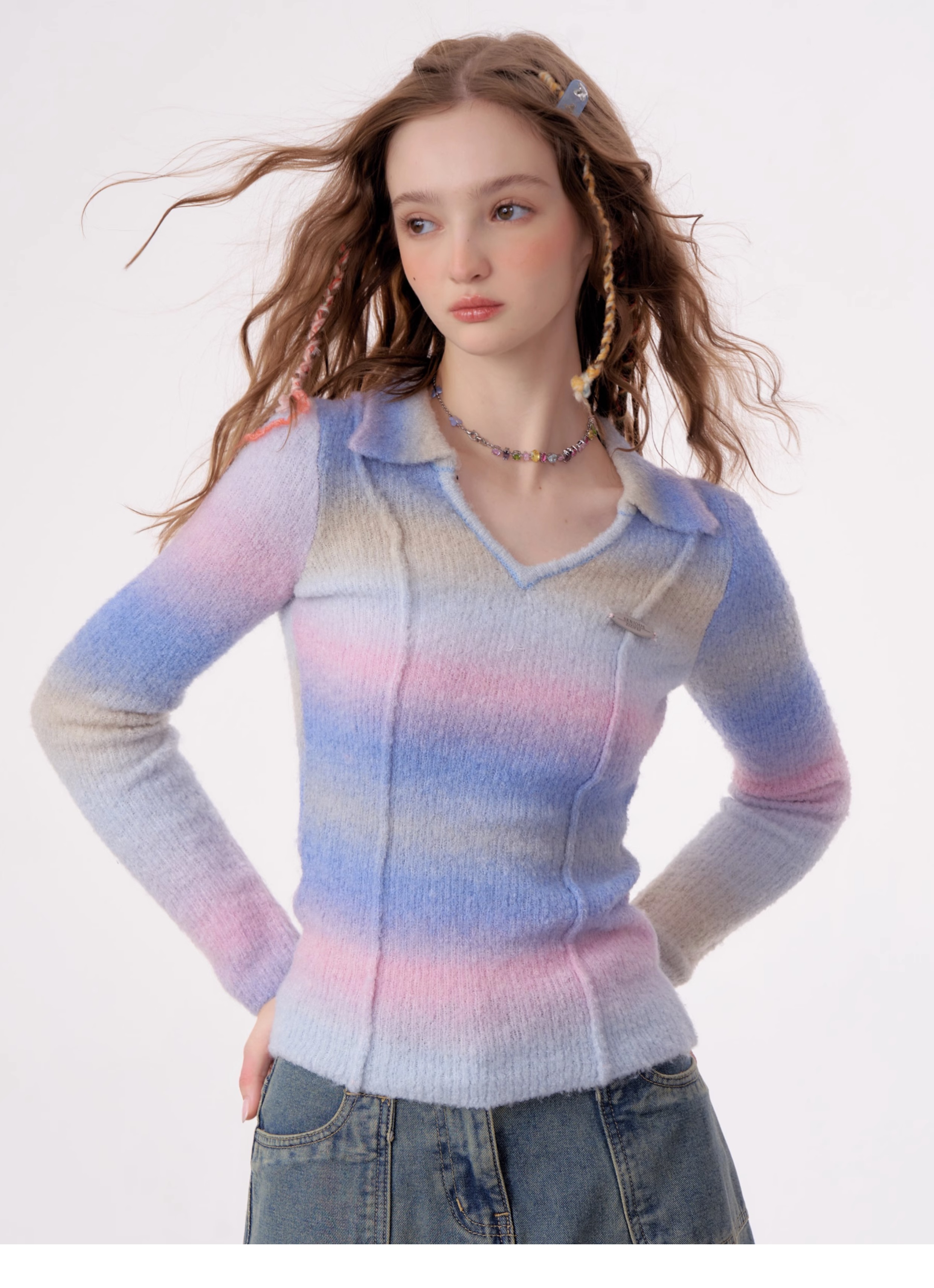 Striped Gradient Polo T-shirt | Slim Fit Retro Design for Autumn/Winter