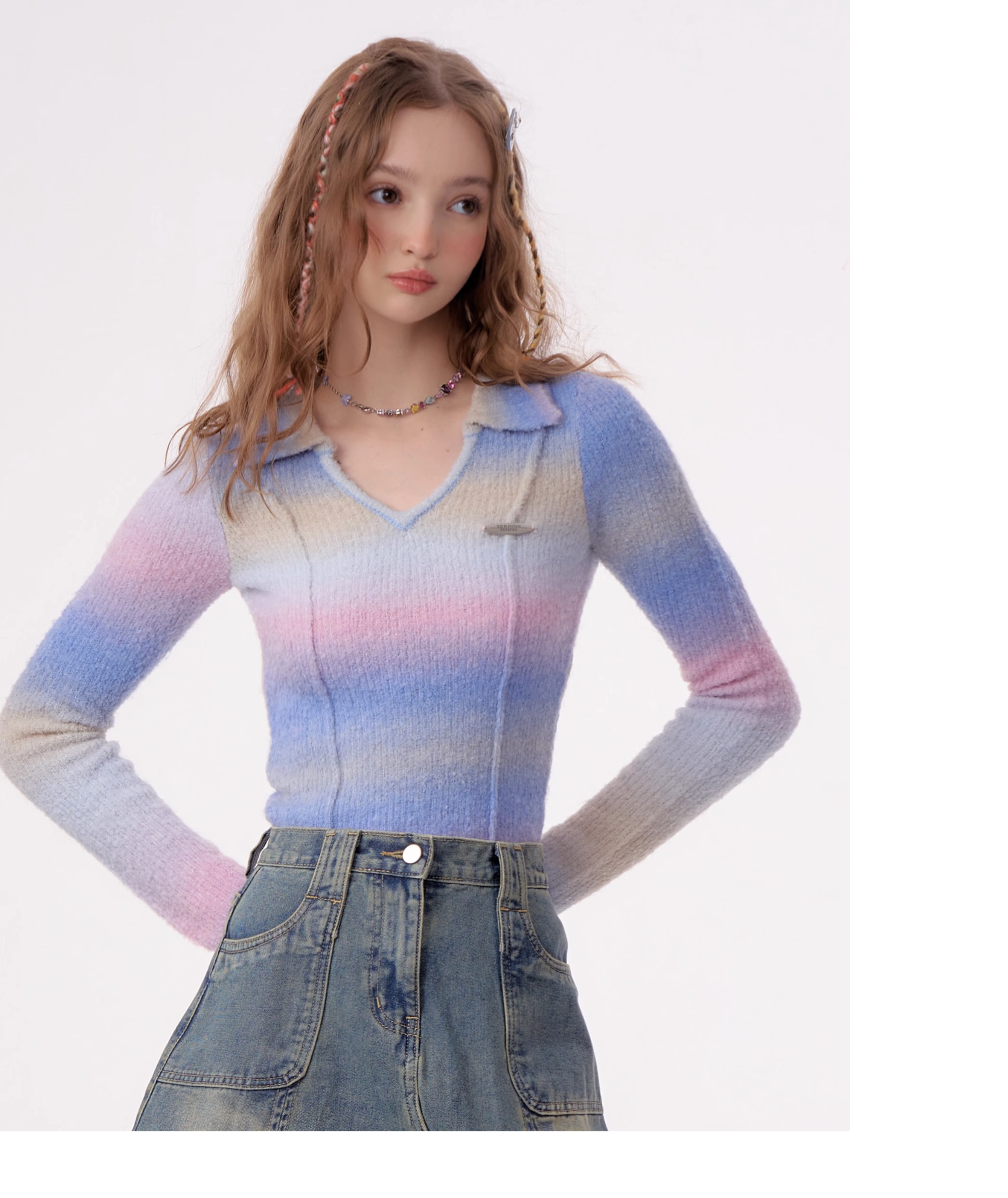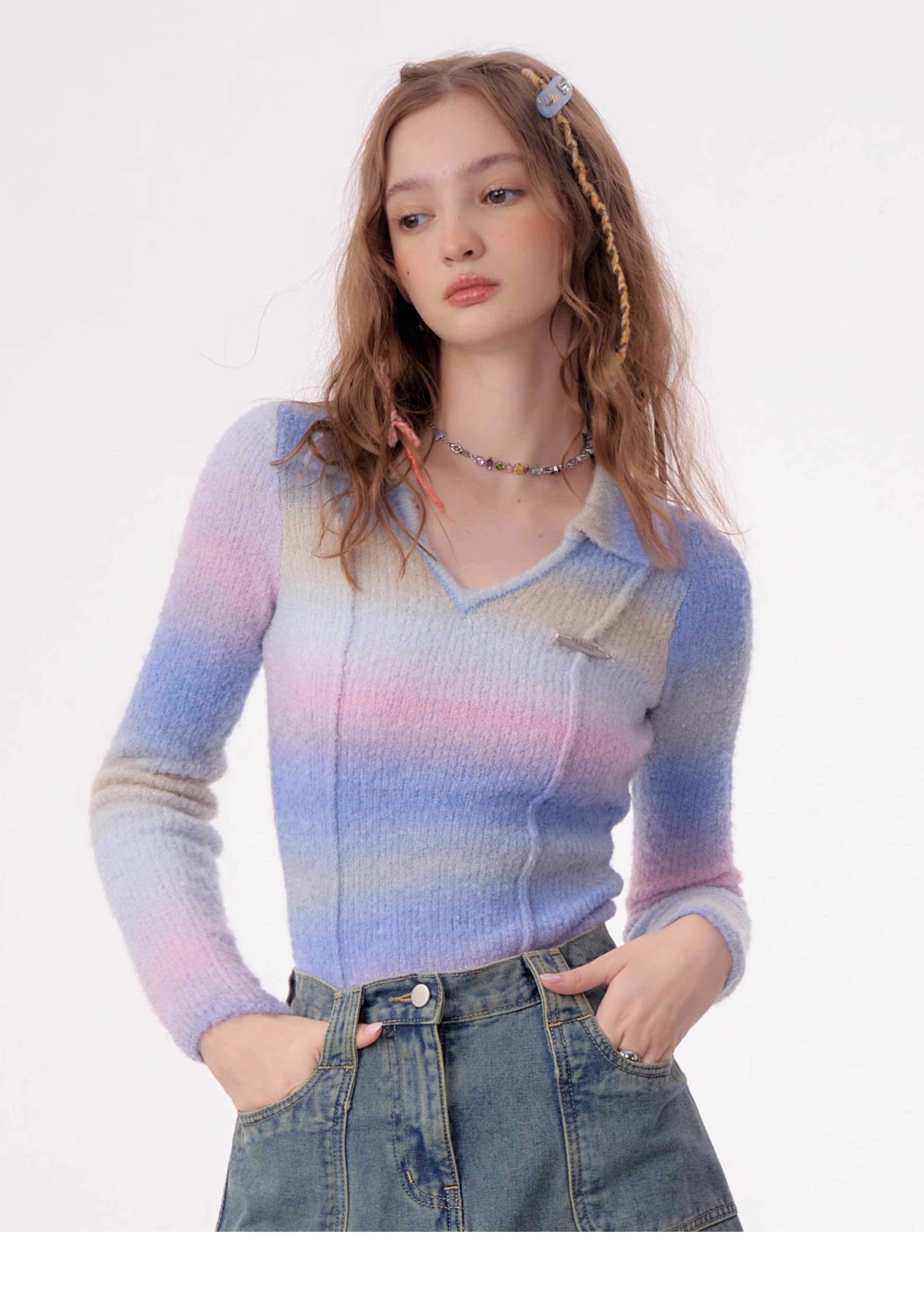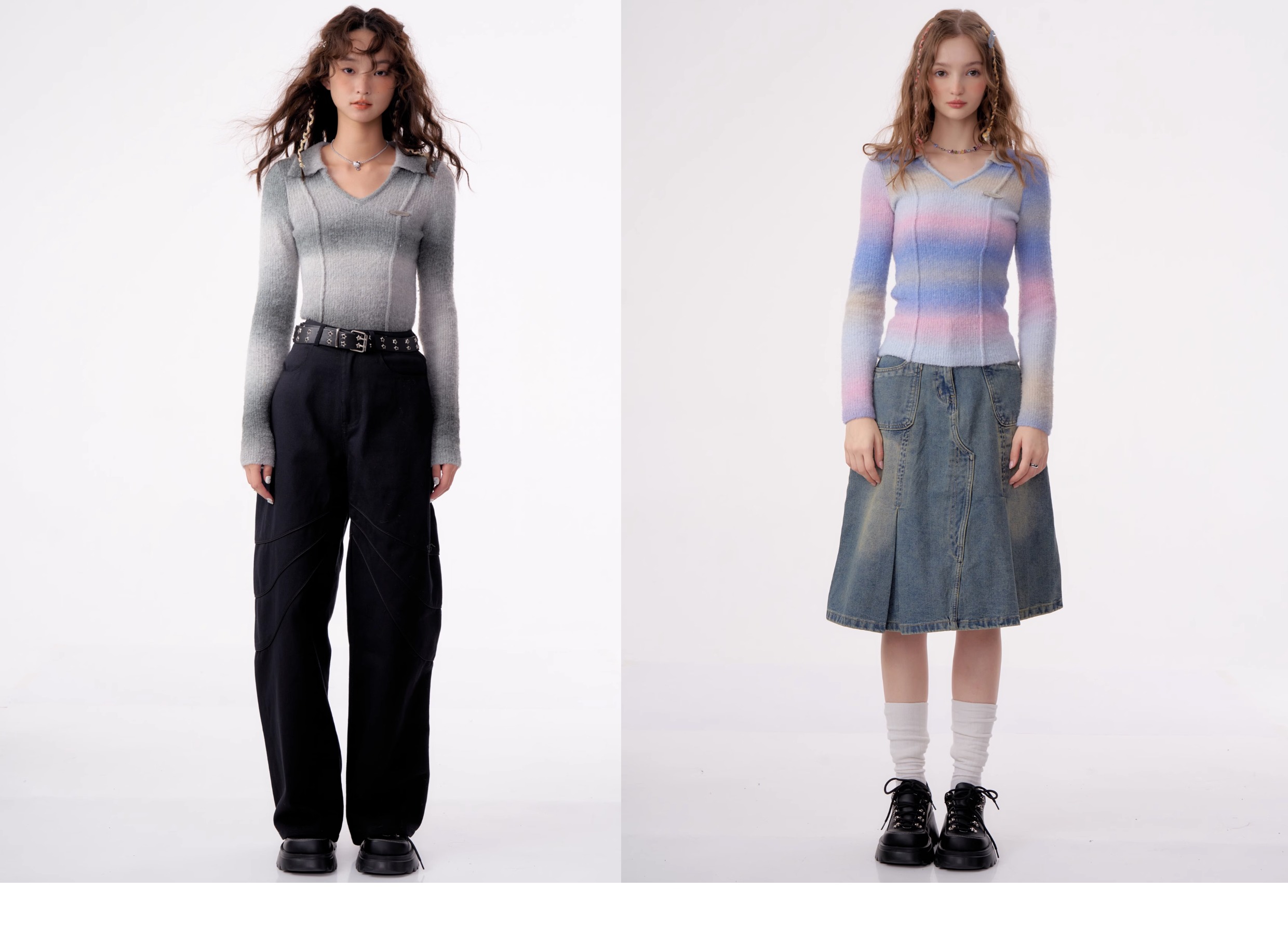 Striped Gradient Polo T-shirt | Slim Fit Retro Design for Autumn/Winter