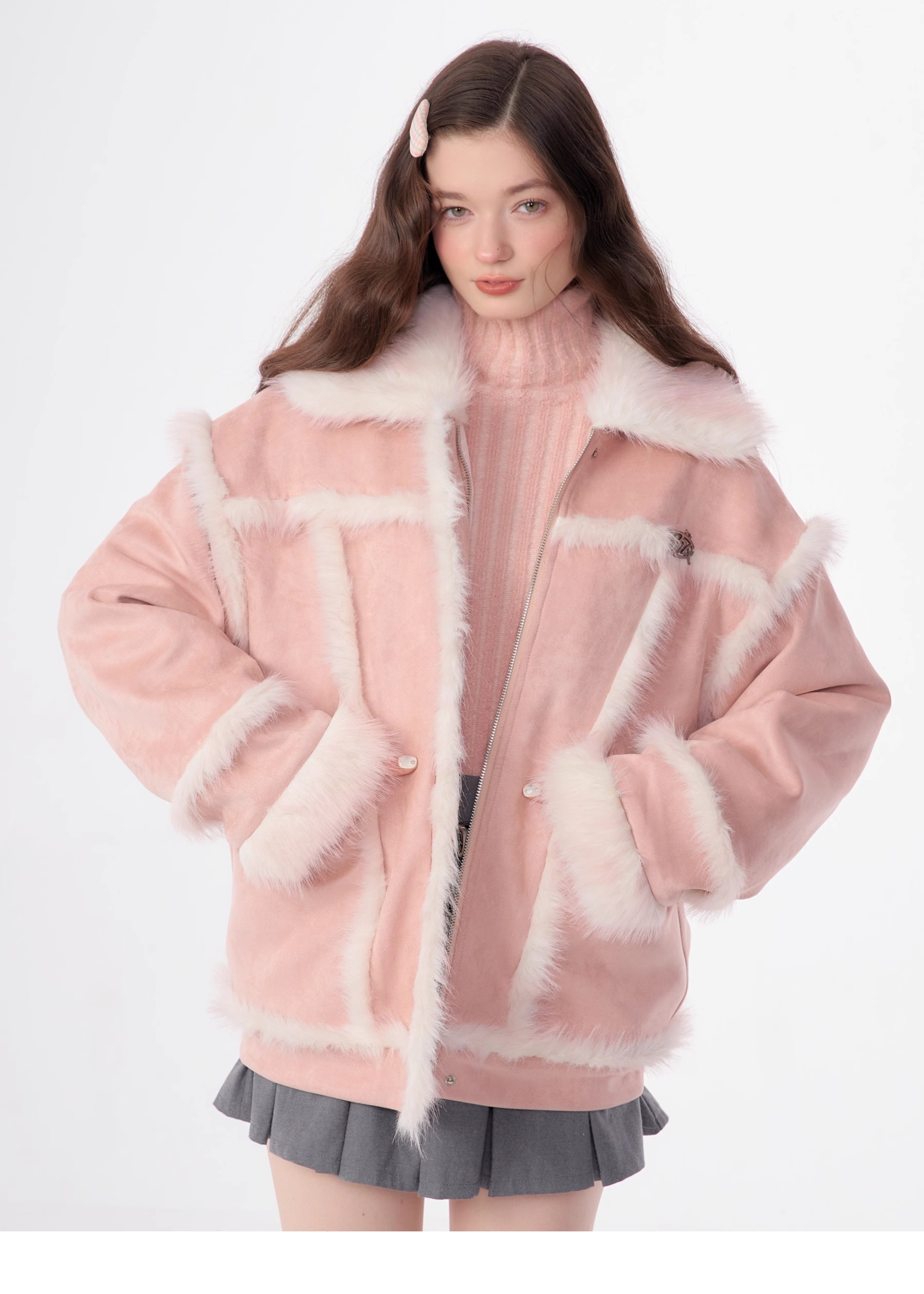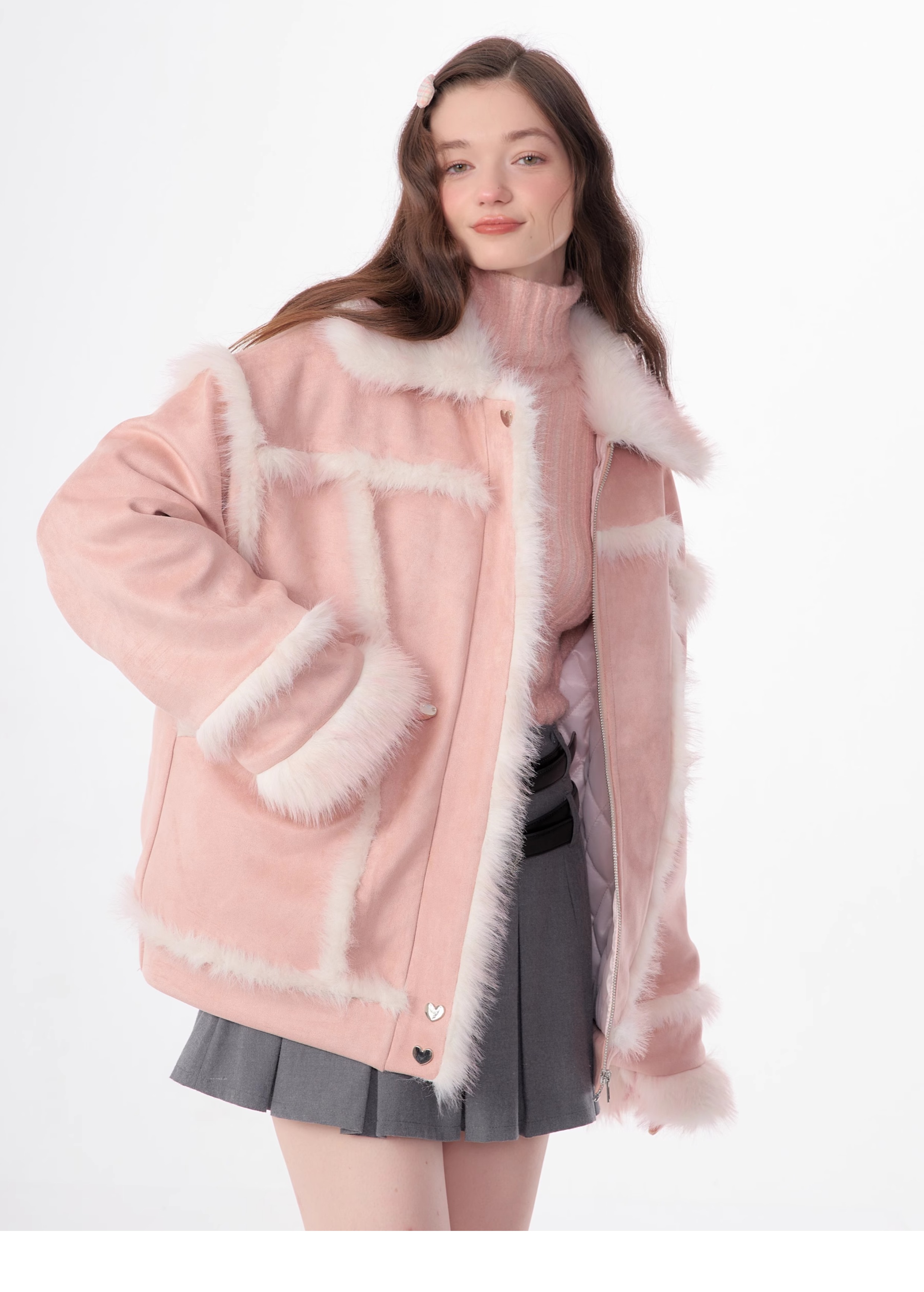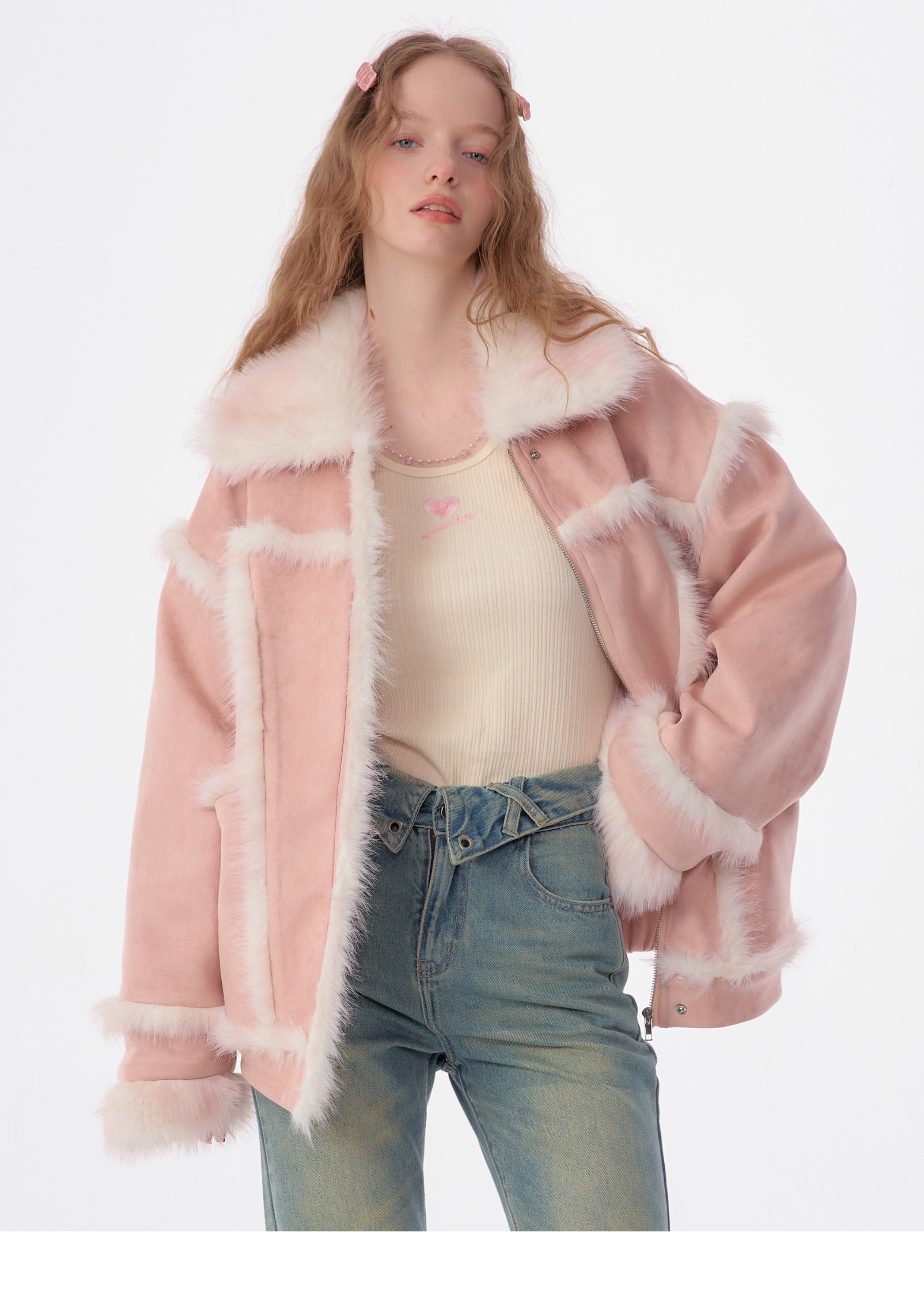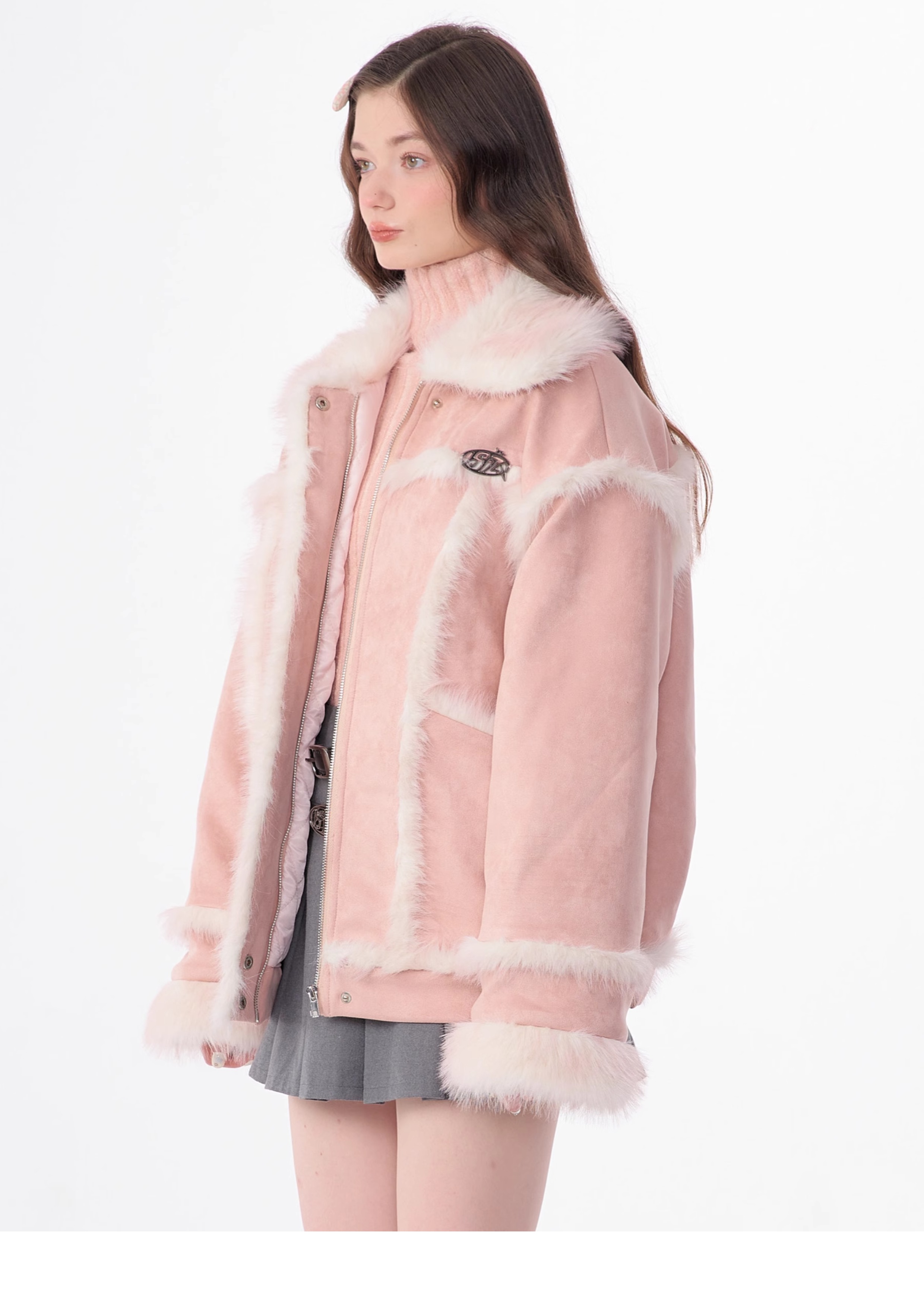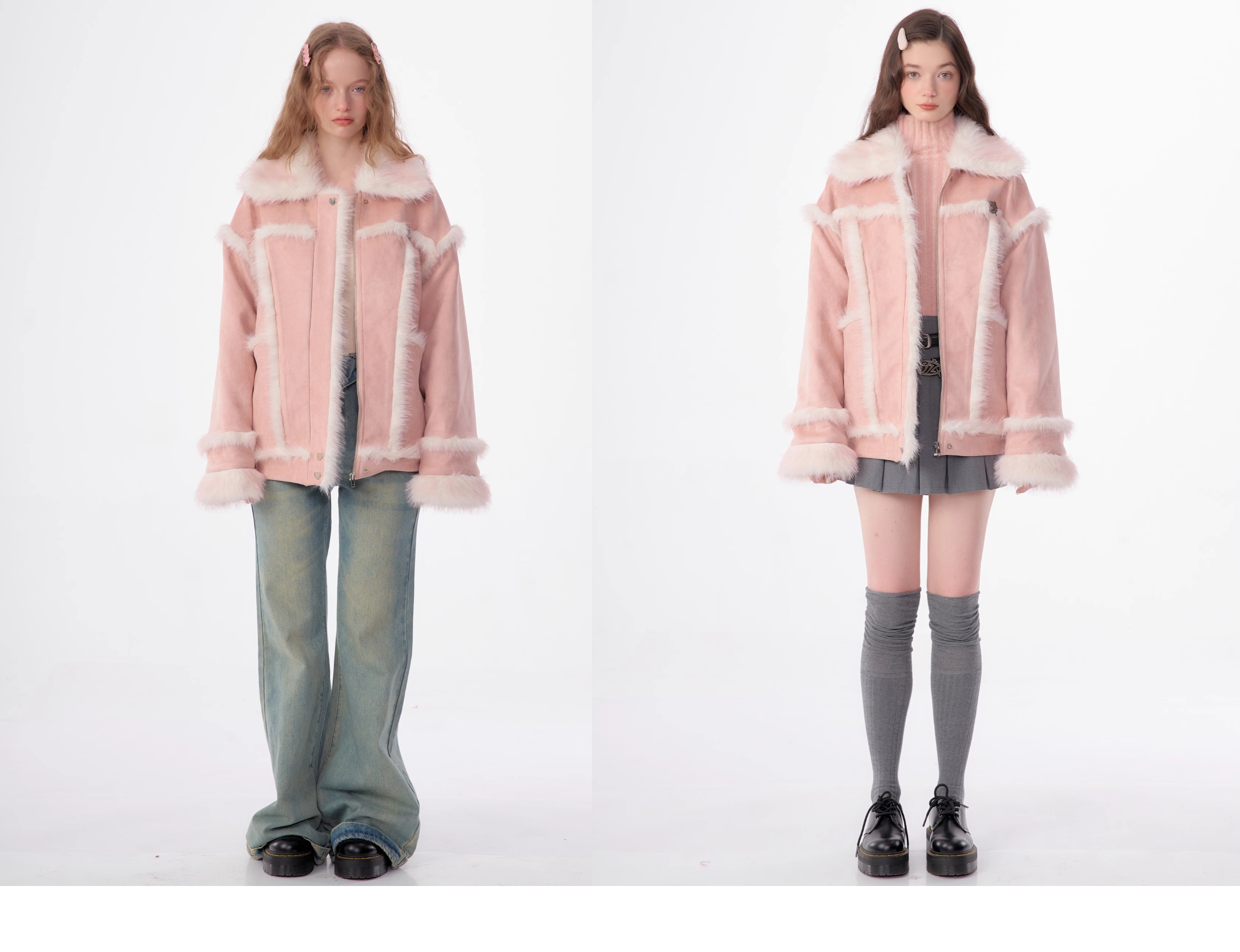 Fur Splicing Suede Coat | Retro Sheepskin Collar Thick Velvet Design for Autumn/Winter
