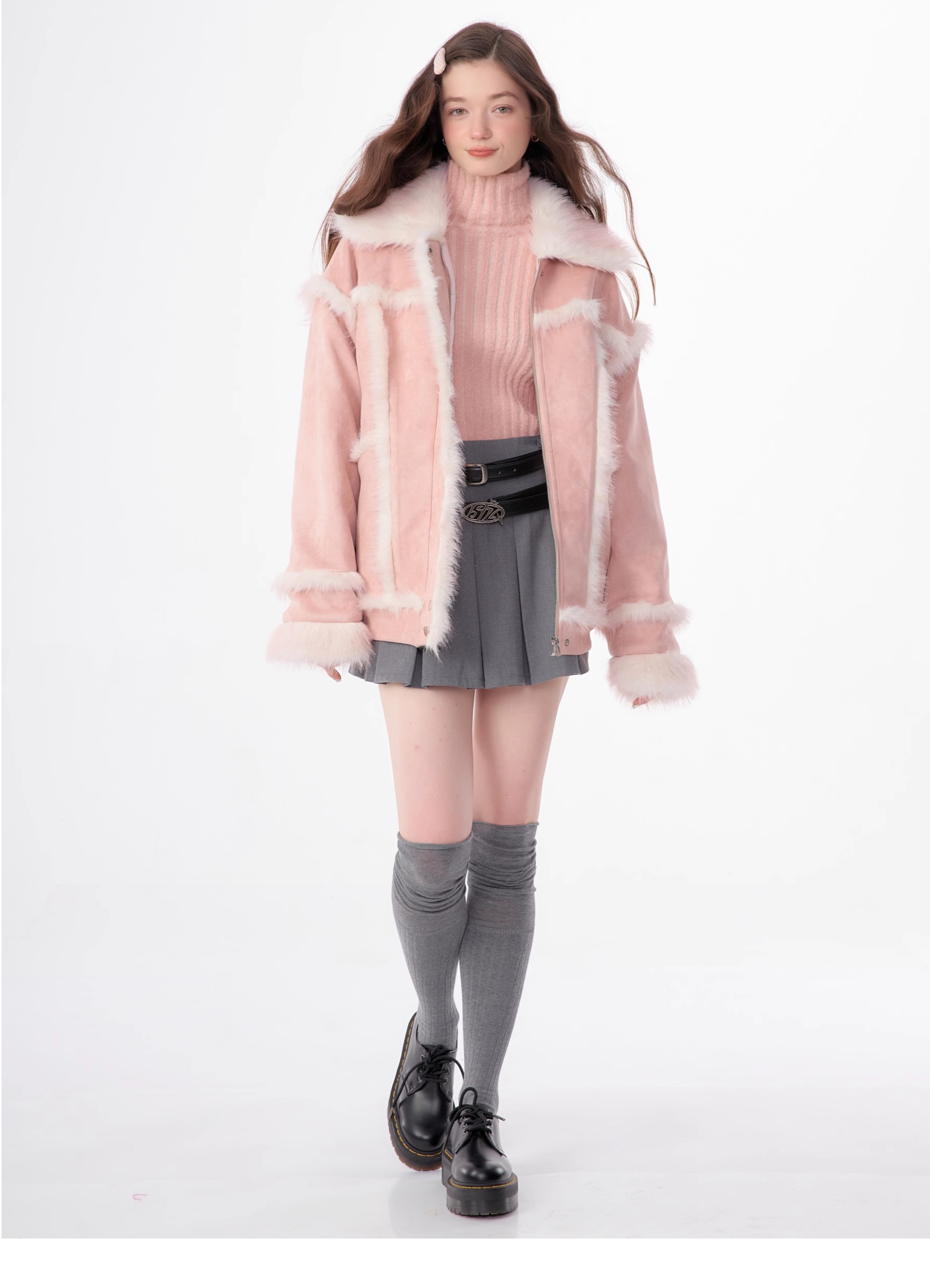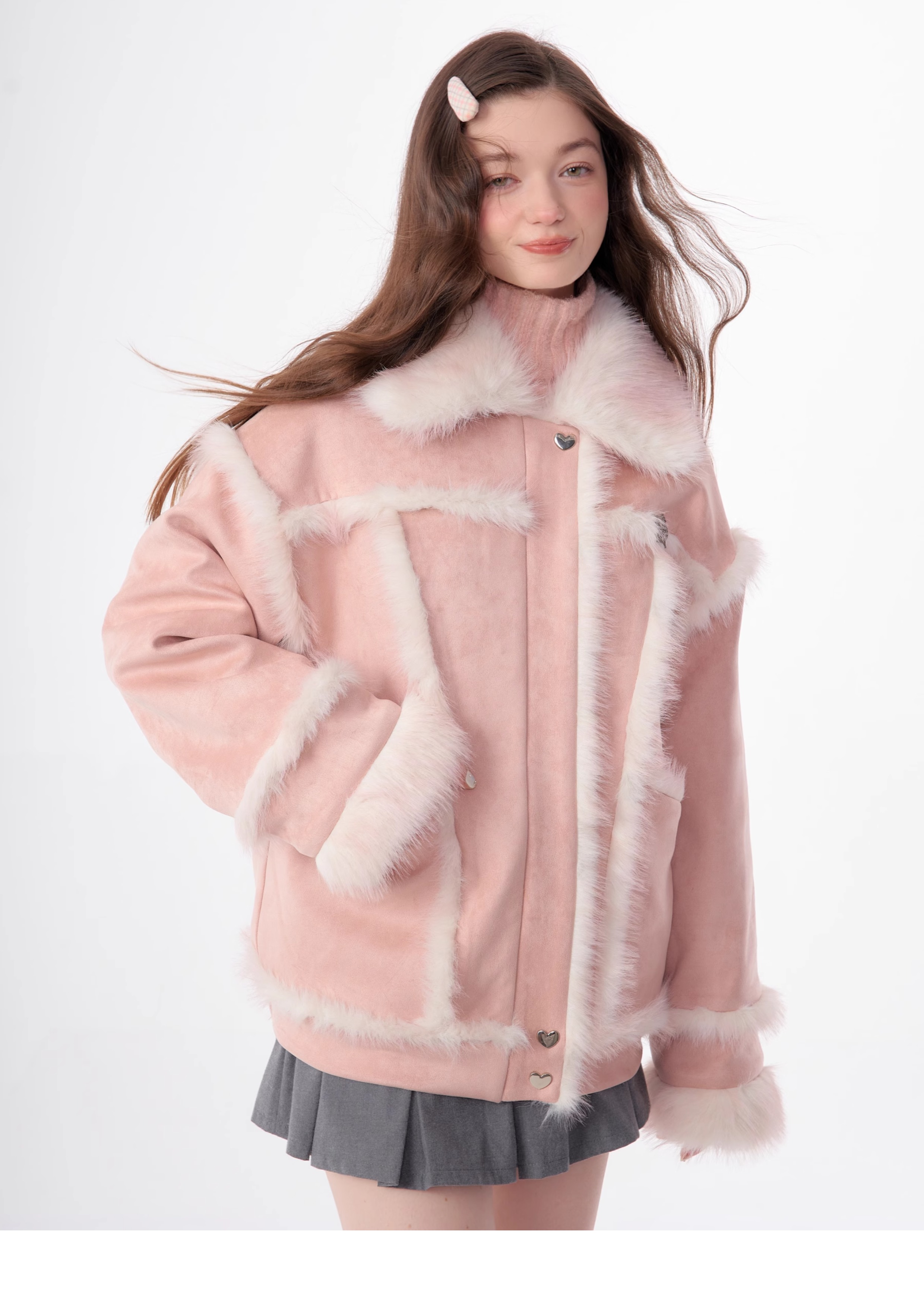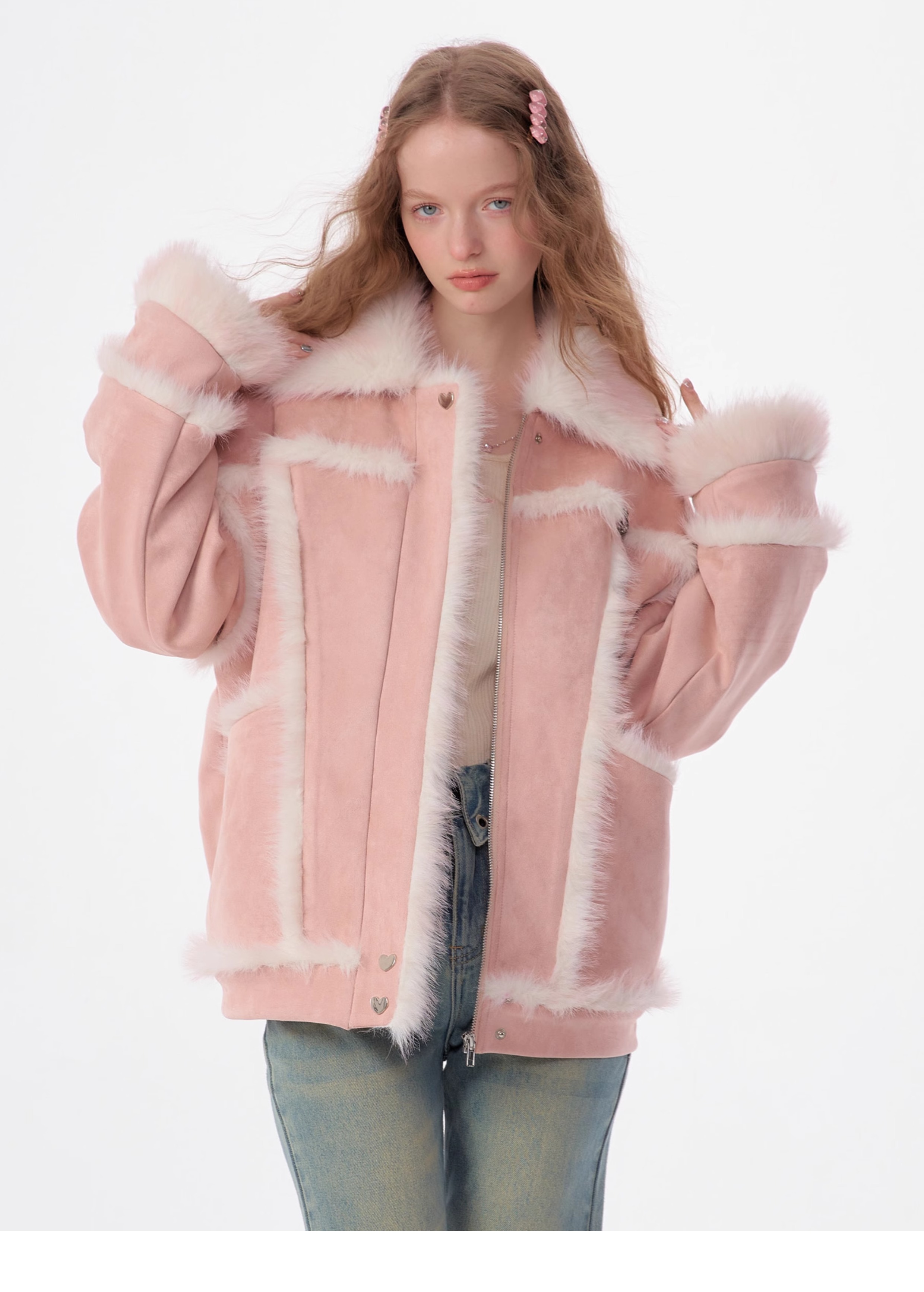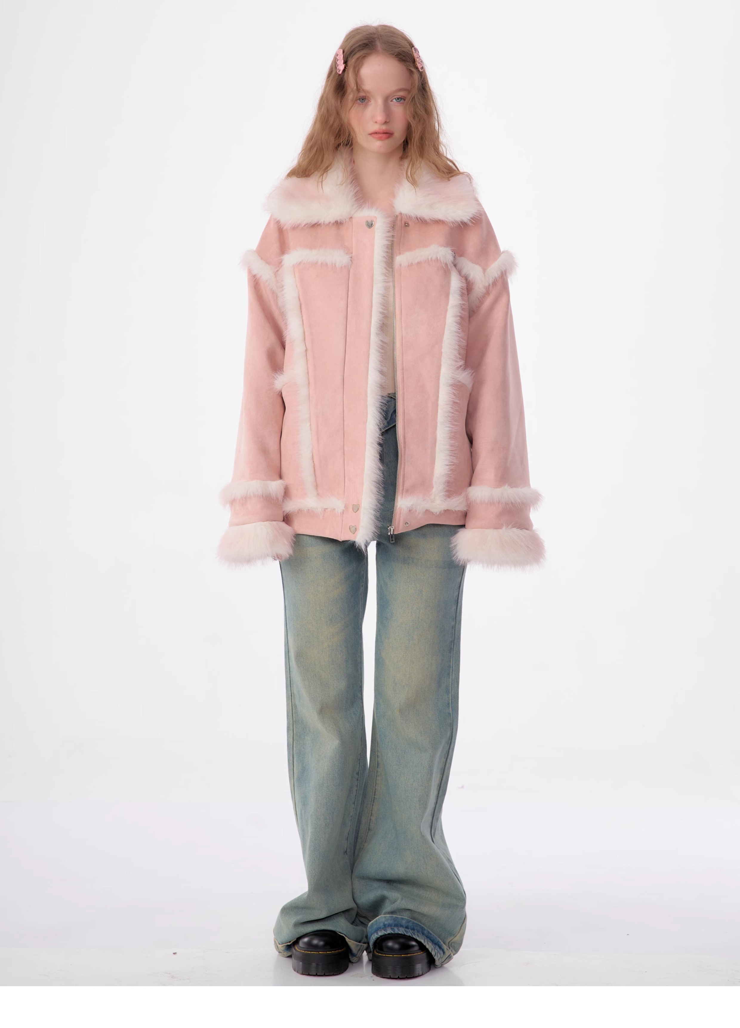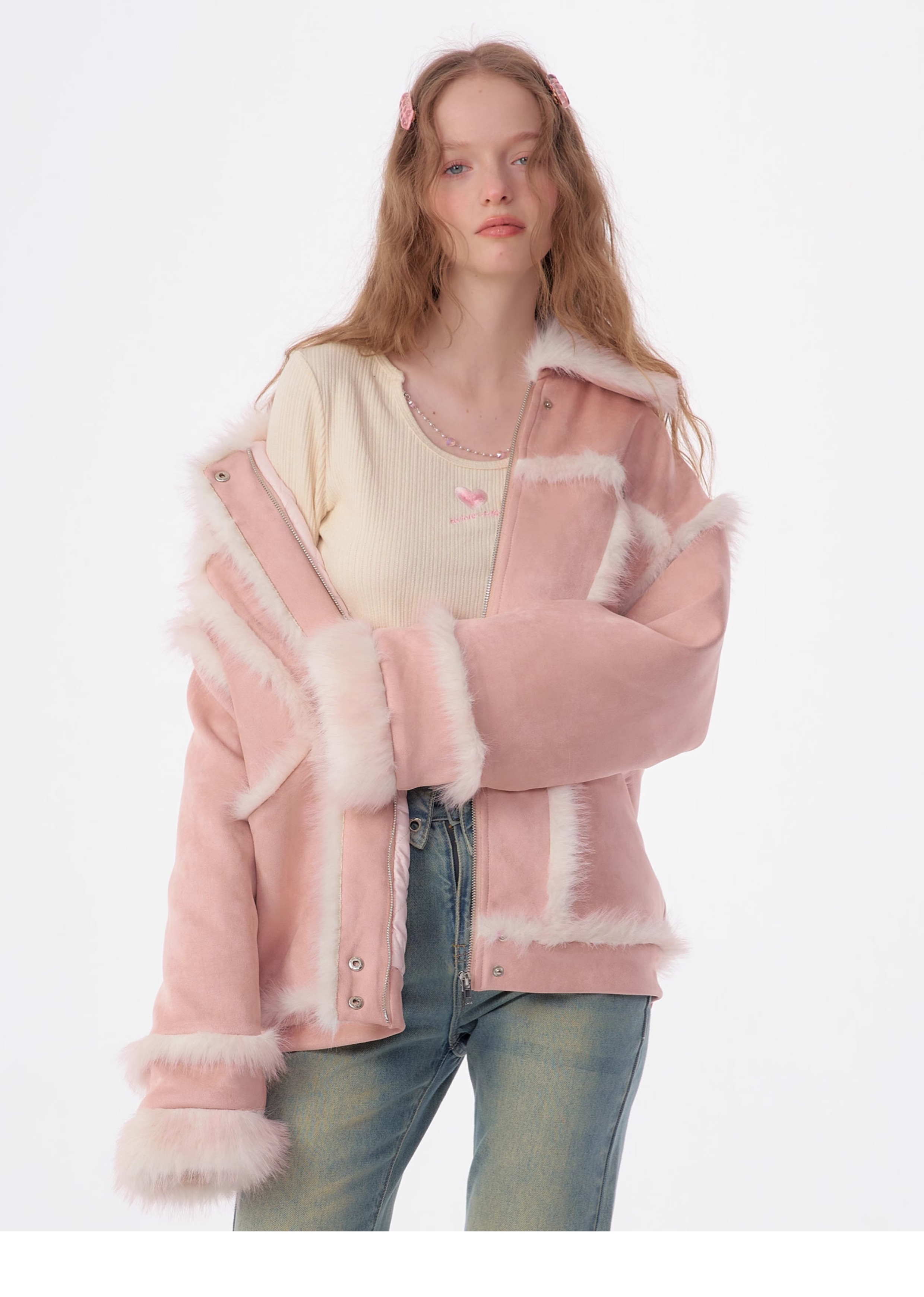 Fur Splicing Suede Coat | Retro Sheepskin Collar Thick Velvet Design for Autumn/Winter