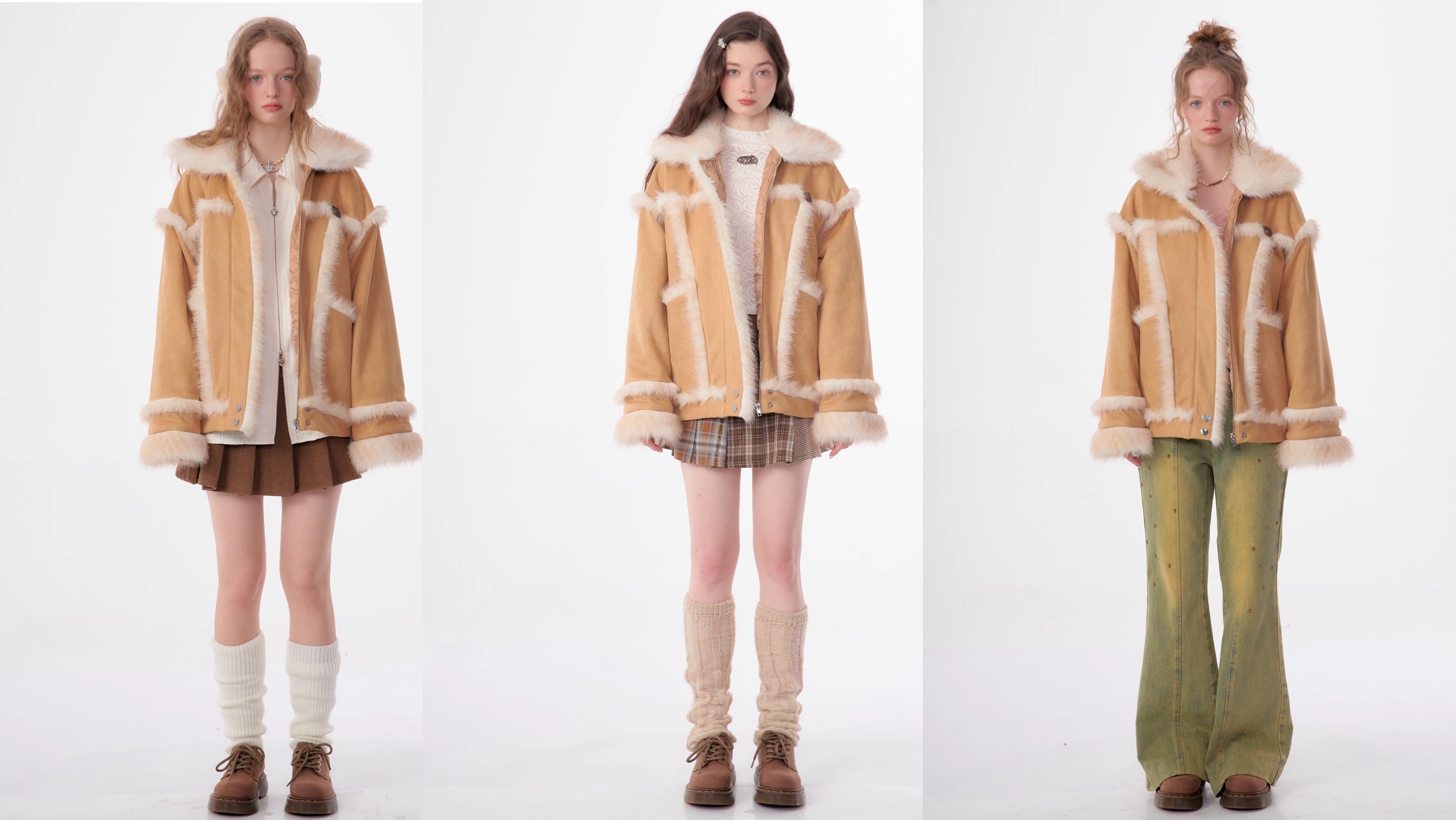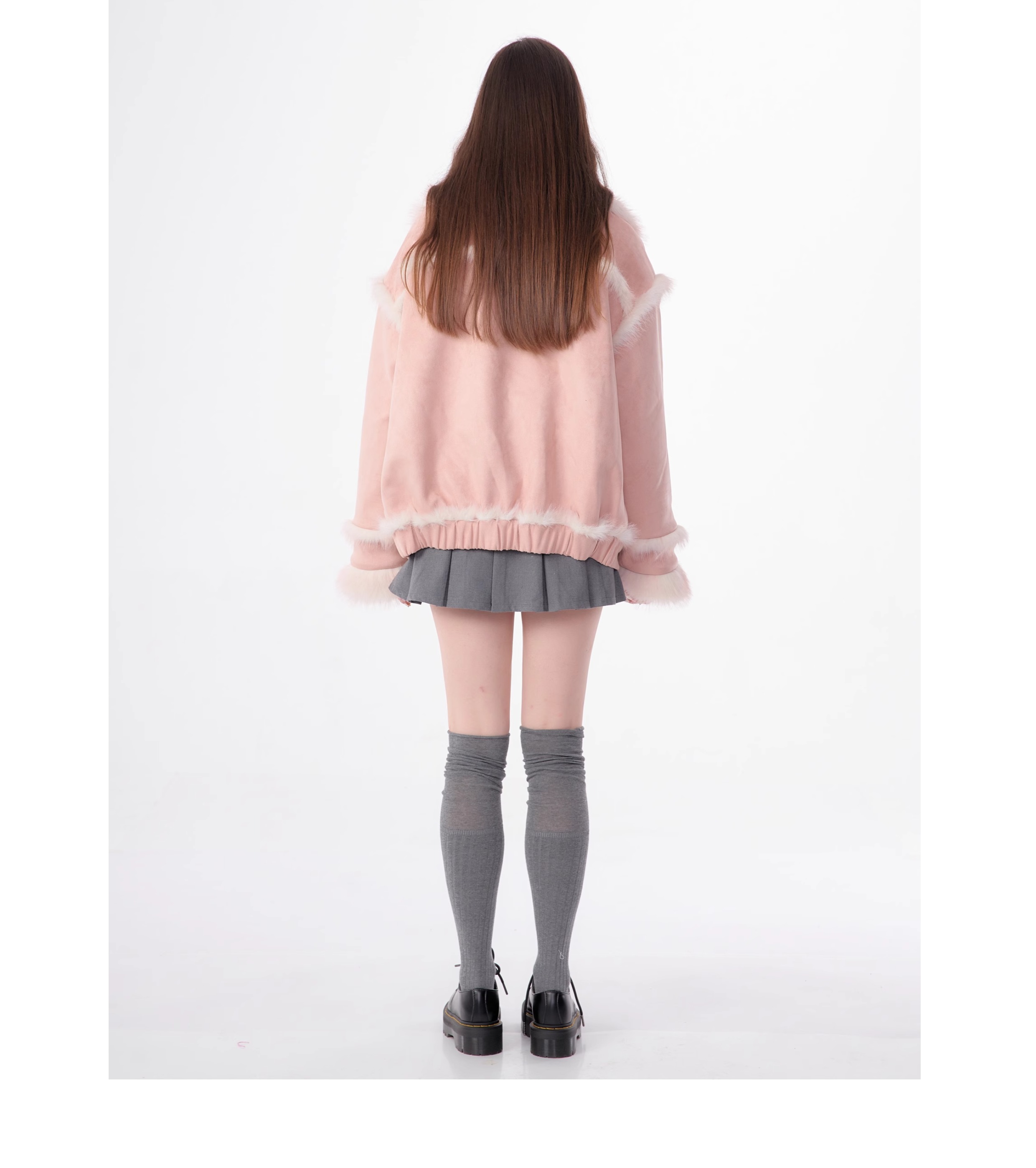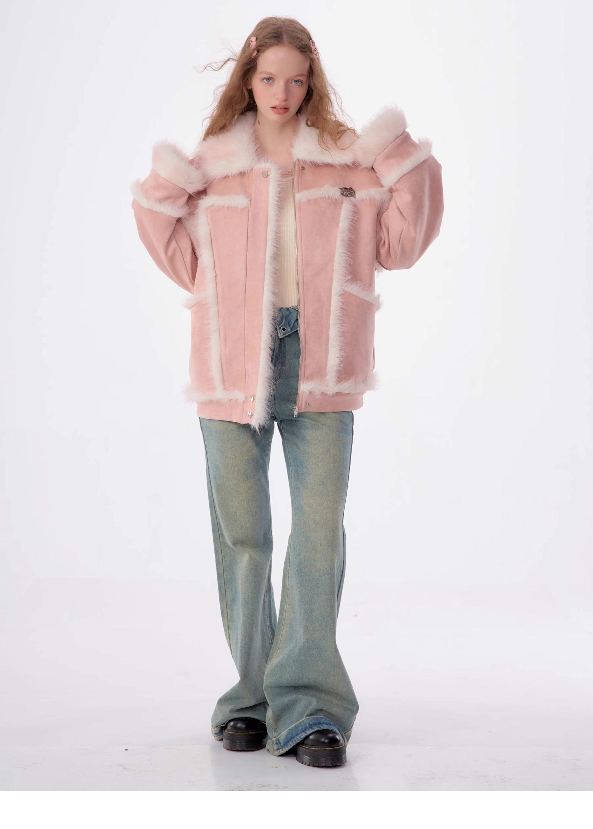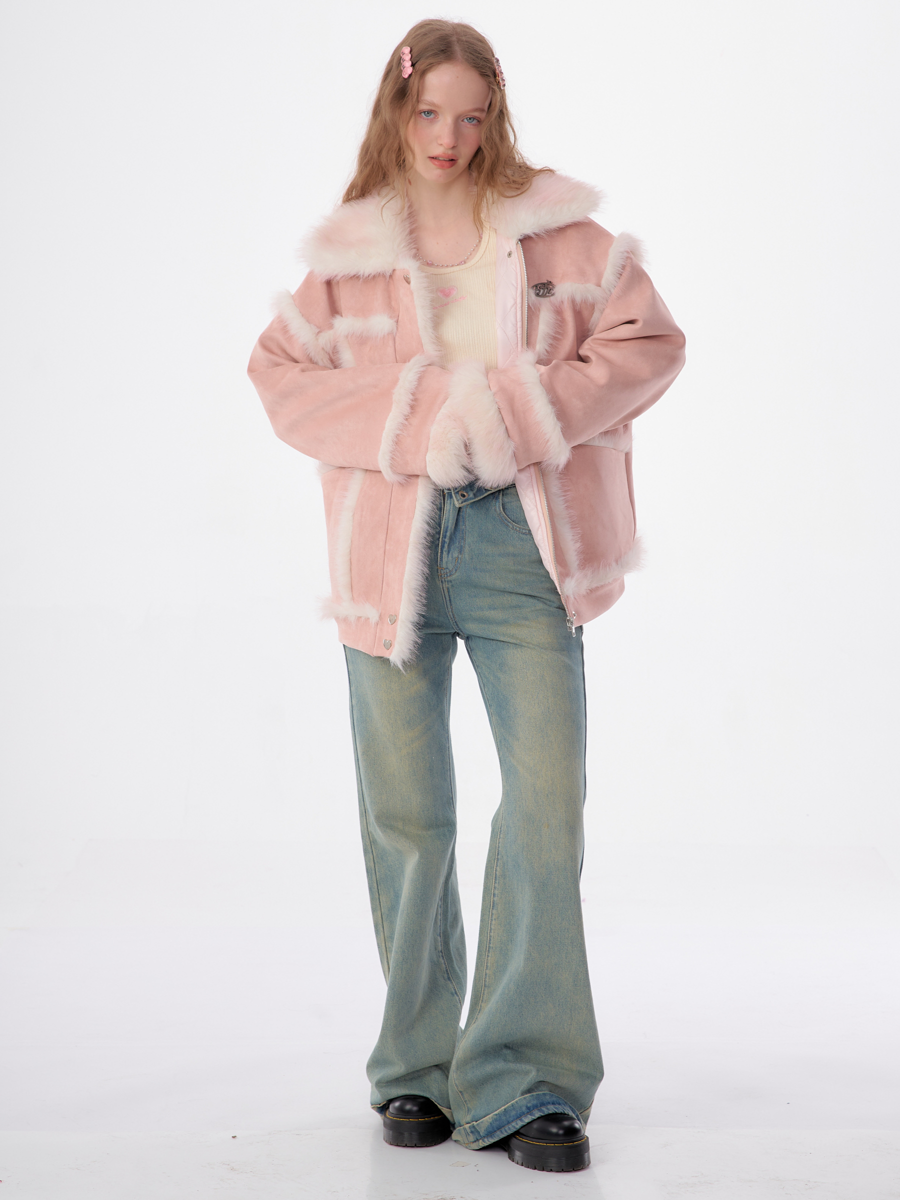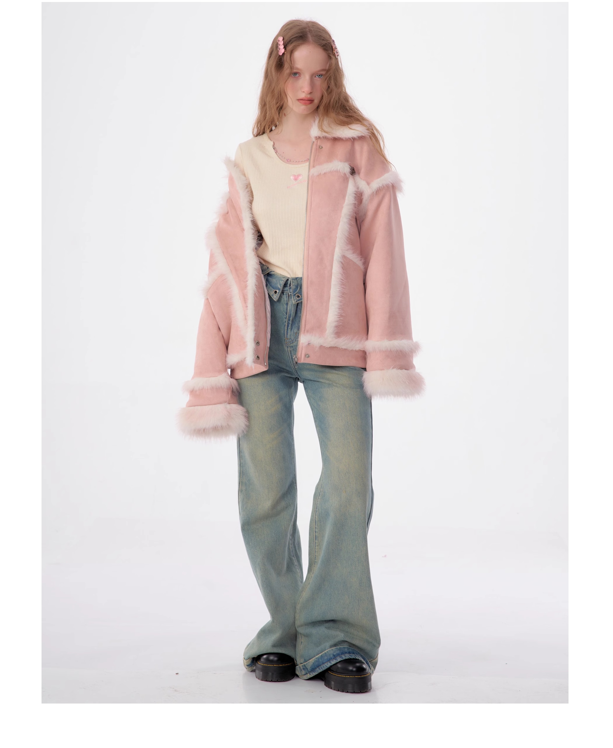 Fur Splicing Suede Coat | Retro Sheepskin Collar Thick Velvet Design for Autumn/Winter